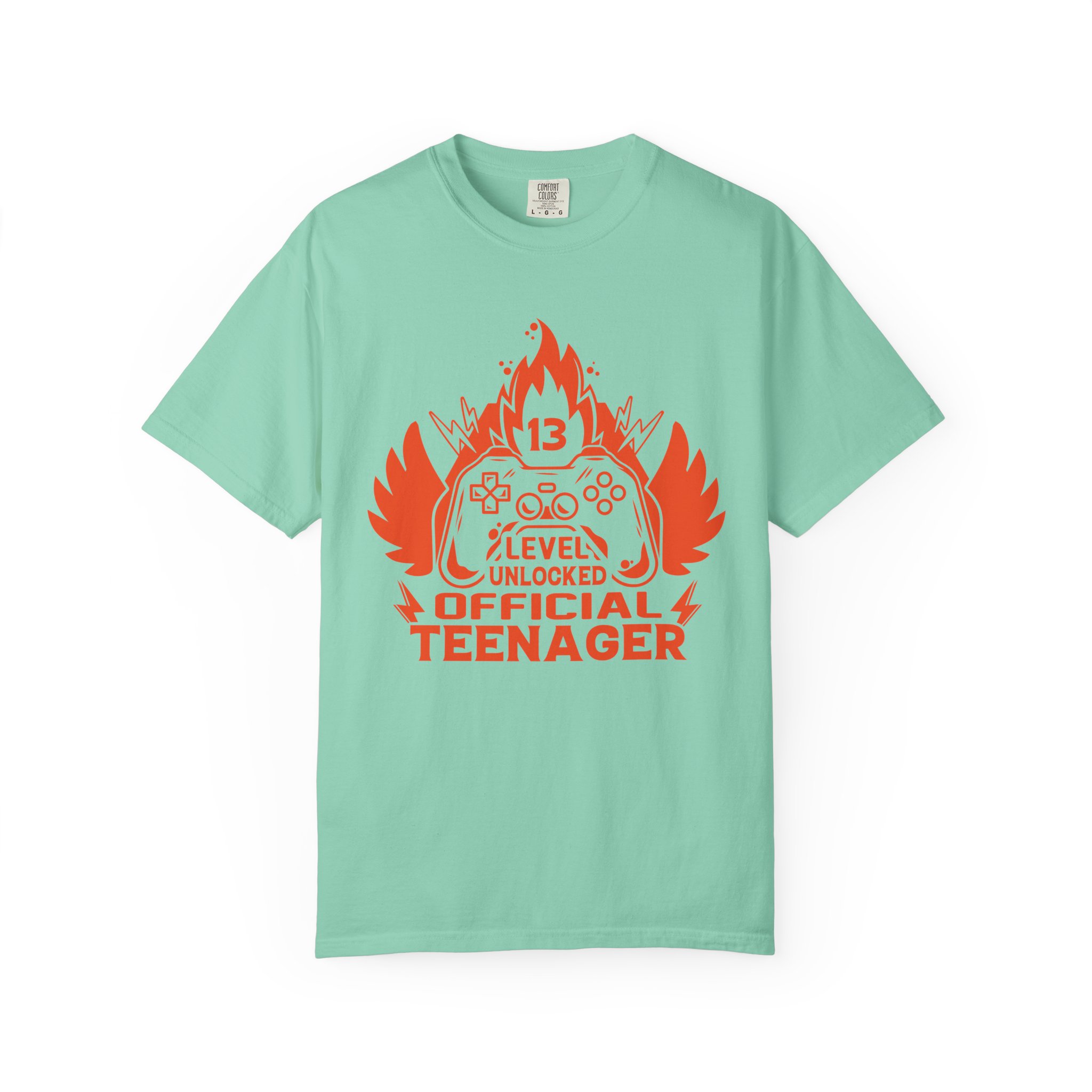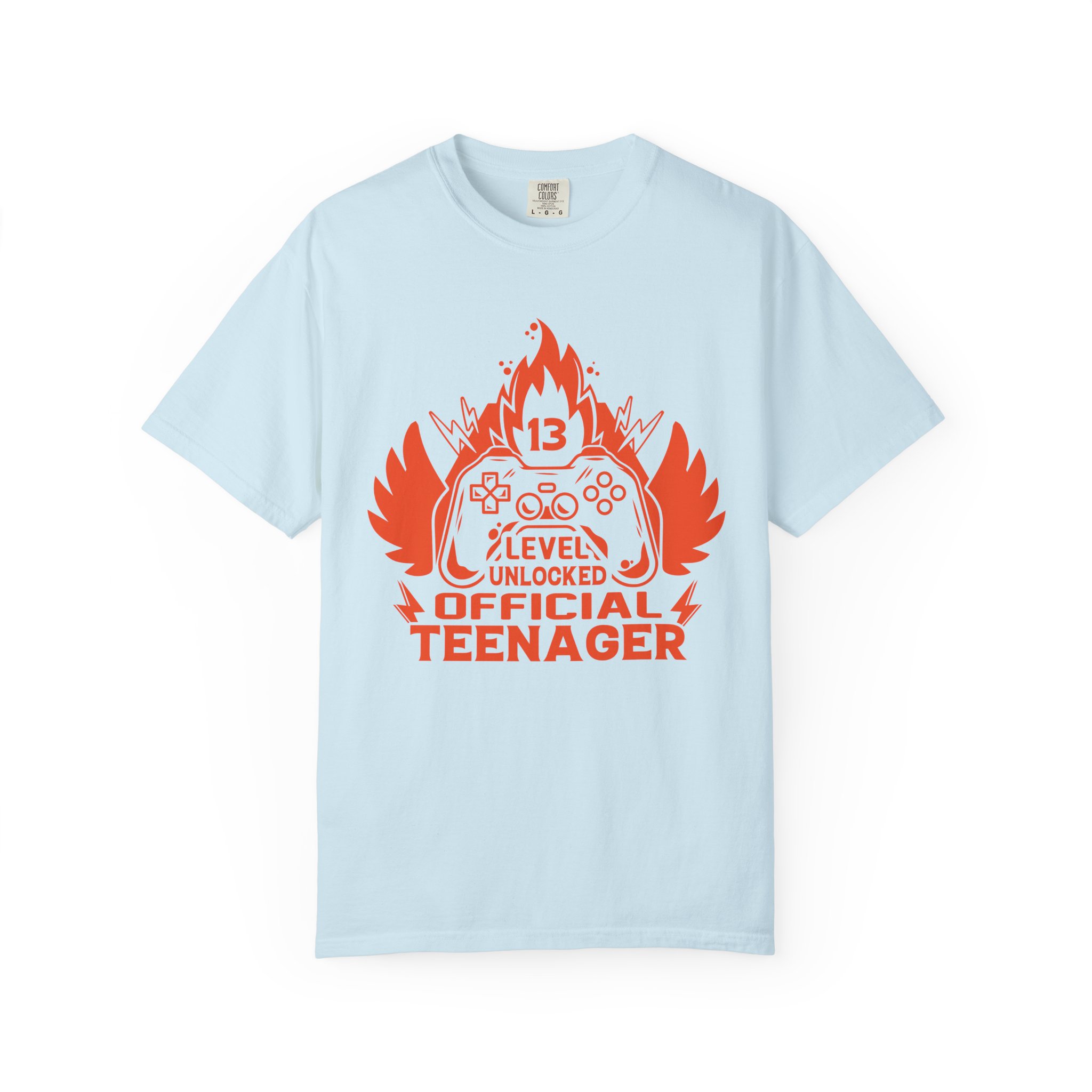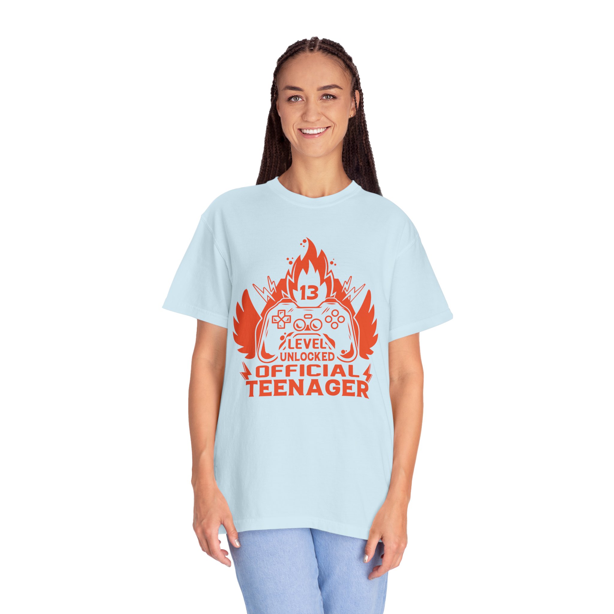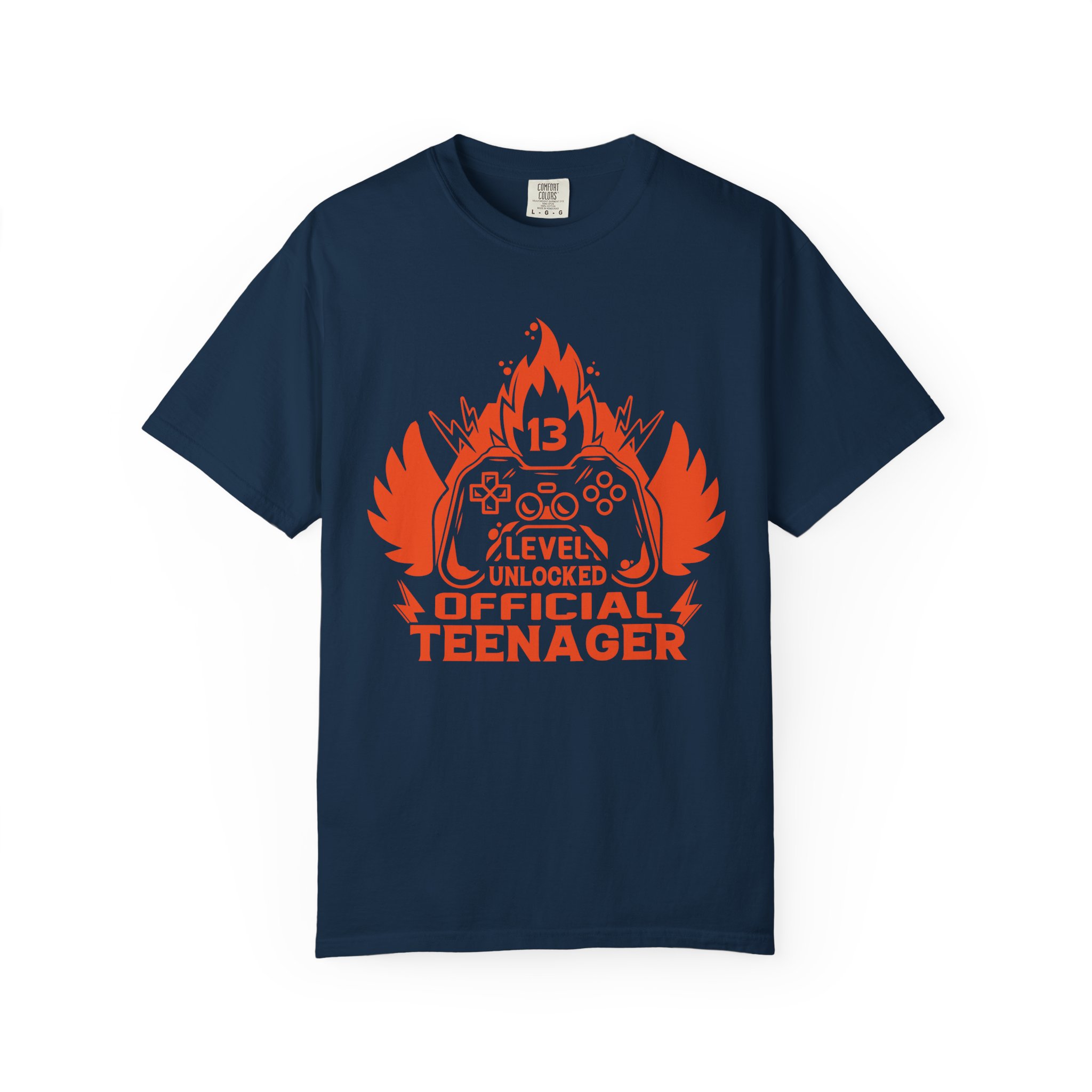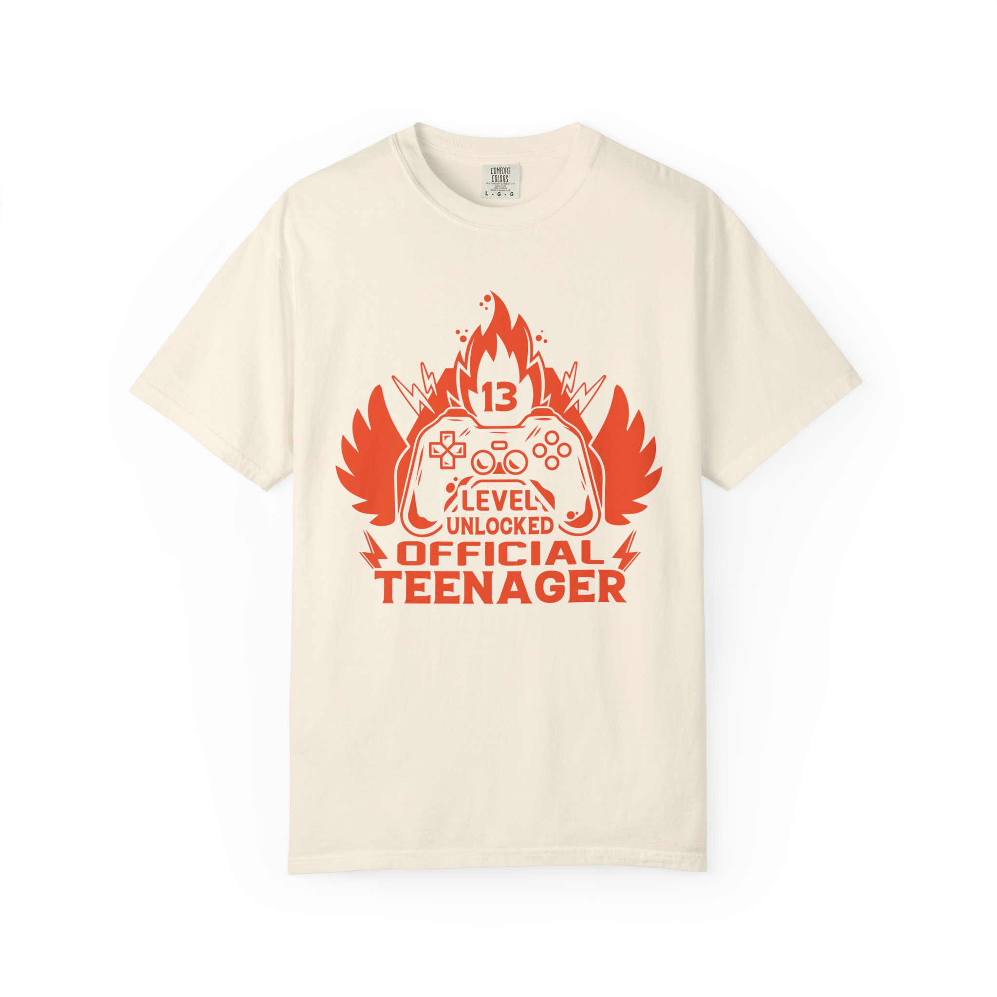 Light, lived-in comfort meets a playful milestone. This garment-dyed tee carries a soft, broken-in hand and a relaxed cut that lets a newly minted teenager move freely — from gaming marathons to backyard hangouts. The bold, retro controller graphic and “Level 13: Official Teenager” lettering feel like a badge they can wear with quiet pride. It’s built to soften over time, with heavyweight cotton that still breathes, double-stitched seams that stand up to everyday use, and a tubular knit that keeps the silhouette clean. Choose a color that matches their vibe and let them step into this new chapter with something comfortable and slightly rebellious.