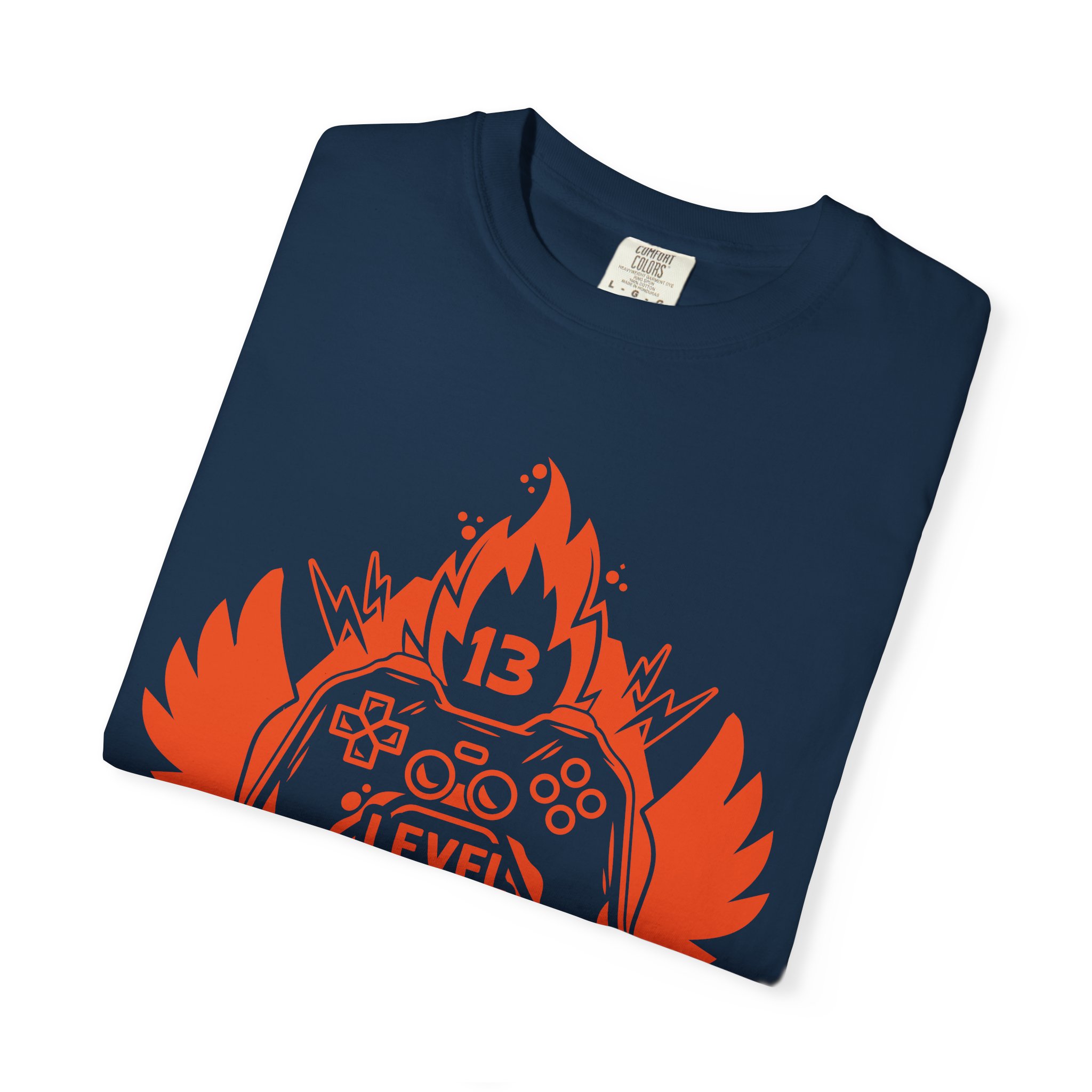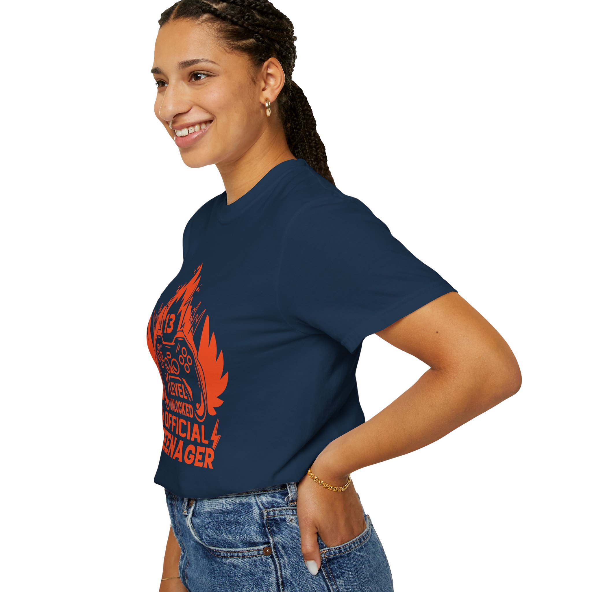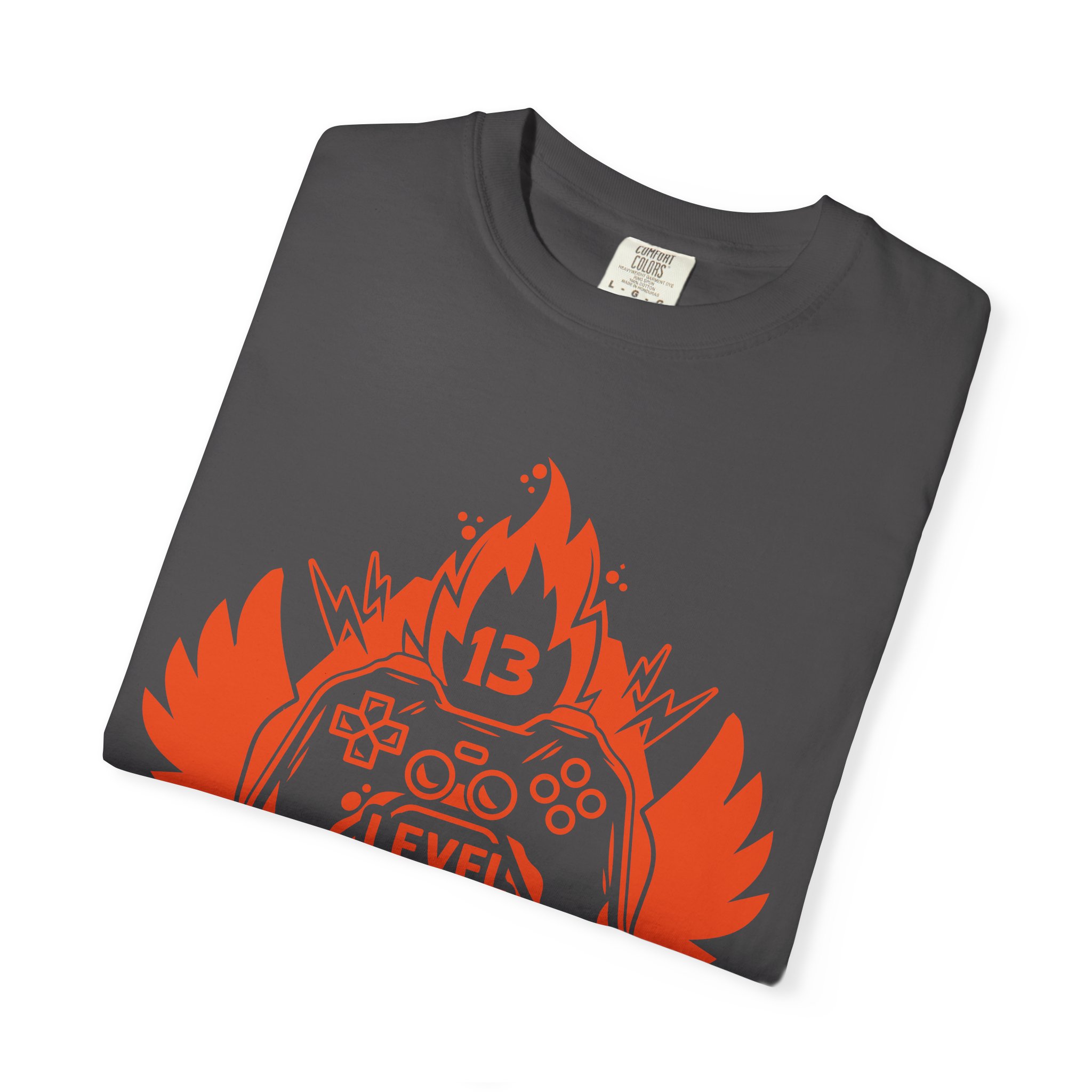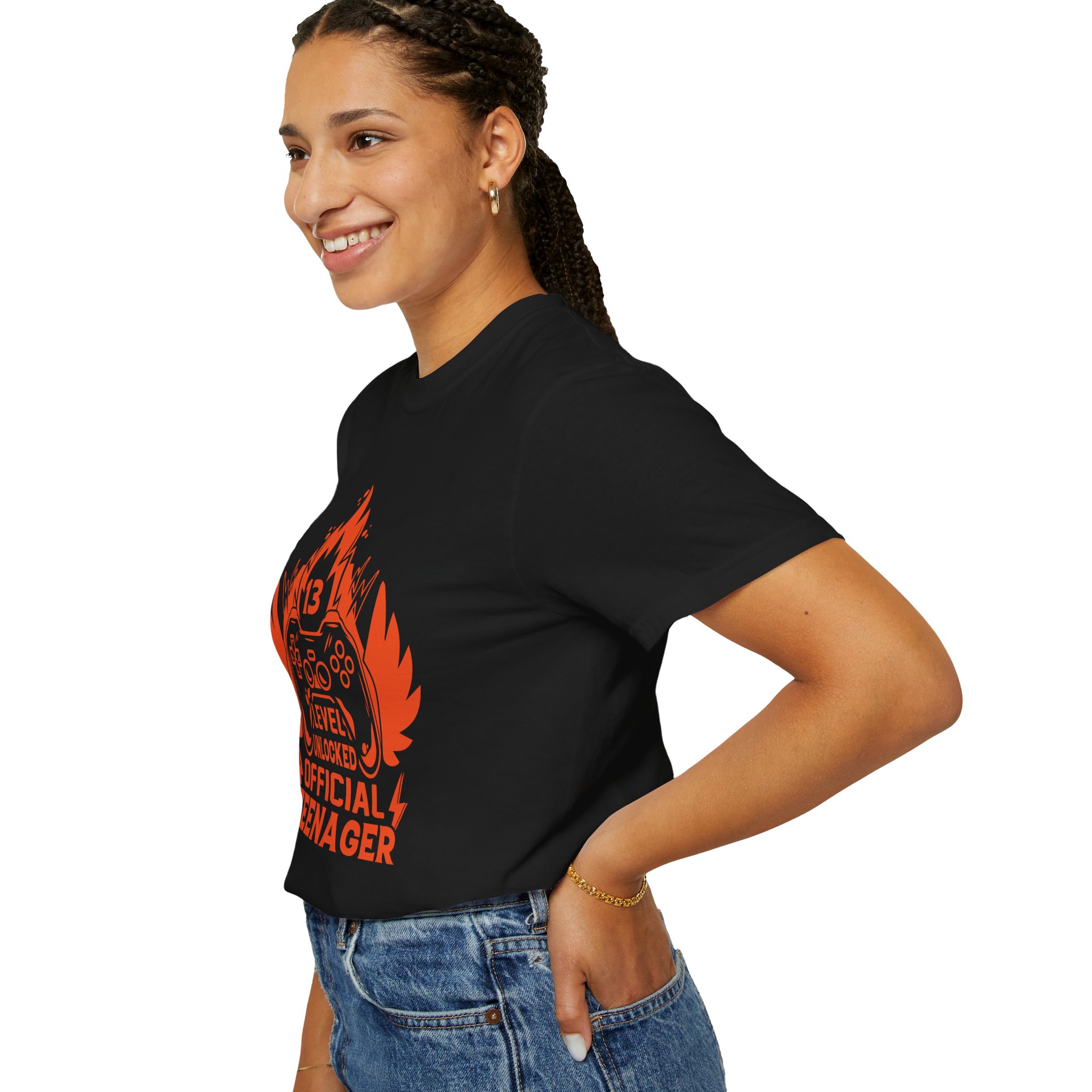 Light, lived-in comfort meets a playful milestone. This garment-dyed tee carries a soft, broken-in hand and a relaxed cut that lets a newly minted teenager move freely — from gaming marathons to backyard hangouts. The bold, retro controller graphic and “Level 13: Official Teenager” lettering feel like a badge they can wear with quiet pride. It’s built to soften over time, with heavyweight cotton that still breathes, double-stitched seams that stand up to everyday use, and a tubular knit that keeps the silhouette clean. Choose a color that matches their vibe and let them step into this new chapter with something comfortable and slightly rebellious.