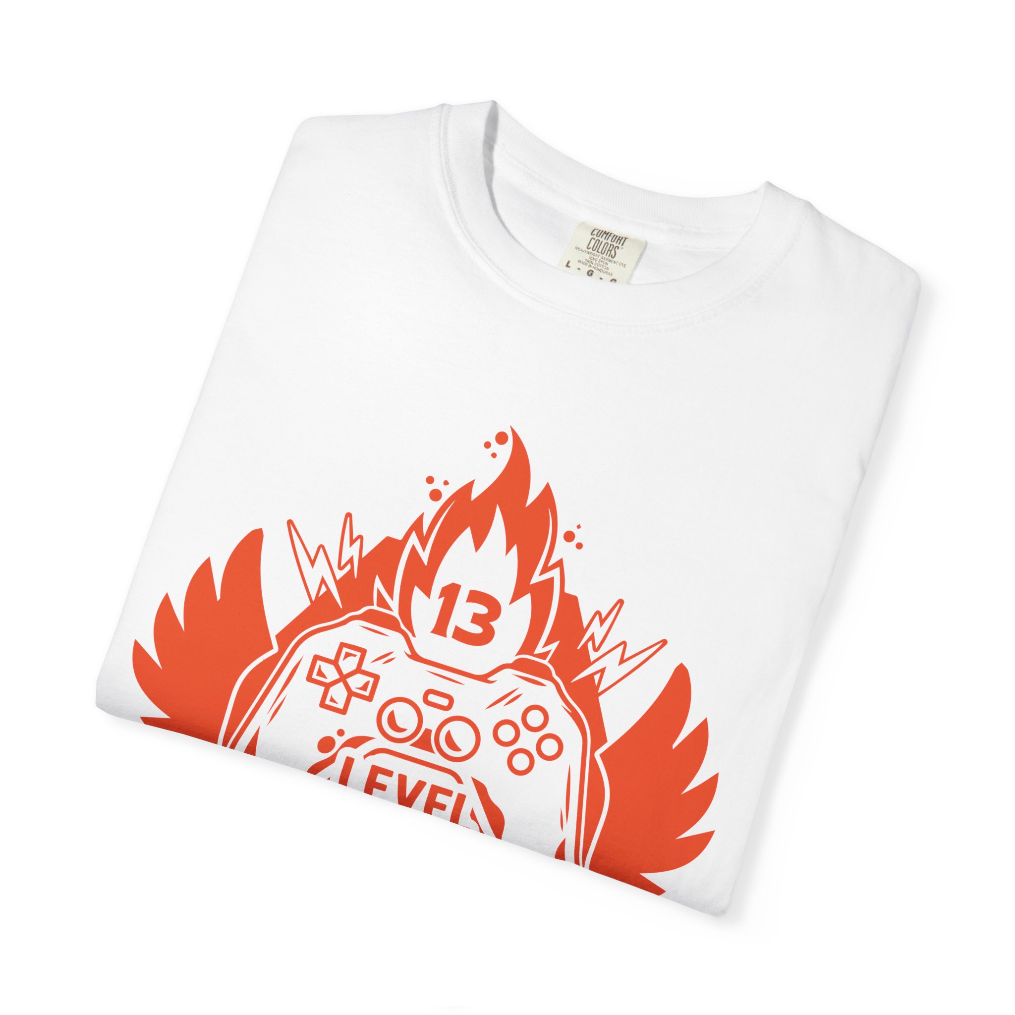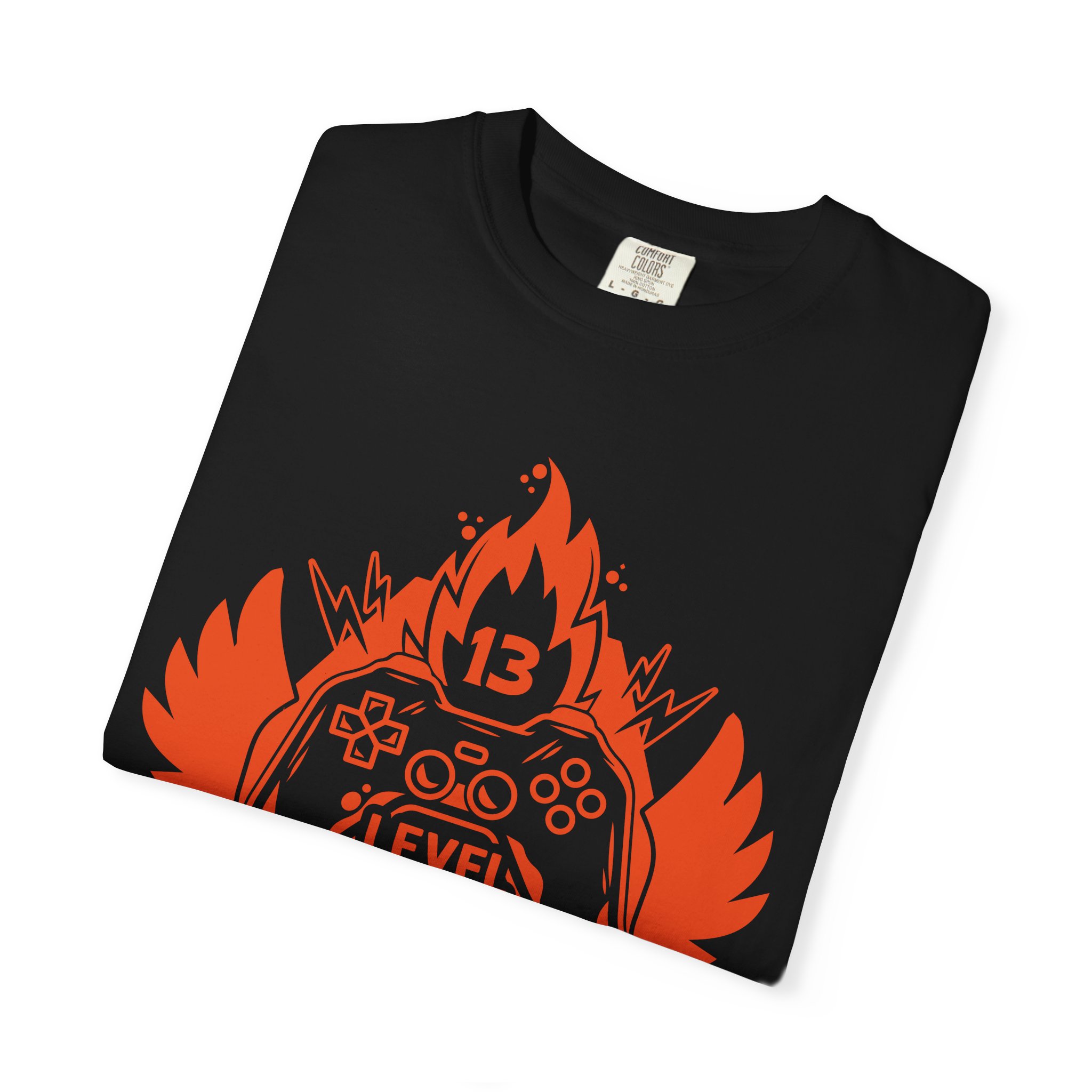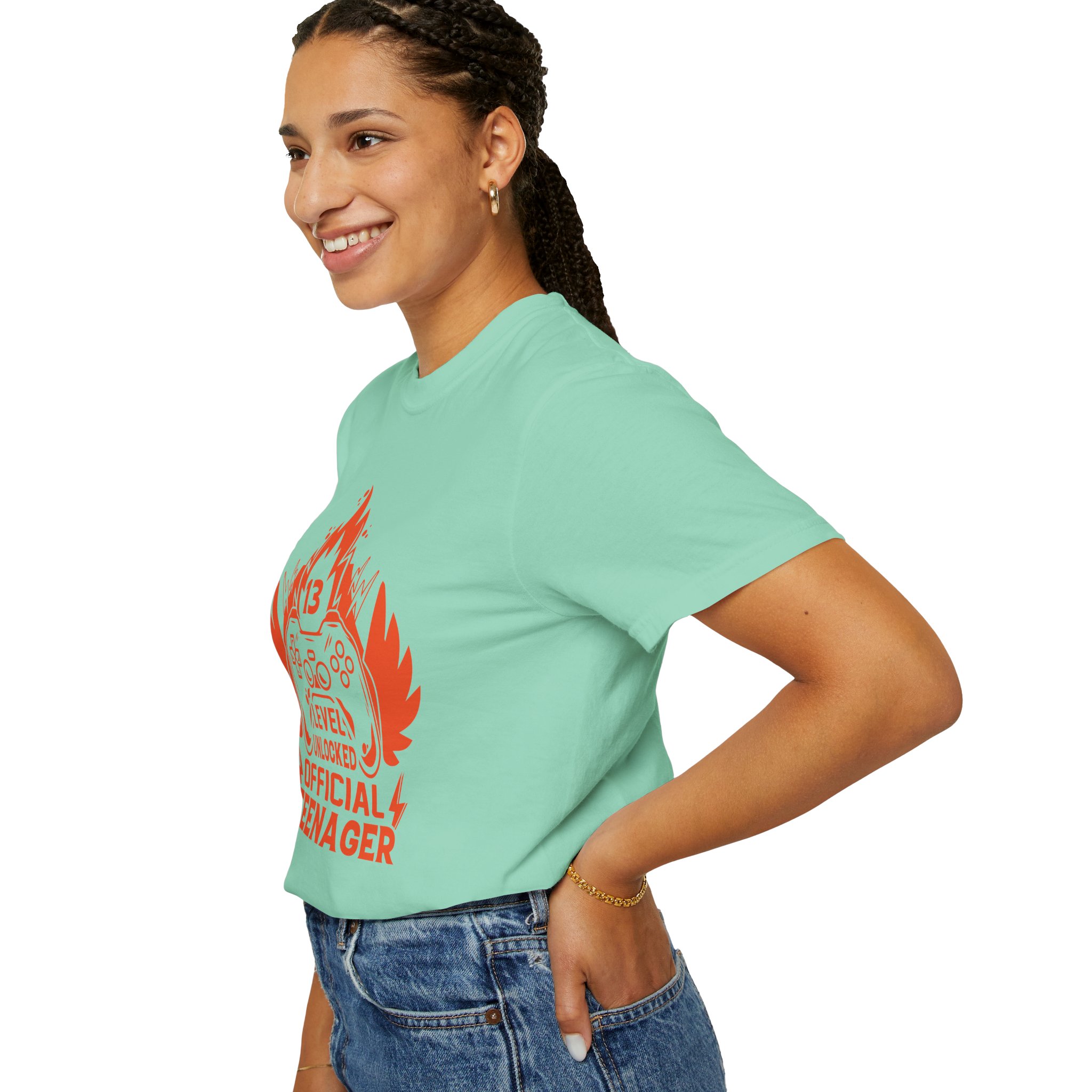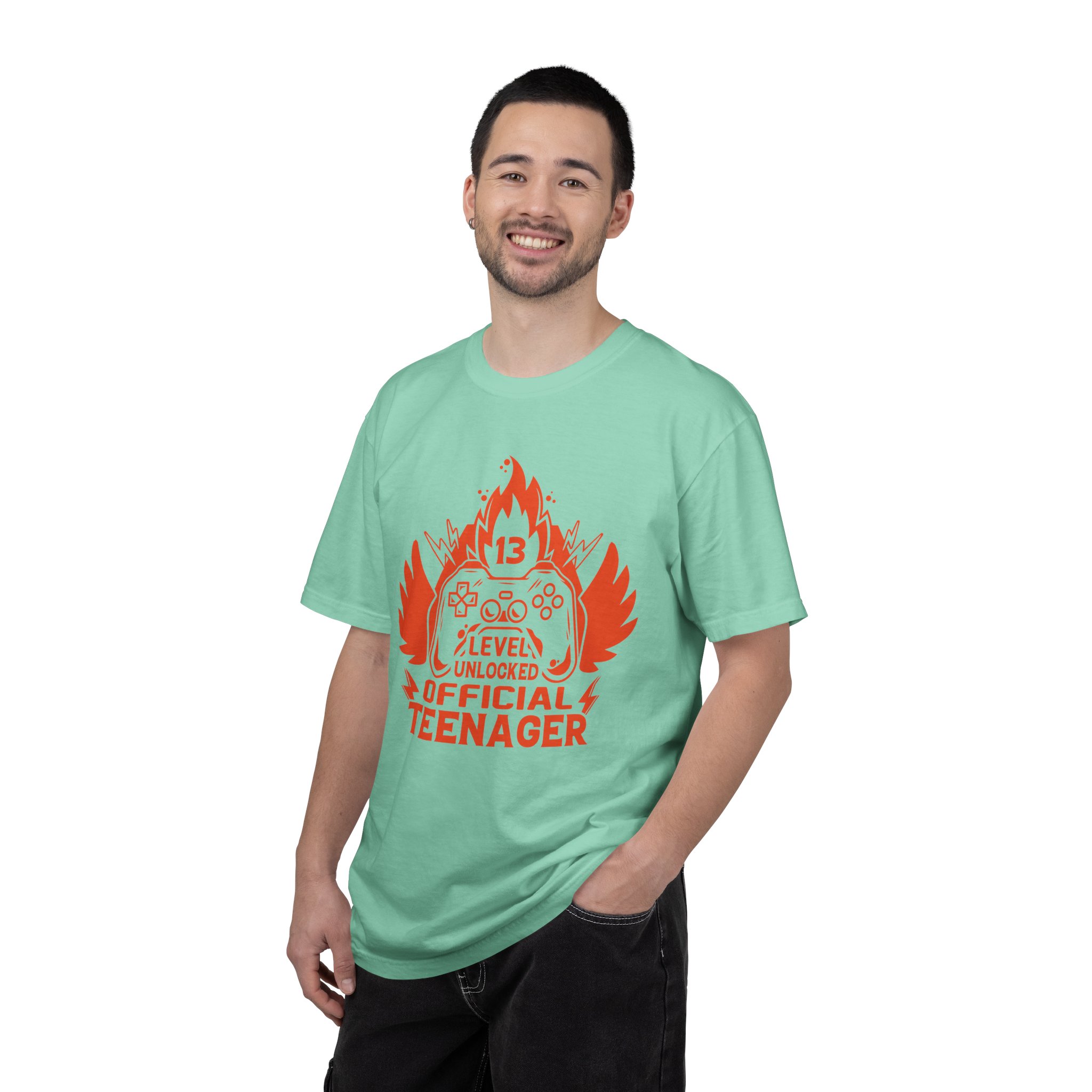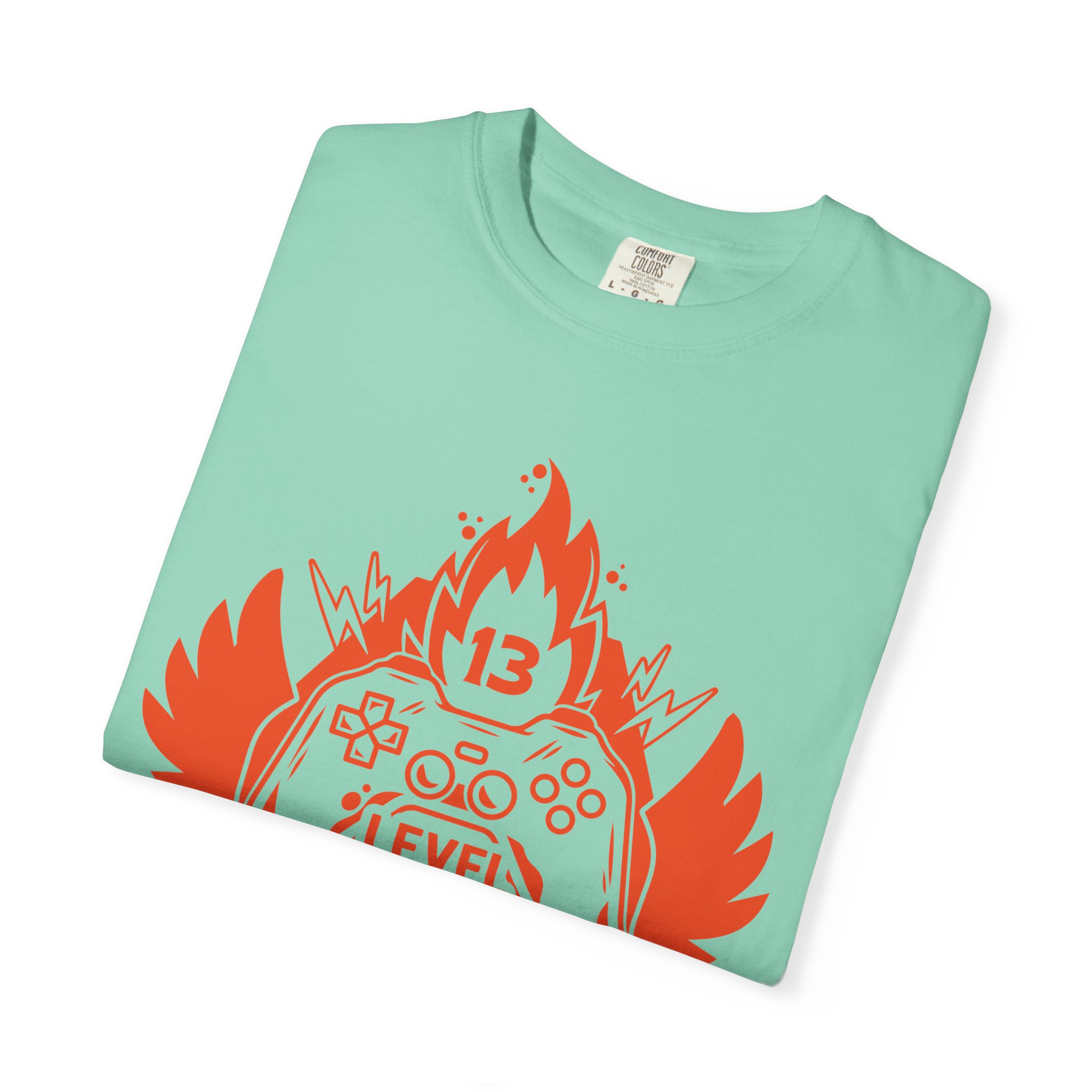 Light, lived-in comfort meets a playful milestone. This garment-dyed tee carries a soft, broken-in hand and a relaxed cut that lets a newly minted teenager move freely — from gaming marathons to backyard hangouts. The bold, retro controller graphic and “Level 13: Official Teenager” lettering feel like a badge they can wear with quiet pride. It’s built to soften over time, with heavyweight cotton that still breathes, double-stitched seams that stand up to everyday use, and a tubular knit that keeps the silhouette clean. Choose a color that matches their vibe and let them step into this new chapter with something comfortable and slightly rebellious.
