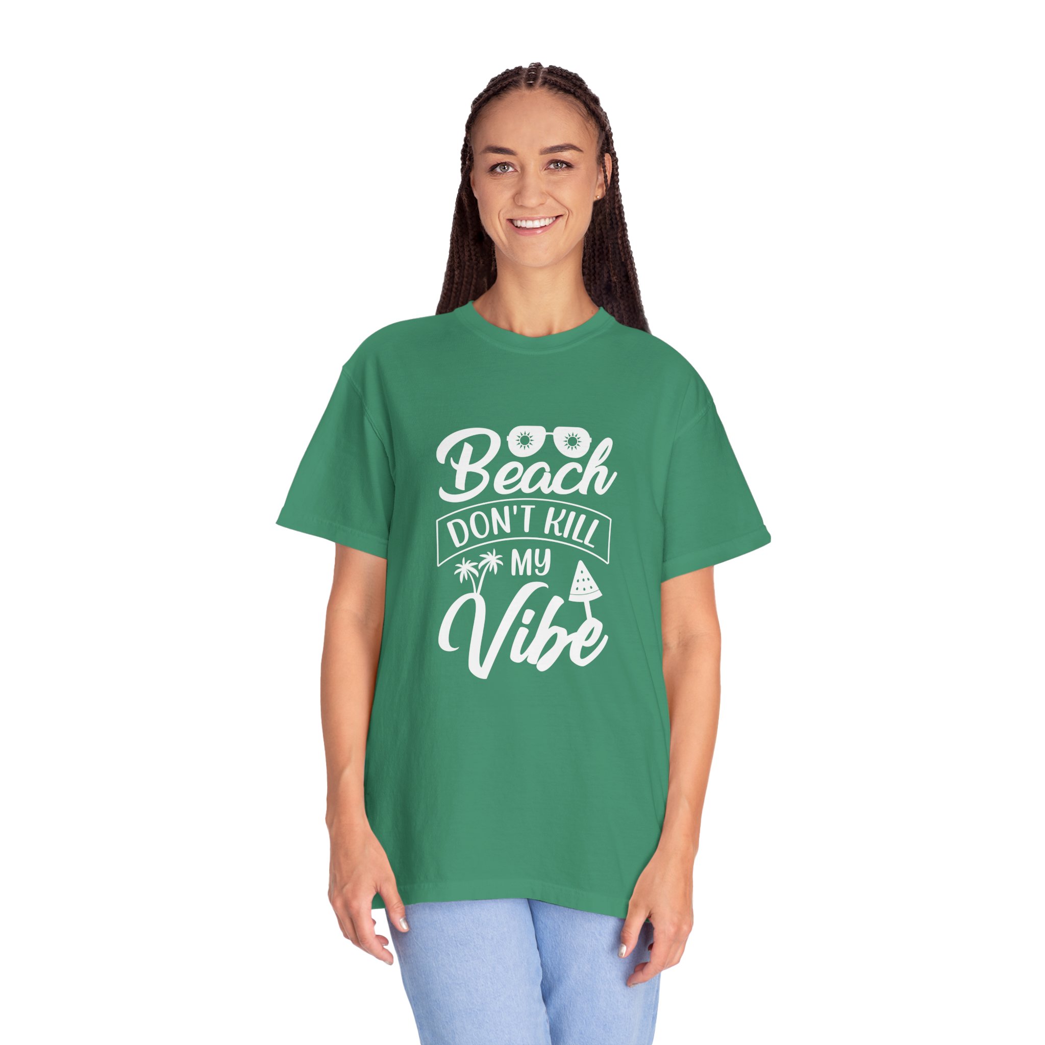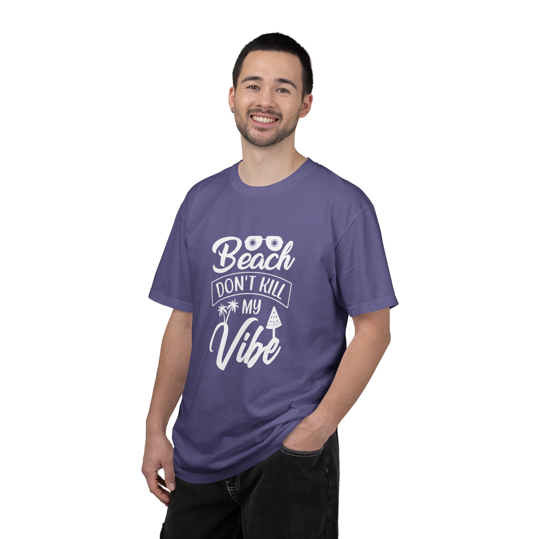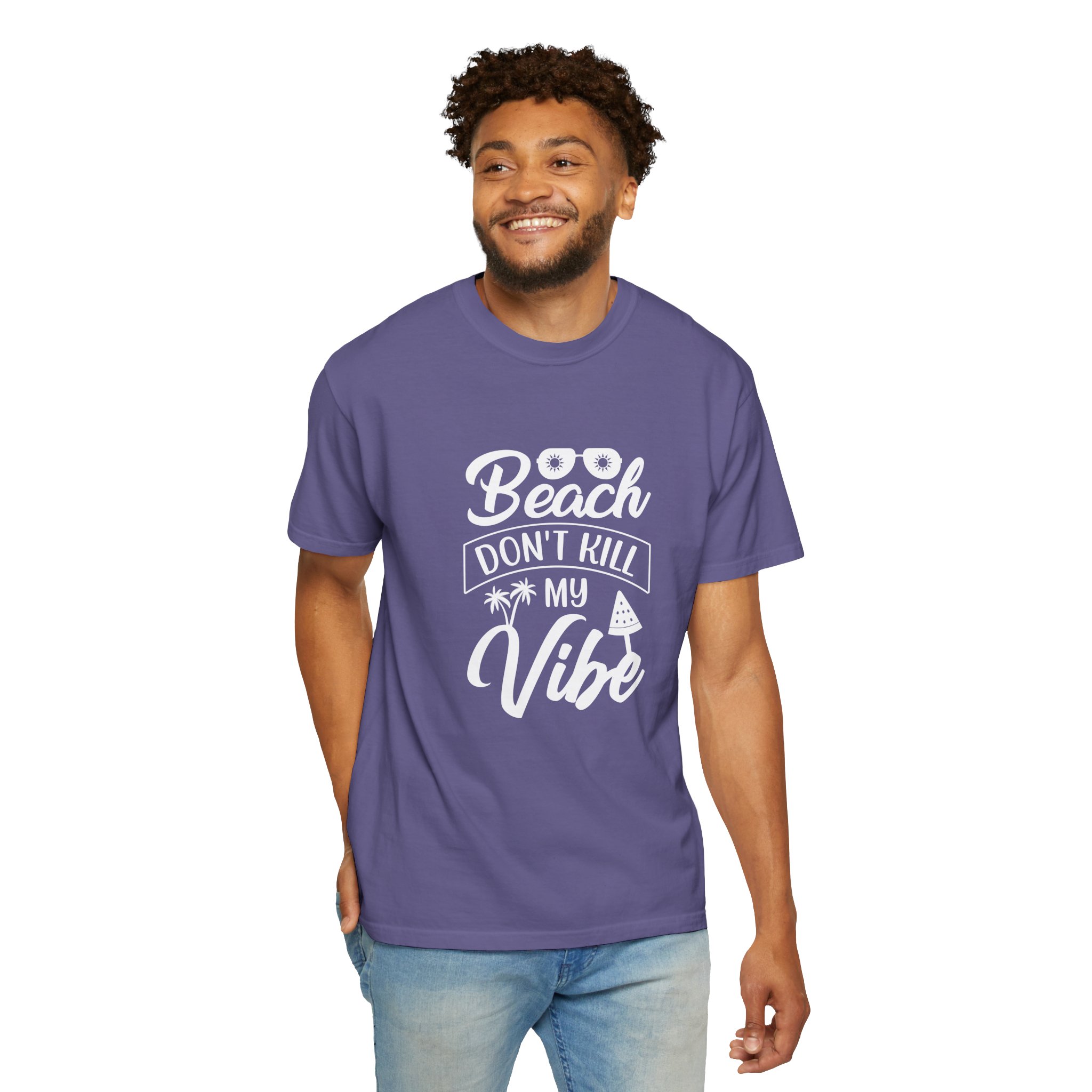 Introducing a unique unisex garment-dyed t-shirt that exudes a relaxed, beachy vibe. With its playful “Beach Don’t Kill My Vibe” design, this t-shirt is perfect for lounging by the shore or attending summer gatherings. Its soft, pre-shrunk cotton fabric ensures comfort for all-day wear, making it an essential addition to any casual wardrobe. Ideal for beach lovers, outdoor enthusiasts, and those looking to celebrate sunny days, this t-shirt is great for holidays like summer vacations and warm-weather celebrations. Its variety of colors allows you to express your personal style, making it a thoughtful gift for birthdays, beach parties, or just because!
