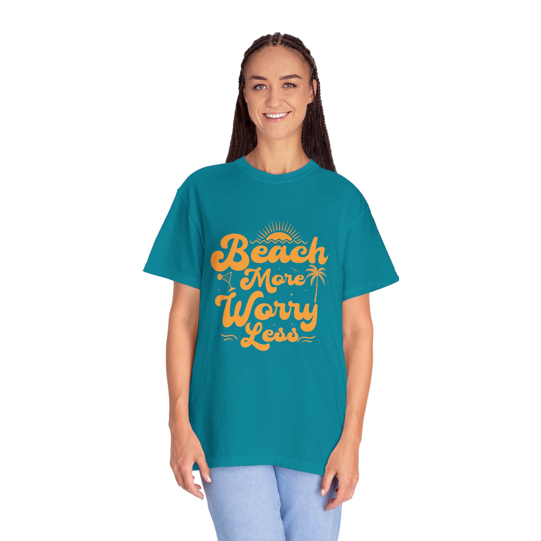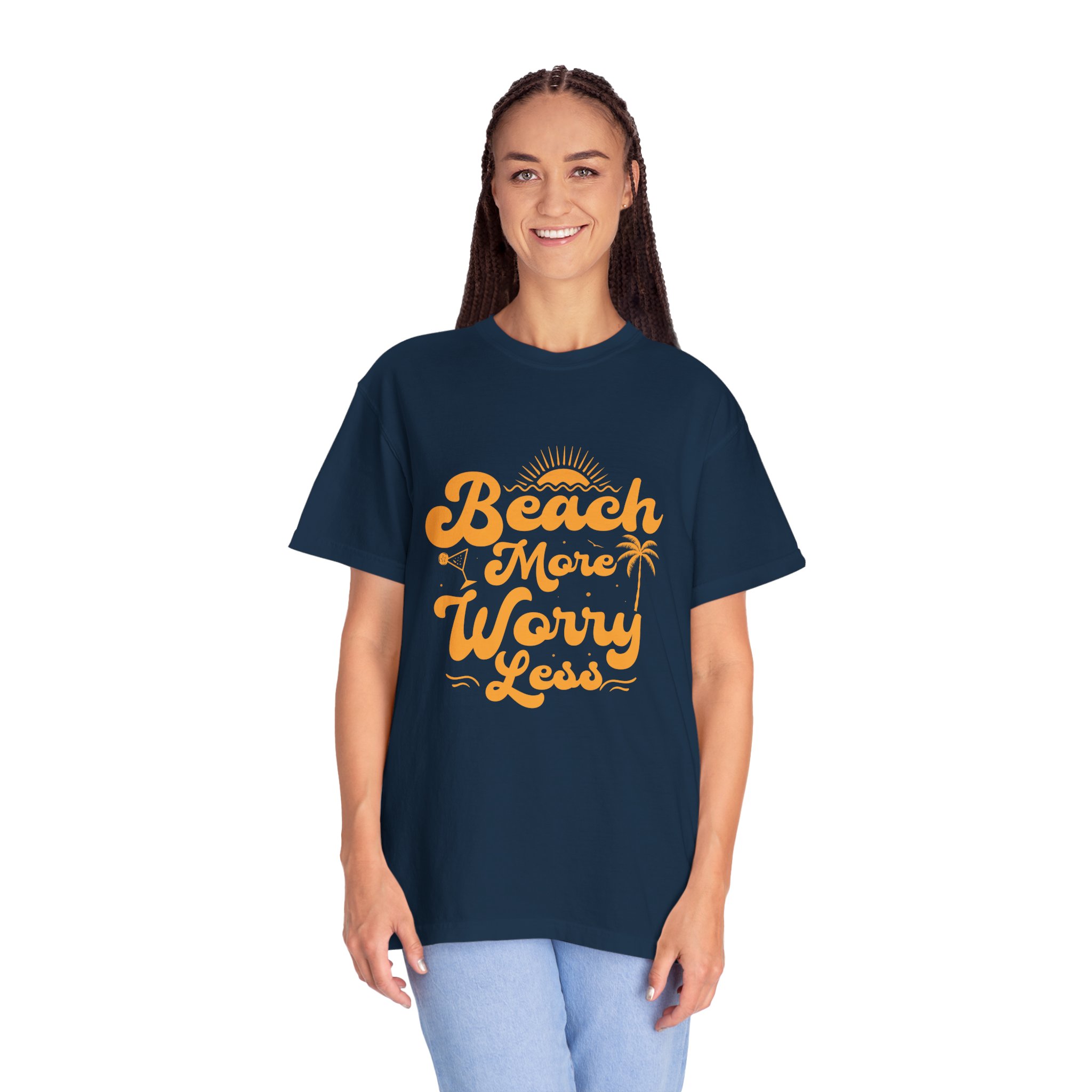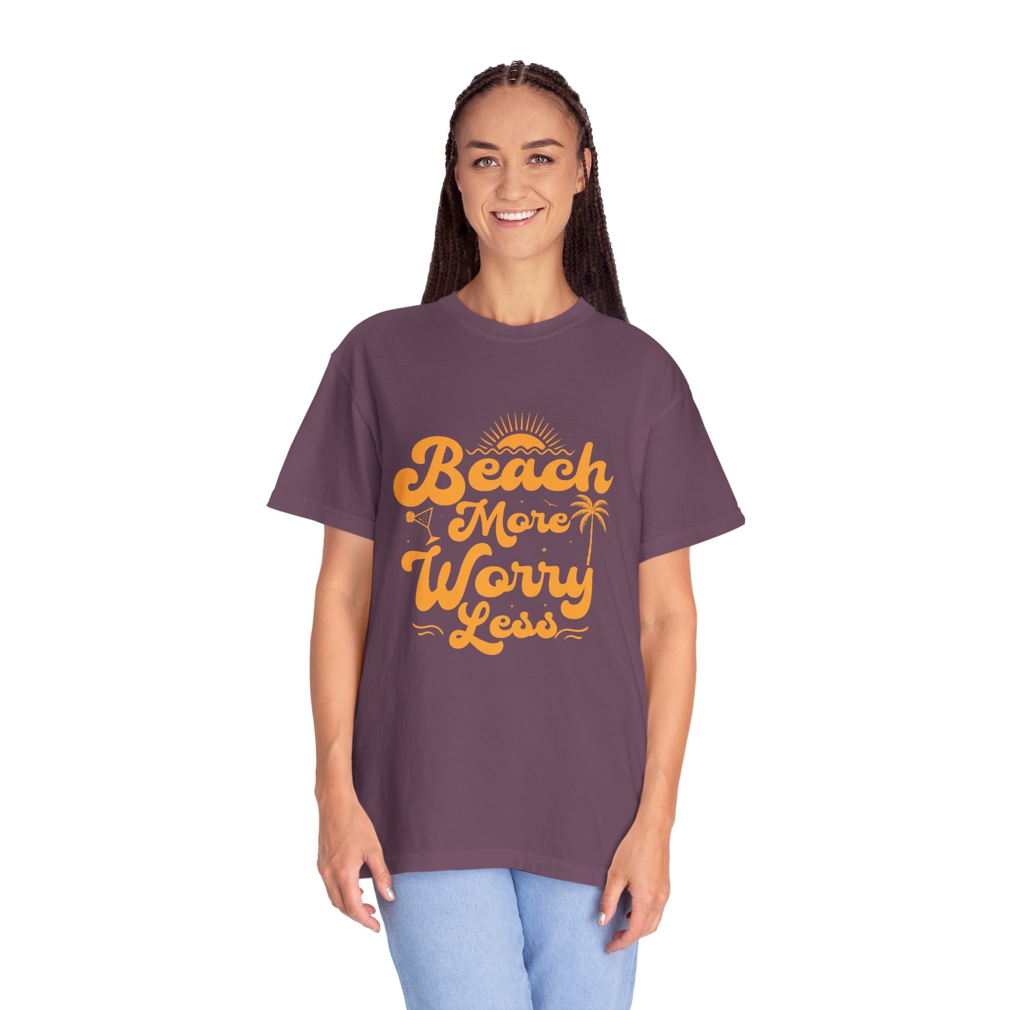 Discover the ultimate way to express your laid-back lifestyle with this stylish unisex garment-dyed T-shirt. Featuring a vibrant “Beach More Worry Less” design, this tee radiates positive vibes and a carefree spirit, making it perfect for beach days or casual outings. Imagine slipping into this comfortable shirt while soaking up the sun or enjoying a barbecue with friends. It’s an ideal choice for anyone who loves the outdoors, relaxation, or simply wants to add a splash of fun to their wardrobe. Perfect for summer parties, vacations, or just lounging at home, this T-shirt is a great gift idea for birthdays, beach lovers, or to celebrate the warm months ahead.