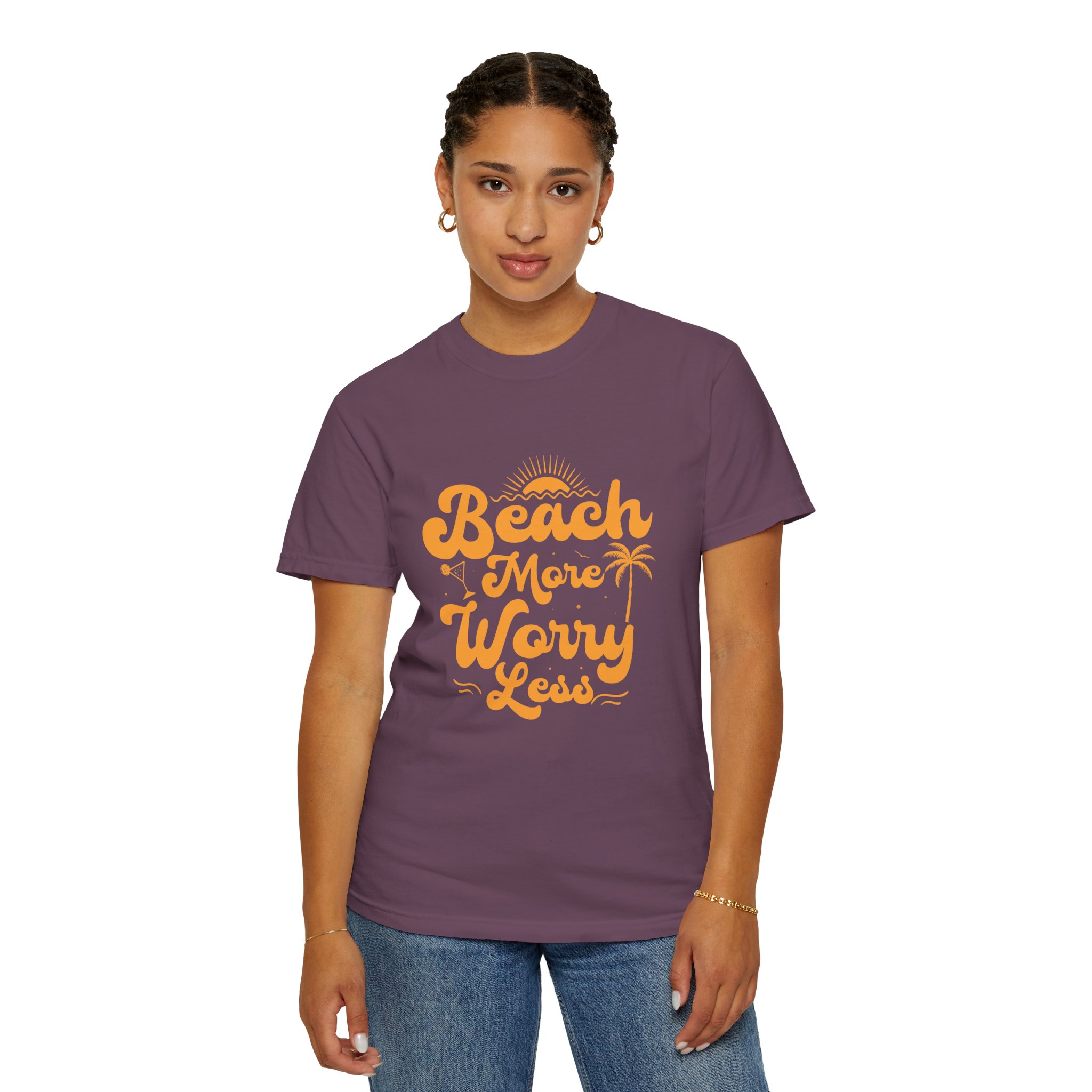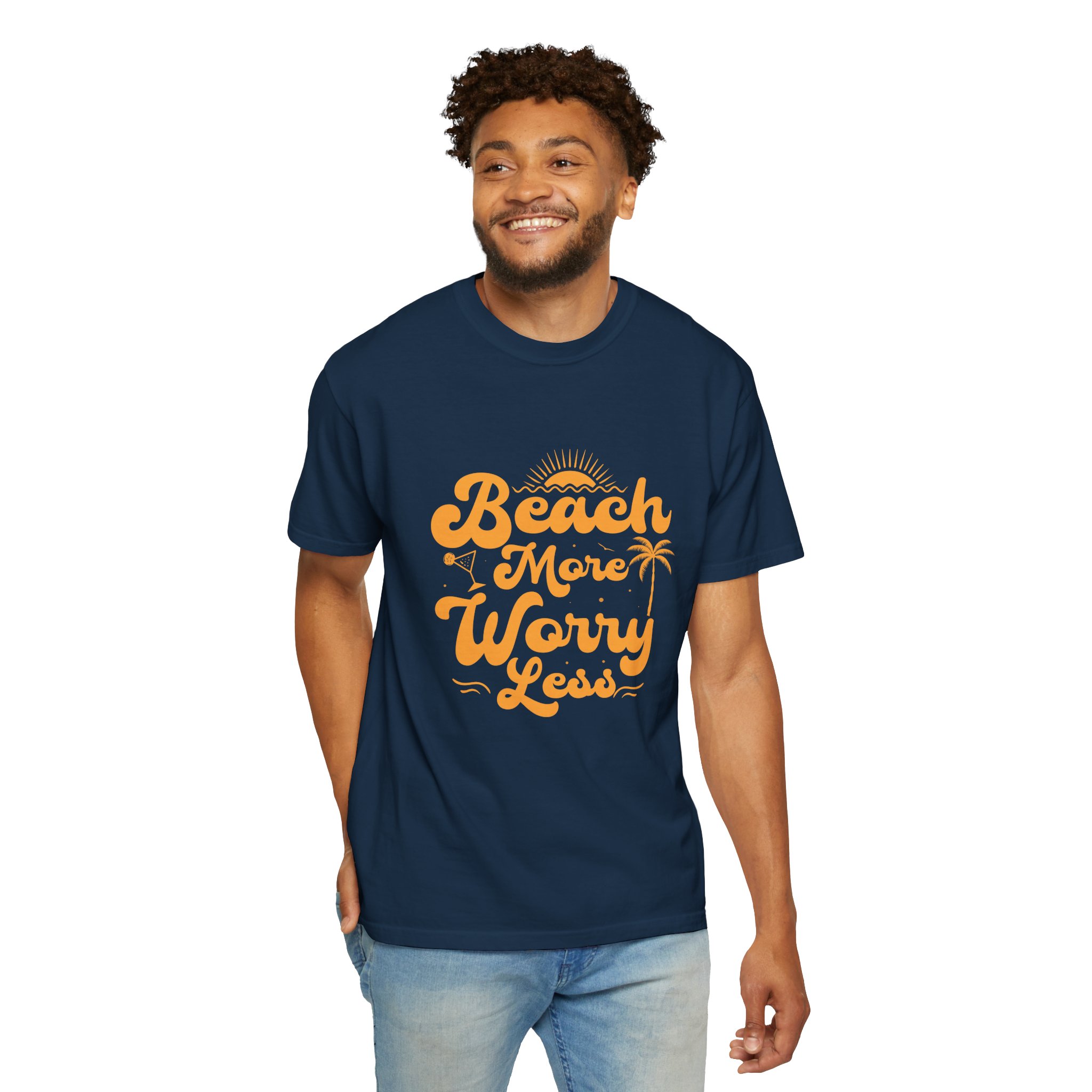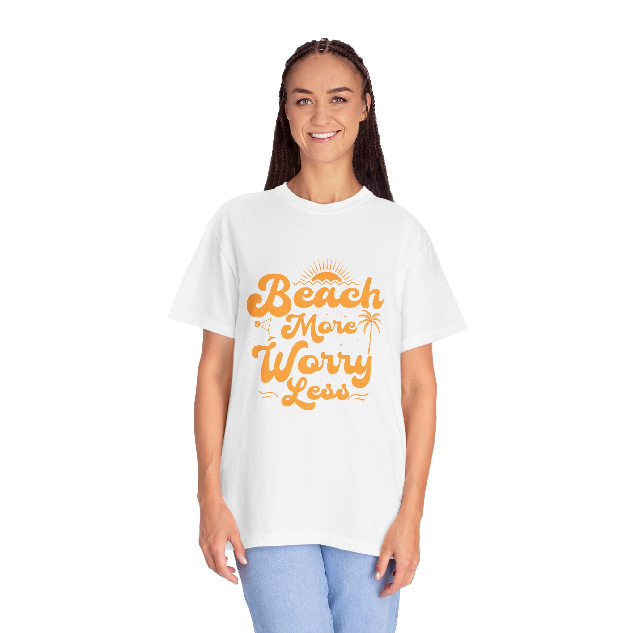 Discover the ultimate way to express your laid-back lifestyle with this stylish unisex garment-dyed T-shirt. Featuring a vibrant “Beach More Worry Less” design, this tee radiates positive vibes and a carefree spirit, making it perfect for beach days or casual outings. Imagine slipping into this comfortable shirt while soaking up the sun or enjoying a barbecue with friends. It’s an ideal choice for anyone who loves the outdoors, relaxation, or simply wants to add a splash of fun to their wardrobe. Perfect for summer parties, vacations, or just lounging at home, this T-shirt is a great gift idea for birthdays, beach lovers, or to celebrate the warm months ahead.