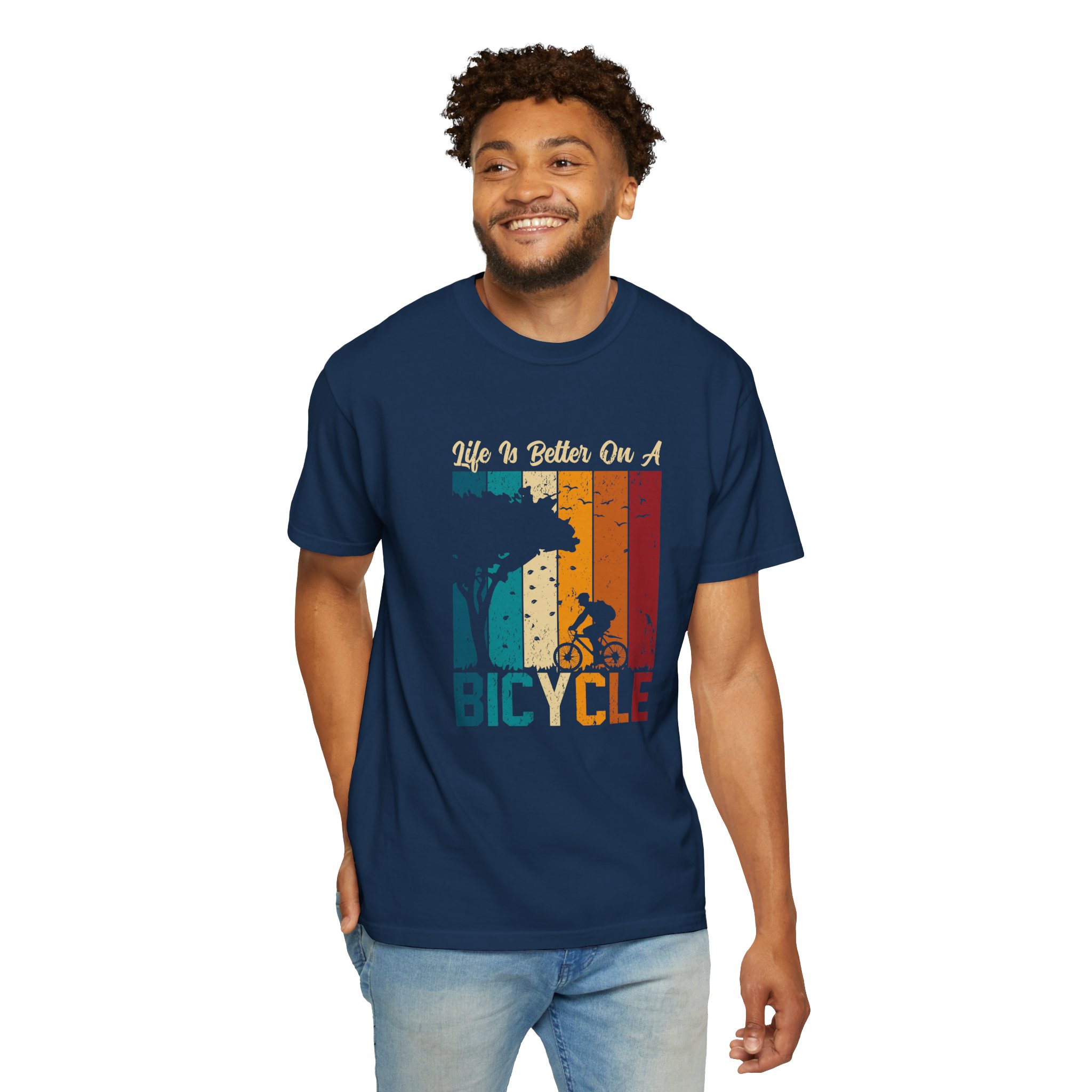 Bicycle Adventure T-Shirt, Unisex Garment-Dyed Tee for Cycling Enthusiasts, Perfect Gift for Riders, Eco-Friendly Apparel, Summer Outing Top.