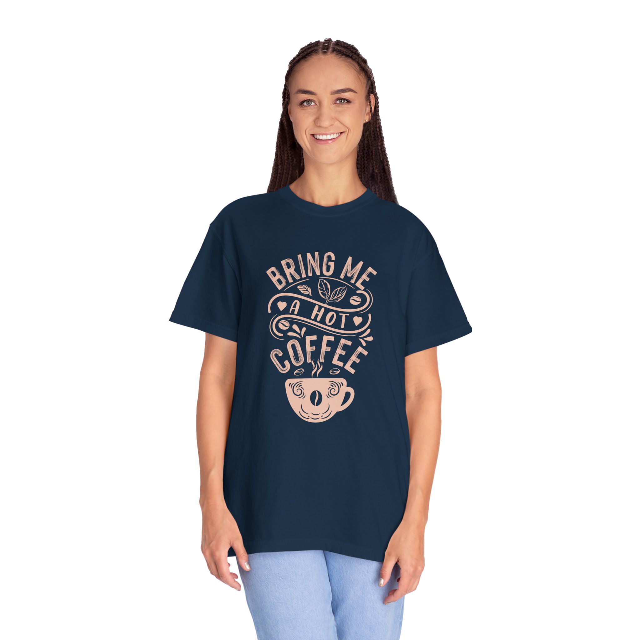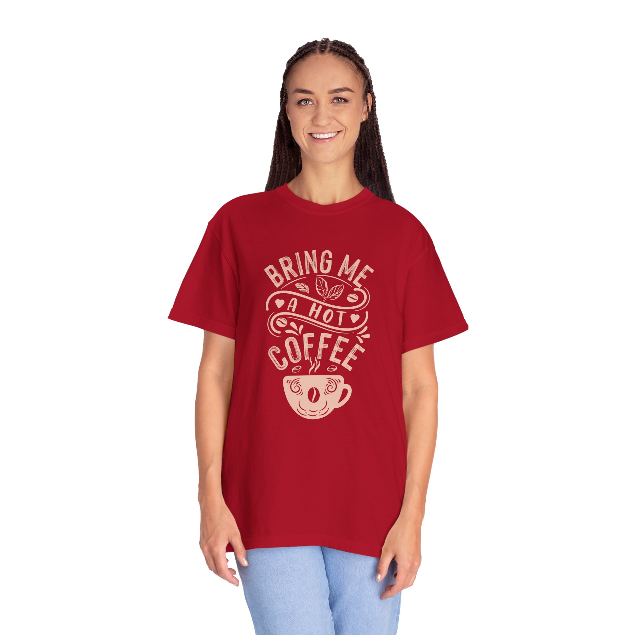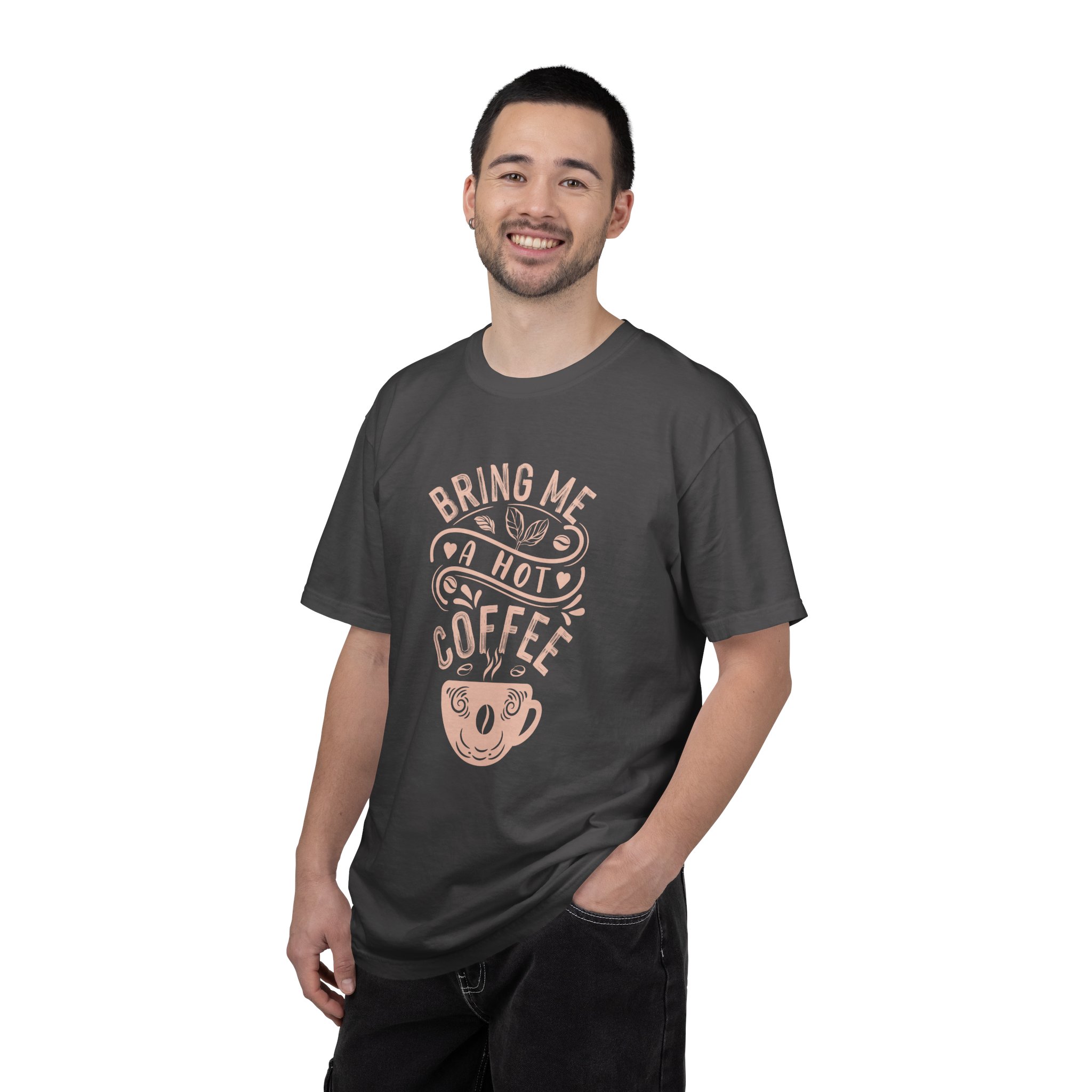 Bring Me a Hot Coffee T-Shirt – Funny Coffee Lover Graphic Tee for Caffeine Lovers & Daily Vibes.