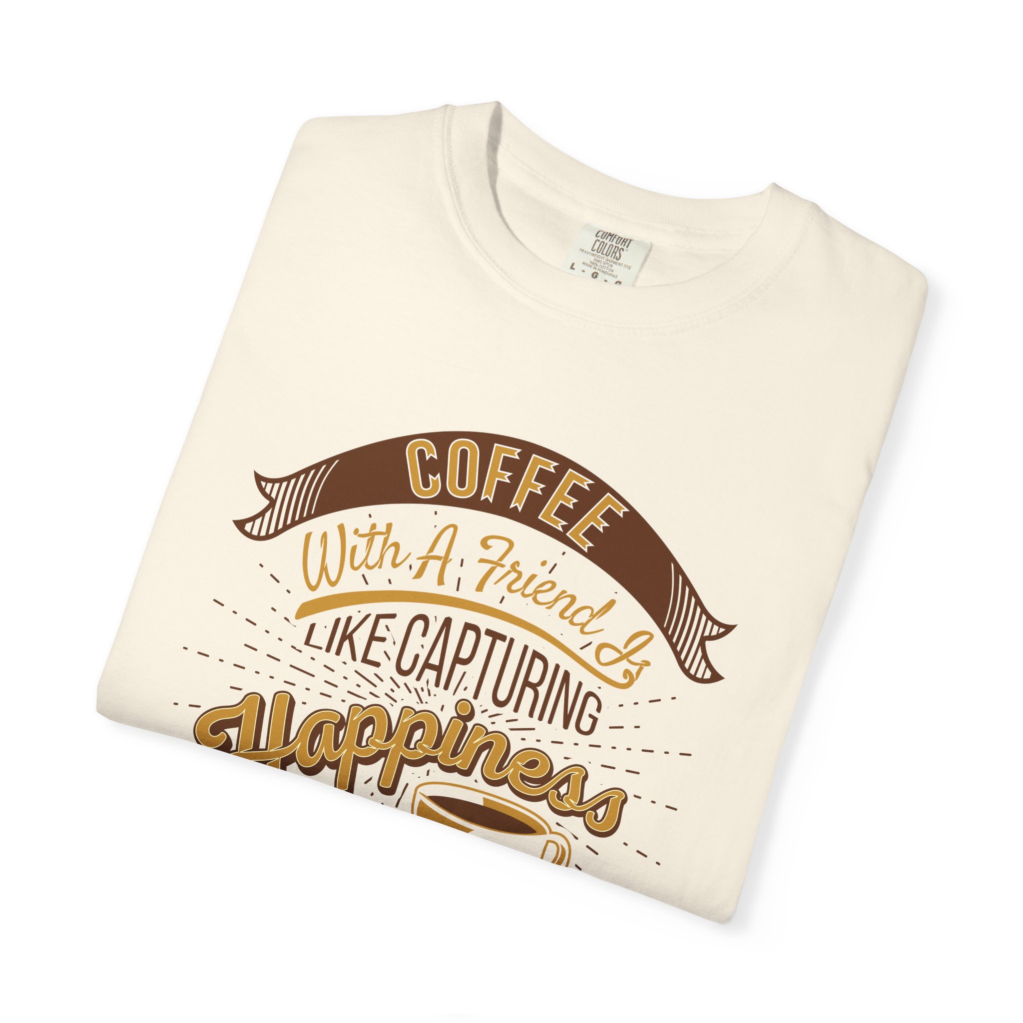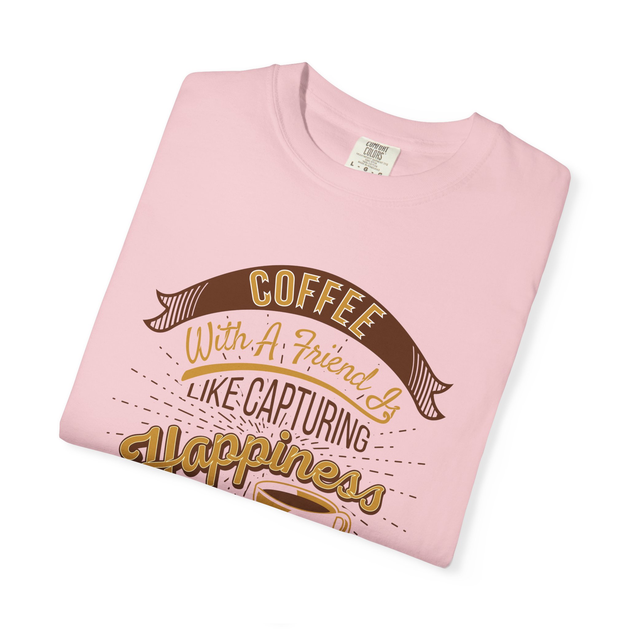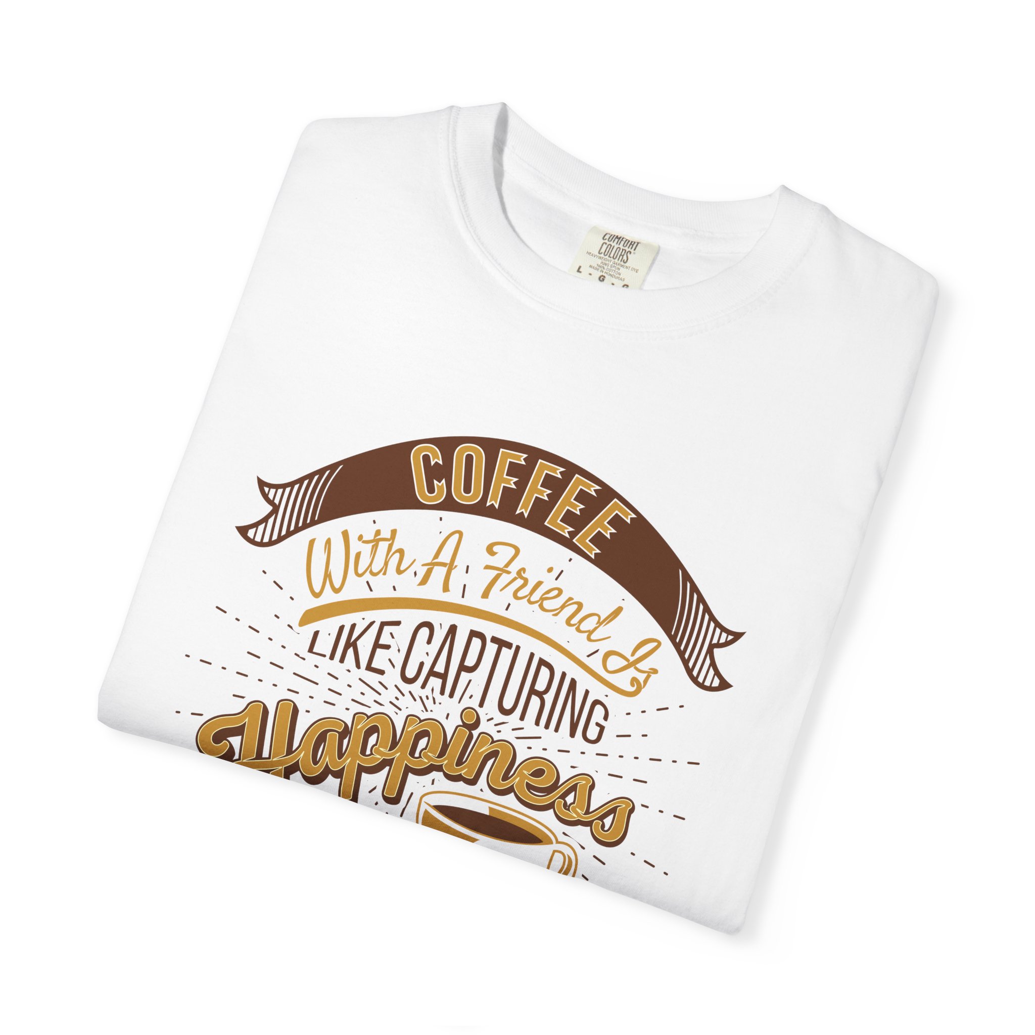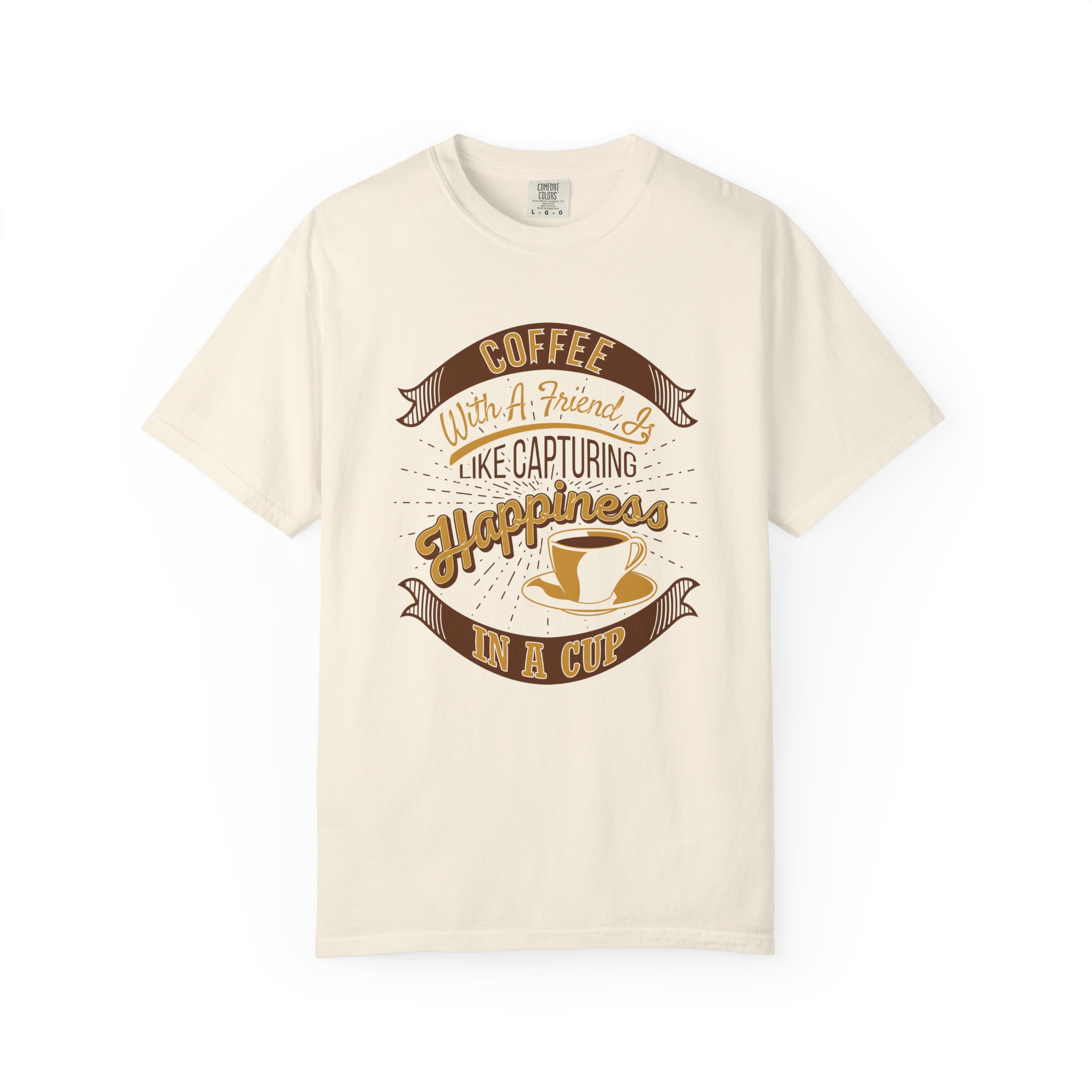 Capturing Happiness In a Cup T-Shirt – Coffee with a Friend Graphic Tee for Warm Moments & Positive Vibes.