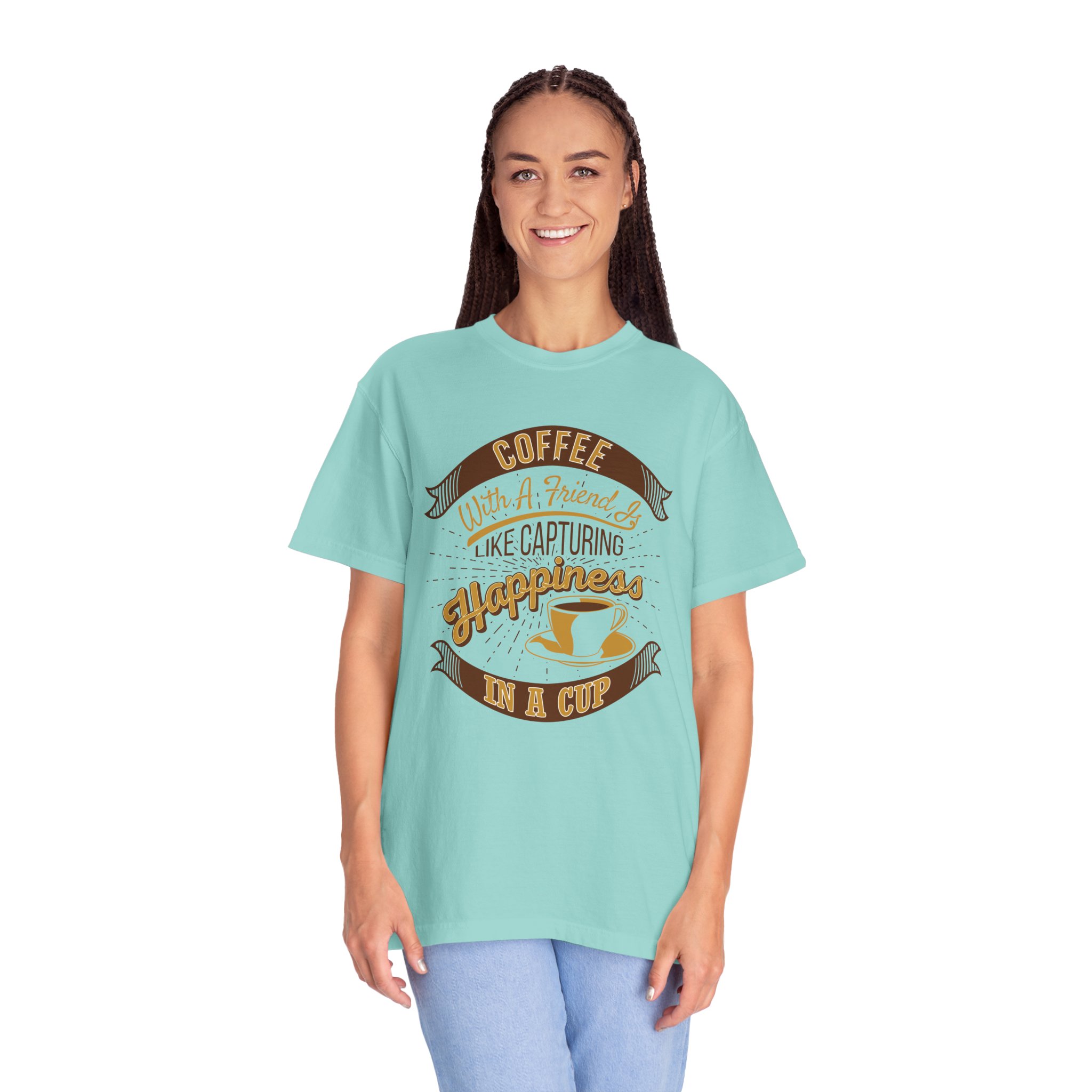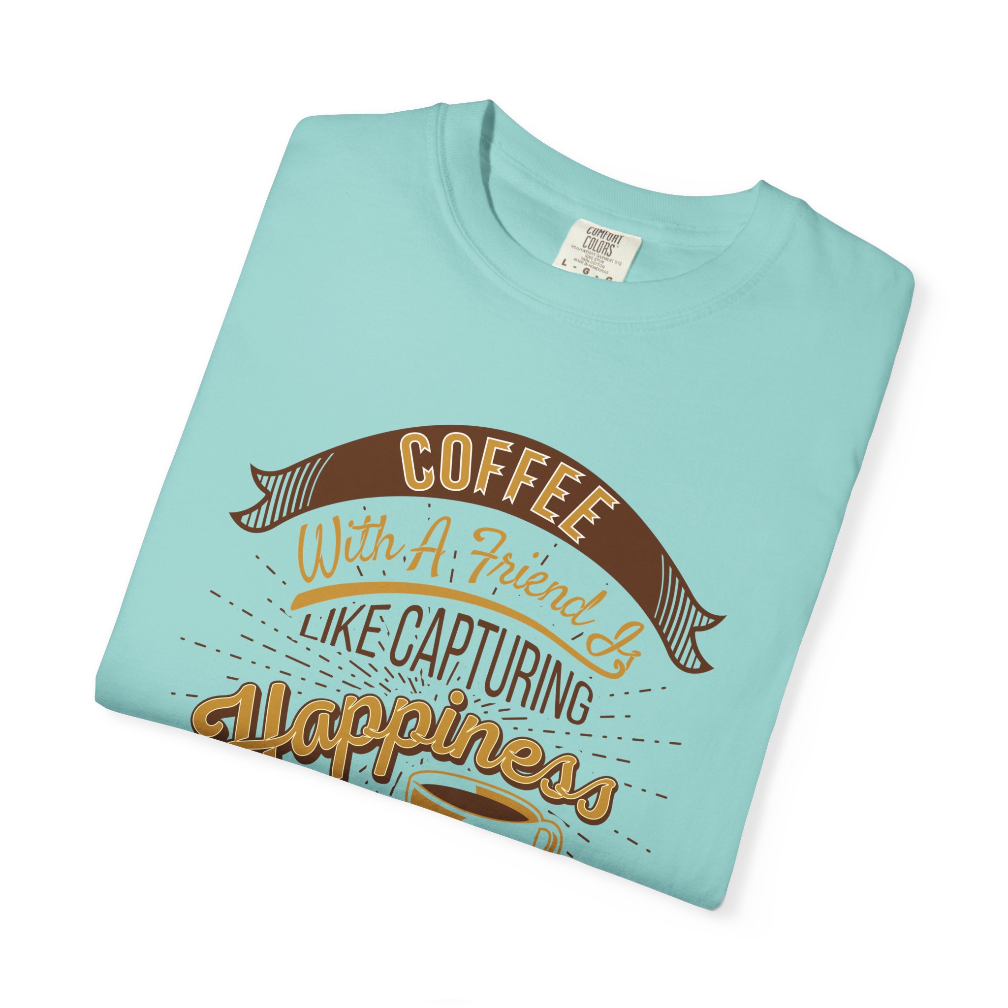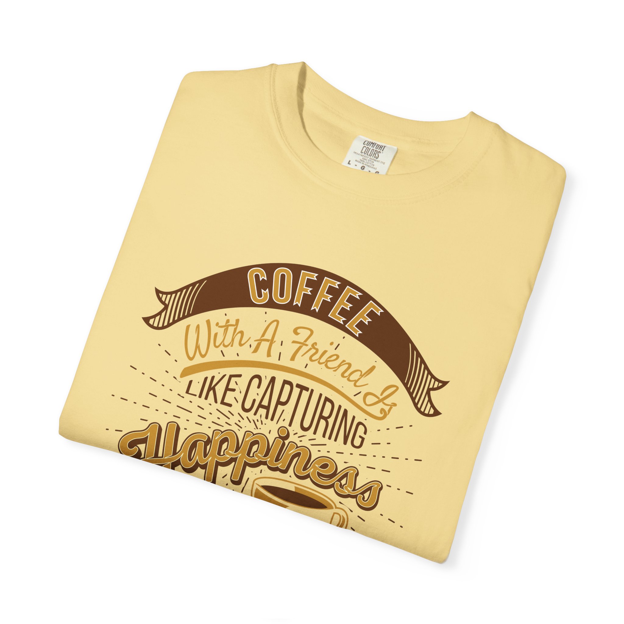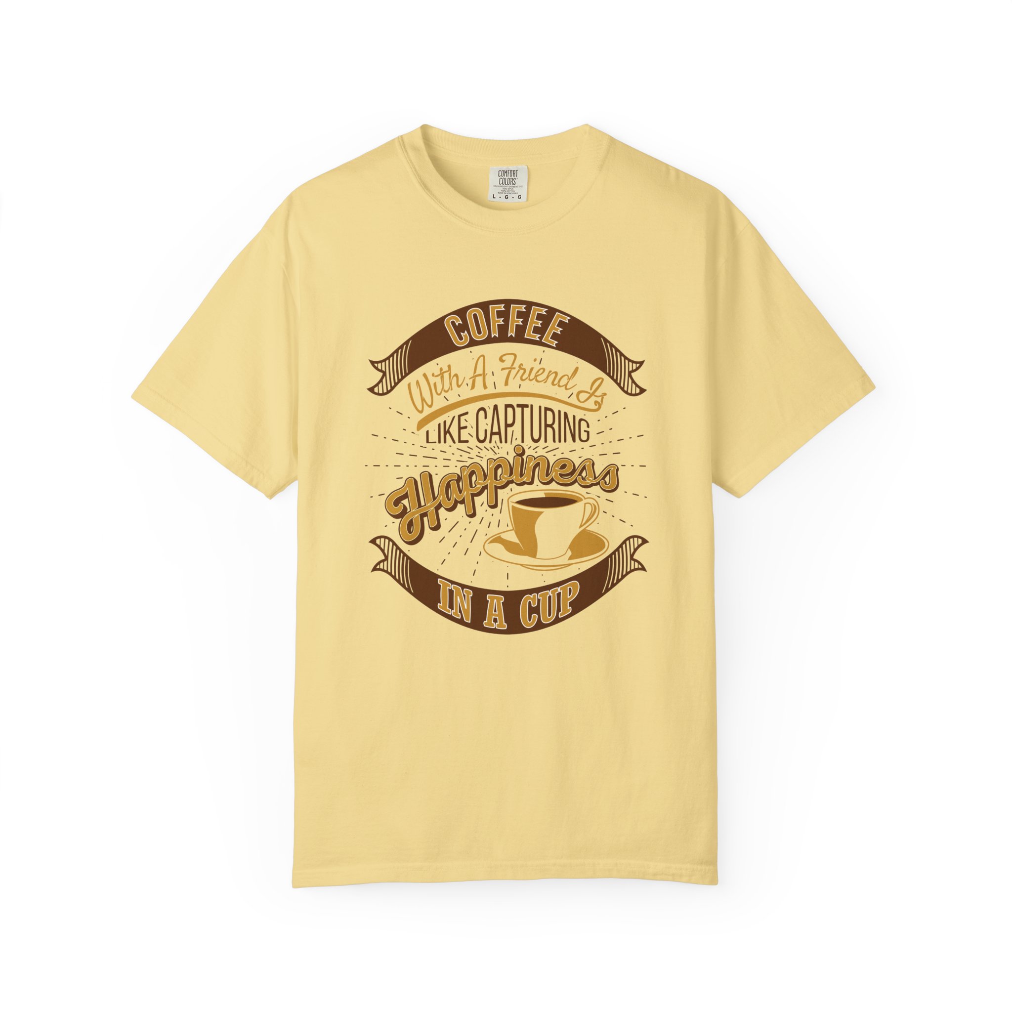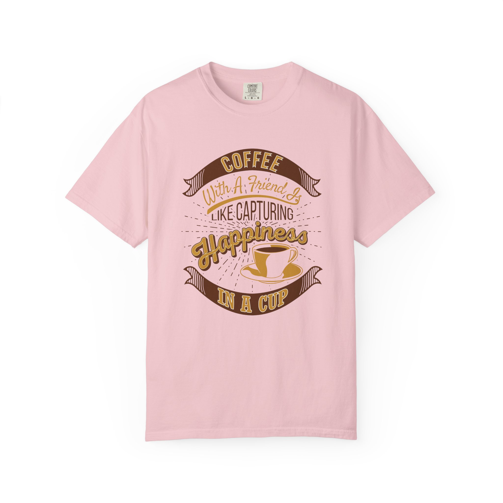 Capturing Happiness In a Cup T-Shirt – Coffee with a Friend Graphic Tee for Warm Moments & Positive Vibes.