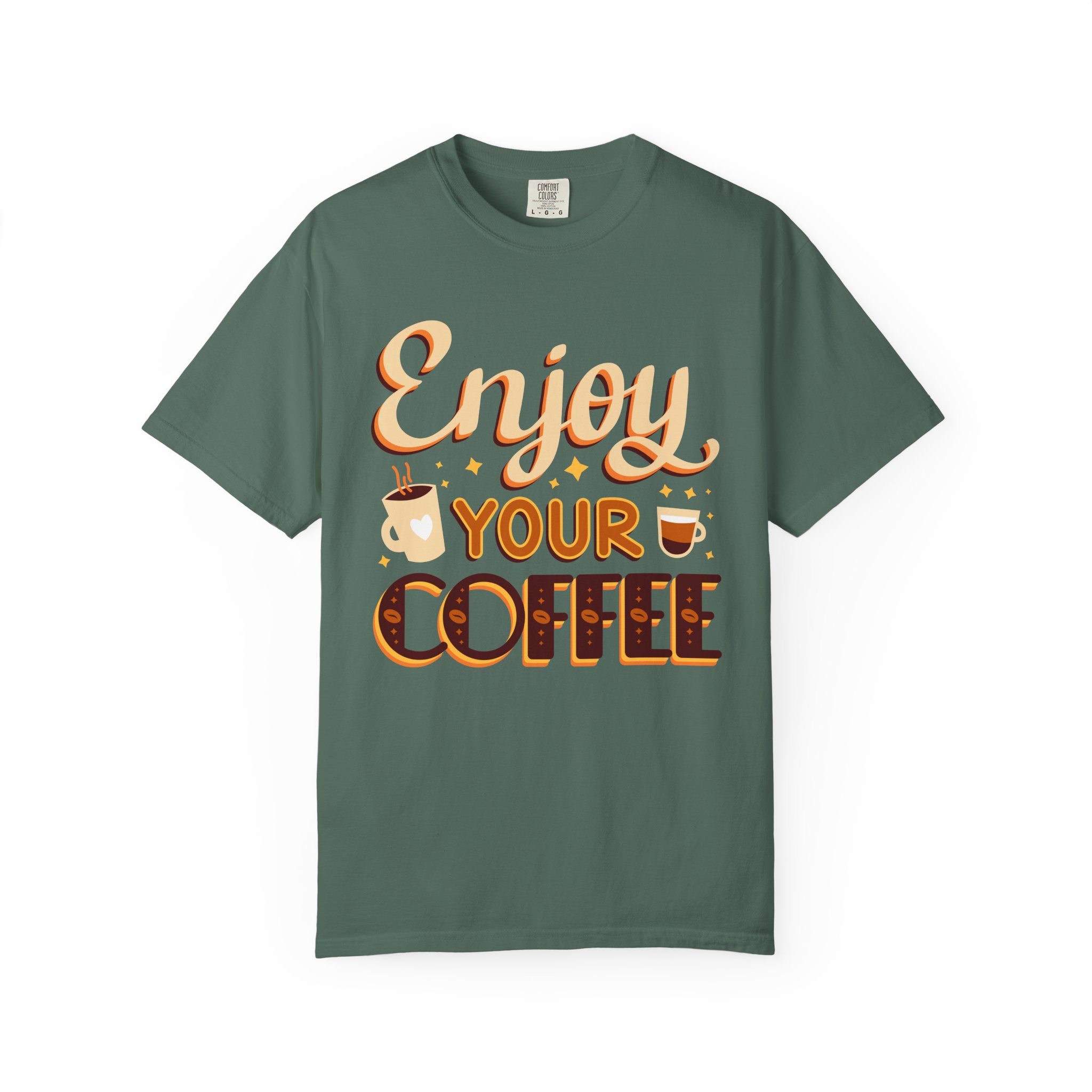 This relaxed, garment-dyed tee celebrates quiet mornings and shared caffeine rituals. Soft, heavyweight cotton and a lived-in dye give it a muted, vintage feel that wears in — not out. A warm, coffee-inspired graphic on the chest reads like a note from a friend, inviting slow sips, easy conversation, and the small joy of a cup. It sits comfortably through errands, café dates, and weekend slowdowns, layering well under a cardigan or wearing solo with well-loved jeans. The subtle texture from post-construction dyeing and sturdy double-needle seams mean it keeps its shape and color through countless washes, becoming more personal with time.
