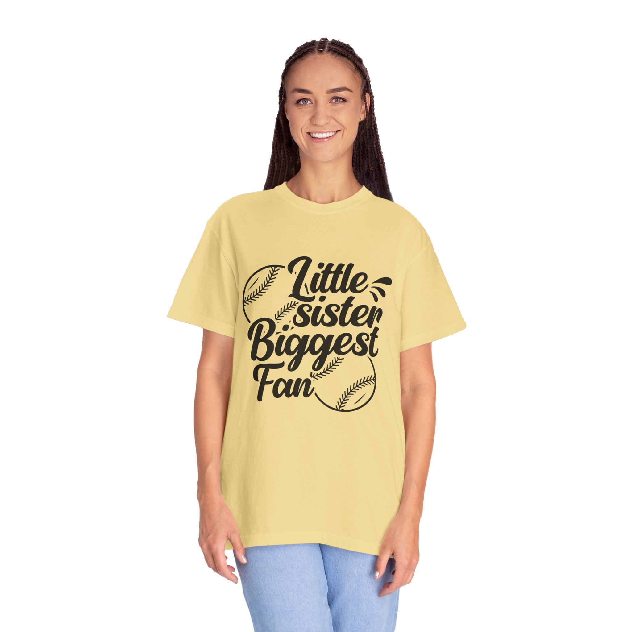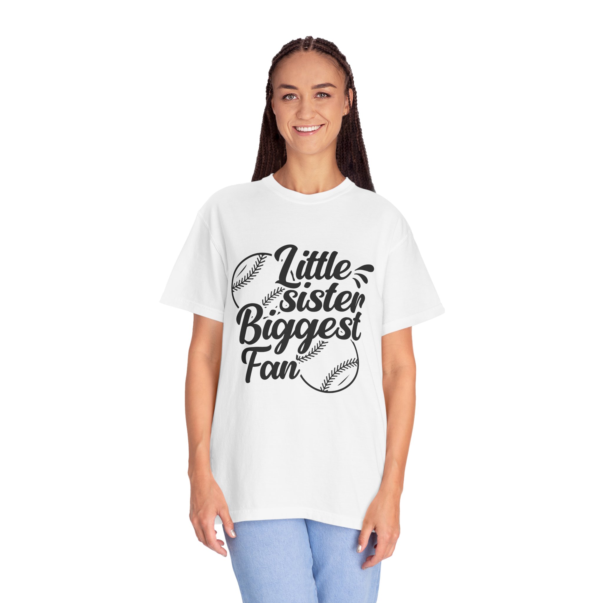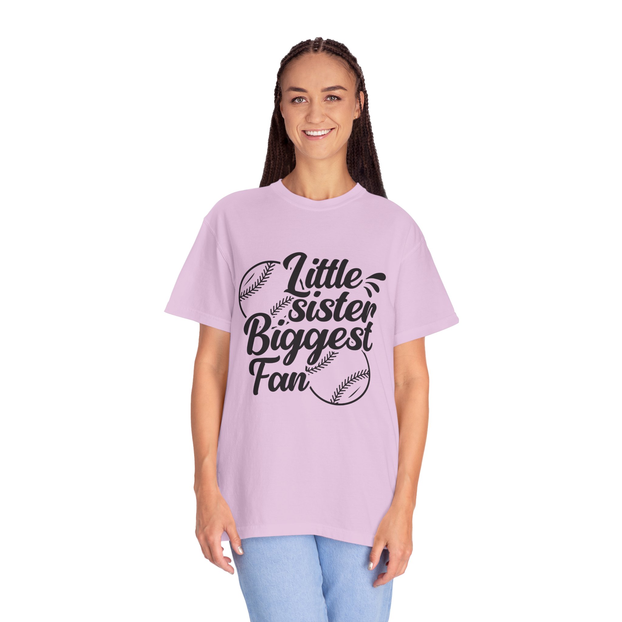 Cheerful Fan T-Shirt for Little Sisters, Baseball Enthusiast Gift, Sports Fan Apparel, Unisex Casual Wear, Soft Cotton Tee.