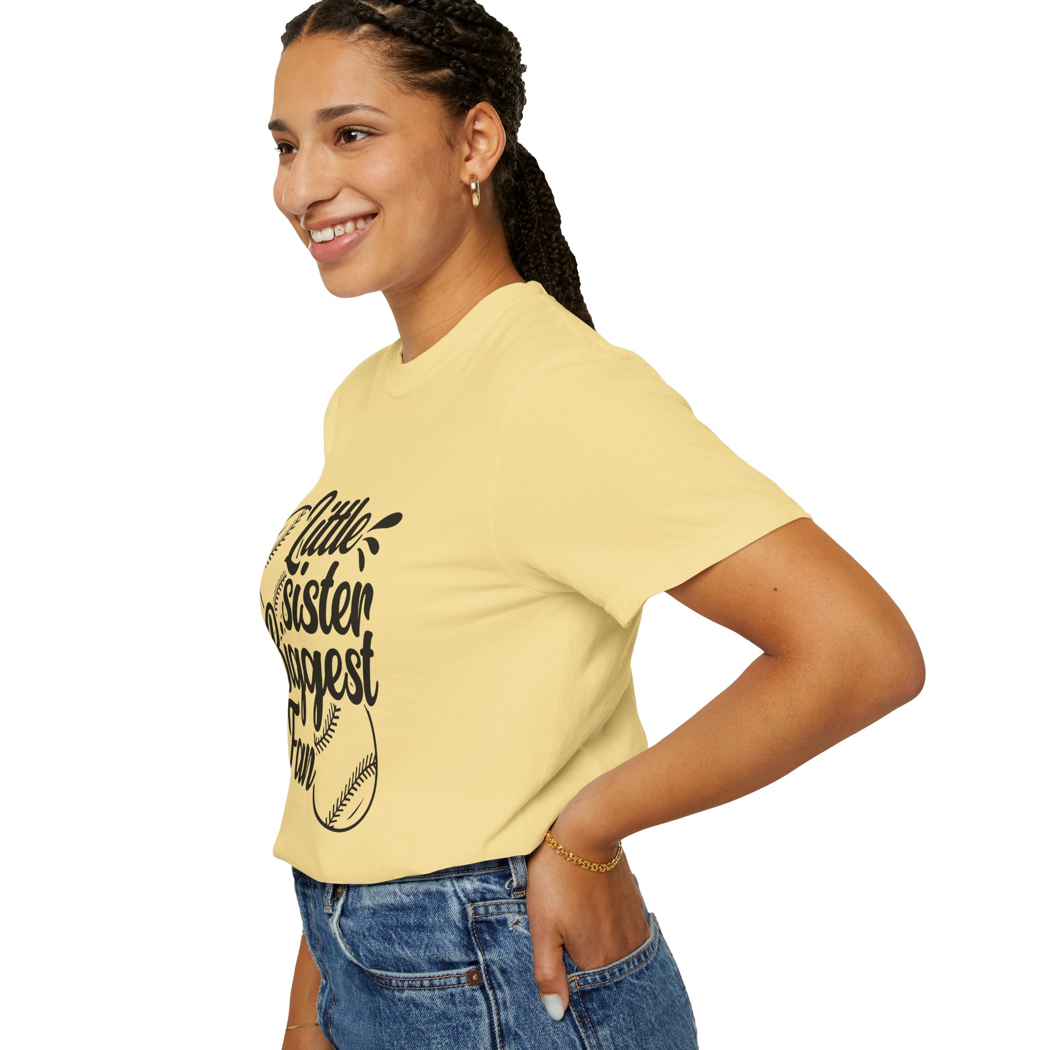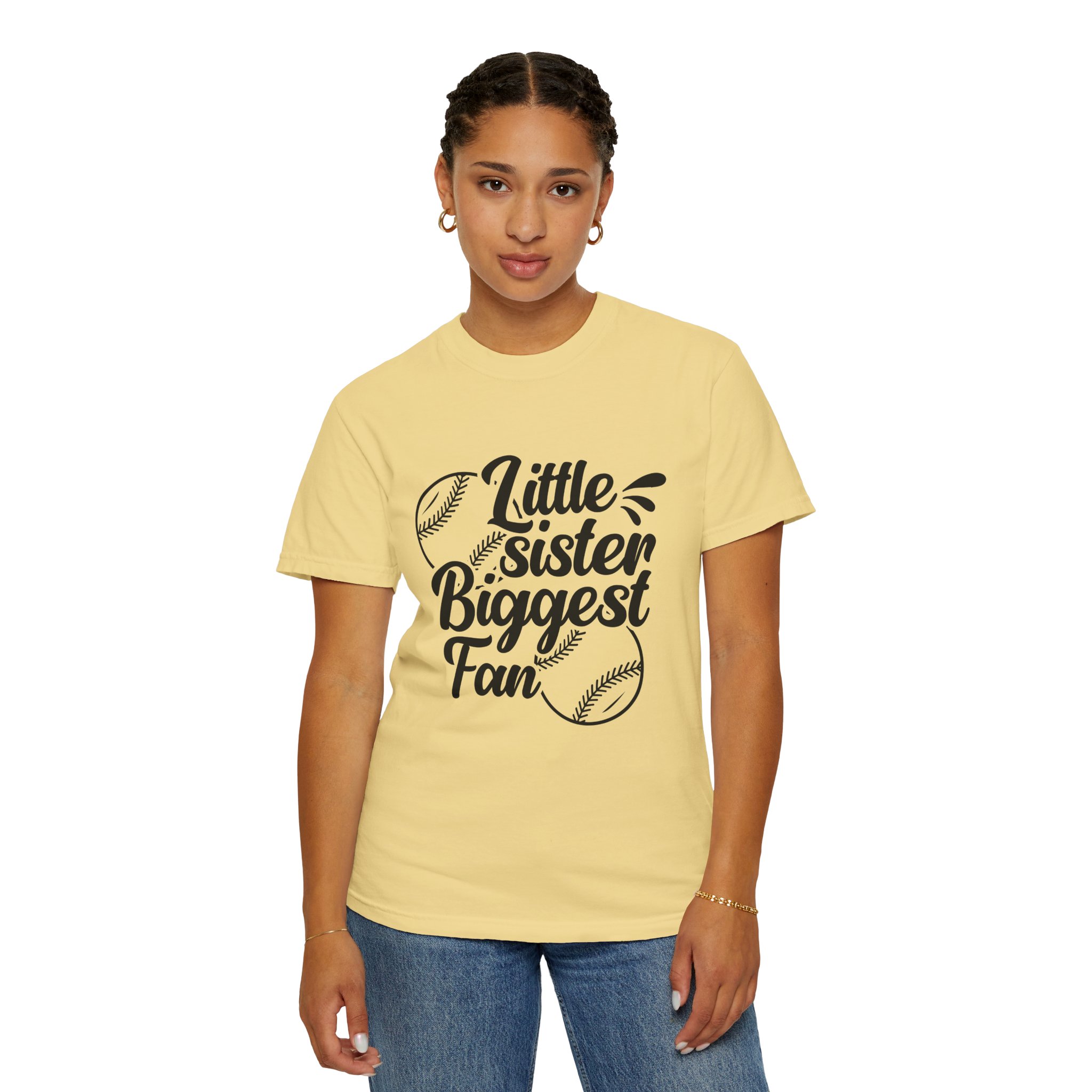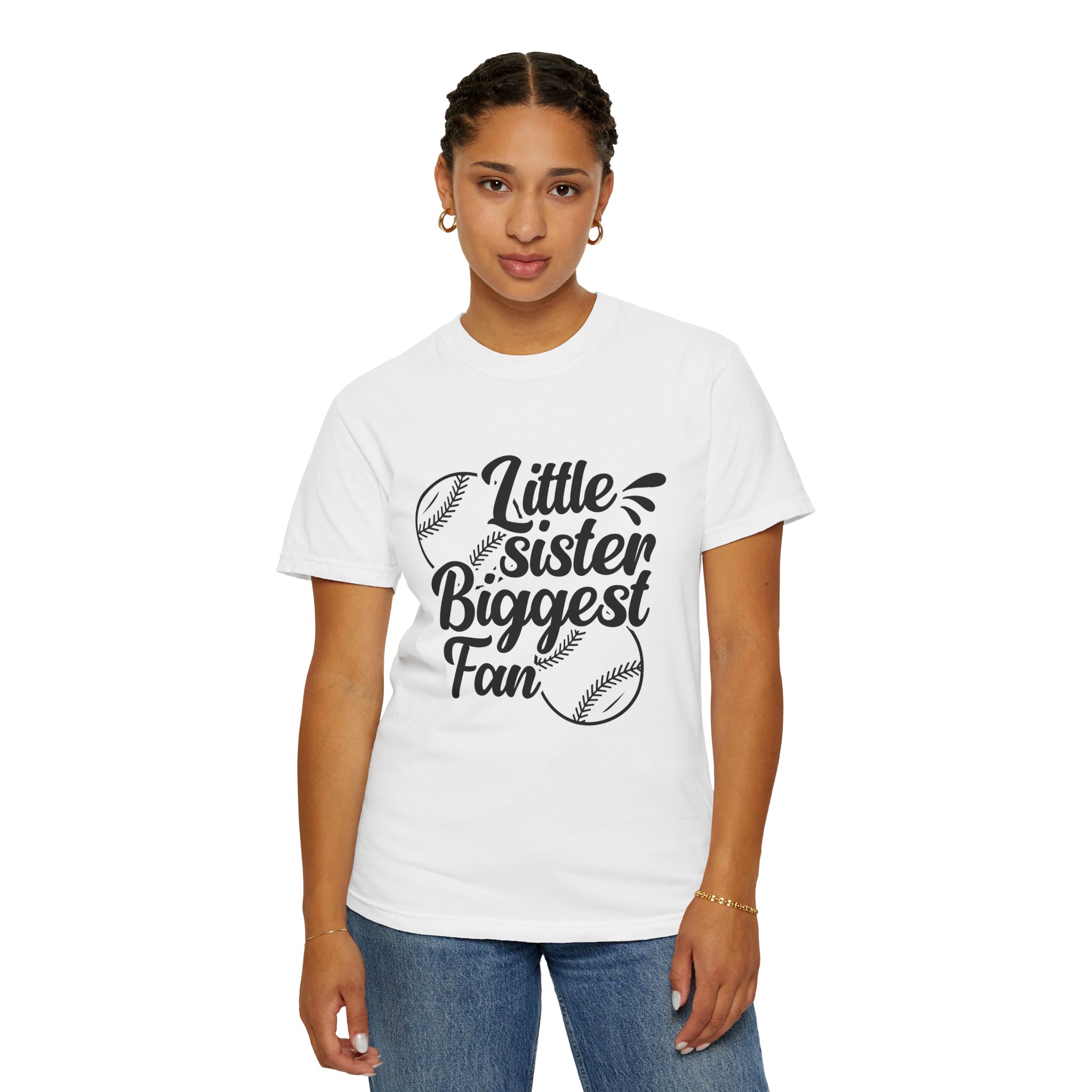 Cheerful Fan T-Shirt for Little Sisters, Baseball Enthusiast Gift, Sports Fan Apparel, Unisex Casual Wear, Soft Cotton Tee.