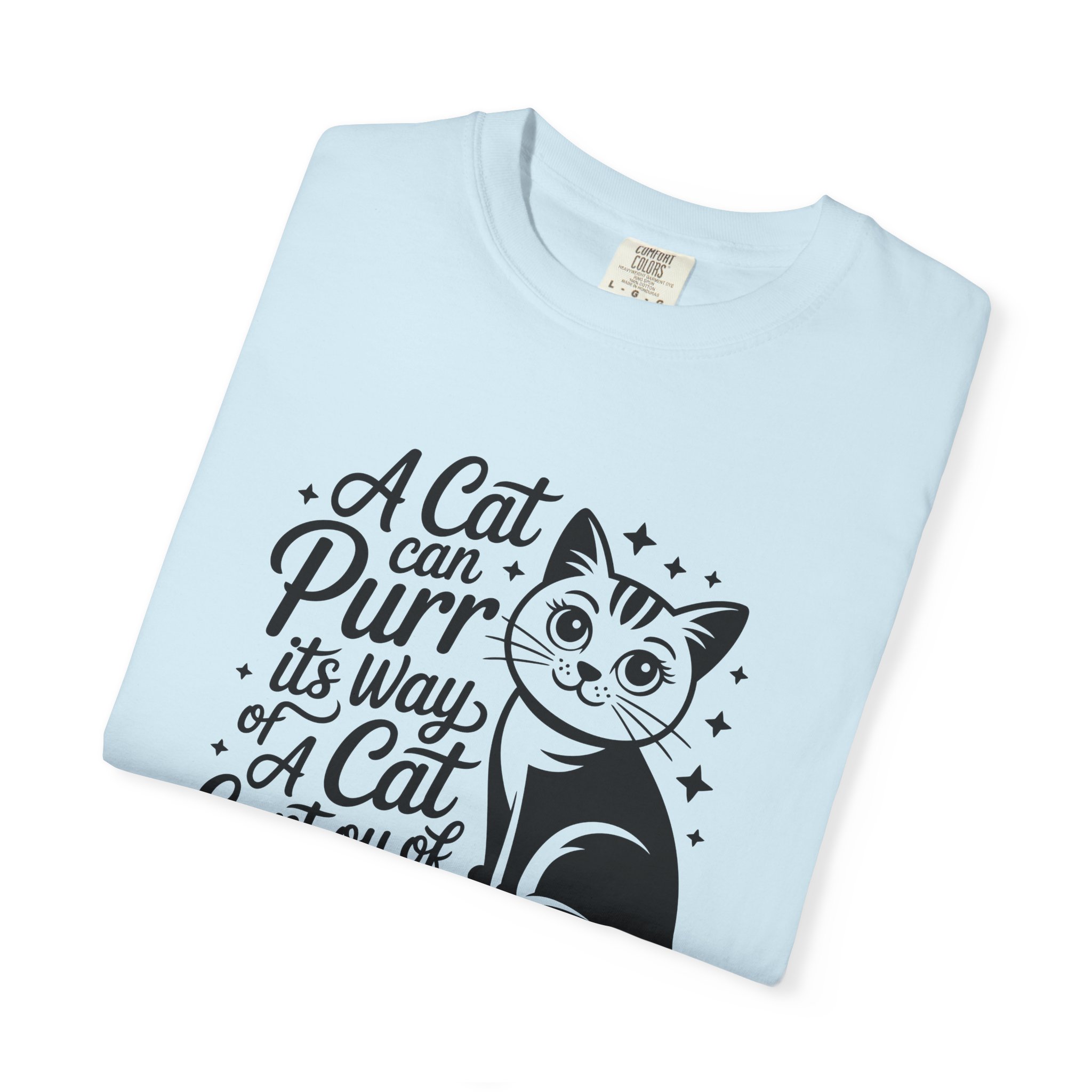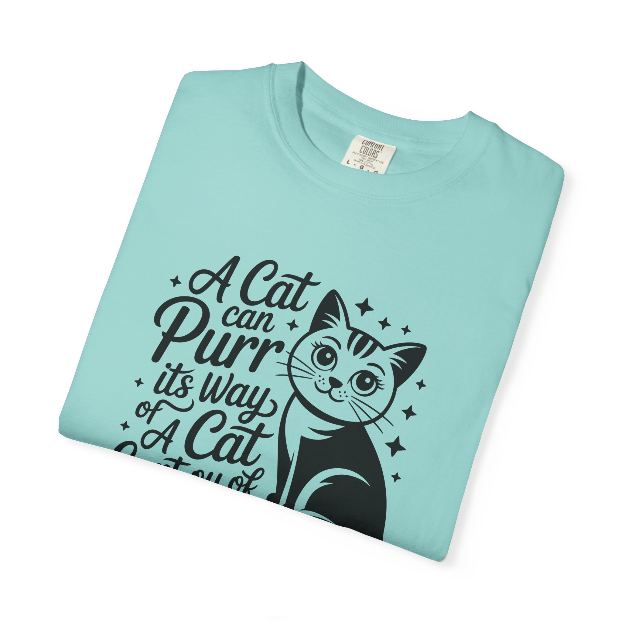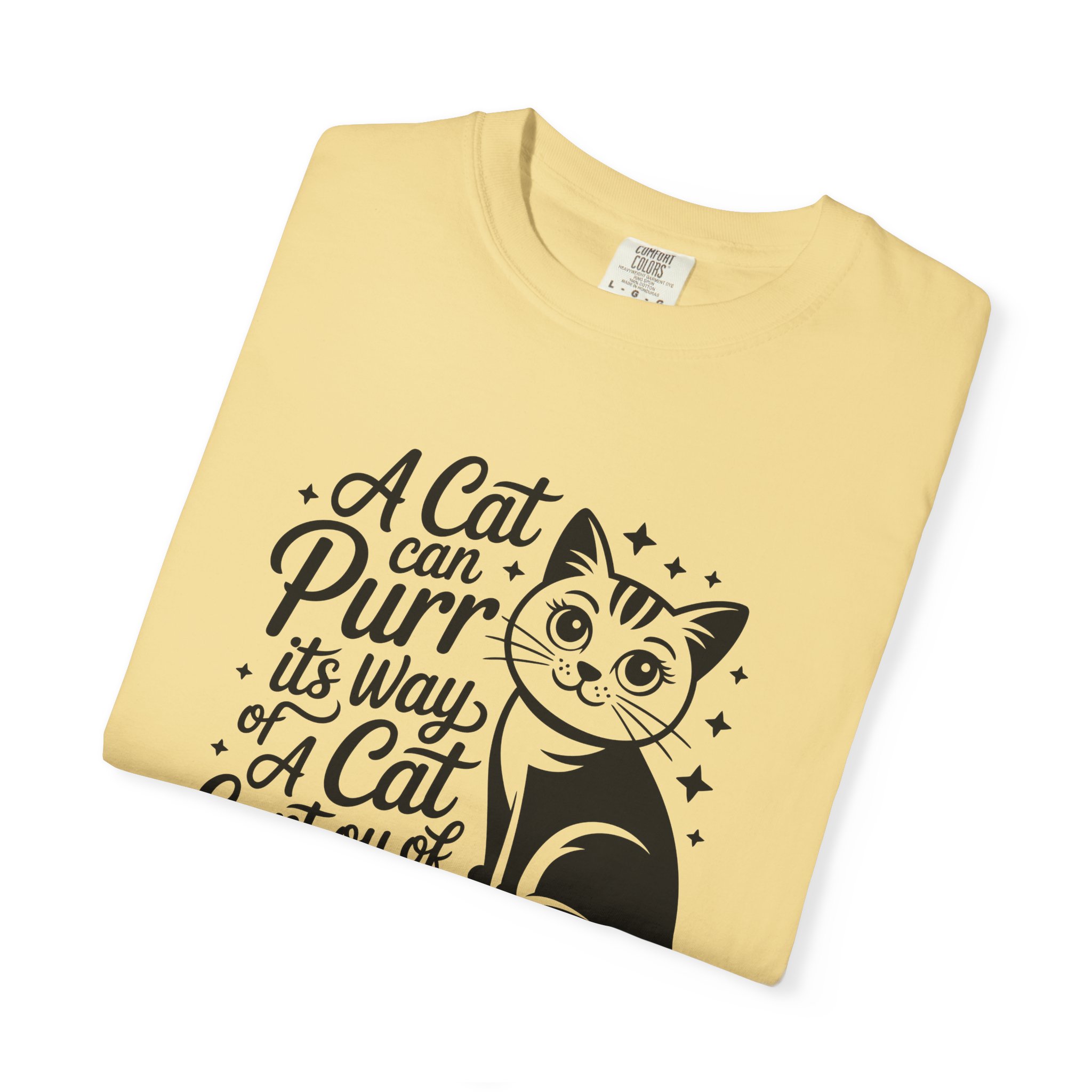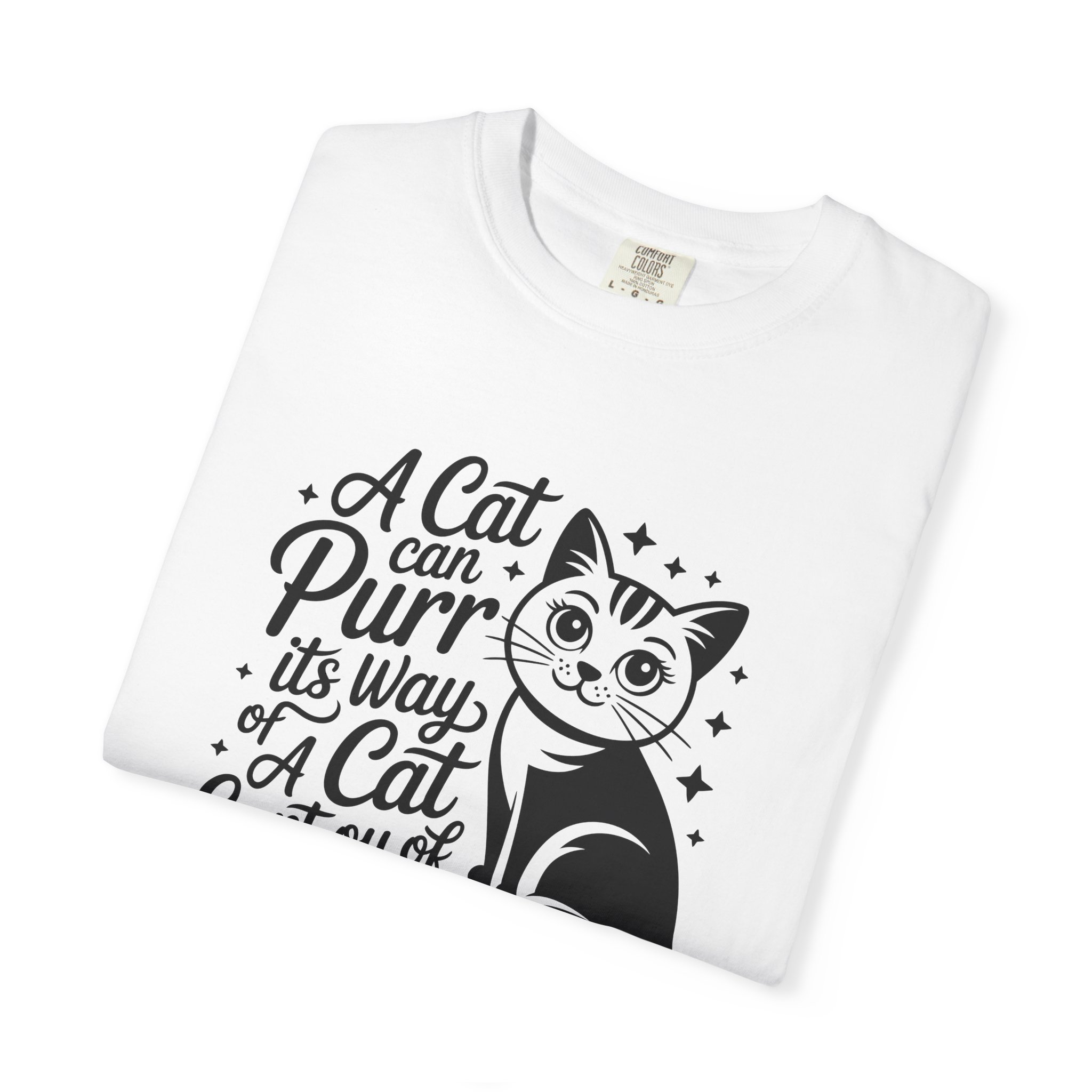 Cat Purr Quote T-Shirt — “A Cat Can Purr Its Way or A Cat Can Purr Its Way of Cur of Anything” for cat lover.