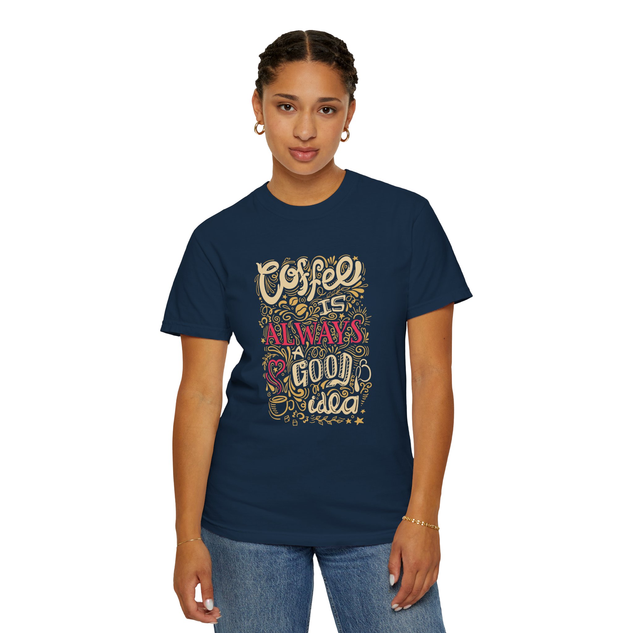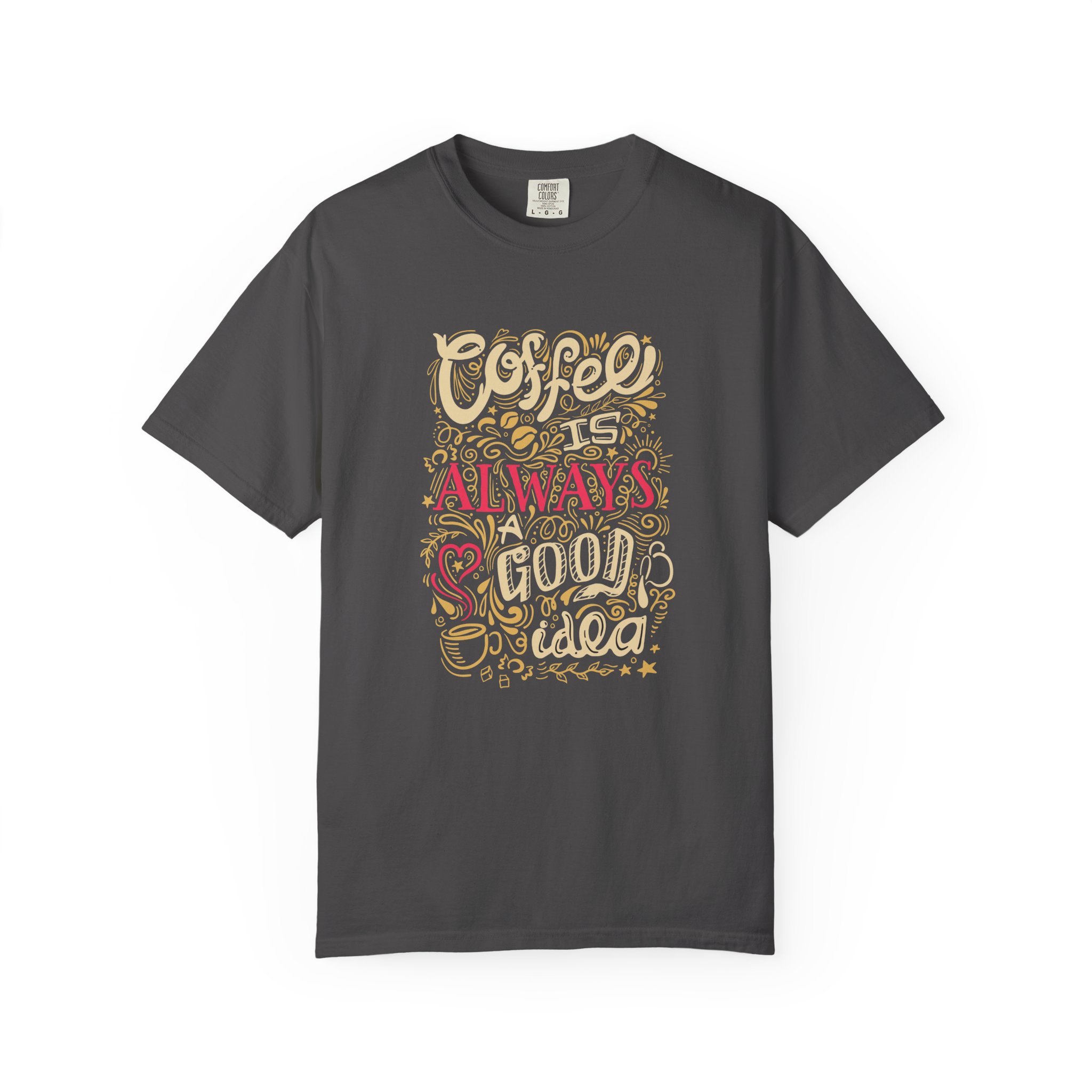 Coffee Is Always a Good Idea T-Shirt – Funny Coffee Lover Graphic Tee for Daily Motivation & Cafe Vibes.