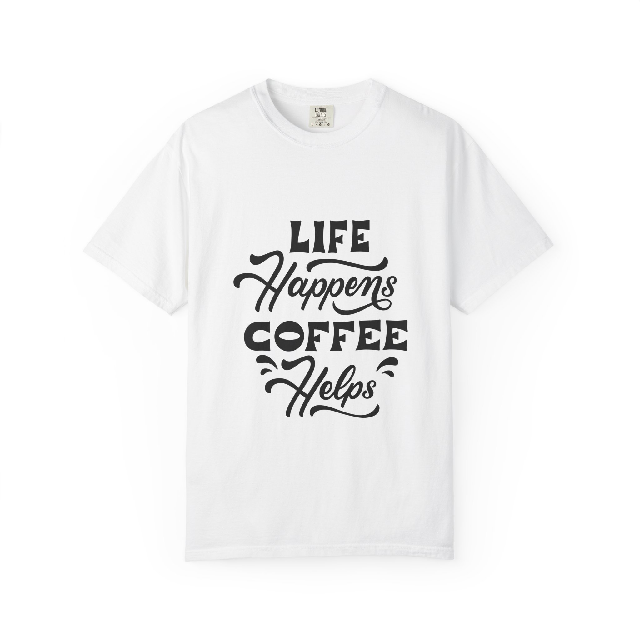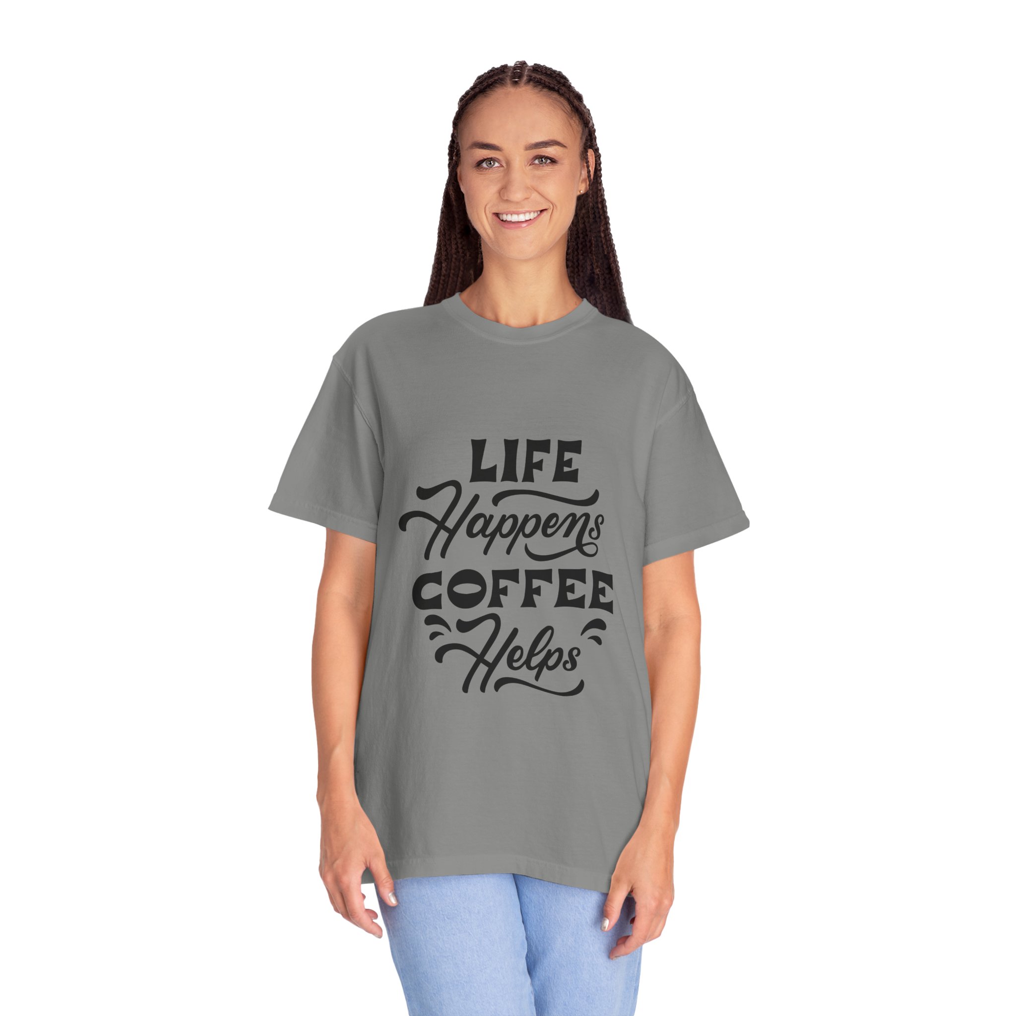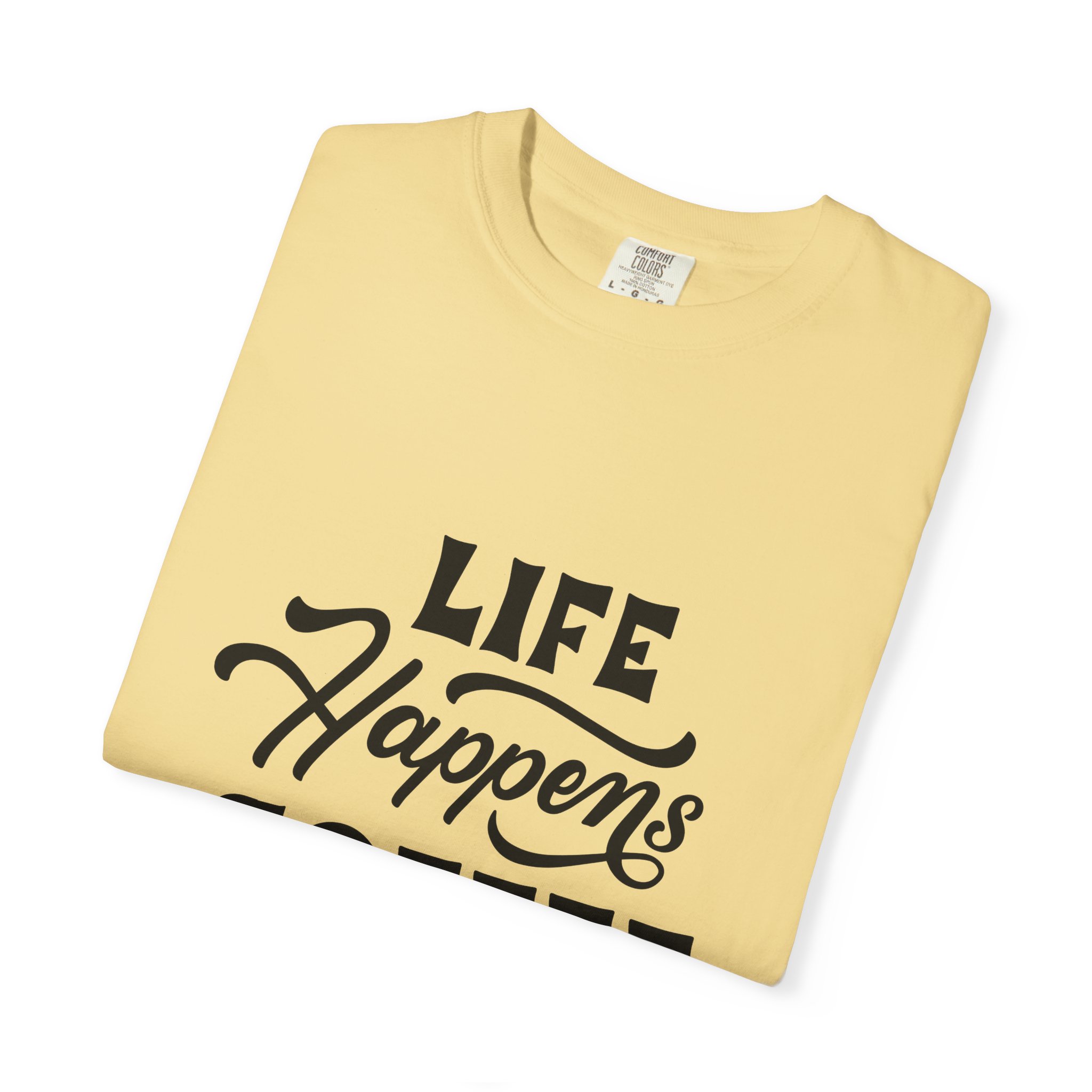 Coffee Lovers Unisex Garment-Dyed T-shirt, Motivational Tee, Life Happens Shirt, Gift for Friends, Casual Wear, Everyday Style