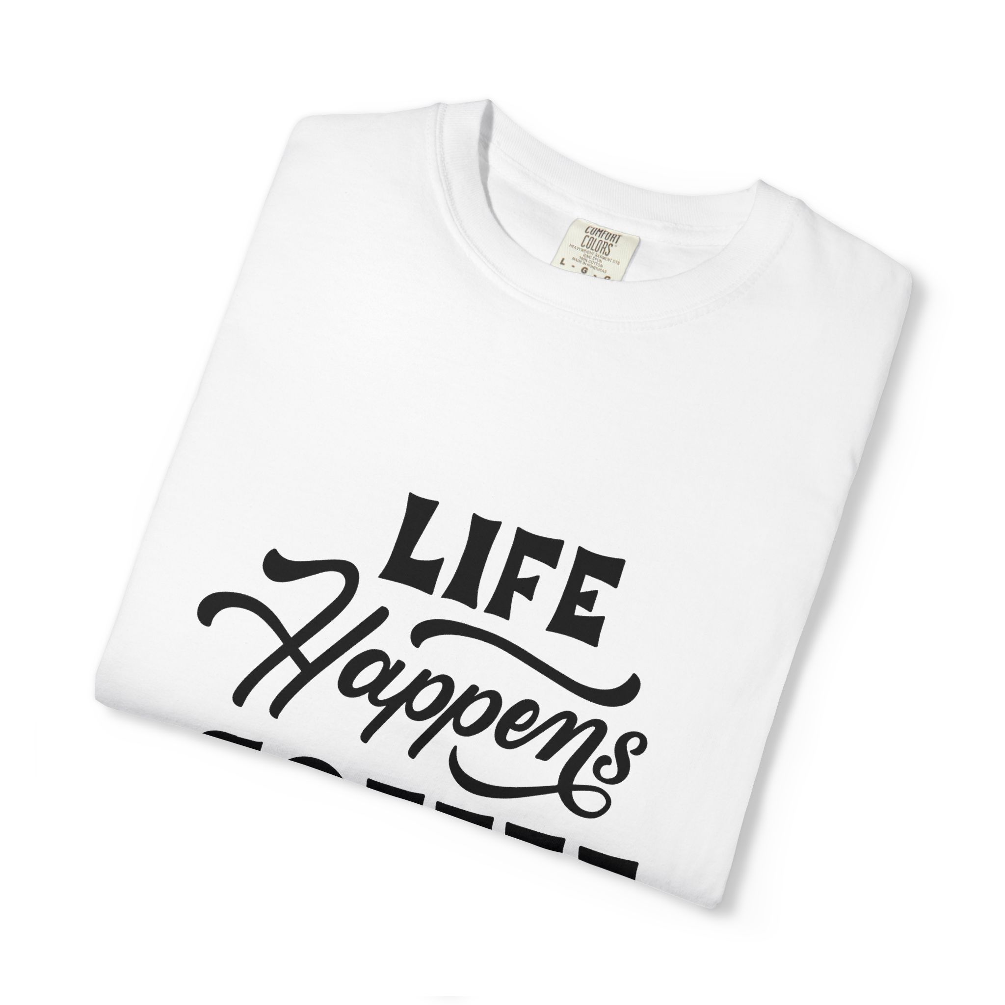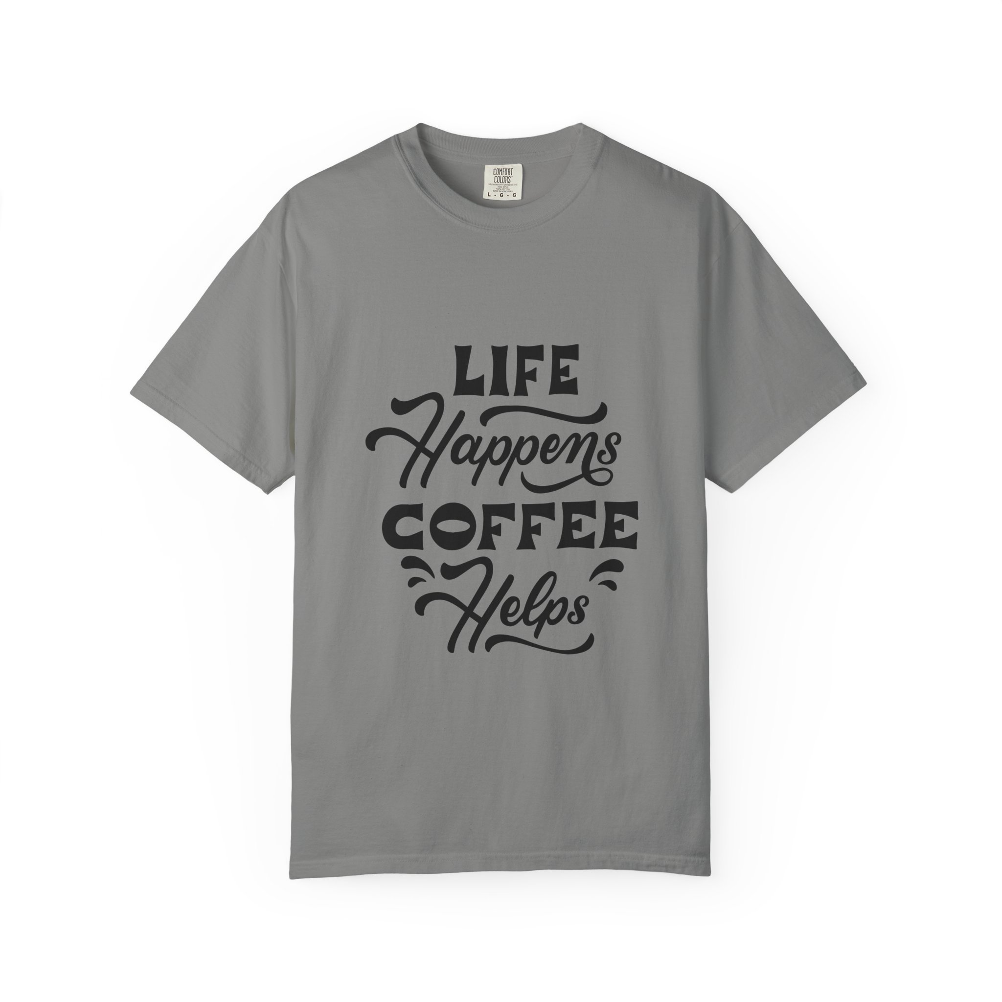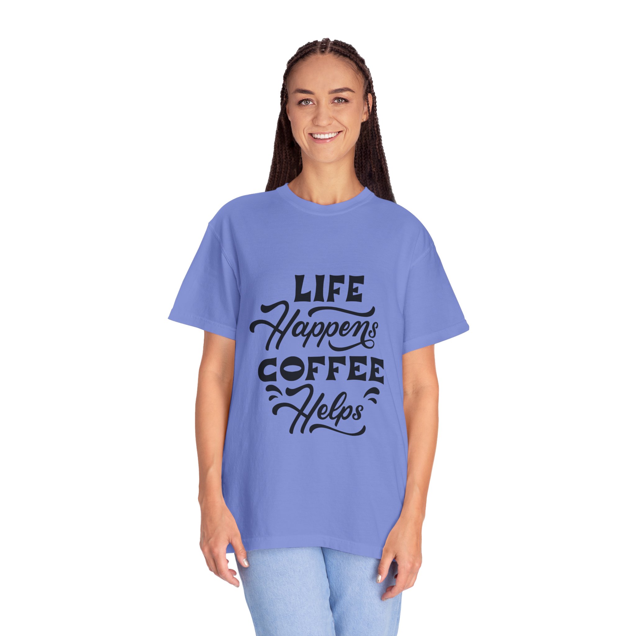 Coffee Lovers Unisex Garment-Dyed T-shirt, Motivational Tee, Life Happens Shirt, Gift for Friends, Casual Wear, Everyday Style