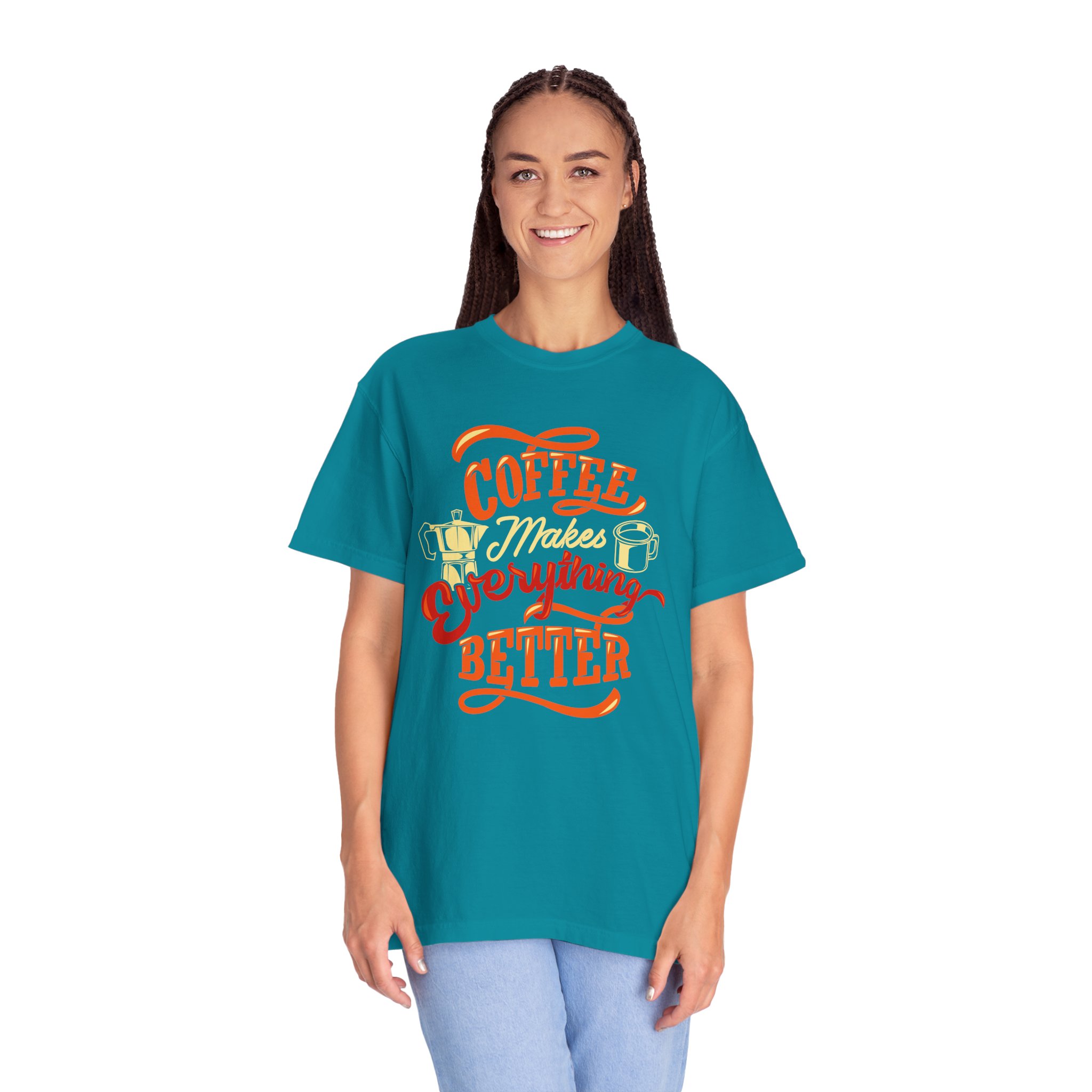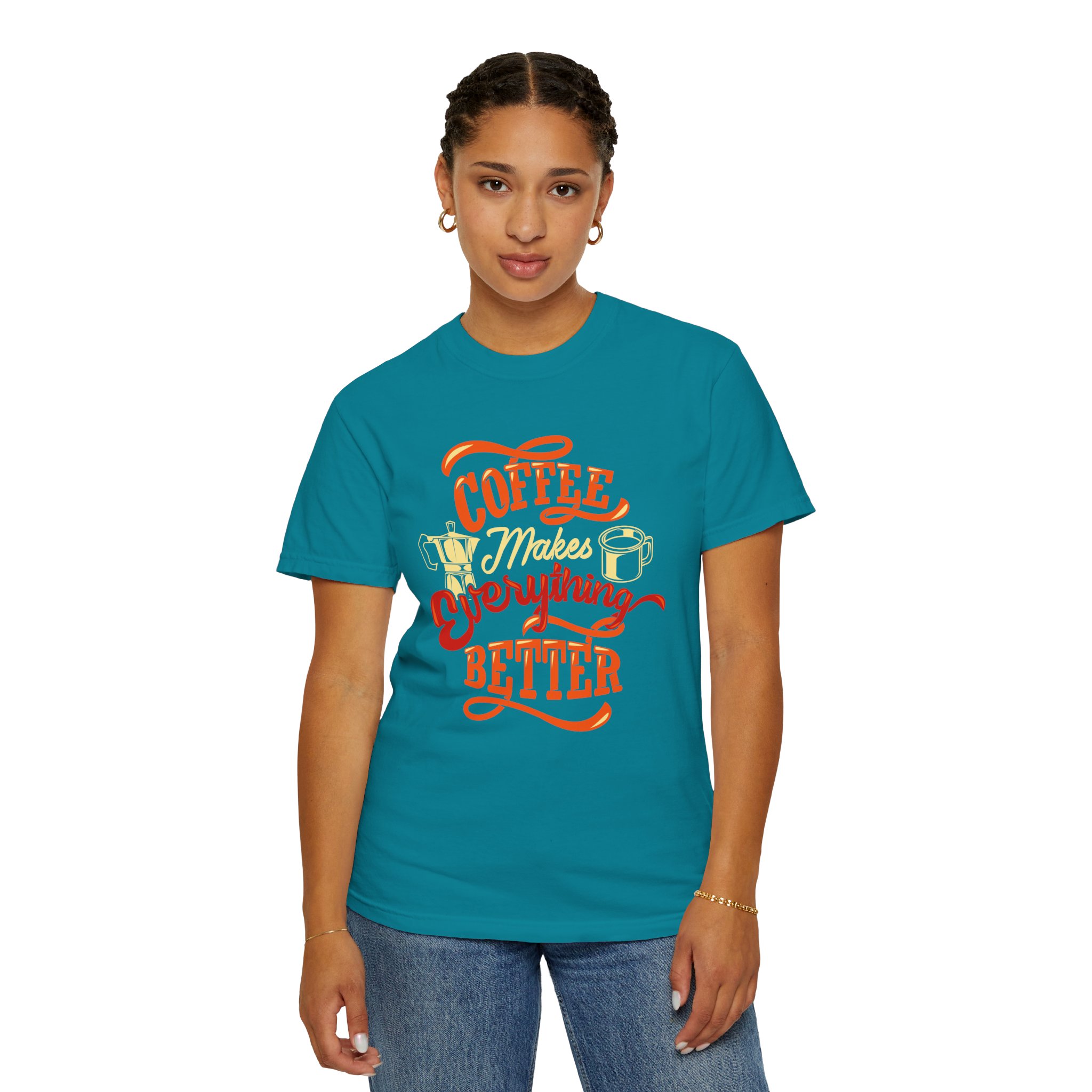 Coffee Makes Everything Better T-Shirt – Funny Coffee Lover Graphic Tee for Daily Motivation & Cafe Vibes.