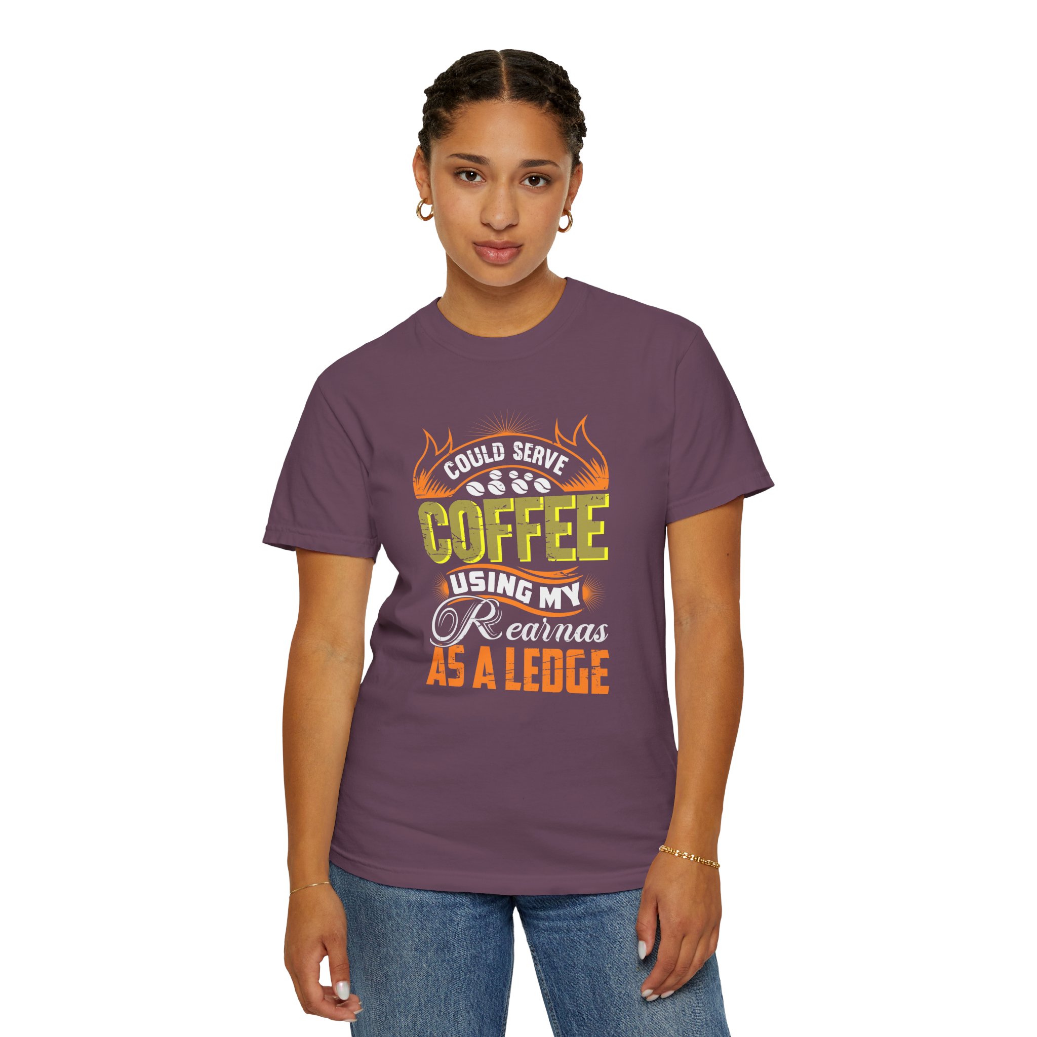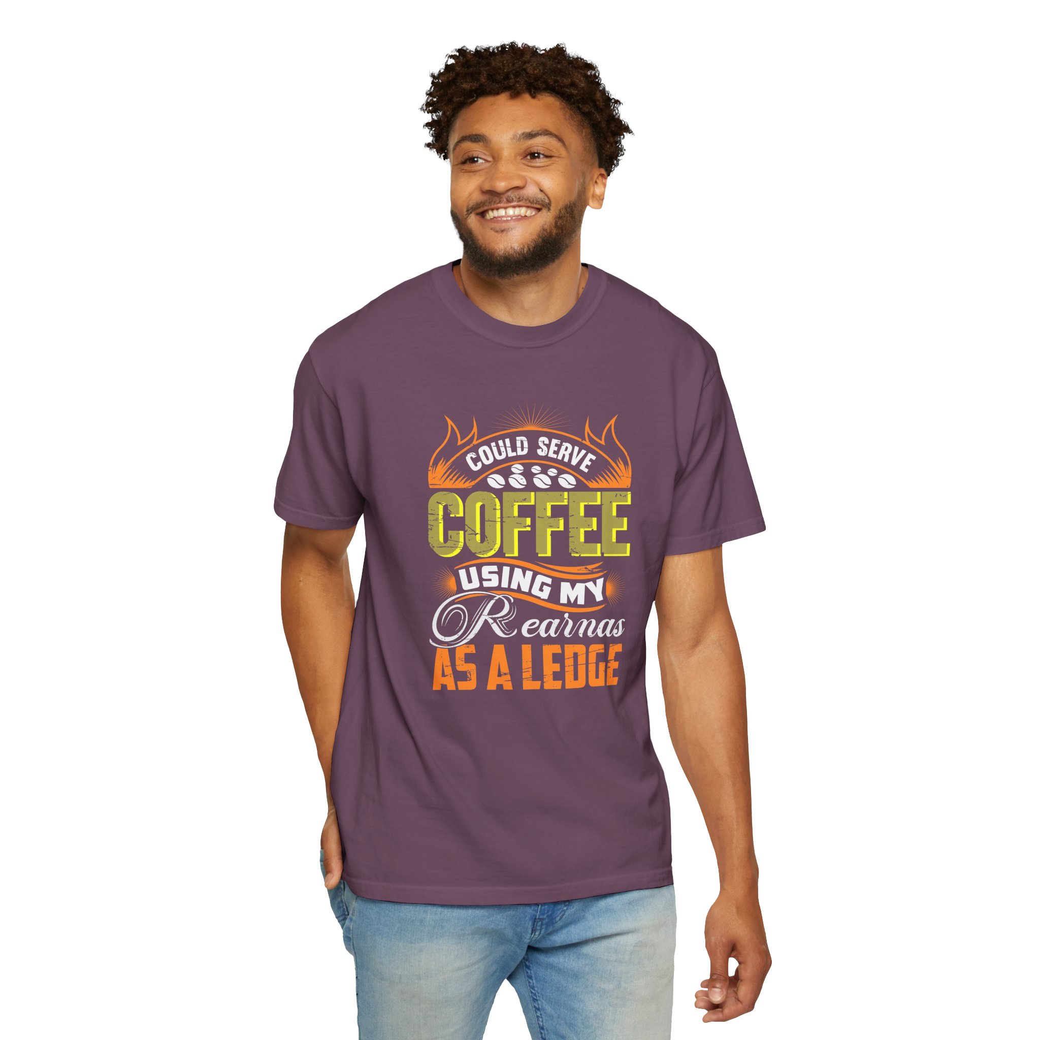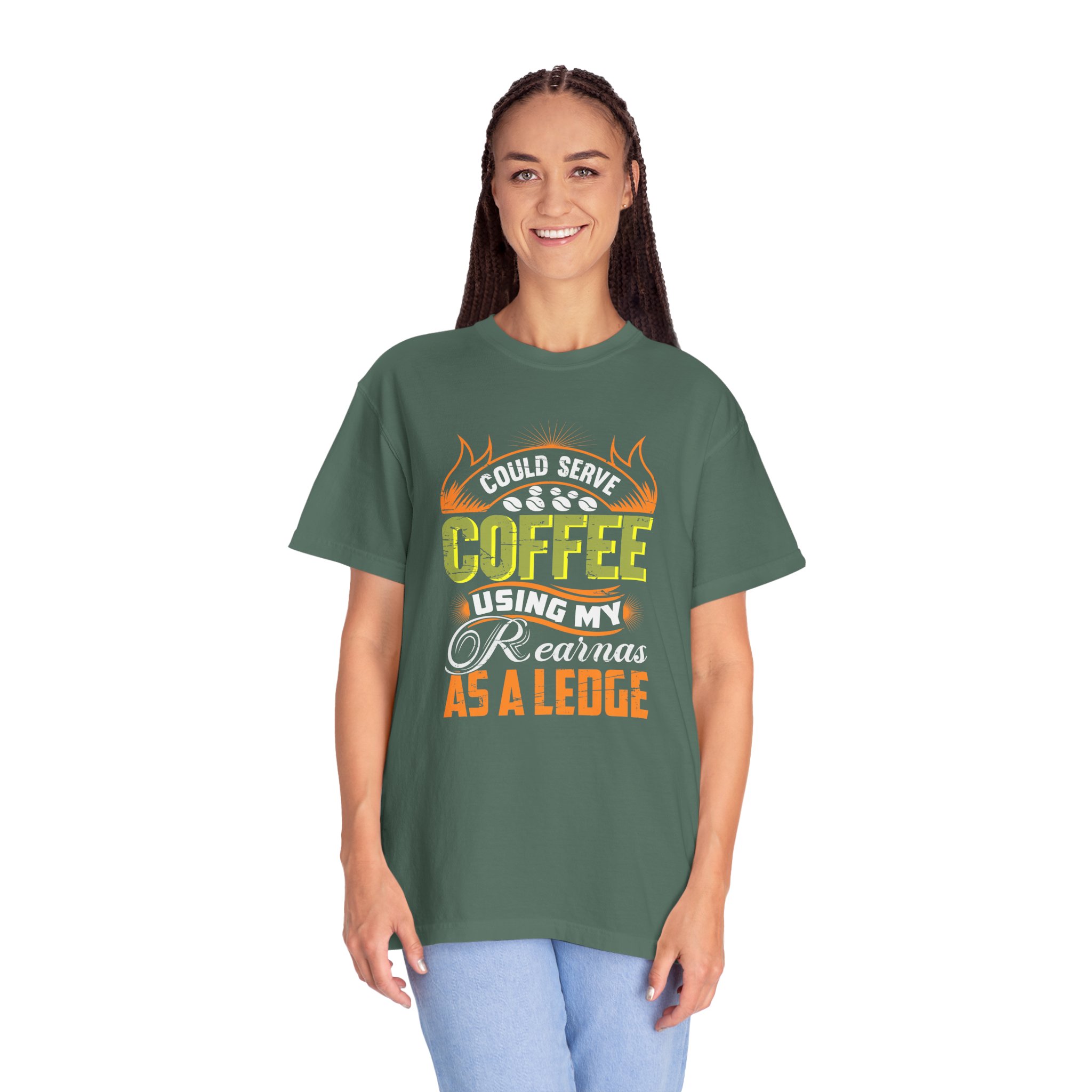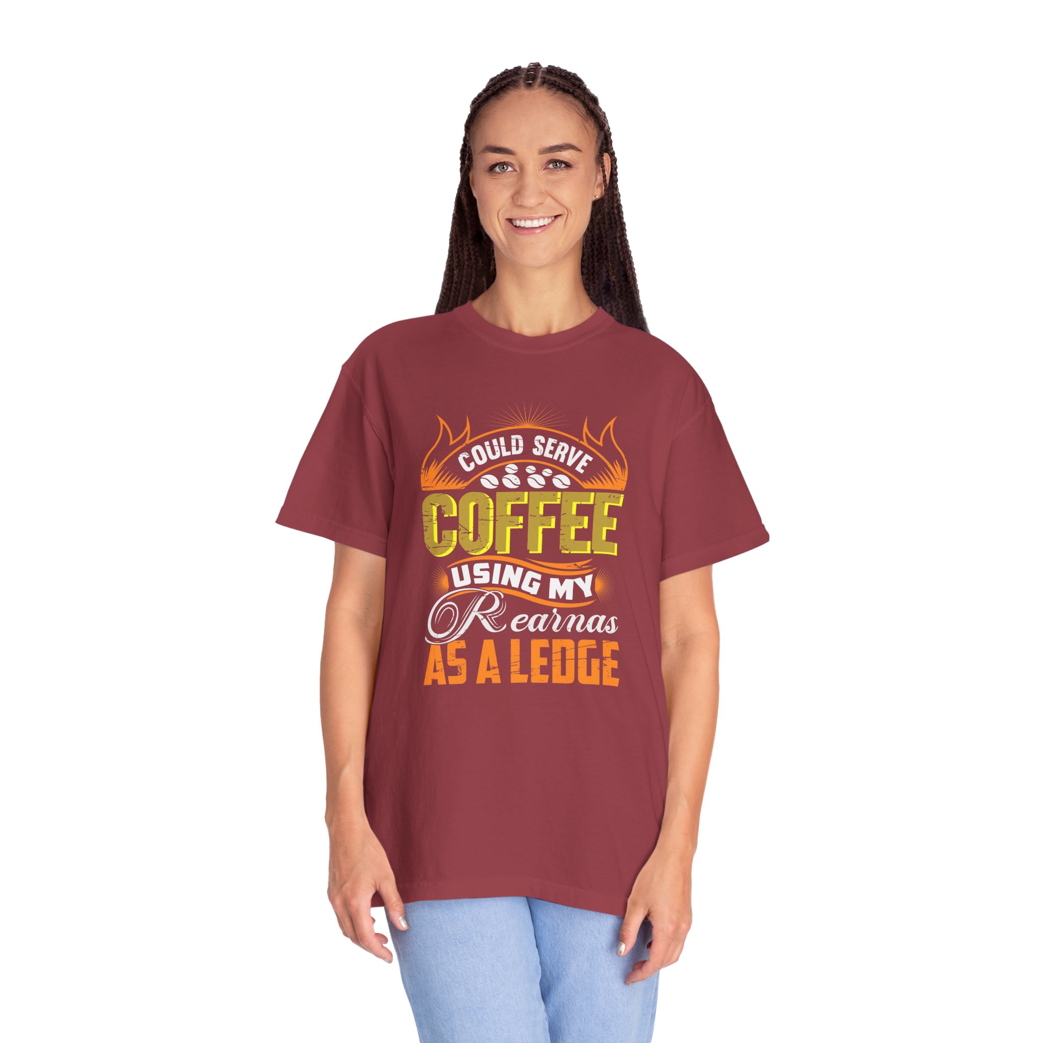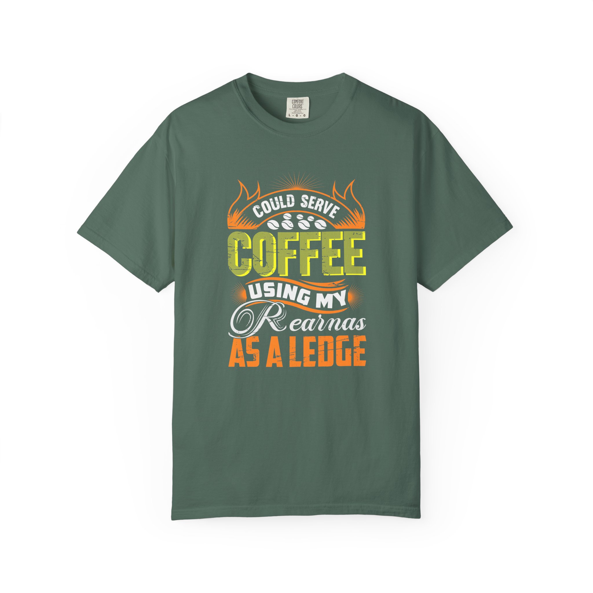 Could Serve Coffee Using My Rear as a Ledge T-Shirt – Funny Coffee Lover Graphic Tee with Bold Humor & Playful Attitude.
