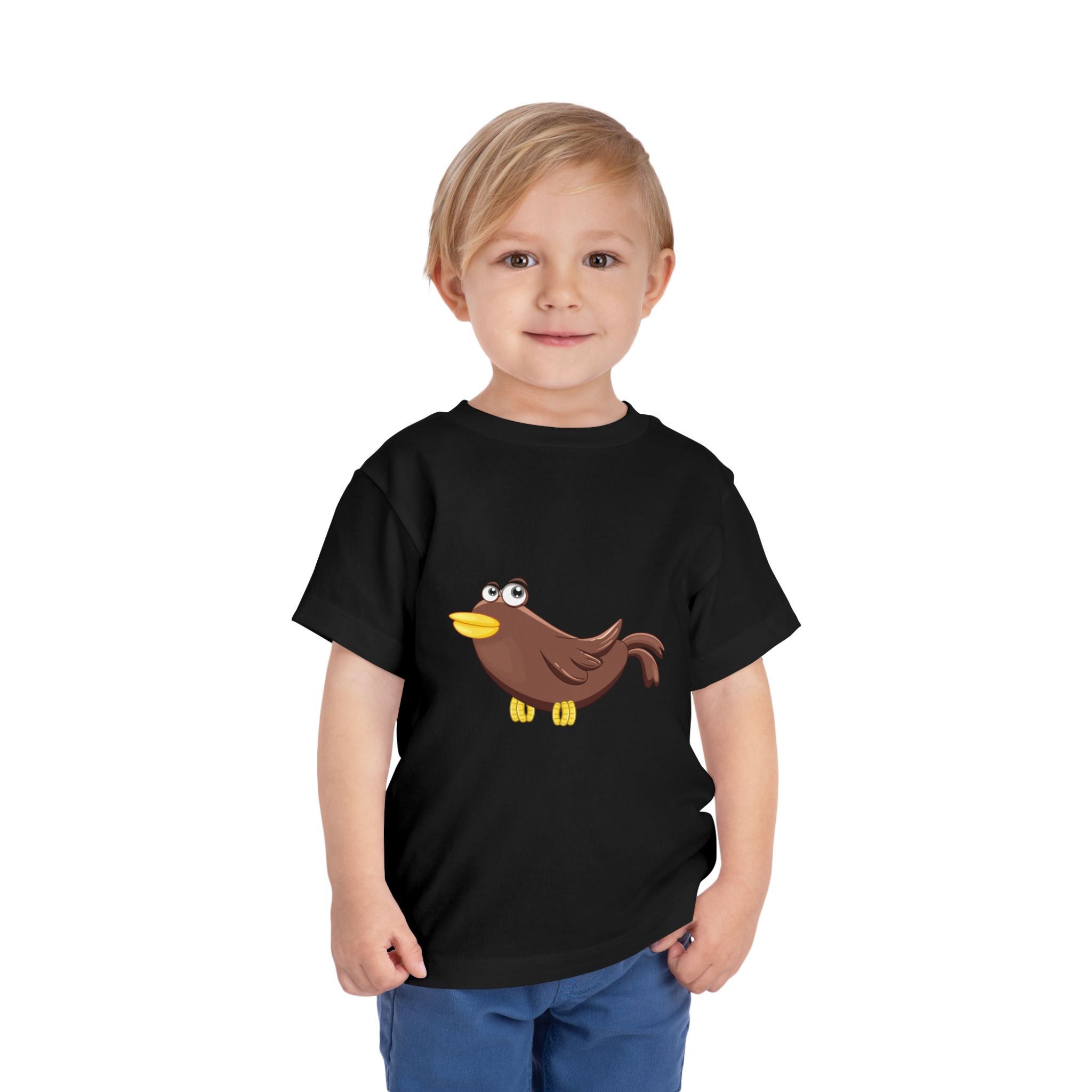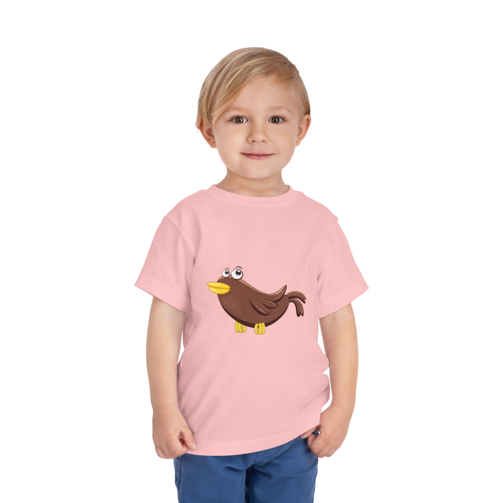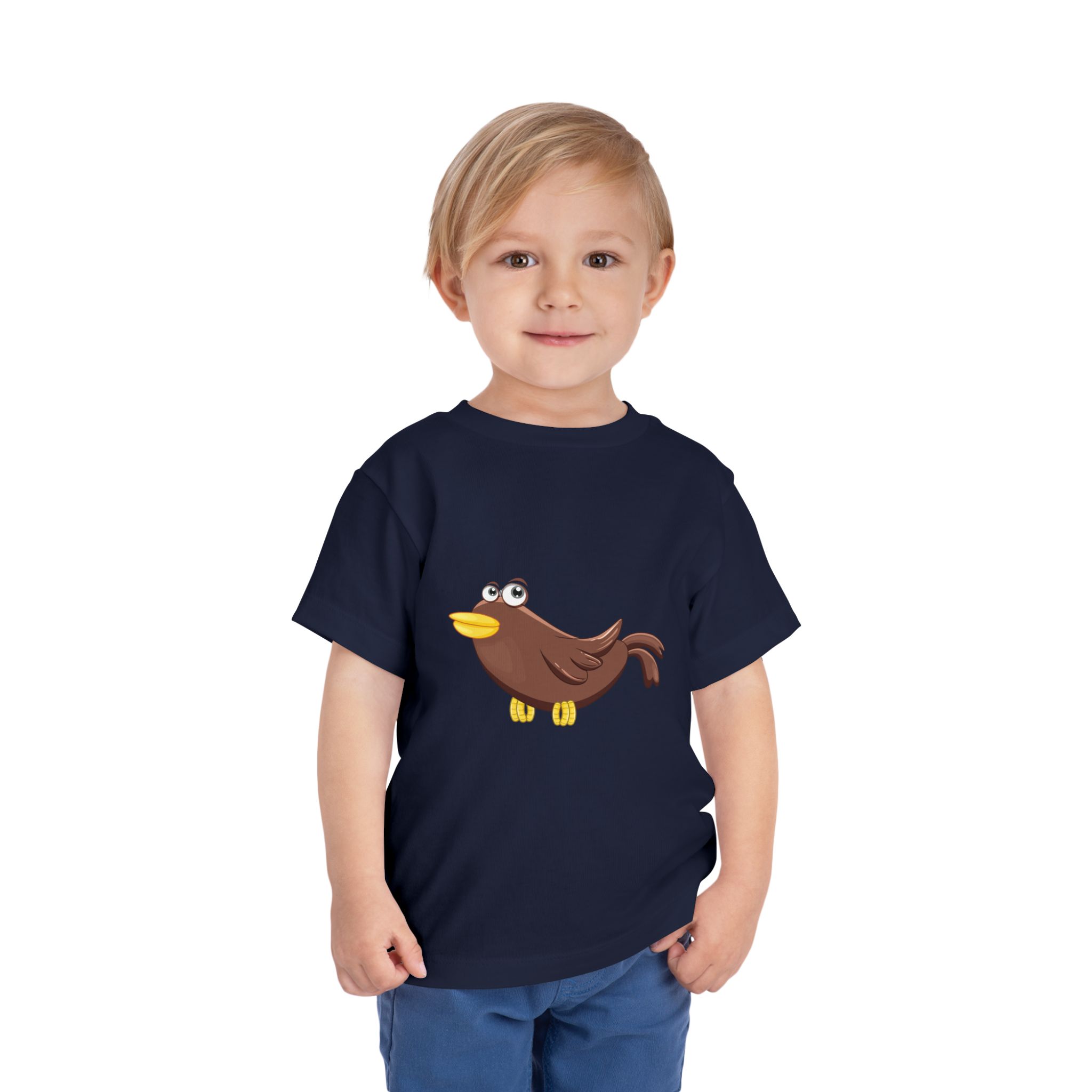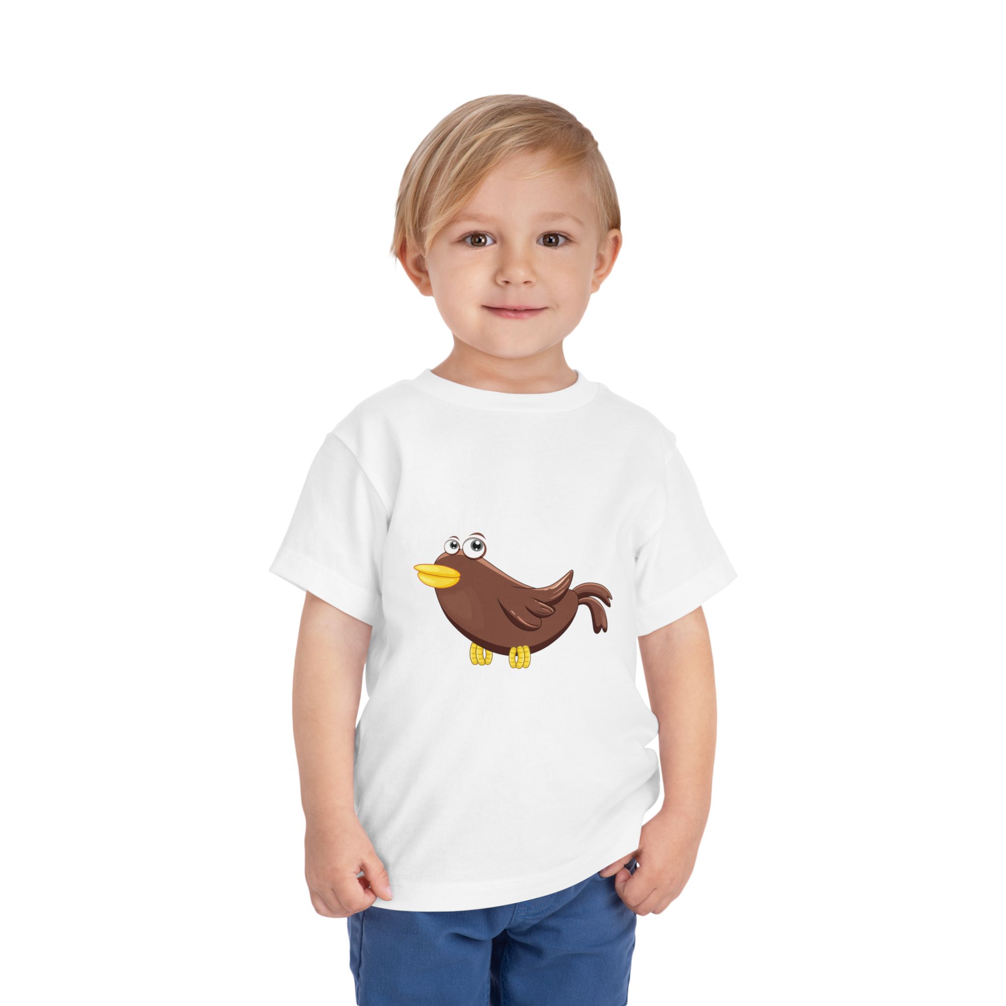A soft, lightweight toddler tee with a cheerful cartoon bird centered on the chest. The simple, playful illustration brings a gentle sense of curiosity and joy—like a little companion for everyday play. Breathable airlume cotton keeps active little ones cool during park runs, storytime, or quiet cuddles. Clean white backdrop makes the bird pop and pairs easily with shorts, leggings, or overalls. The tag-free neckline stays comfortable against tender skin, while side seams help the shirt hold its shape through washes and tumbles. This tee settles into a child’s day the way a favorite story character settles into a bookshelf—familiar, bright, and ready for tiny adventures.