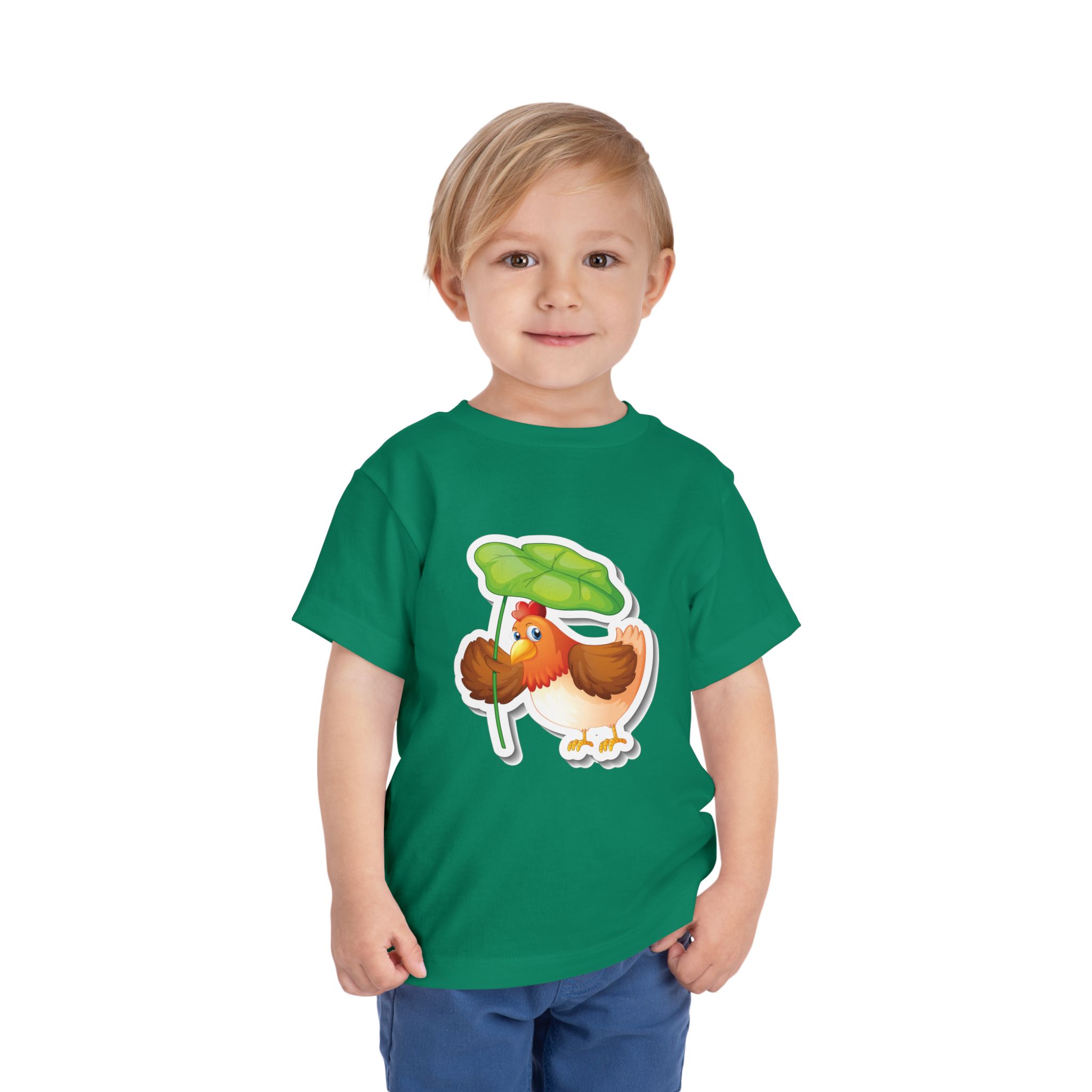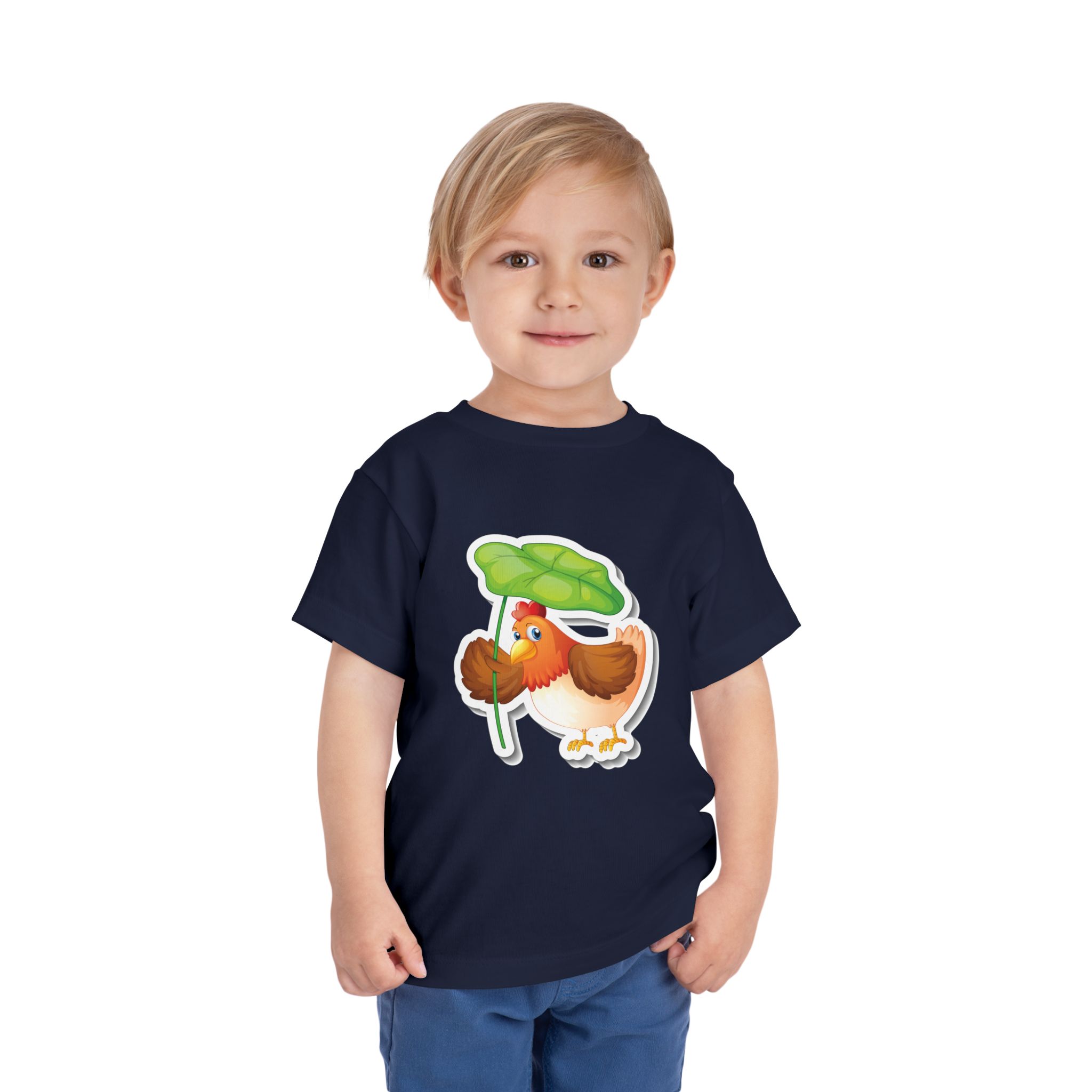 Sunny mornings, muddy boots, and small adventures—this toddler tee brings a playful farmyard friend to the everyday. A round, roly-poly chick stands under a bright clover leaf, ready to explore puddles and backyard paths. The lightweight knit moves with busy little bodies and breathes through playdates, story-time, and nap transitions. Soft to the touch and finished with a tear-away label, the shirt keeps comfort front-and-center so caretakers and kids both stay happy during messy, joyful days outdoors.