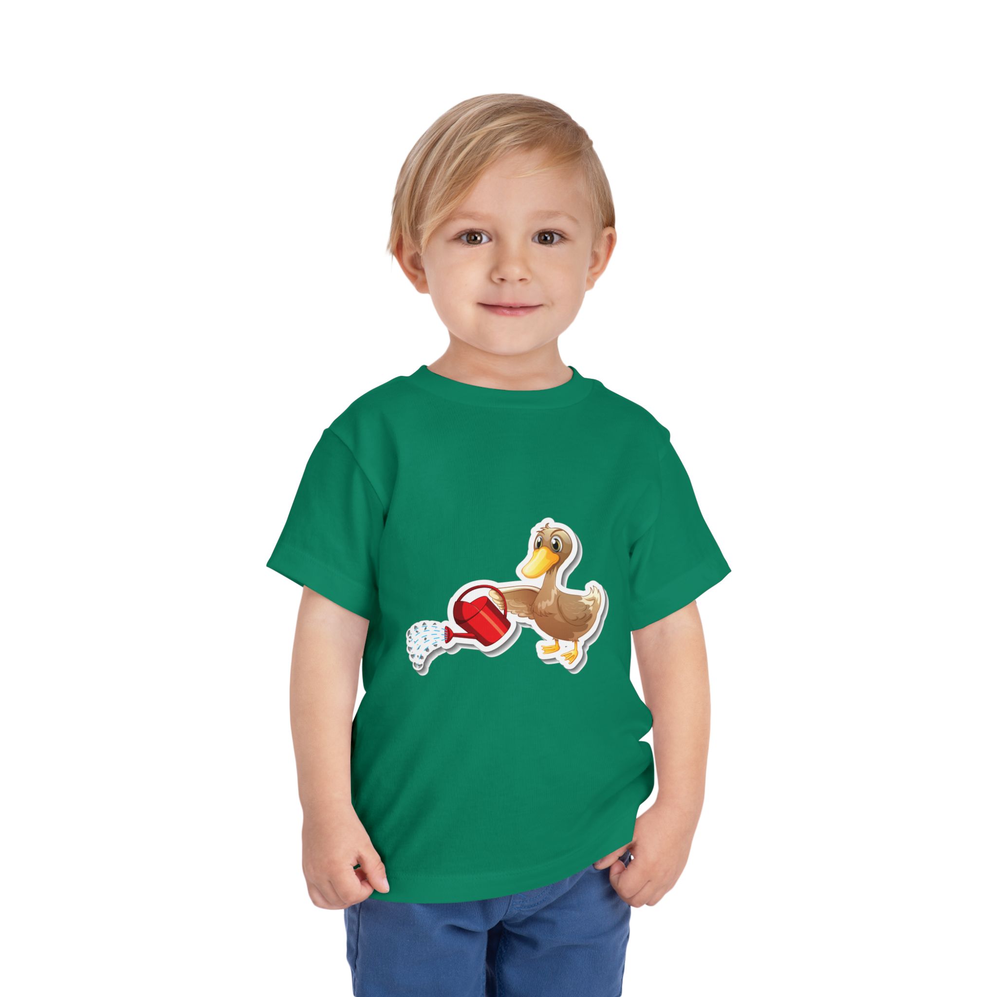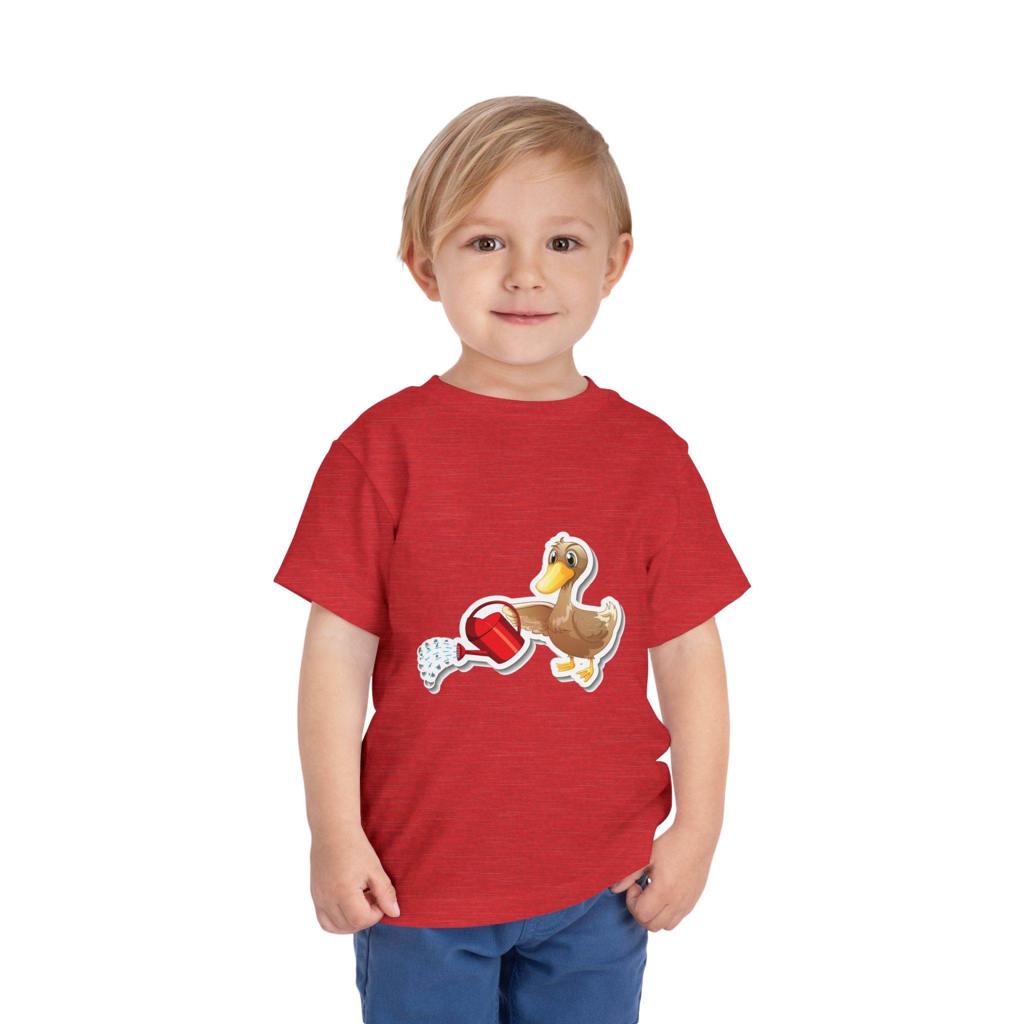 Cute Duck with Watering Can Toddler T-Shirt – Adorable Garden Animal Graphic Tee for Kids, Boys & Girls.