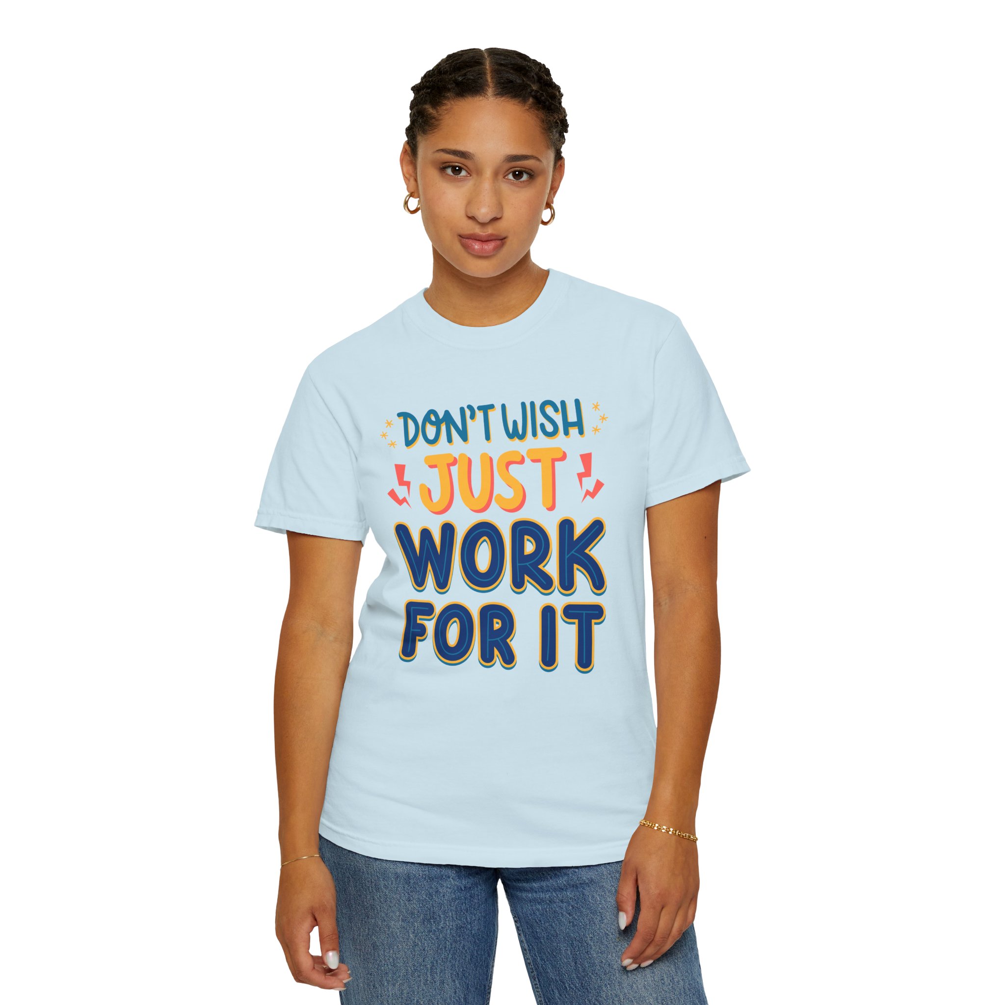 Don’t Wish Just Work For It T-Shirt – Motivational Graphic Tee for Hustle, Hard Work & Success Mindset.