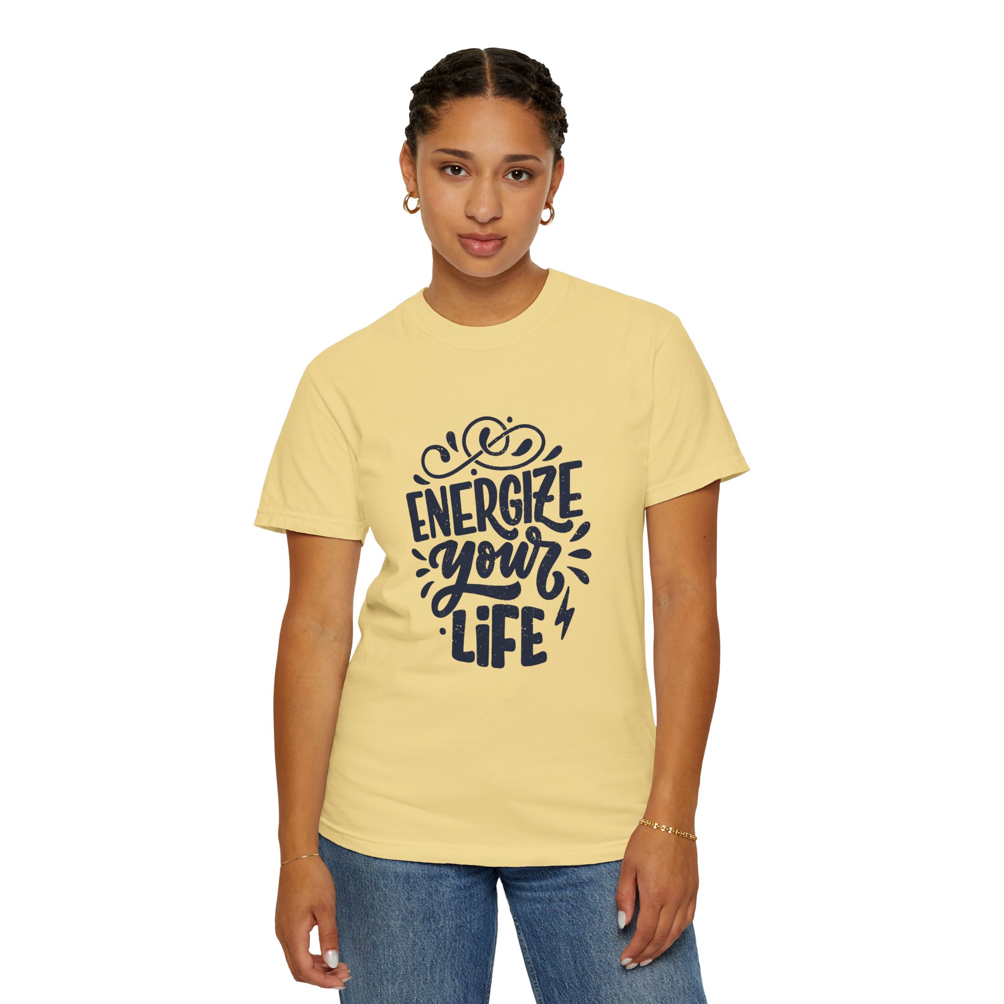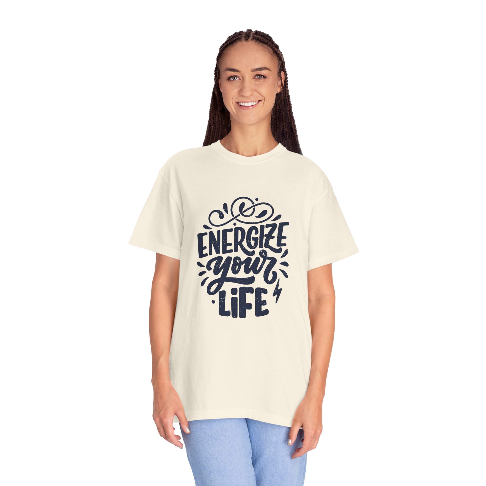 Introducing our Unisex Garment-Dyed T-shirt, a perfect blend of style and comfort. This tee radiates positive energy with its vibrant ‘Energize Your Life’ design, making it an ideal choice for anyone looking to add a spark to their everyday wardrobe. The relaxed fit ensures all-day wearability, while the soft, garment-dyed fabric provides a lived-in feel right from the first wear. Whether you’re relaxing at home, hitting the gym, or enjoying a casual day out, this shirt fits seamlessly into your lifestyle. Perfect for teens, young adults, or anyone who loves to express positivity and motivation. Great for birthdays, casual gatherings, or just as a treat for yourself during the holidays!