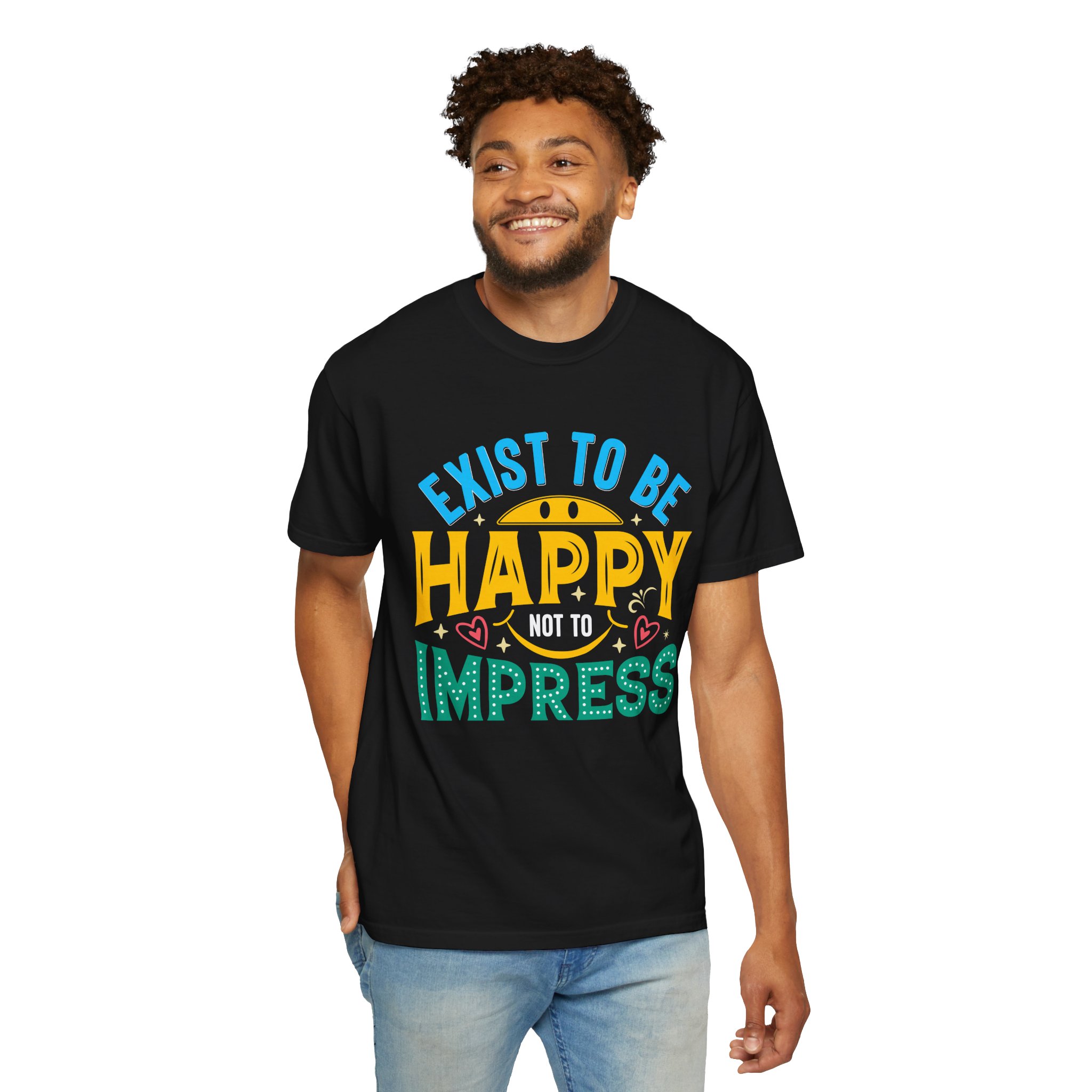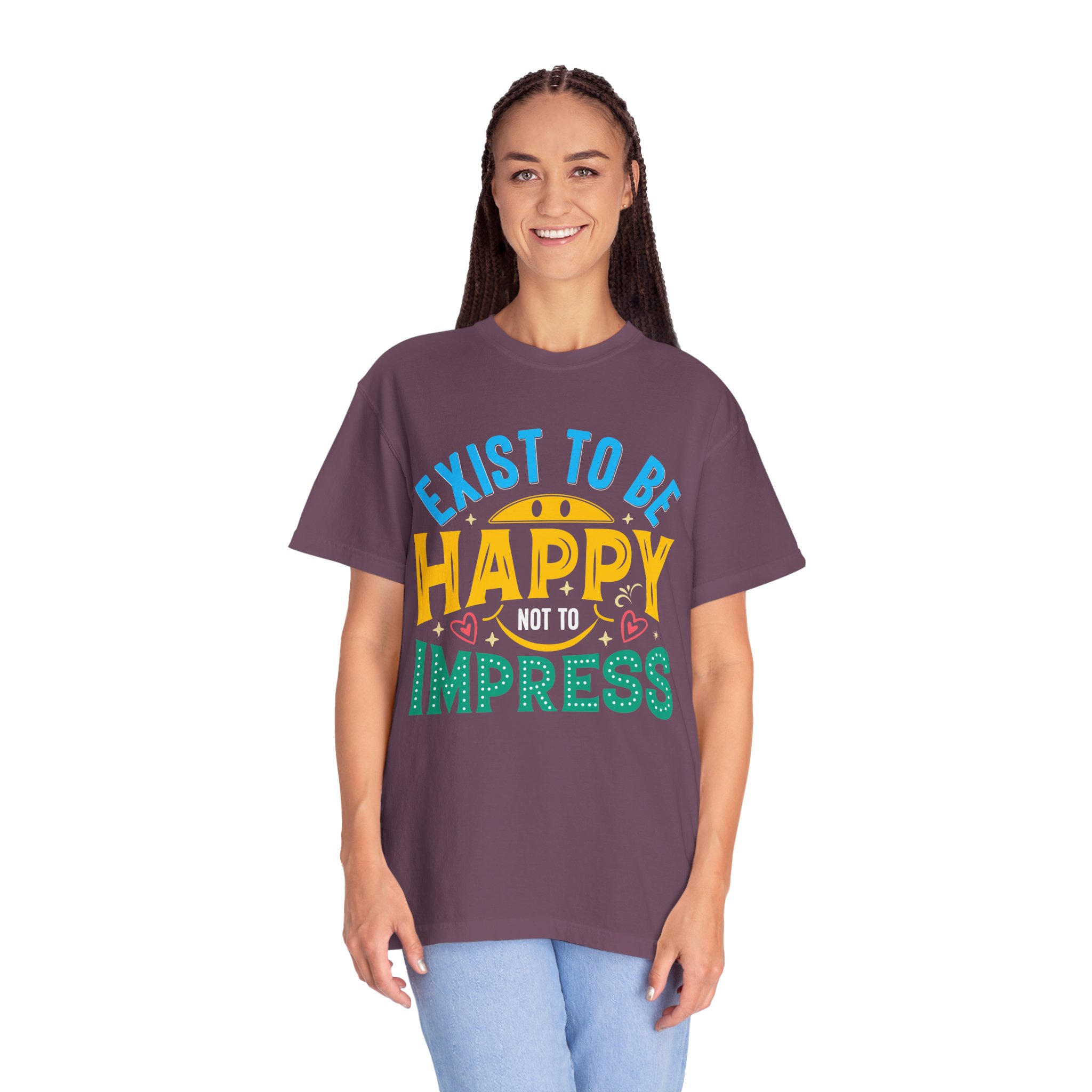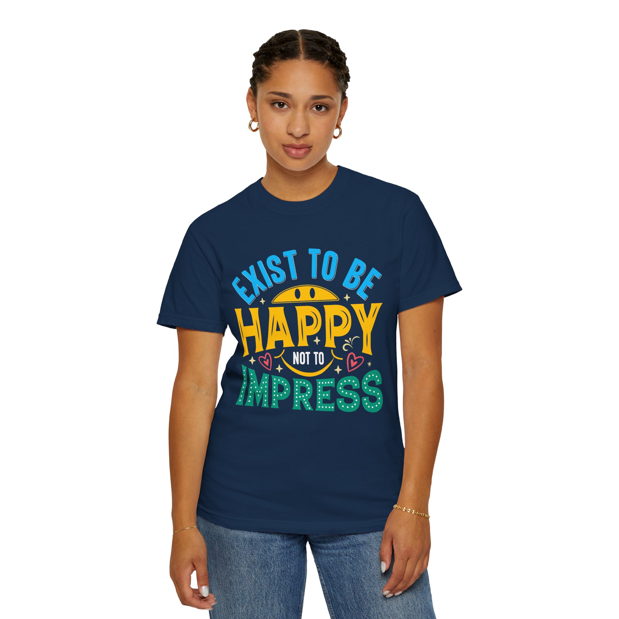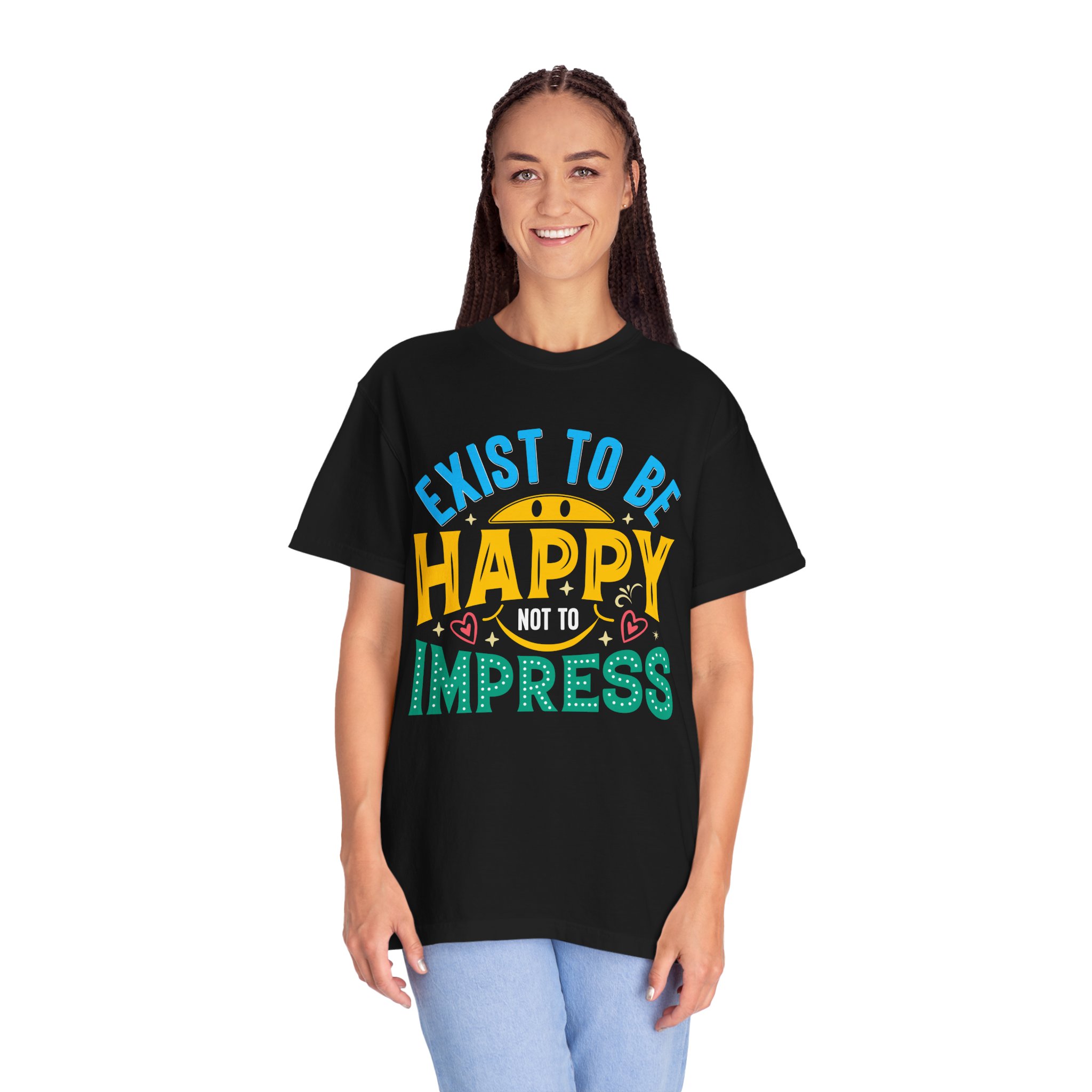 Exist to Be Happy Not to Impress T-Shirt – Positive Inspirational Graphic Tee for Self-Love & Authentic Living.