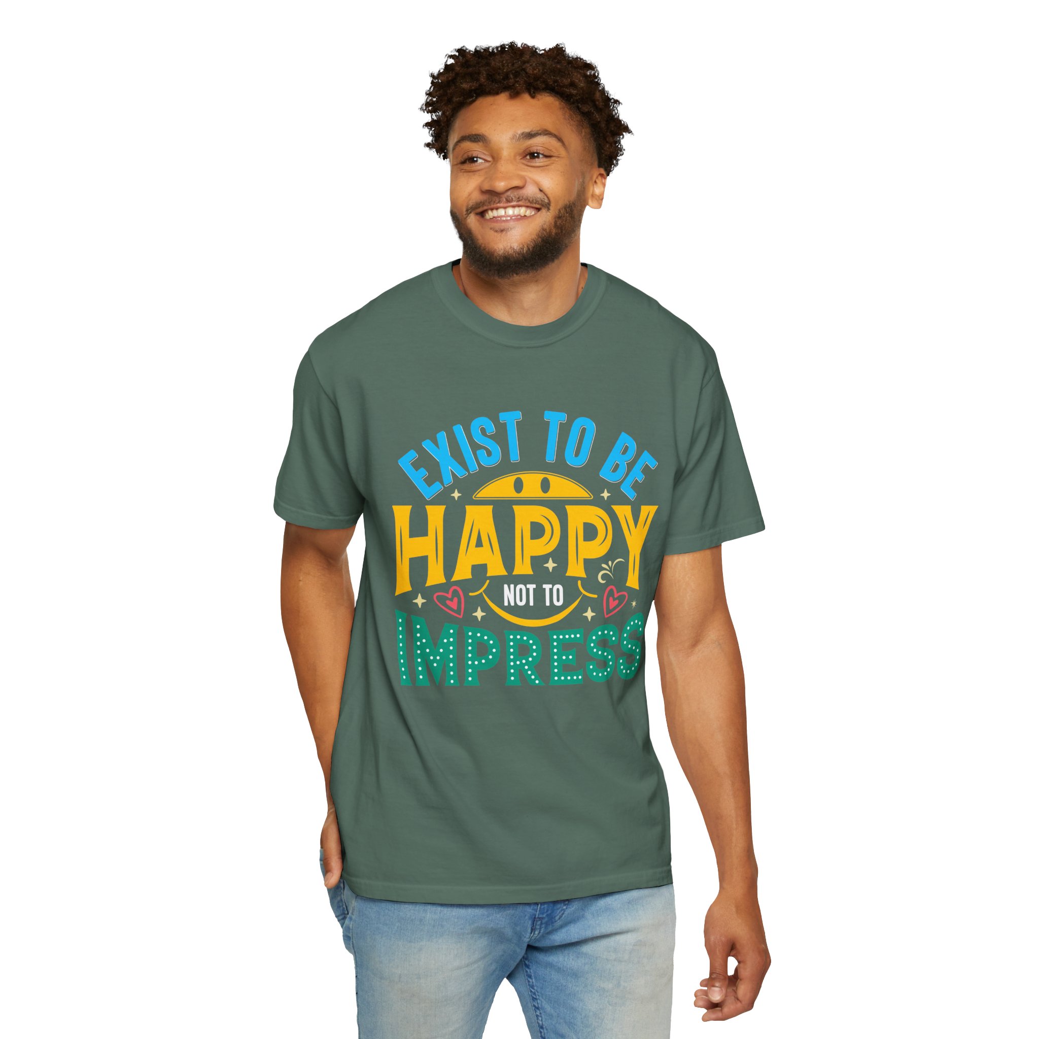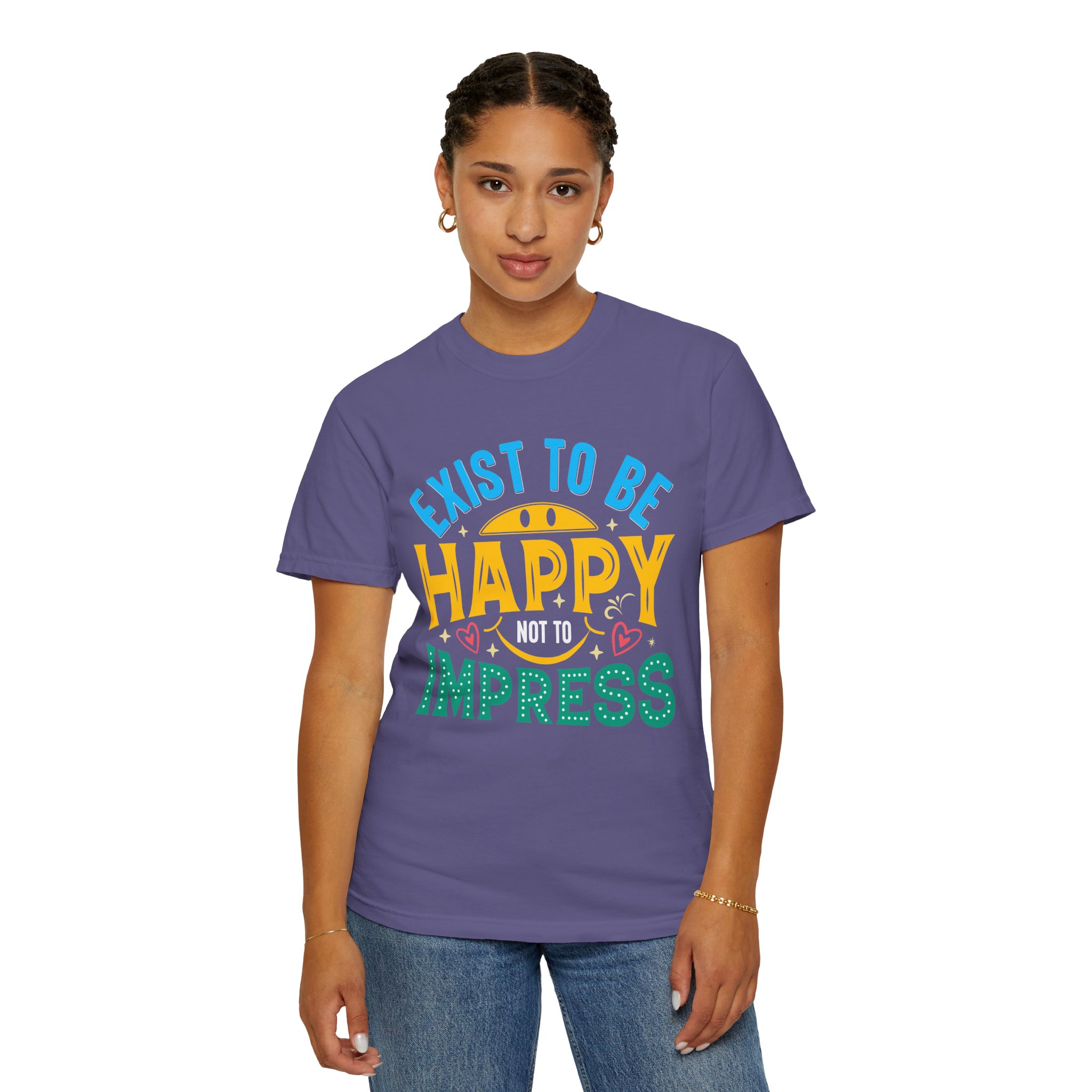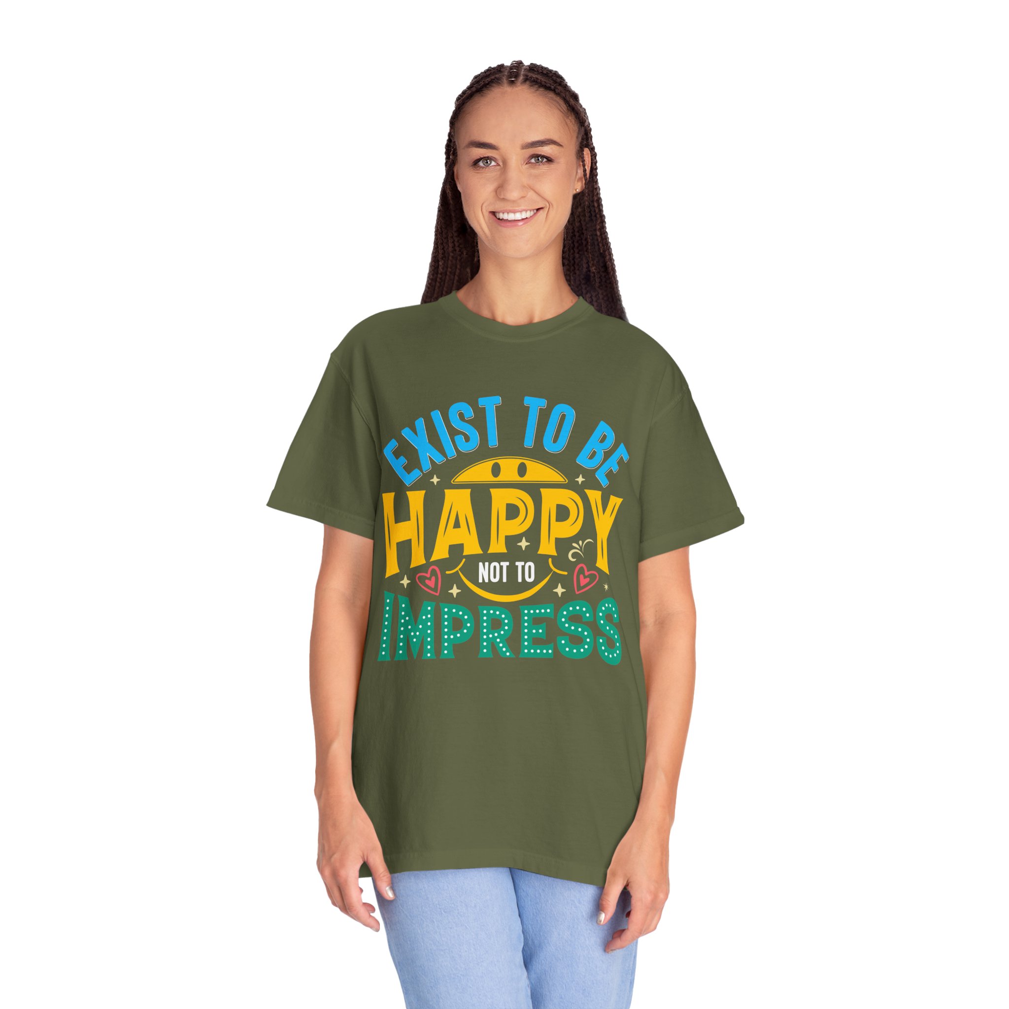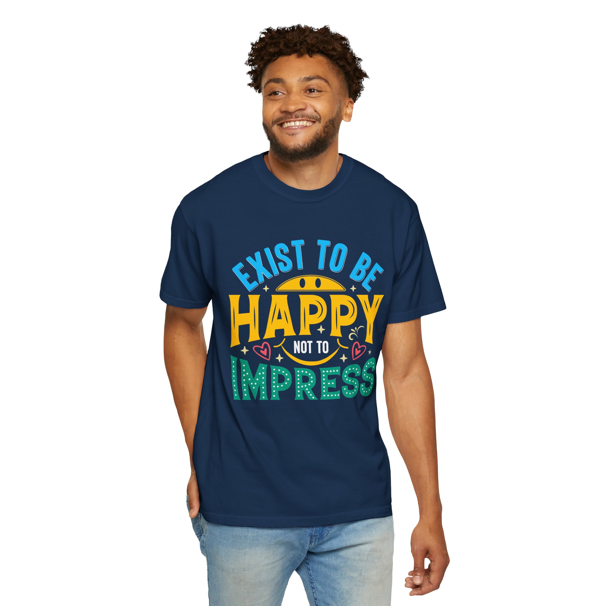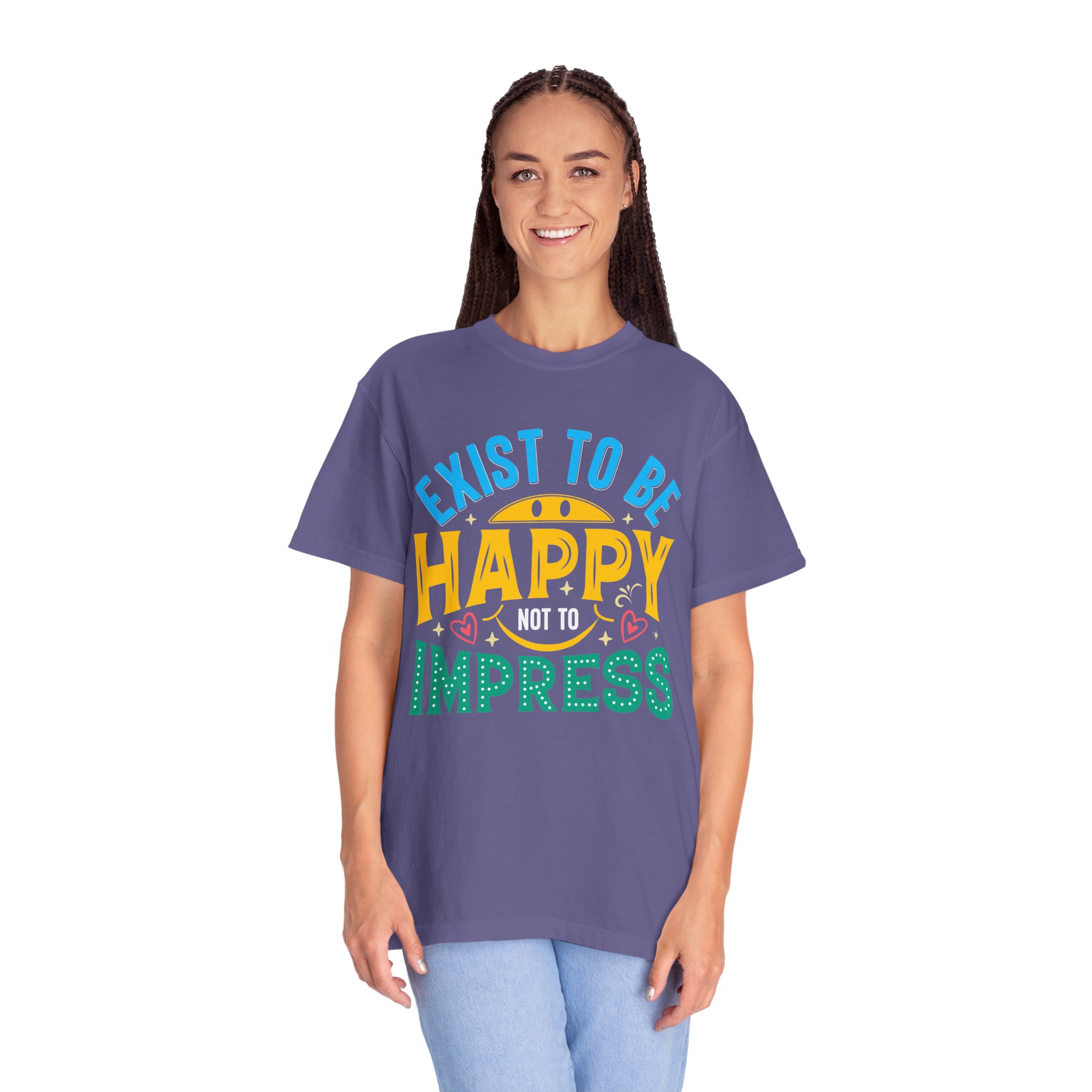 Exist to Be Happy Not to Impress T-Shirt – Positive Inspirational Graphic Tee for Self-Love & Authentic Living.