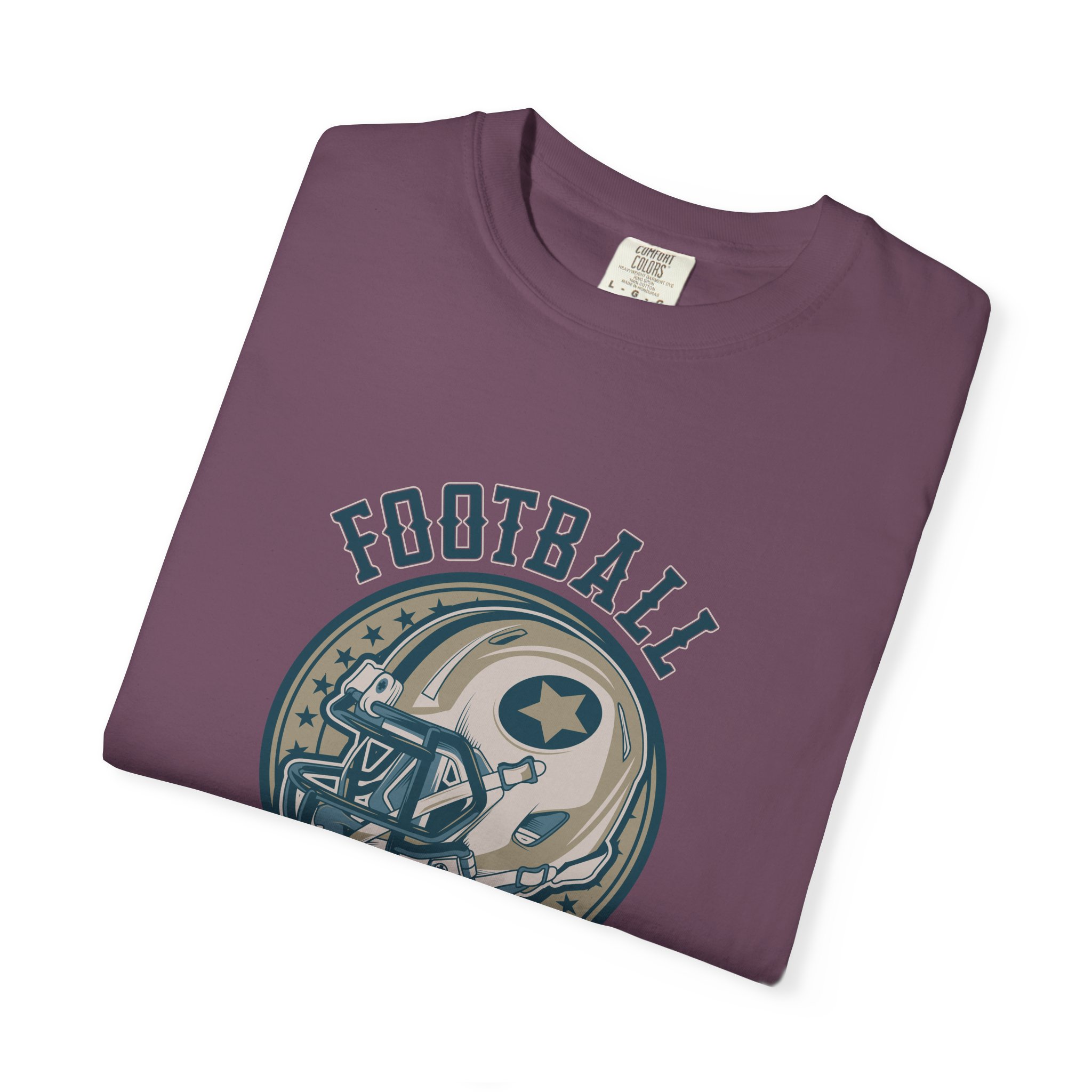 Introducing a stylish and comfortable Unisex Garment-Dyed T-shirt, perfect for anyone looking to express their love for sports with a vintage feel. The soft colors and relaxed fit create a laid-back vibe, making it a staple piece for casual outings or lounging at home. Ideal for sports enthusiasts, this t-shirt is great for game days, family gatherings, or as a thoughtful gift for birthdays and holidays. Celebrate your passion for football and wear it proudly during tailgates and parties, adding a touch of personality to any casual outing.