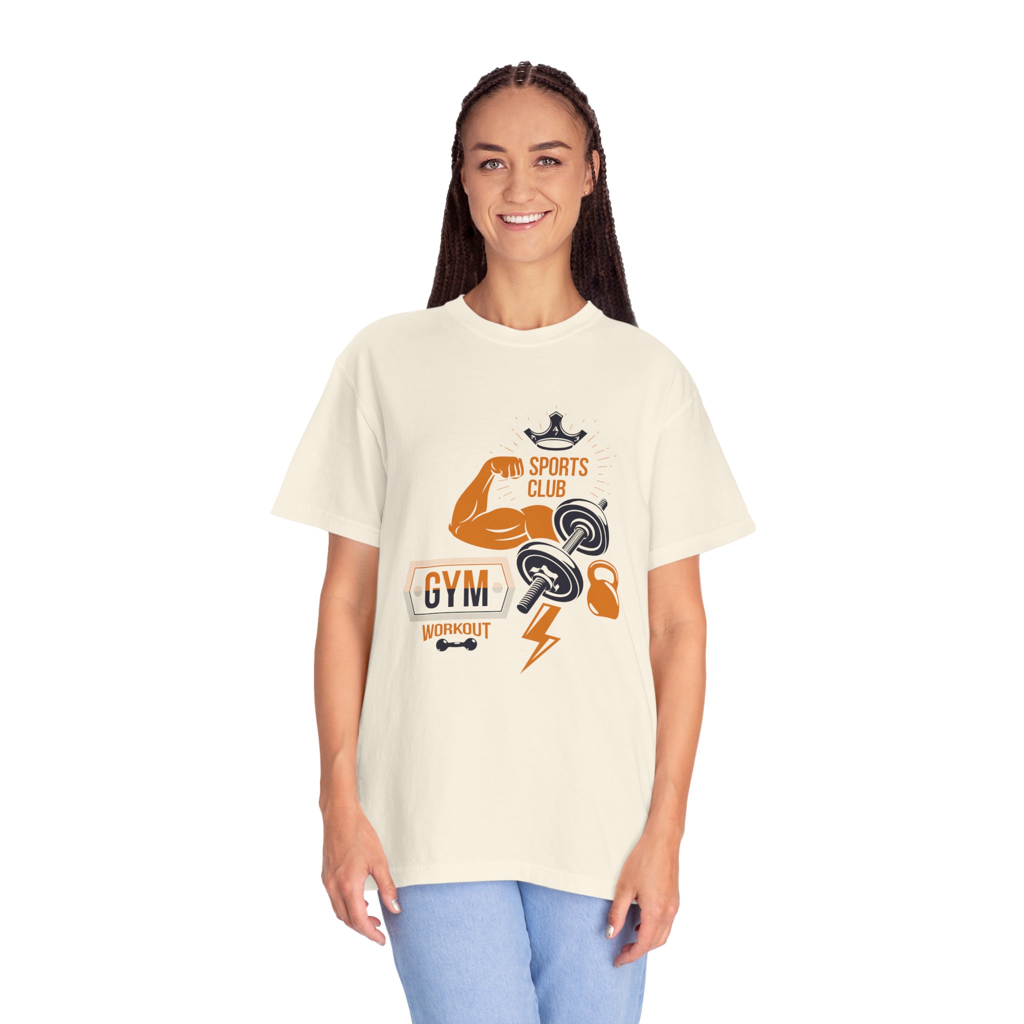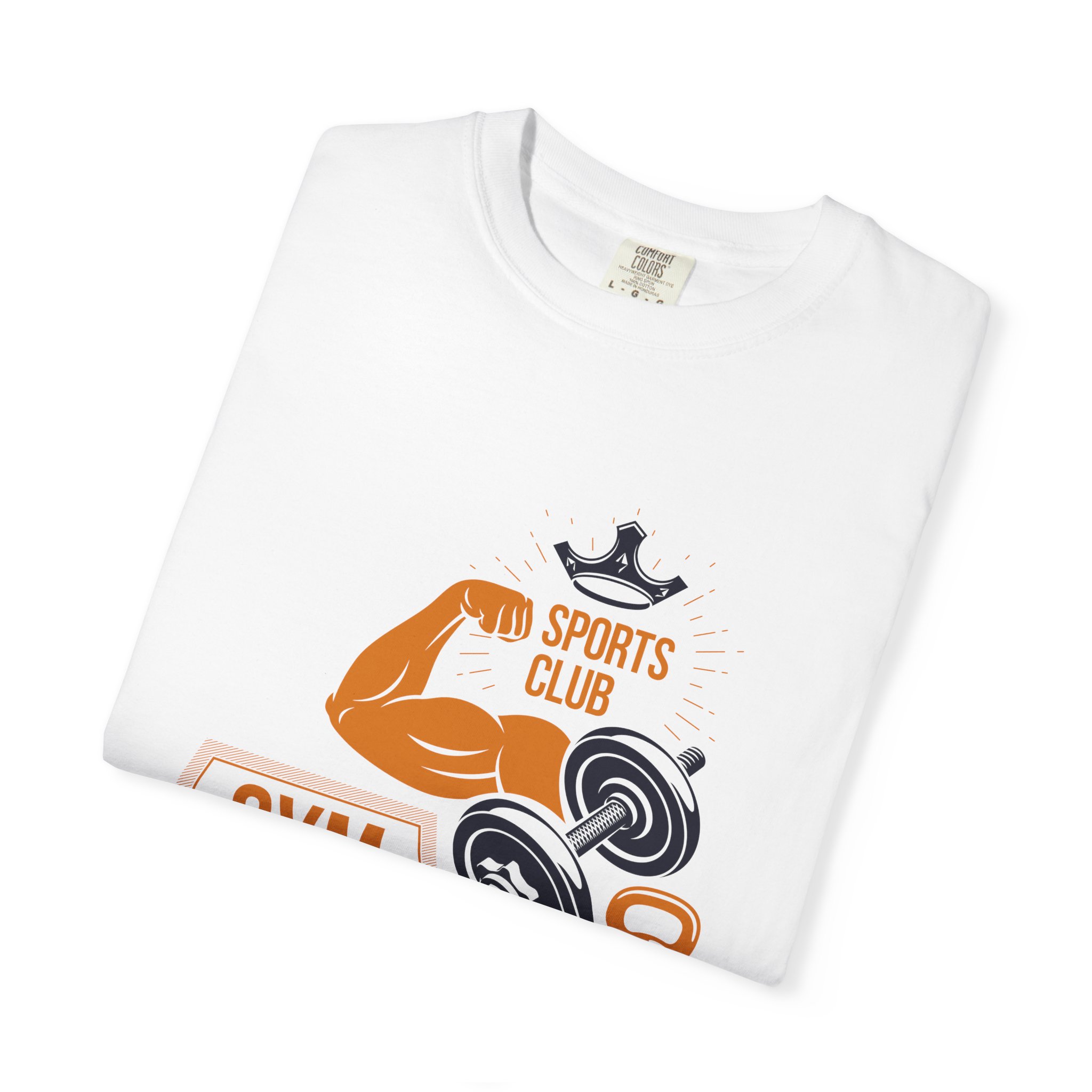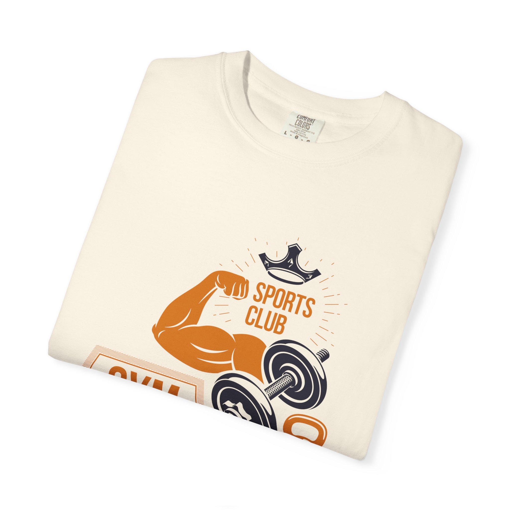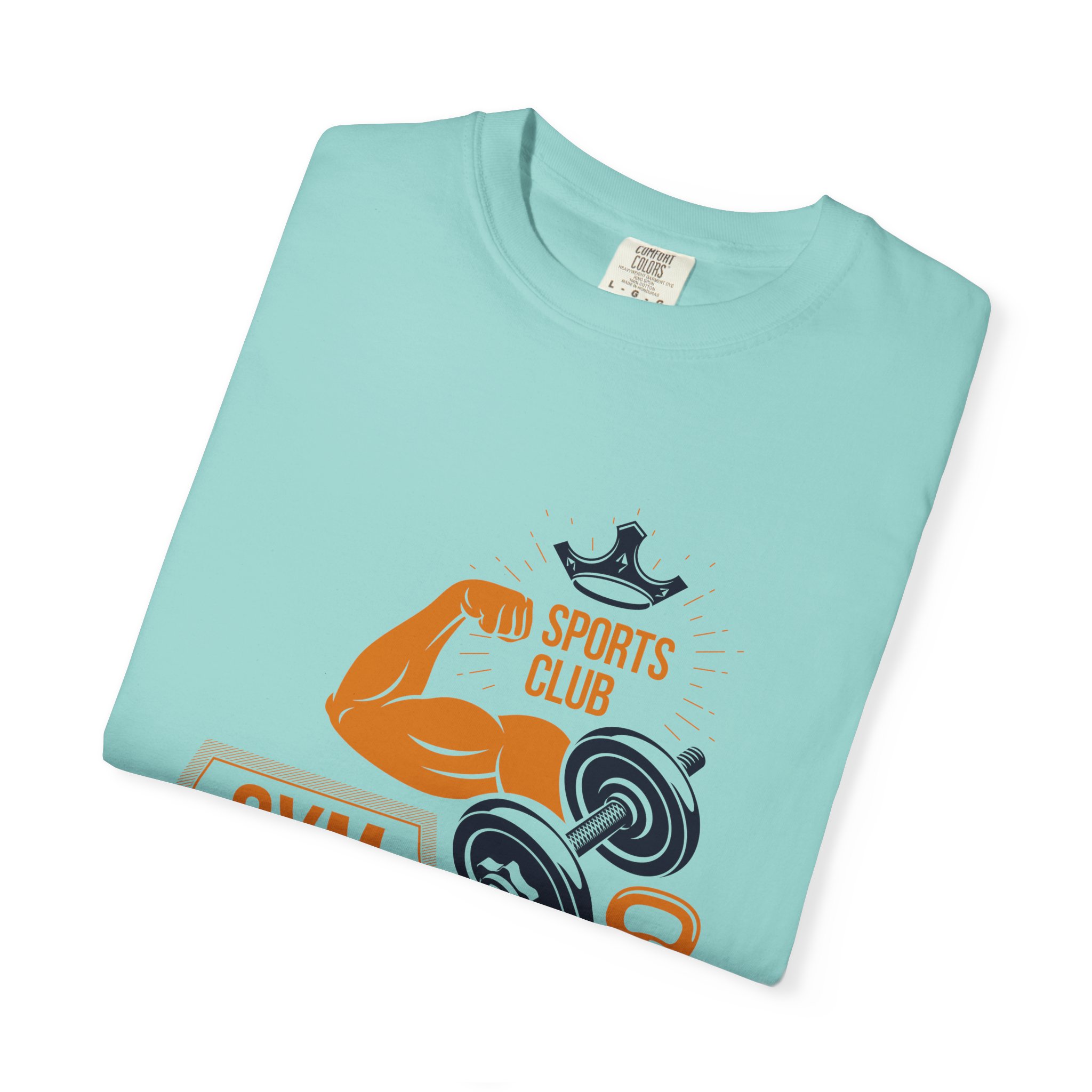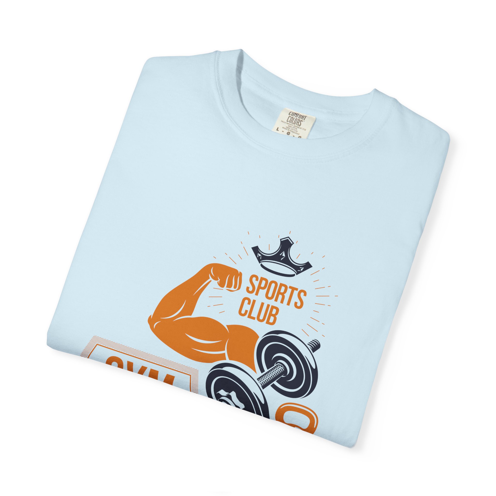 This heavyweight, garment-dyed tee brings gym-day energy into everyday wear. The design layers classic strength motifs — flexed biceps, dumbbells, kettlebell and a lightning bolt — in a bold, graphic layout that reads sporty and confident. The soft, worn-in hand from post-construction dyeing, combined with a relaxed cut and durable double-needle stitching, makes this shirt feel lived-in from the first wear while standing up to regular training sessions. Available in a wide range of colors and sizes, it sits comfortably as a go-to for warmups, casual gym sessions, or running errands with athletic style.