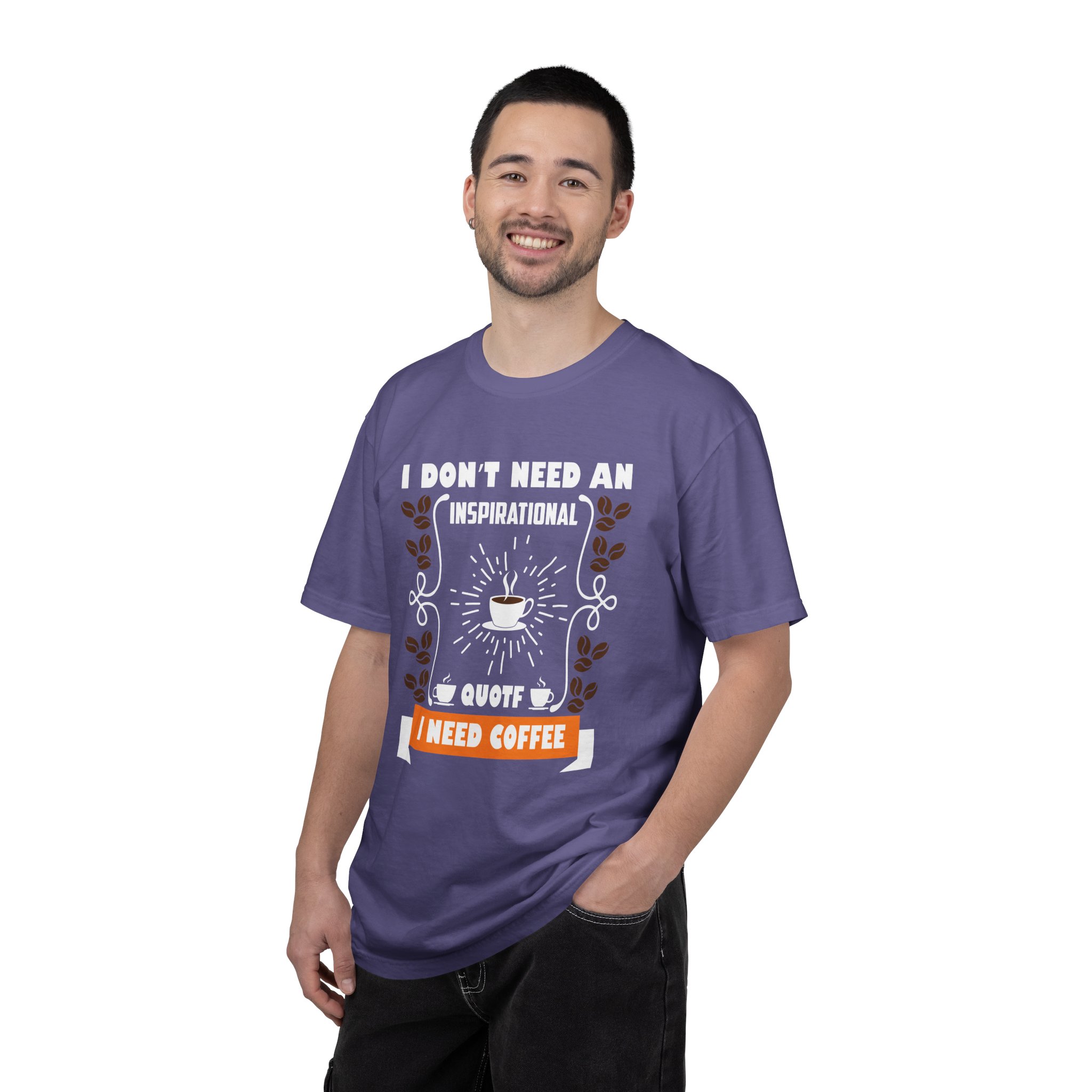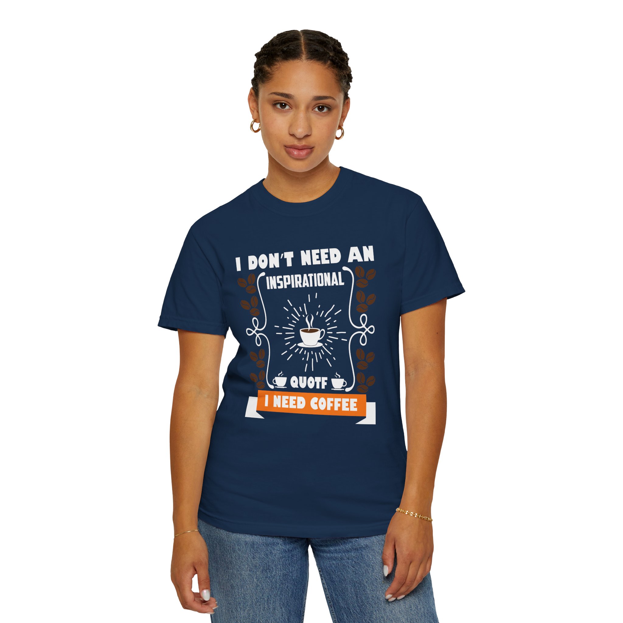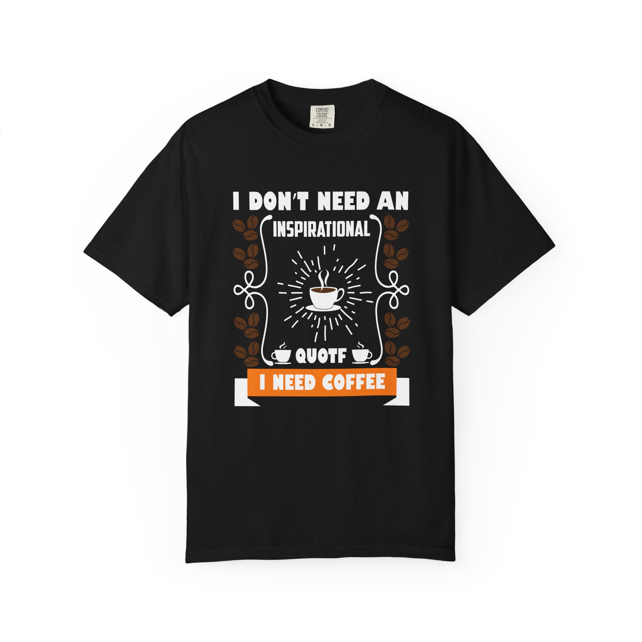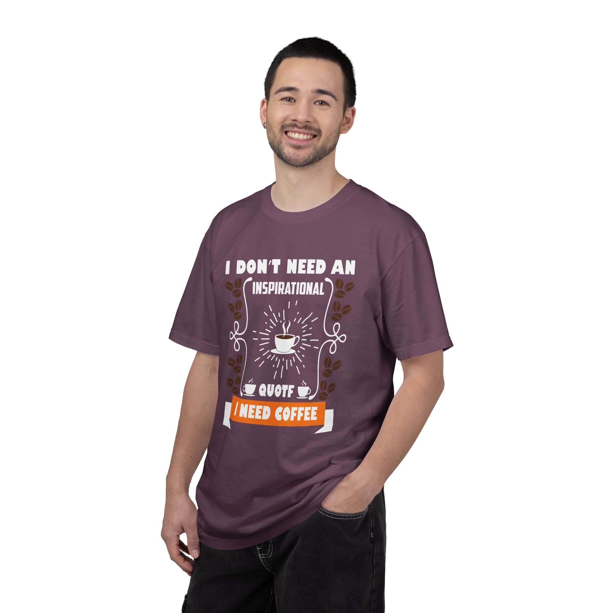 I Don’t Need an Inspirational Quote, I Need Coffee T-Shirt – Funny Coffee Lover Graphic Tee for Real Mood & Daily Energy.