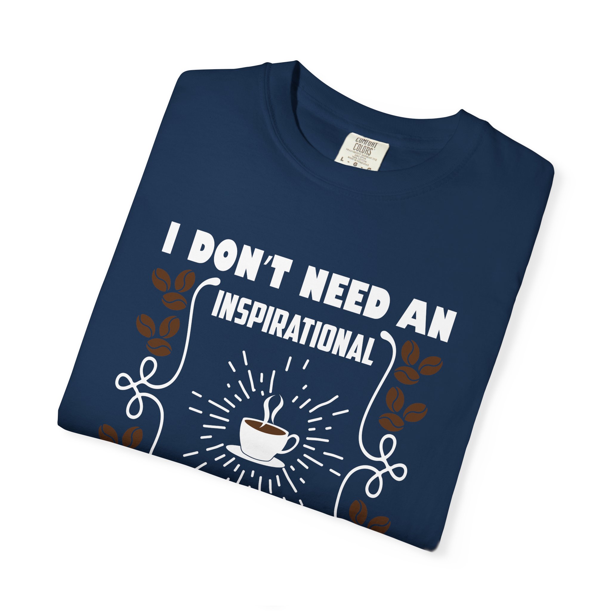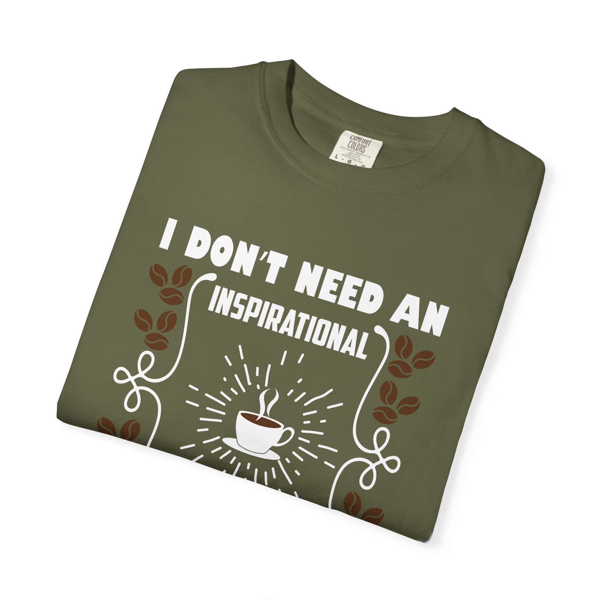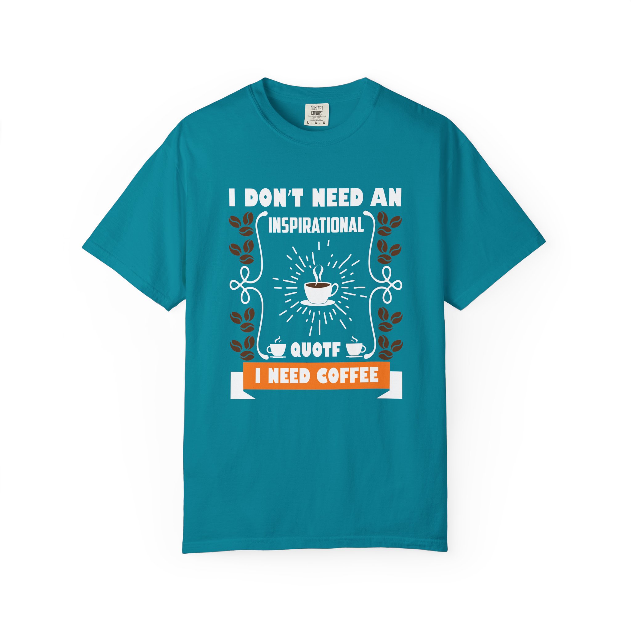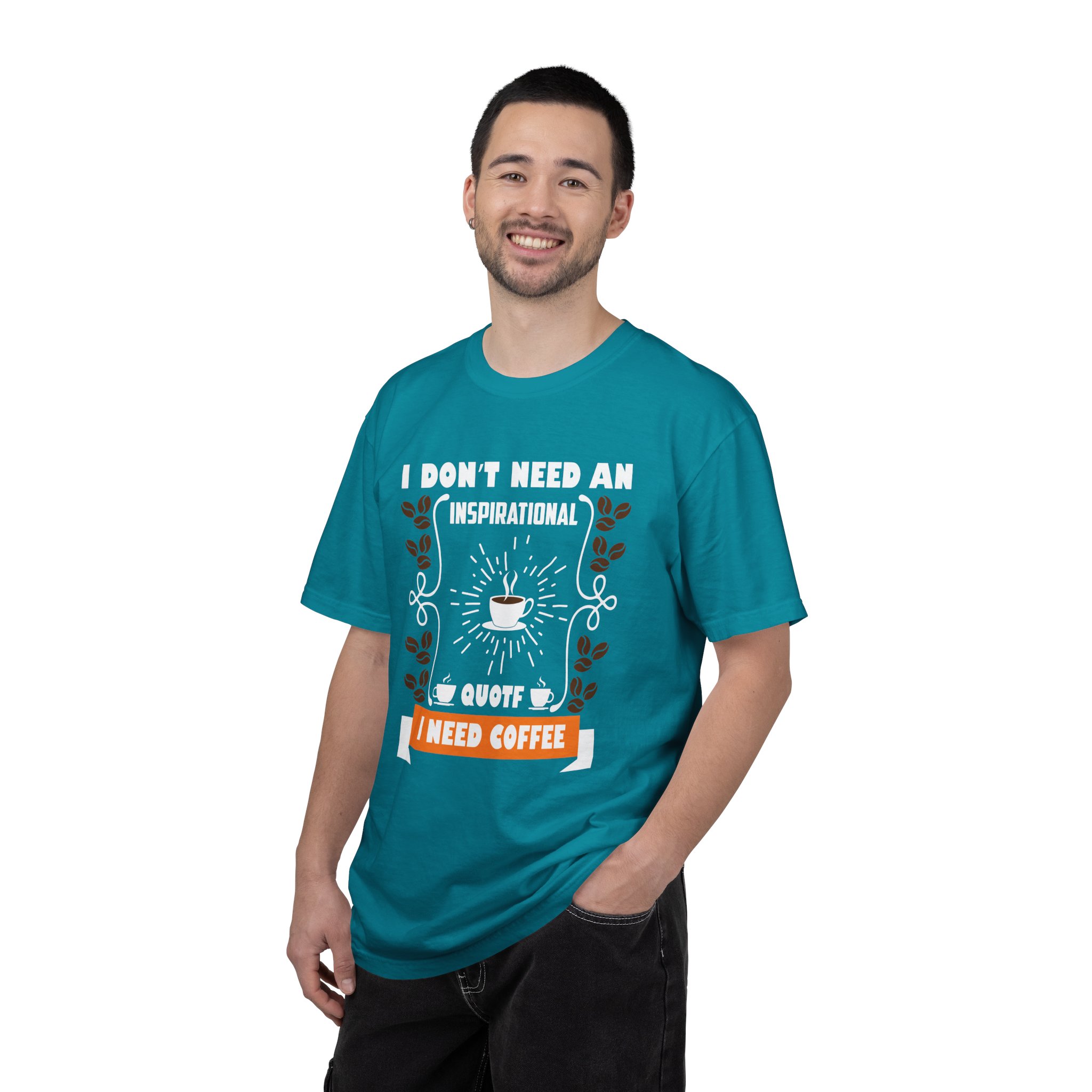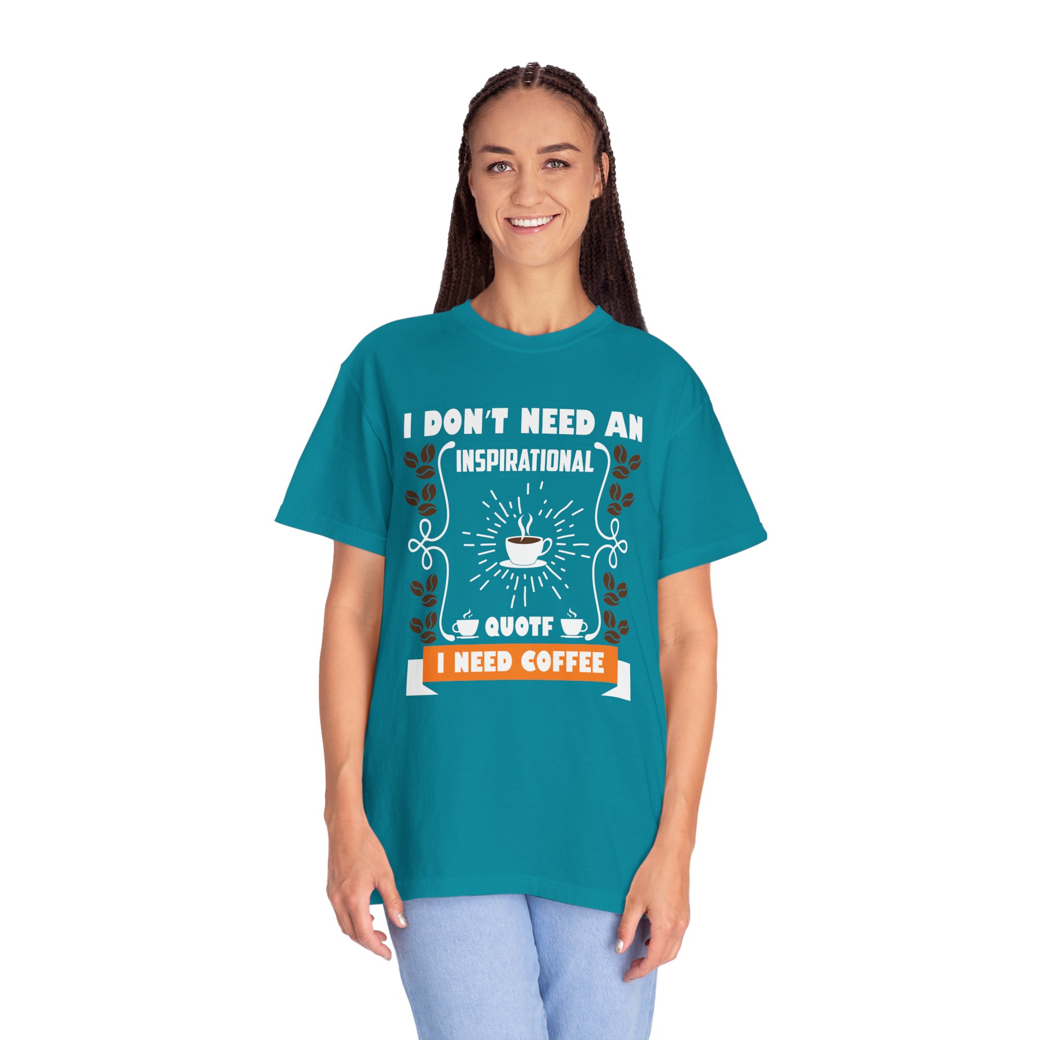 I Don’t Need an Inspirational Quote, I Need Coffee T-Shirt – Funny Coffee Lover Graphic Tee for Real Mood & Daily Energy.