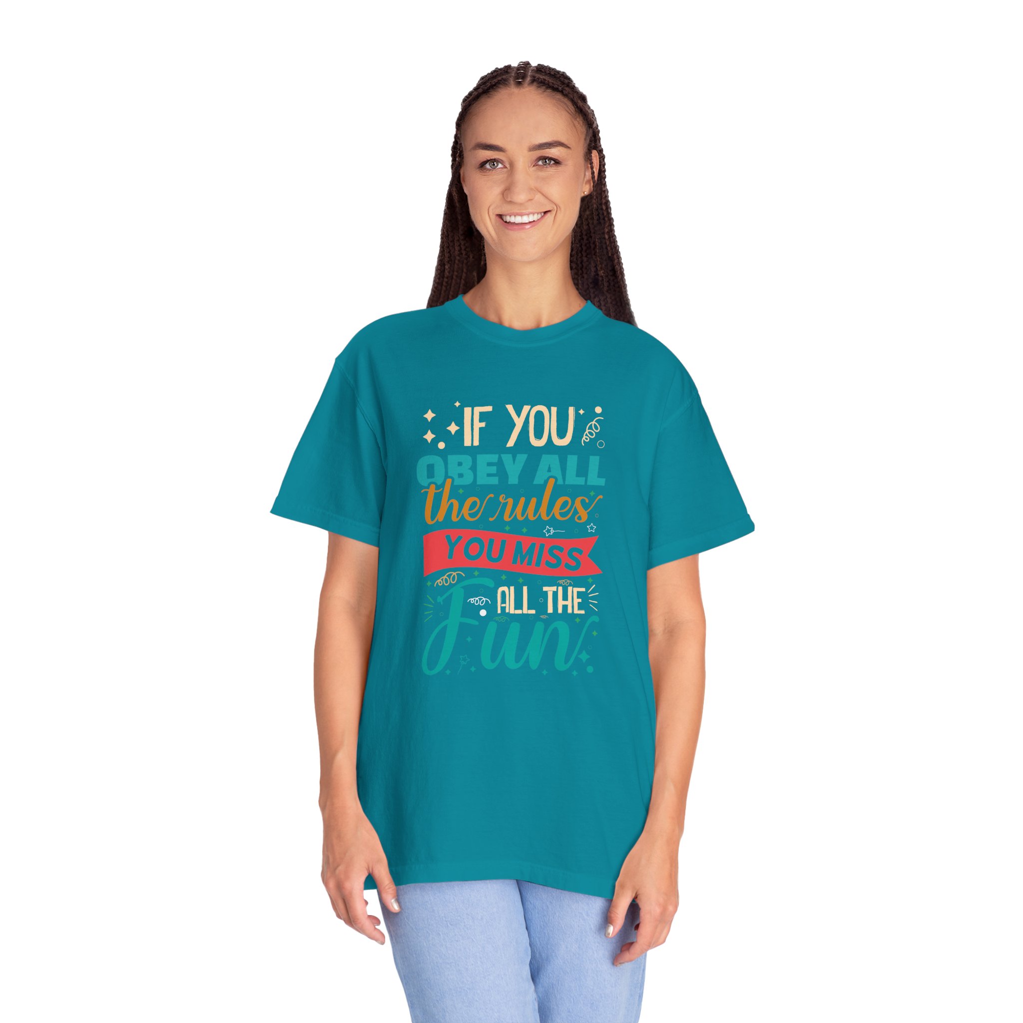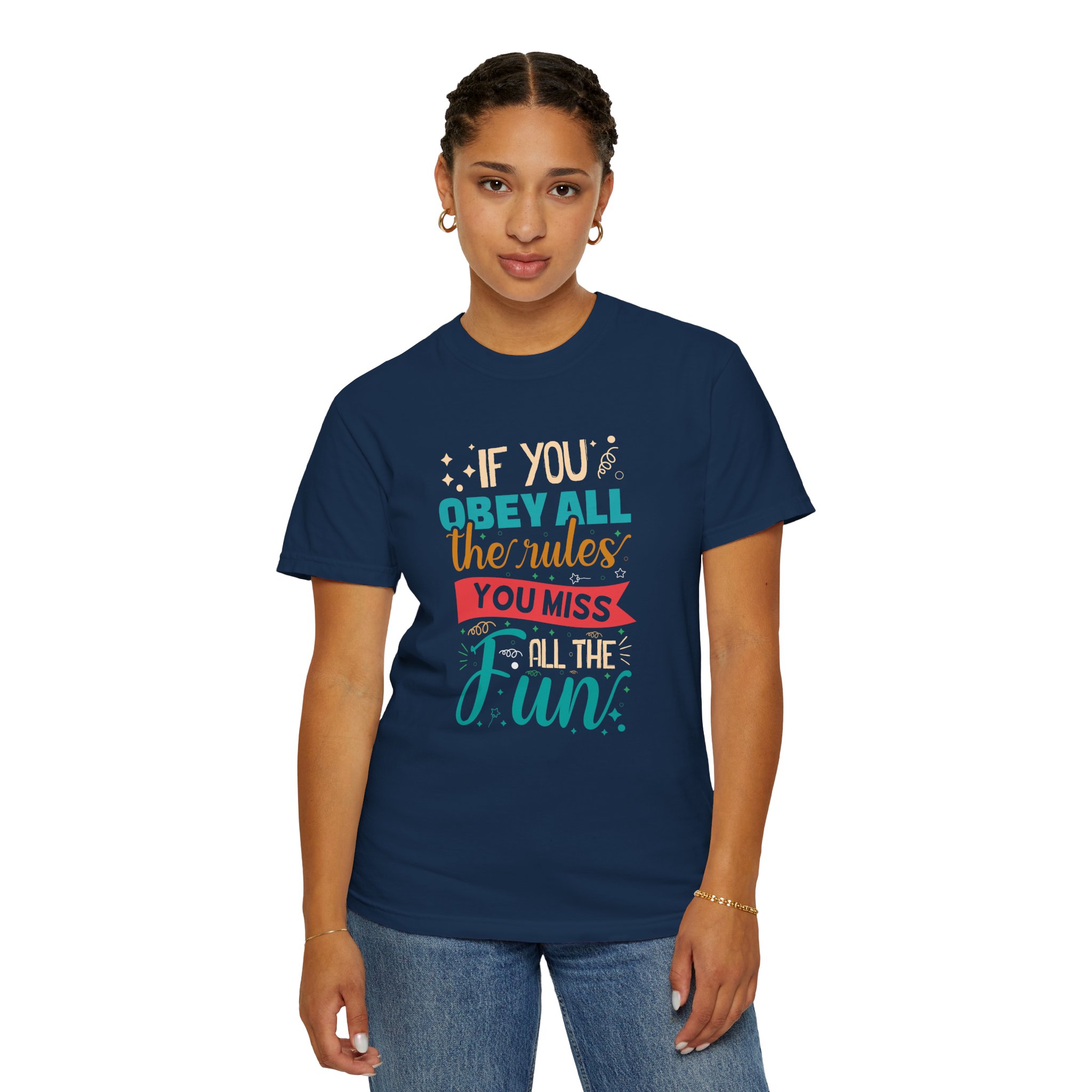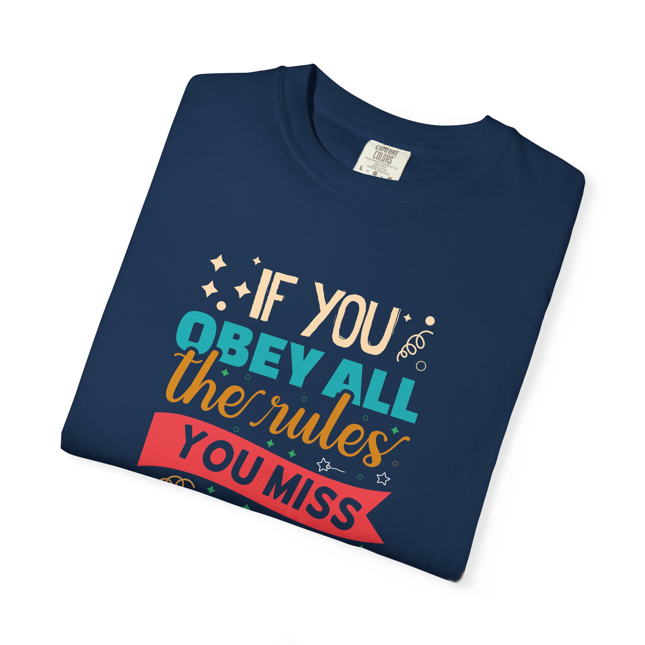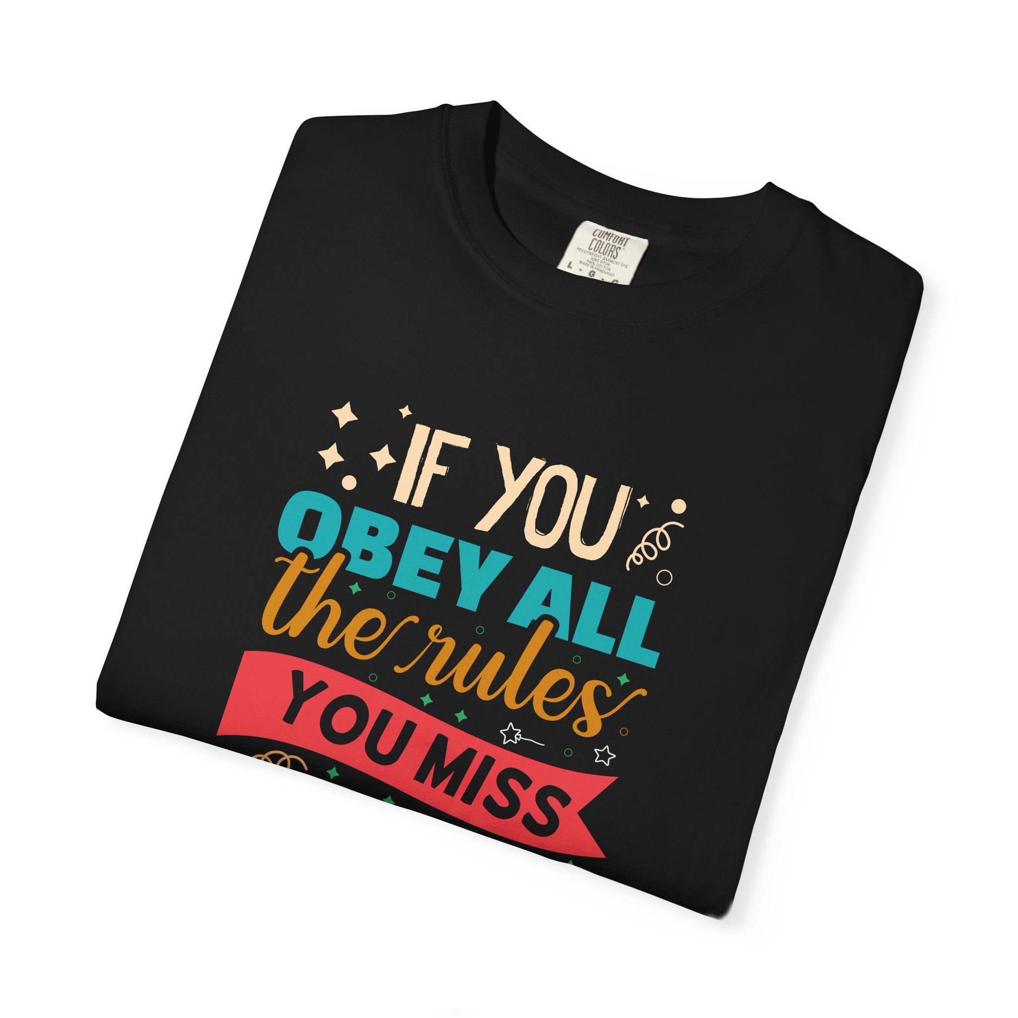 If You Obey All the Rules You Miss All the Fun T-Shirt – Vintage-Style Inspirational Graphic Tee for Freedom, Fun & Bold Living.