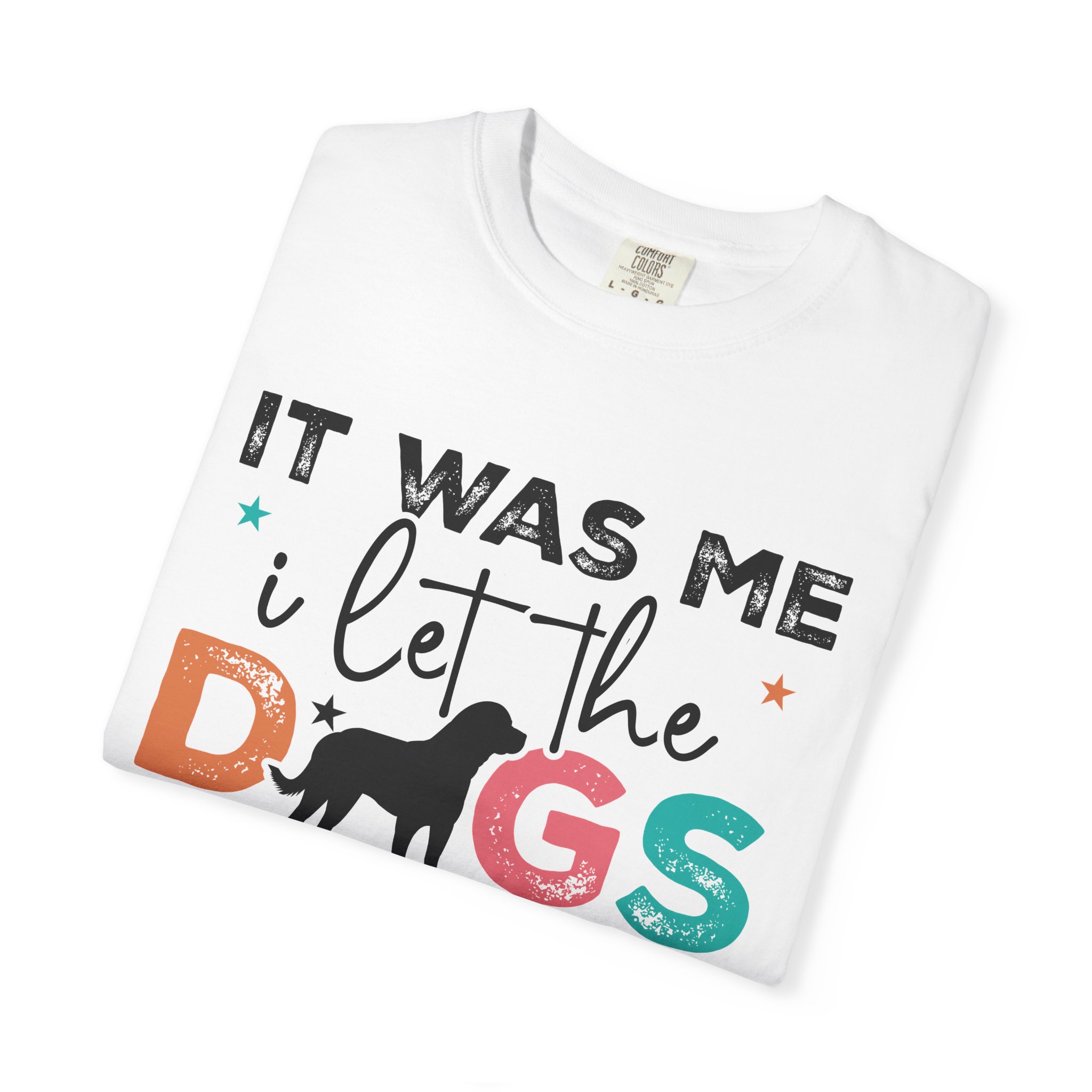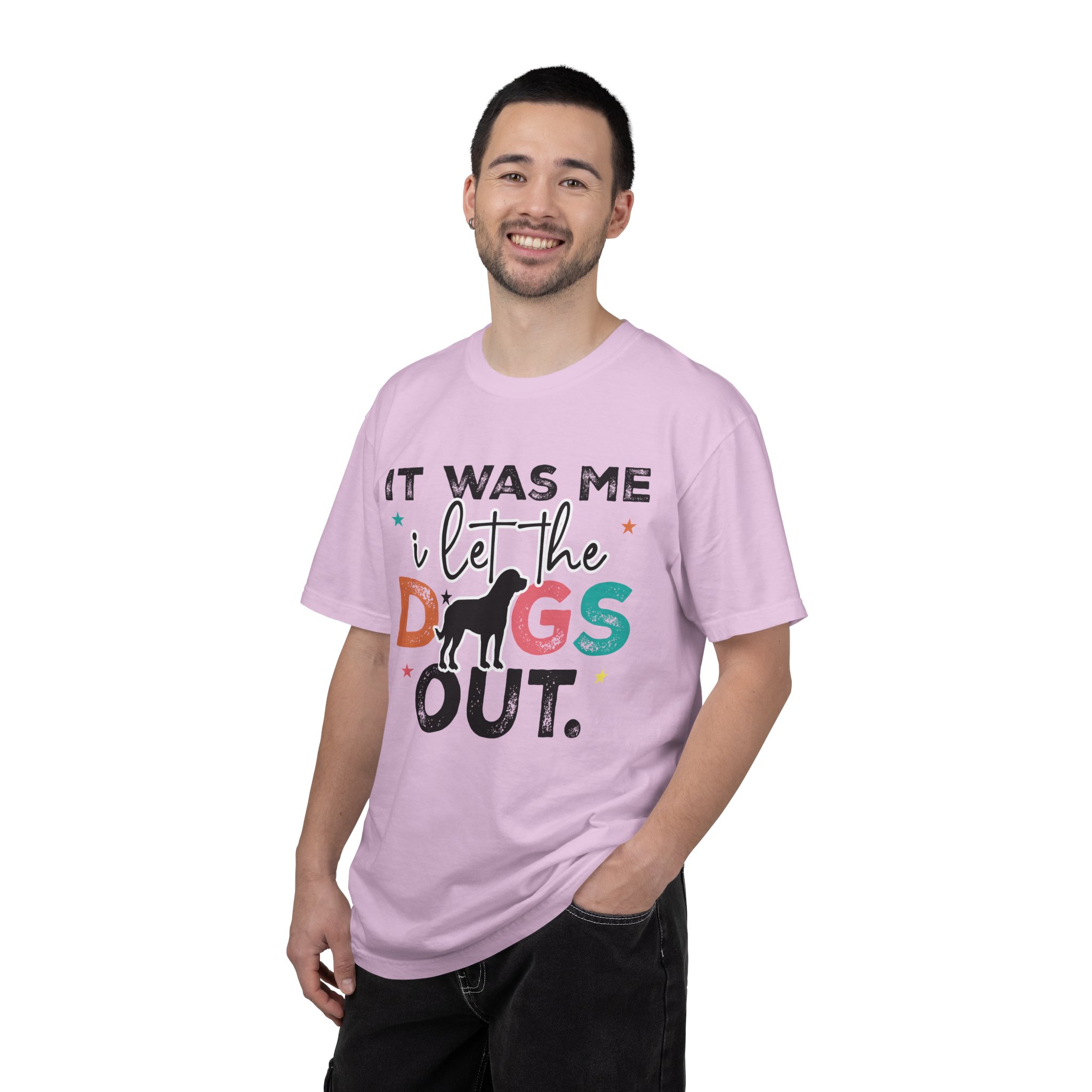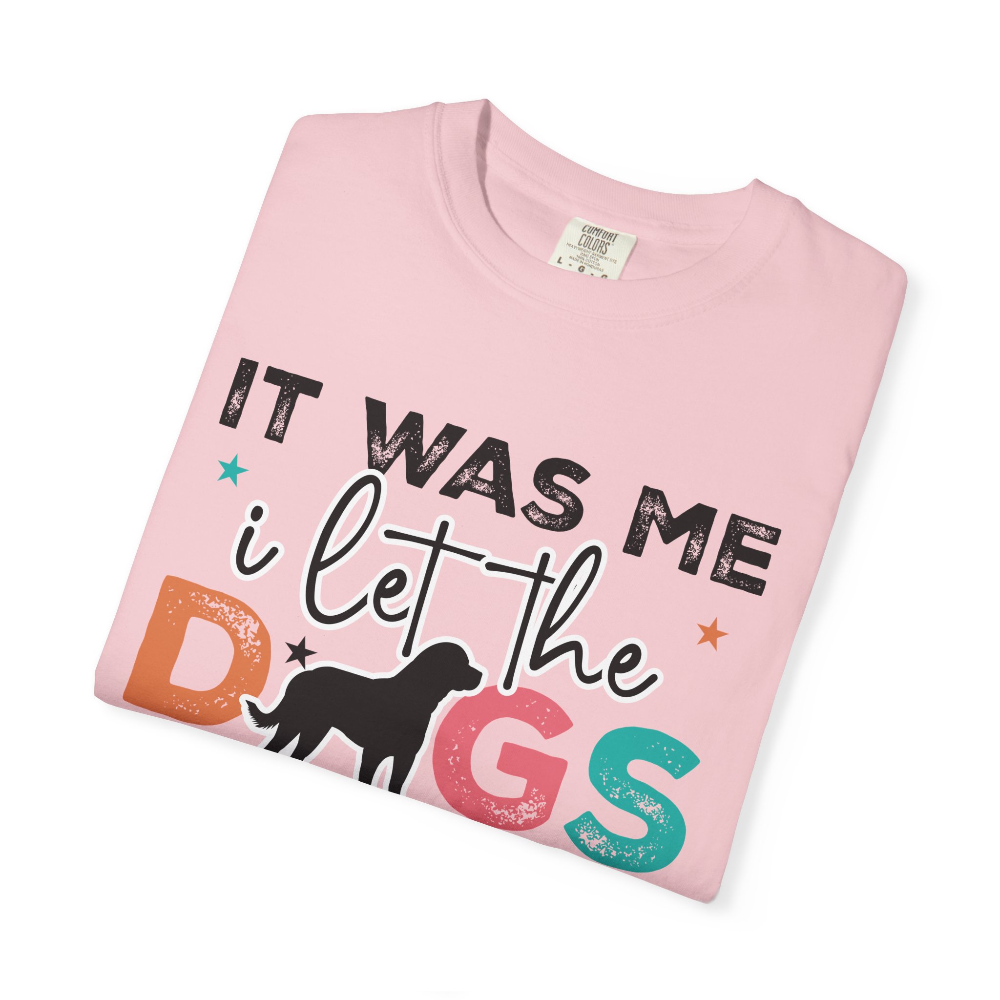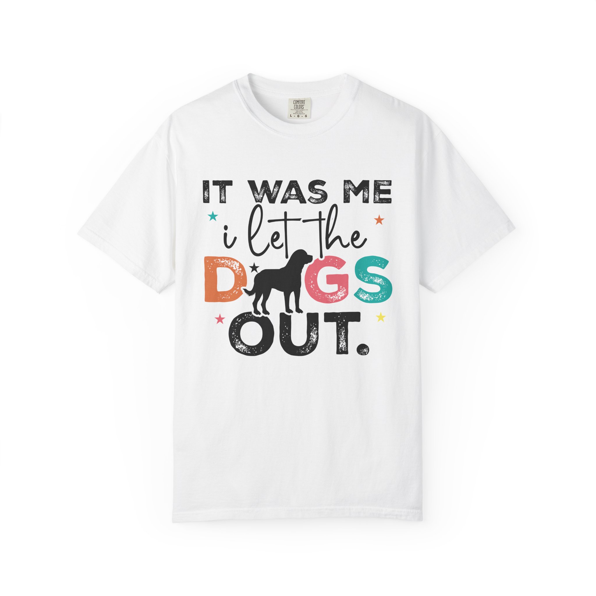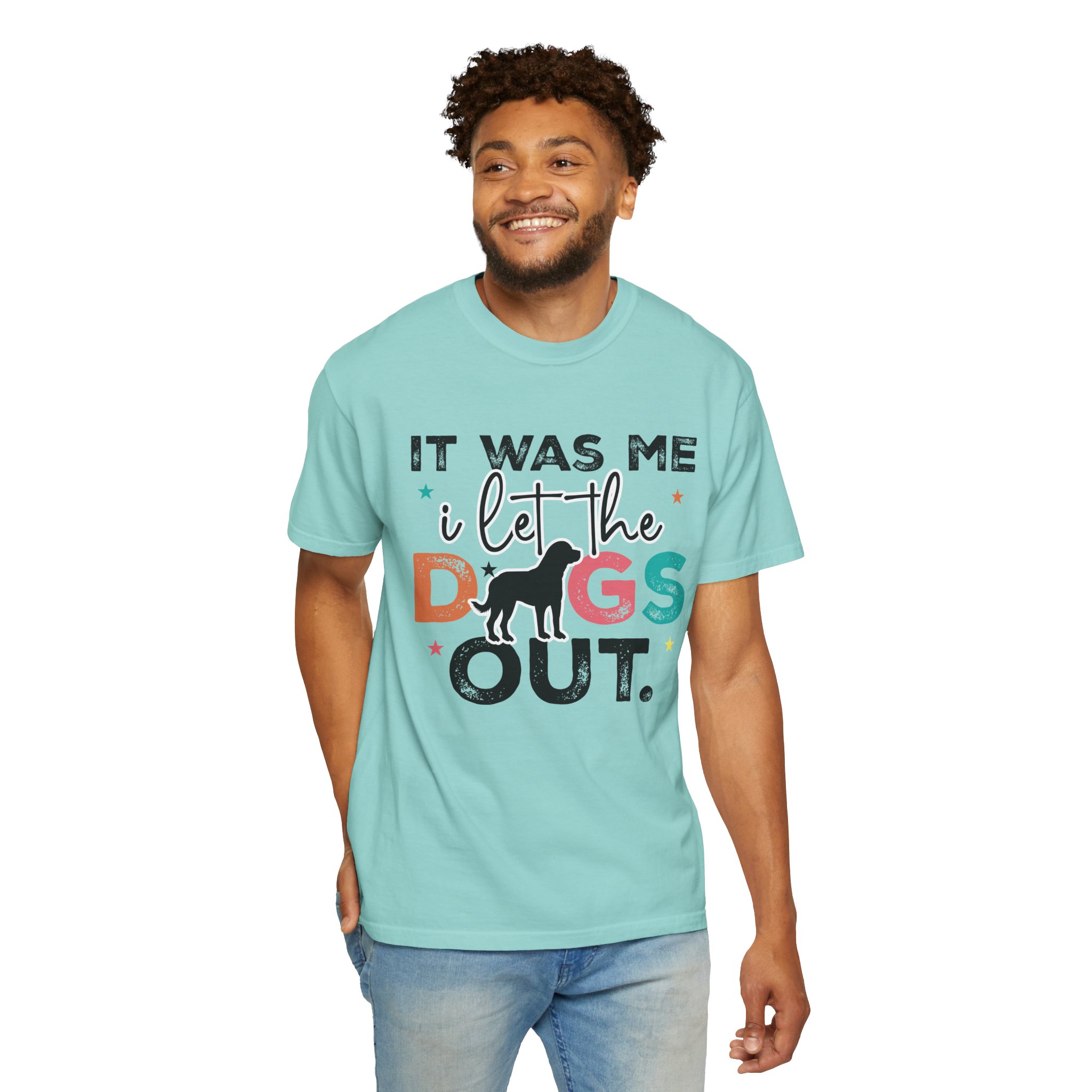 This garment-dyed tee brings casual comfort and playful personality to everyday wear. The relaxed, heavyweight cotton feels soft and worn-in thanks to the post-construction dyeing, while bold, colorful lettering and a silhouette of a dog create a lighthearted statement: “It was me, I let the dogs out.” It sits easily through morning walks, backyard hangouts, and dog-park runs — a familiar layer that looks lived-in from the first wear and holds up thanks to double-needle stitching and pre-shrunk ring-spun cotton. Offered in a wide range of colors and sizes, it blends durable construction with a friendly, pet-loving vibe that slips into routines and memories alike.