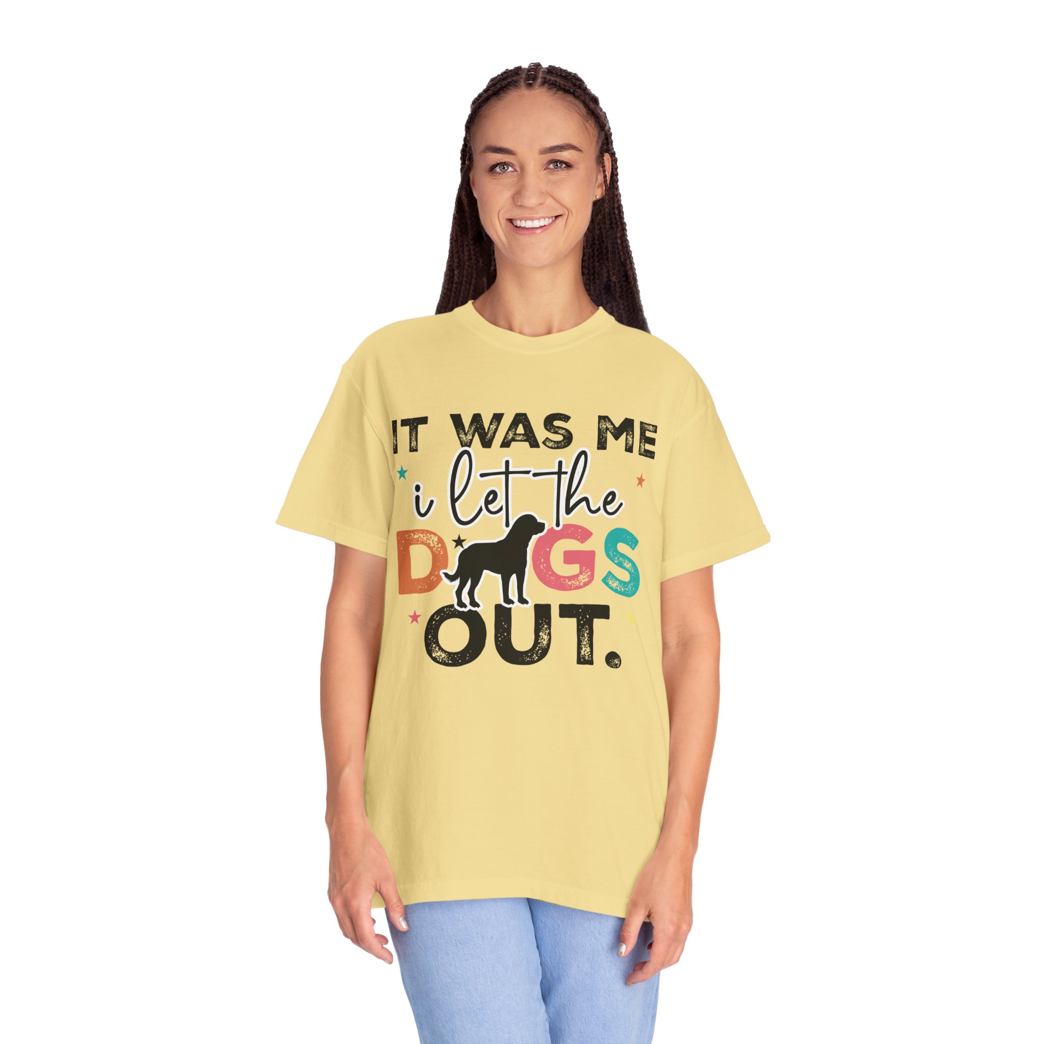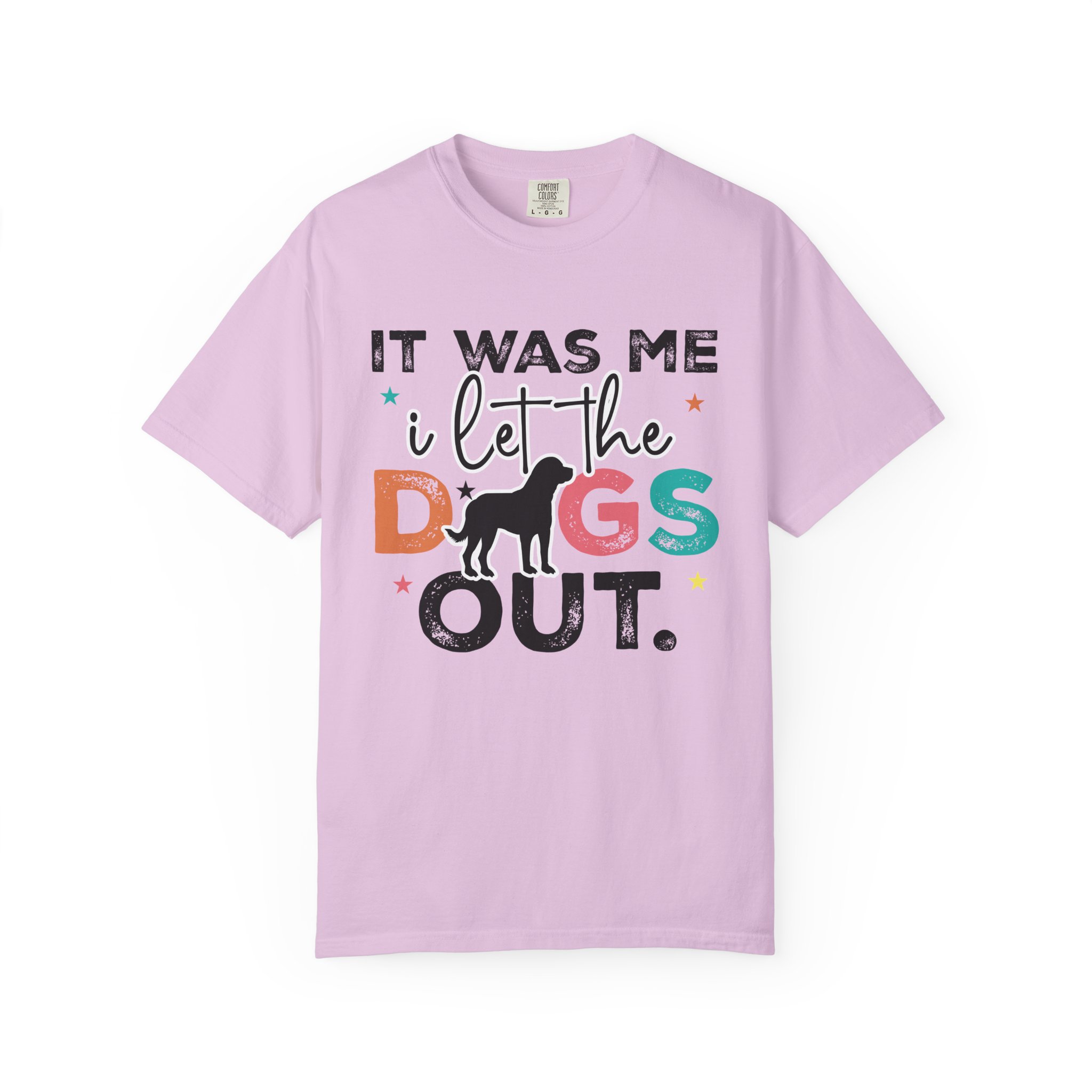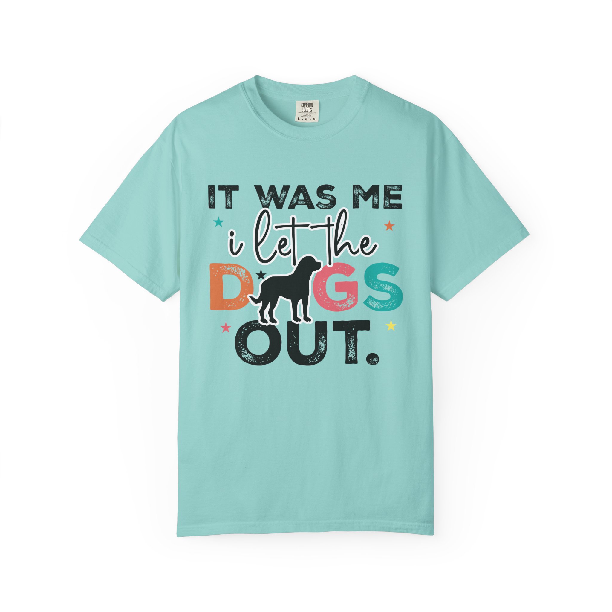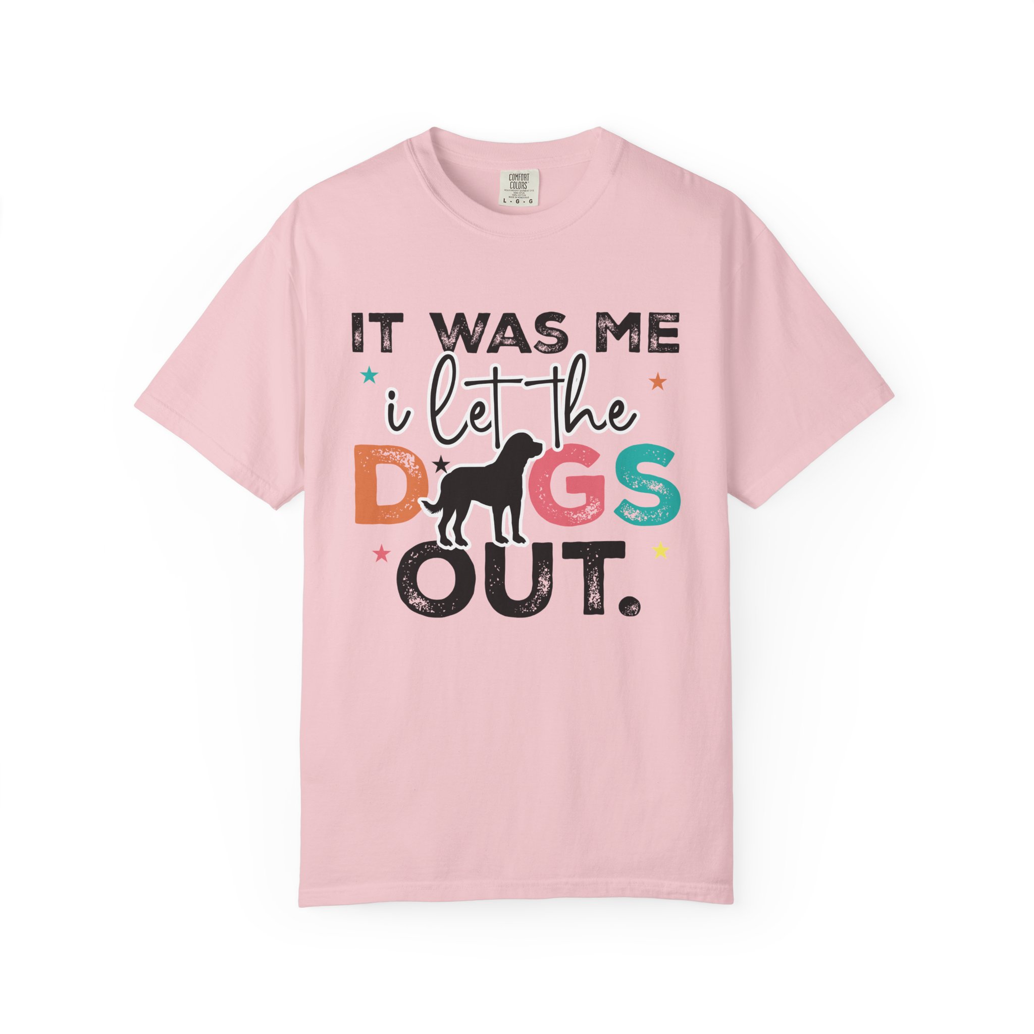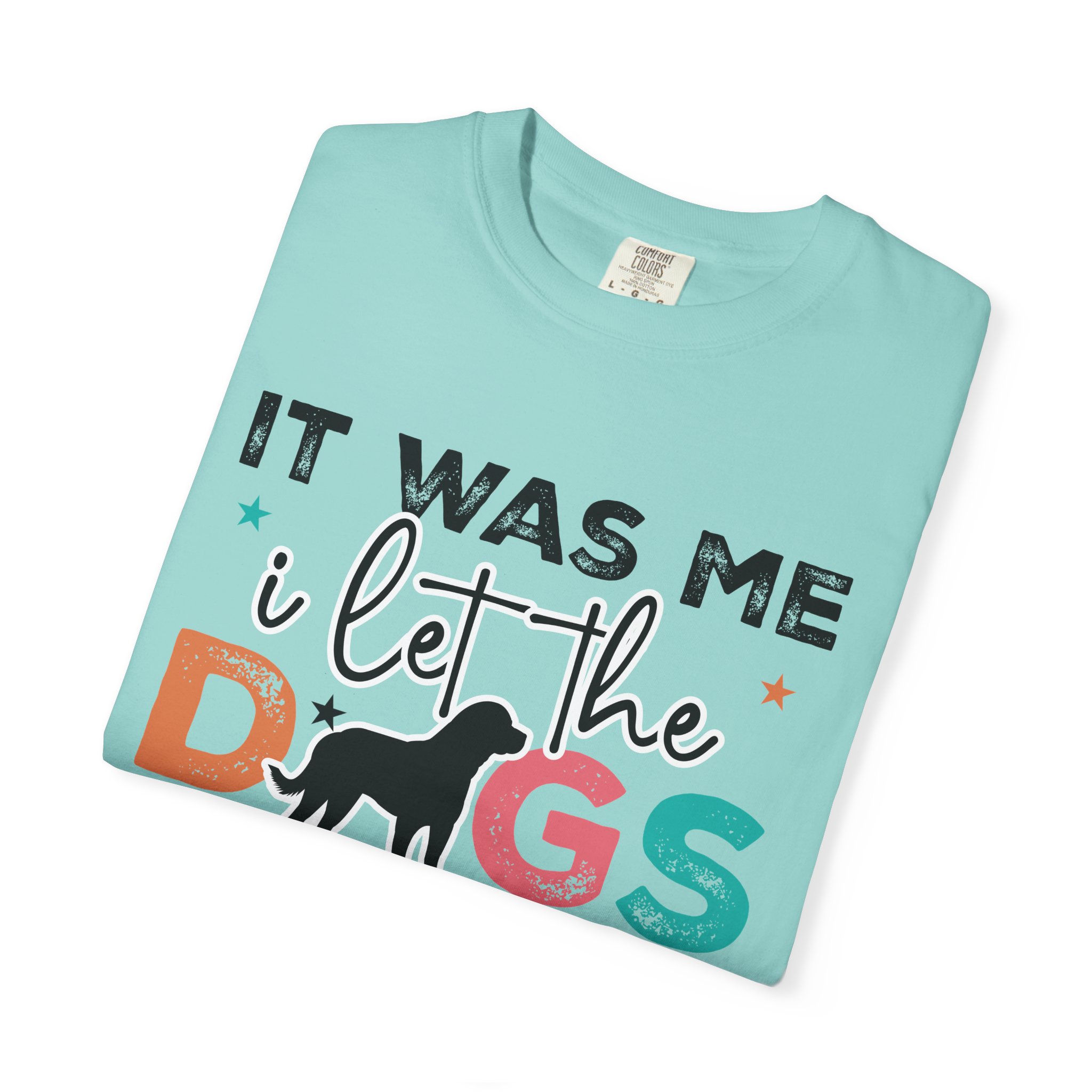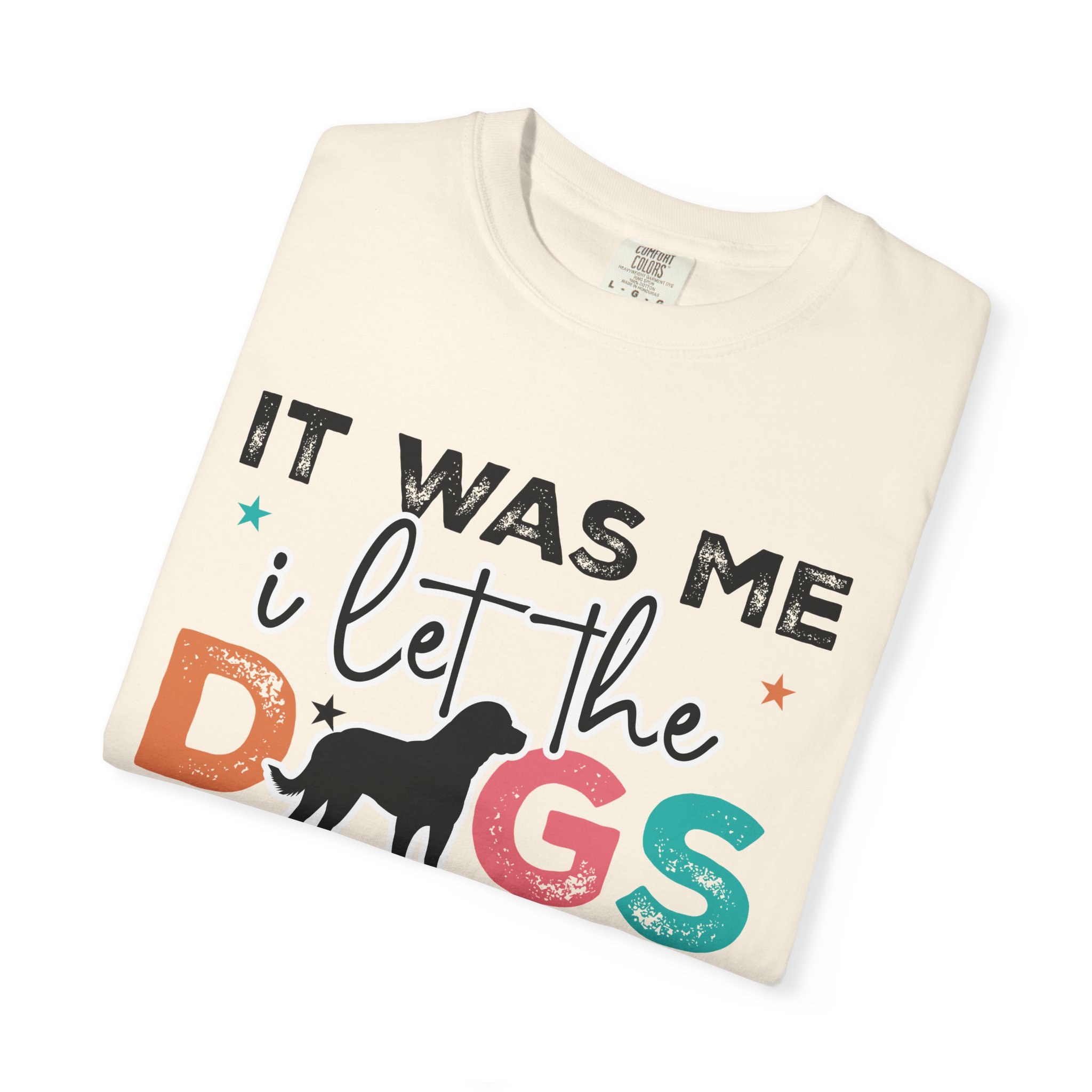 This garment-dyed tee brings casual comfort and playful personality to everyday wear. The relaxed, heavyweight cotton feels soft and worn-in thanks to the post-construction dyeing, while bold, colorful lettering and a silhouette of a dog create a lighthearted statement: “It was me, I let the dogs out.” It sits easily through morning walks, backyard hangouts, and dog-park runs — a familiar layer that looks lived-in from the first wear and holds up thanks to double-needle stitching and pre-shrunk ring-spun cotton. Offered in a wide range of colors and sizes, it blends durable construction with a friendly, pet-loving vibe that slips into routines and memories alike.