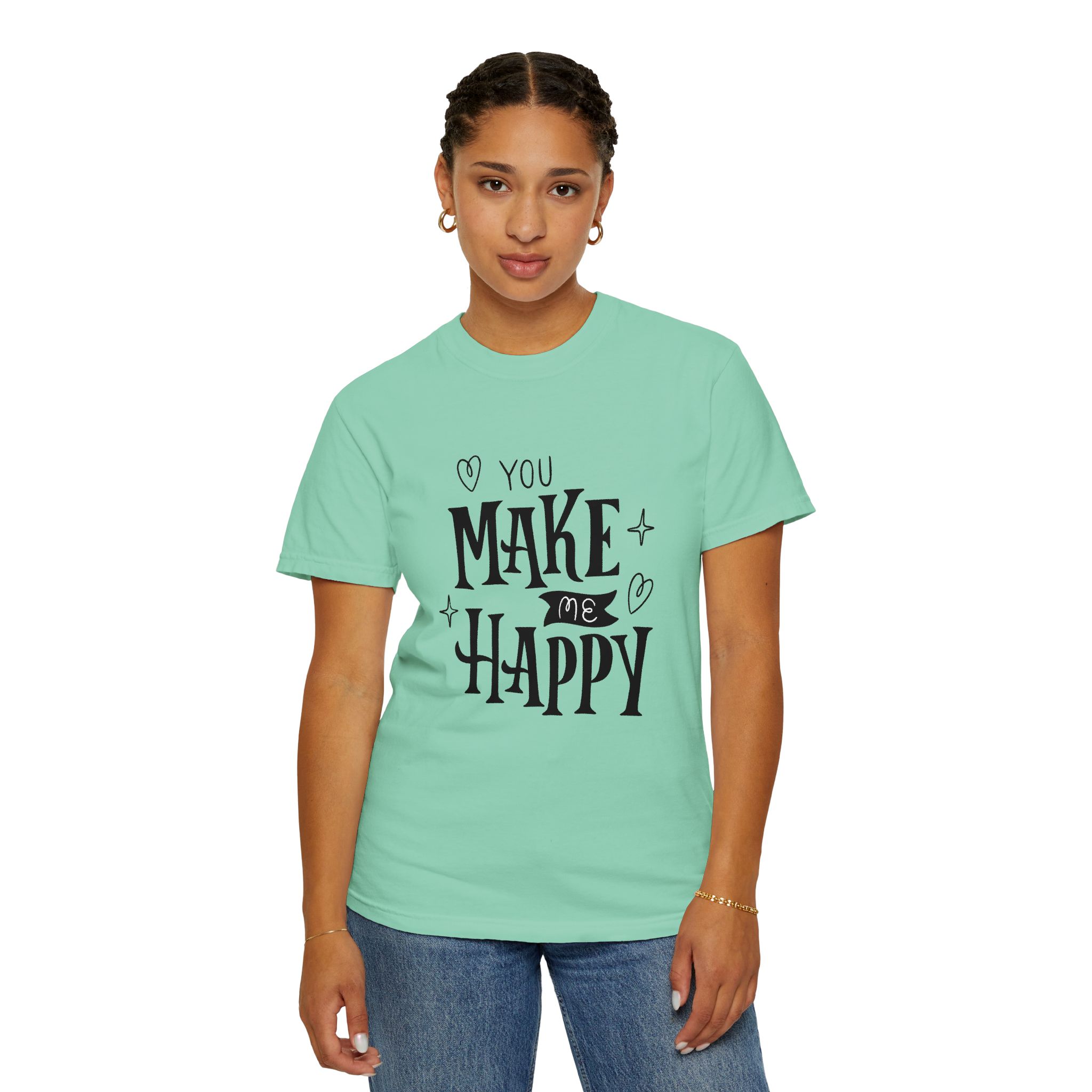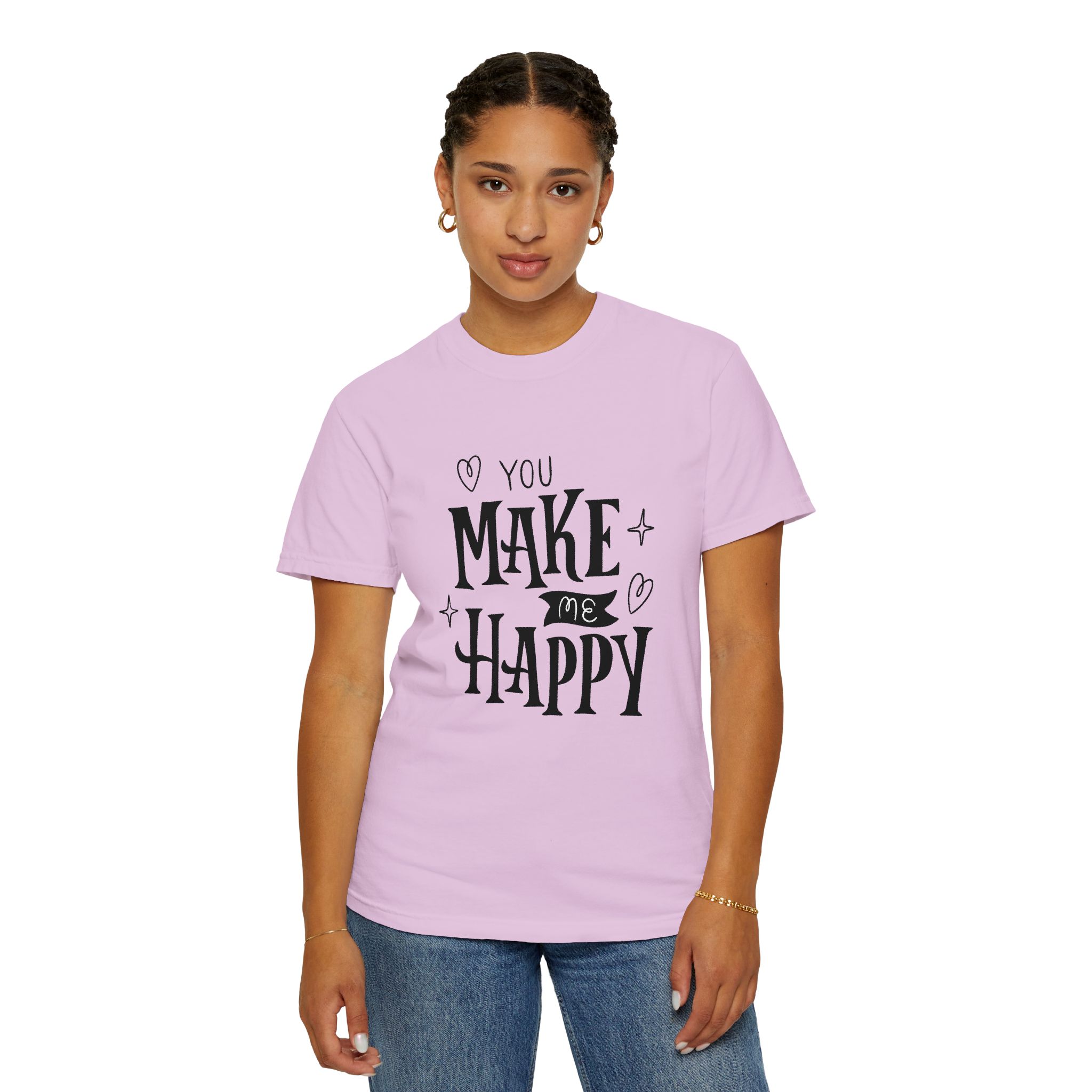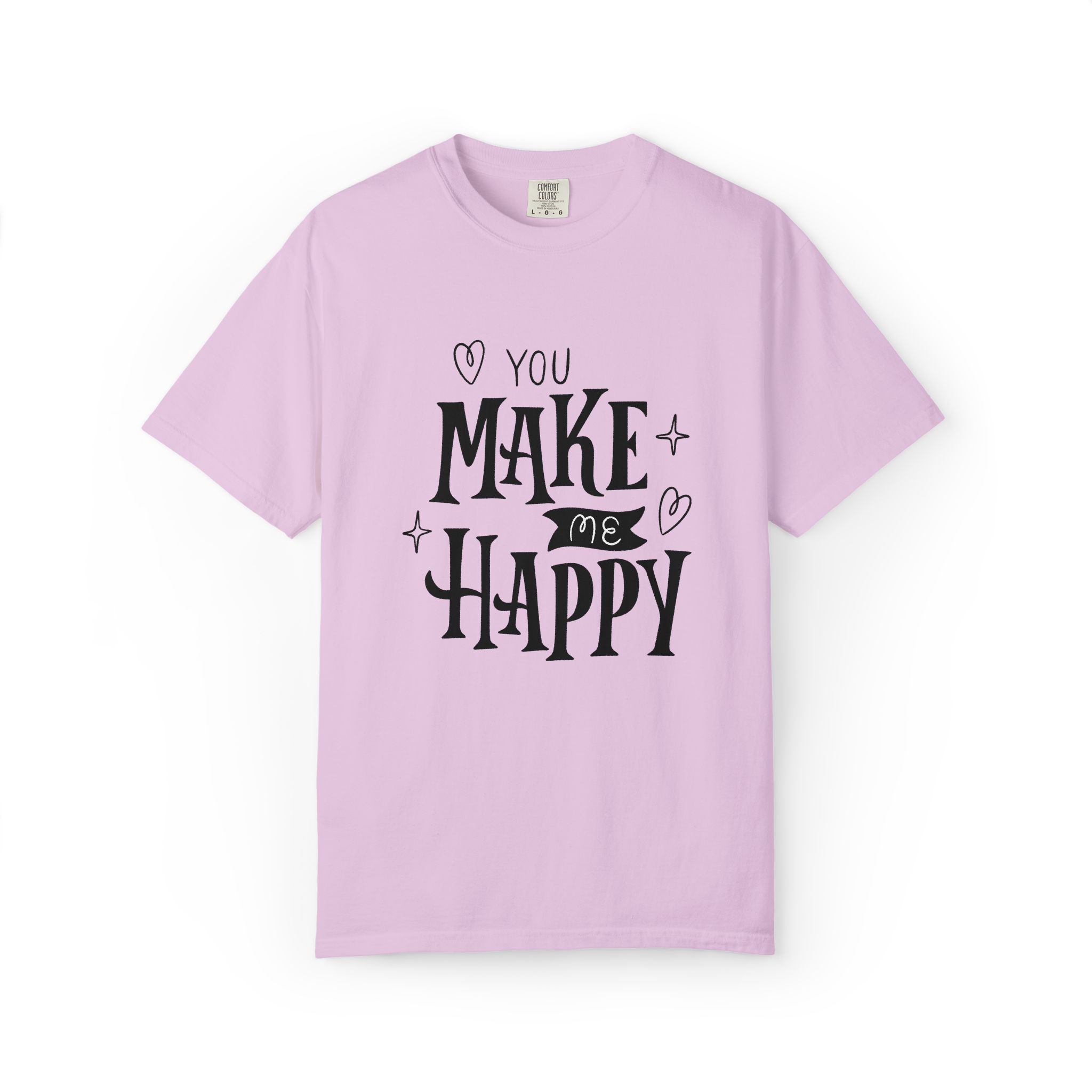 Joyful Message T-Shirt – You Make Me Happy – Gift for Friends, Casual Wear, Birthday Gift, Uplifting Apparel, Everyday Comfort.