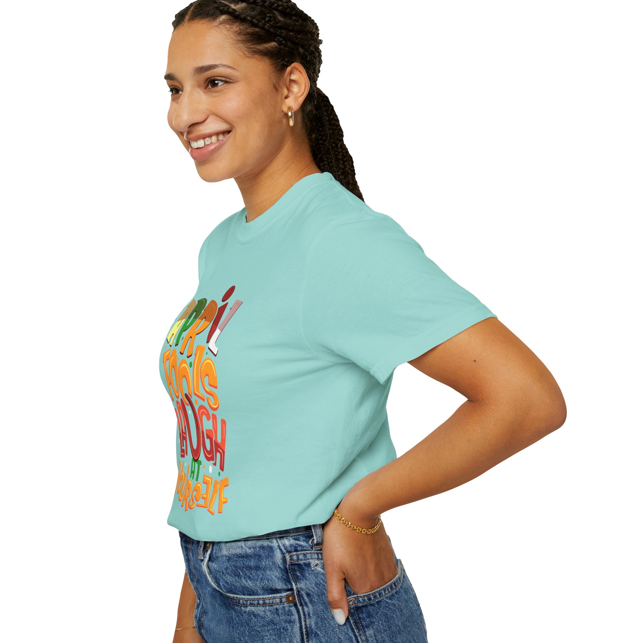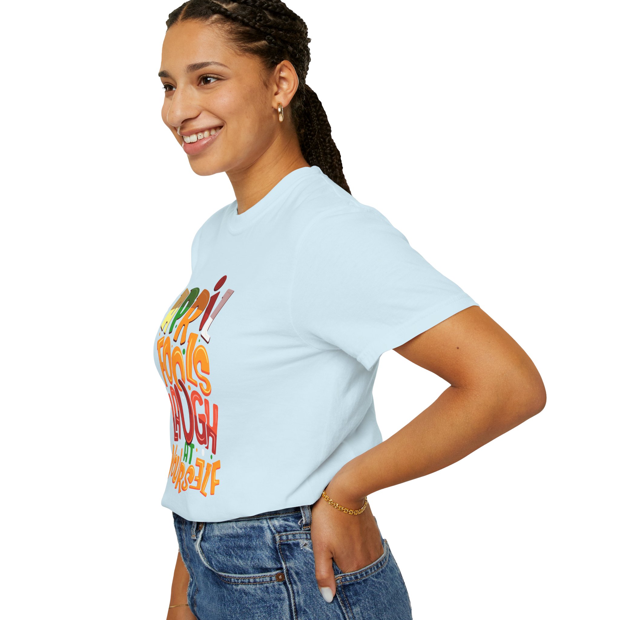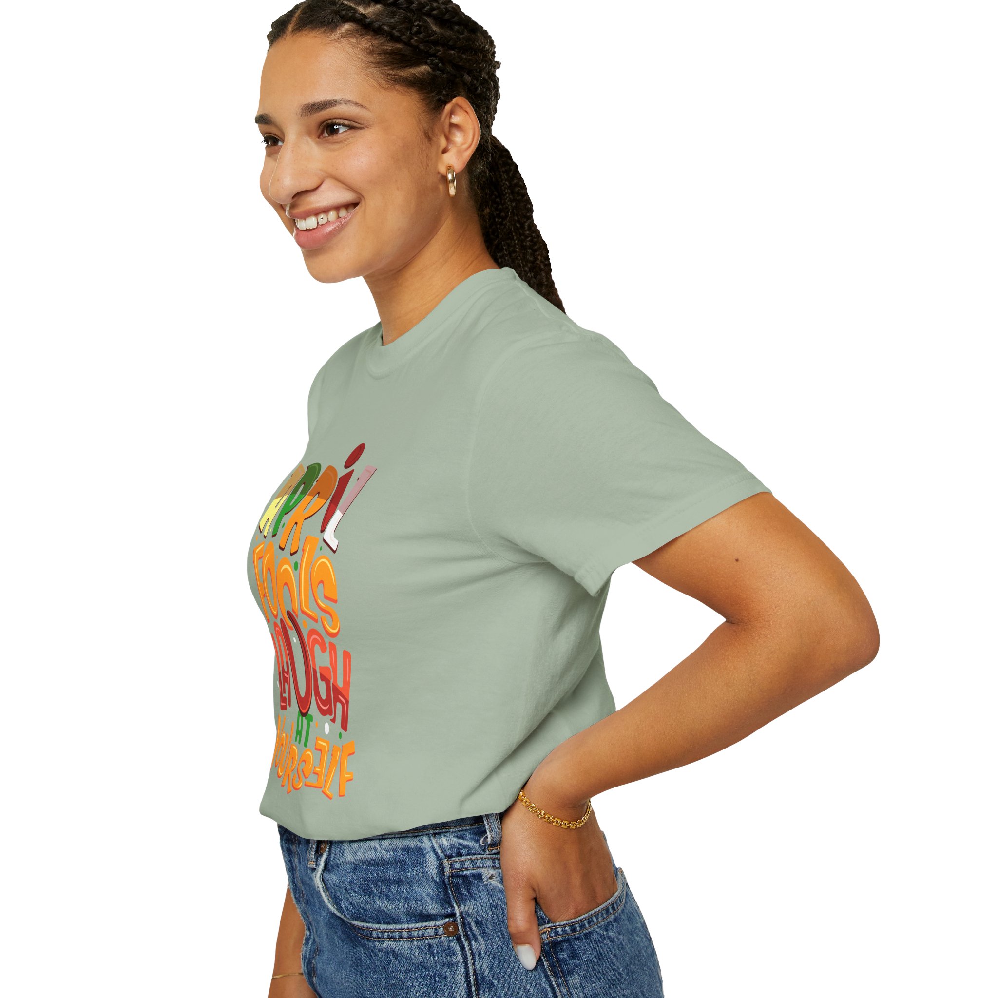 This relaxed, heavyweight tee brings playful color and vintage-soft comfort to casual days. The garment-dyed fabric has a lived-in texture that deepens with wear, while the bold, hand-lettered design — bright oranges, reds and greens — announces a cheeky April Fools vibe that feels lively, not shouty. Wear it to light up a slow morning coffee run, a friend’s prank-filled hangout, or any laid-back weekend when you want to smile first and explain later. The roomy cut and durable double-needle seams stand up to repeated wear and washes, and the tubular knit (no side seams) keeps the silhouette clean and flattering. Available in a wide range of colors and sizes, this tee layers easily under jackets or pairs with denim for an approachable, fun look.