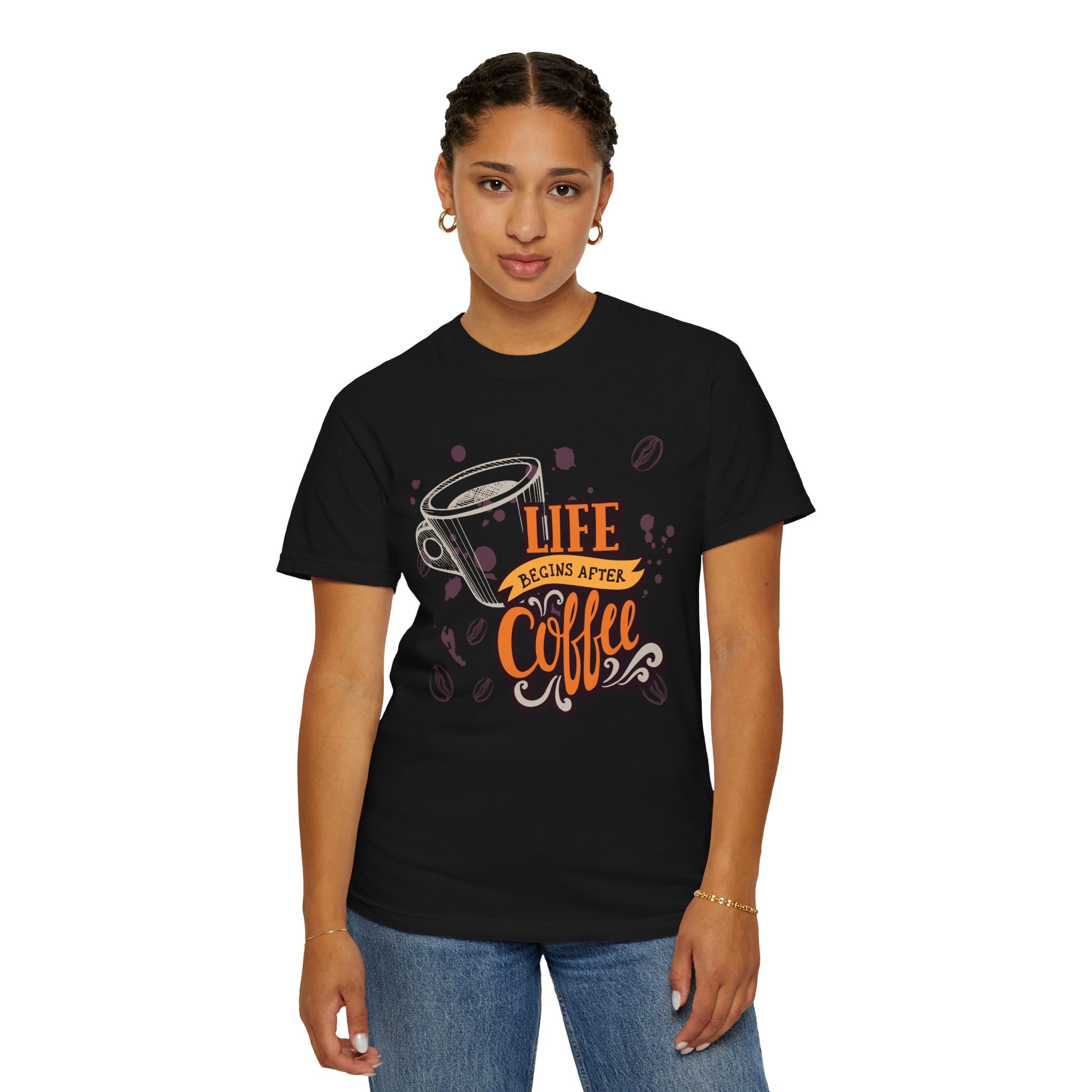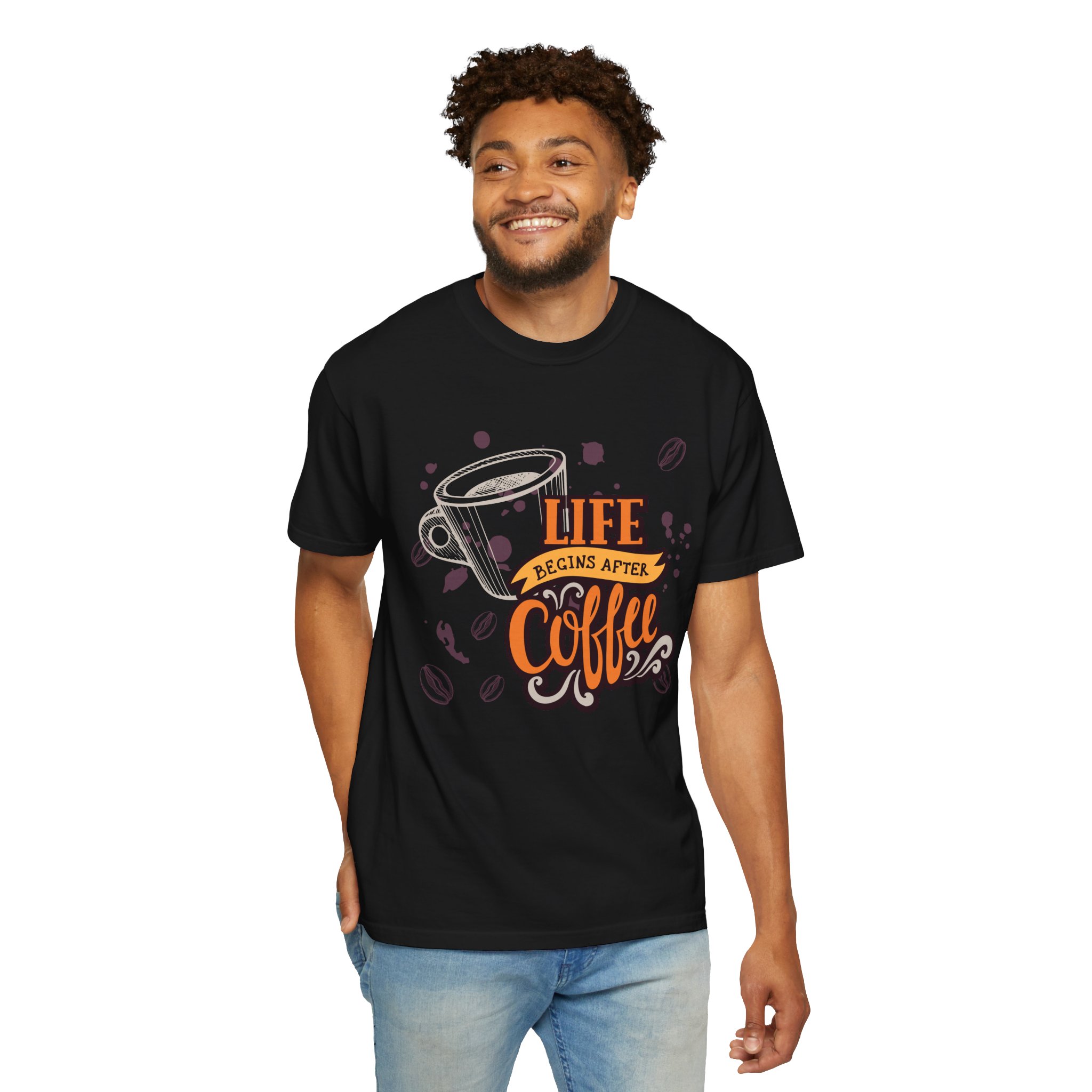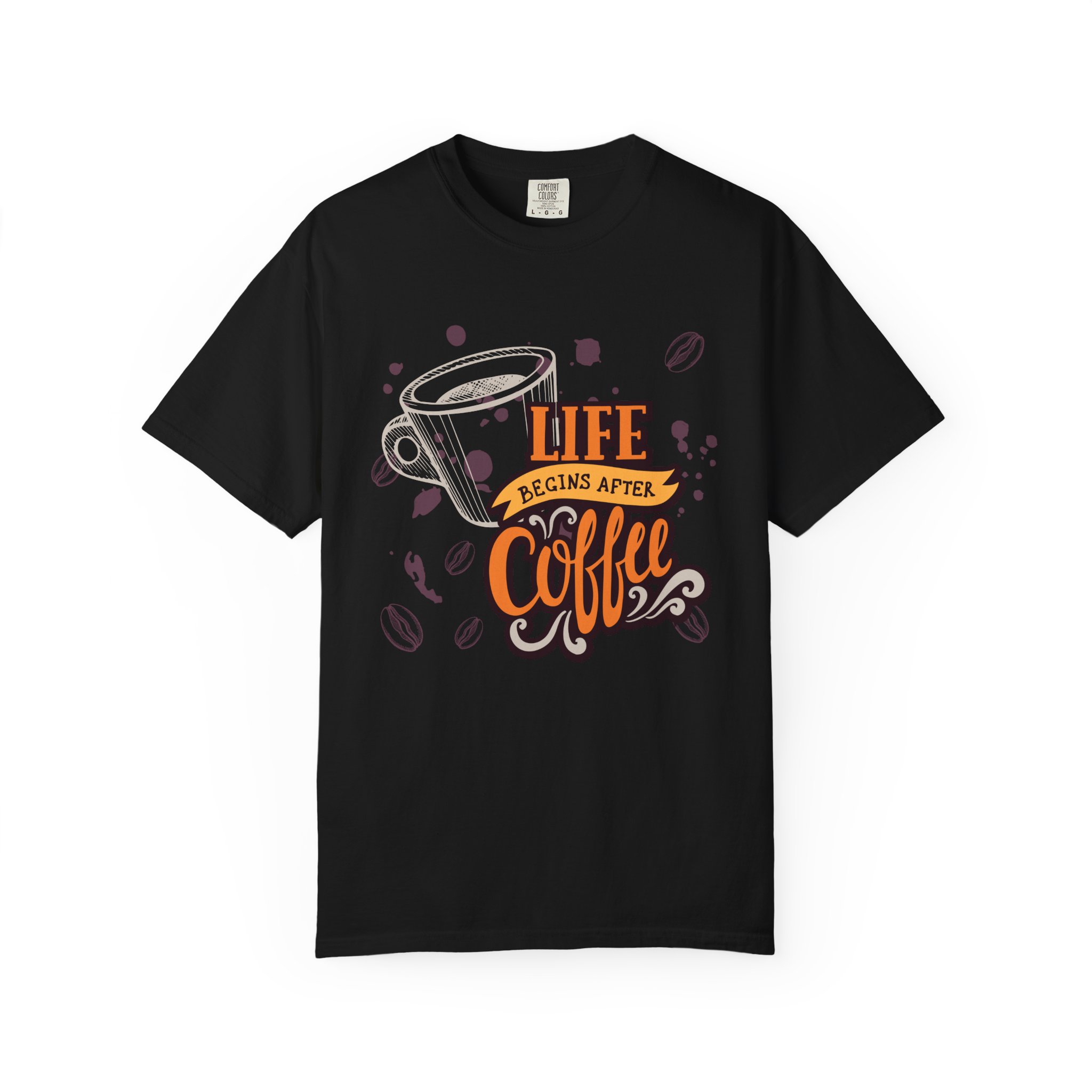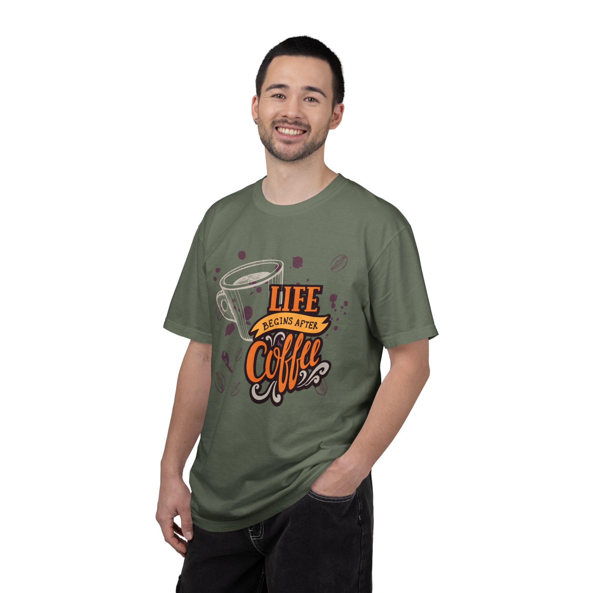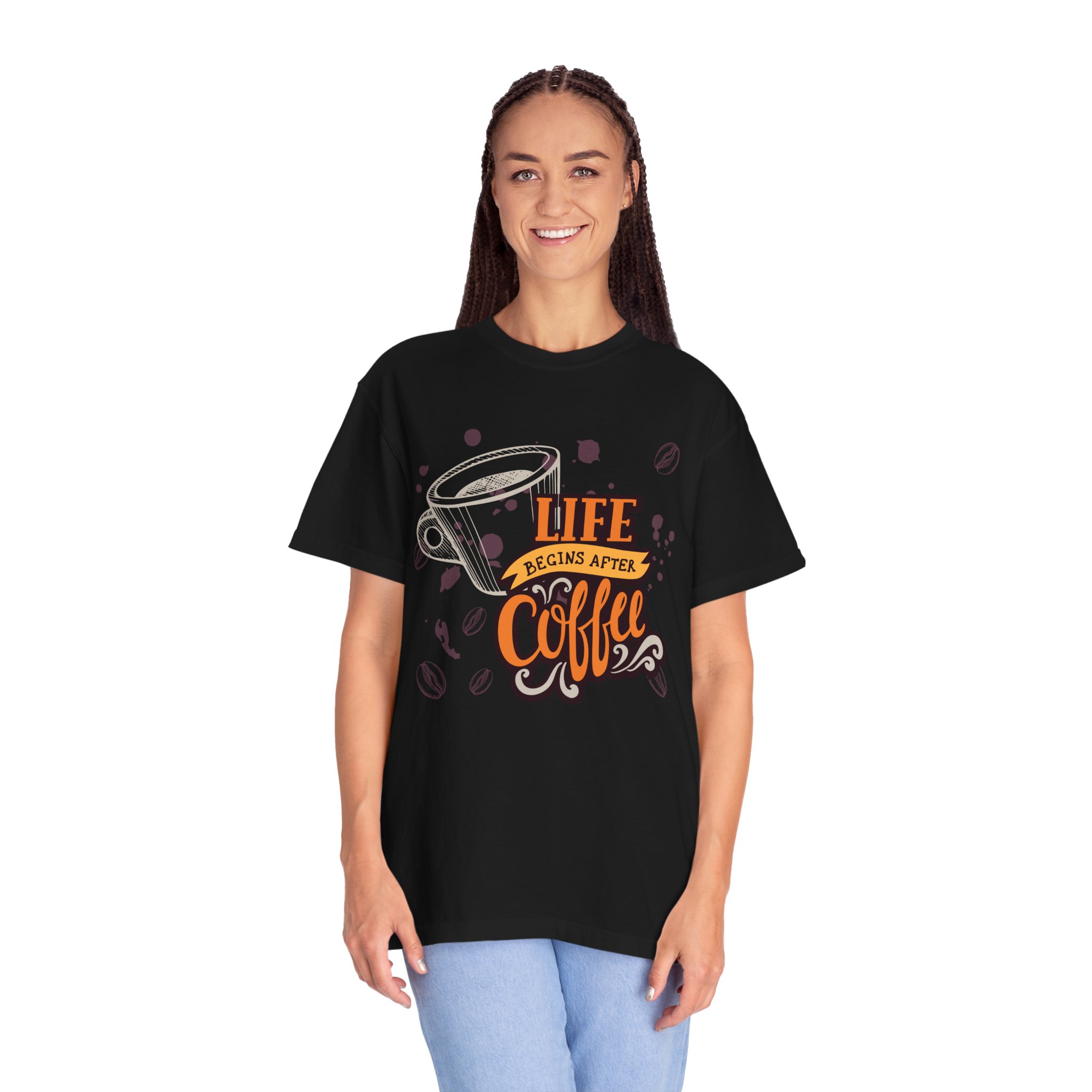 Life Begins After Coffee T-Shirt – Funny Coffee Lover Graphic Tee for Morning Motivation & Daily Energy.