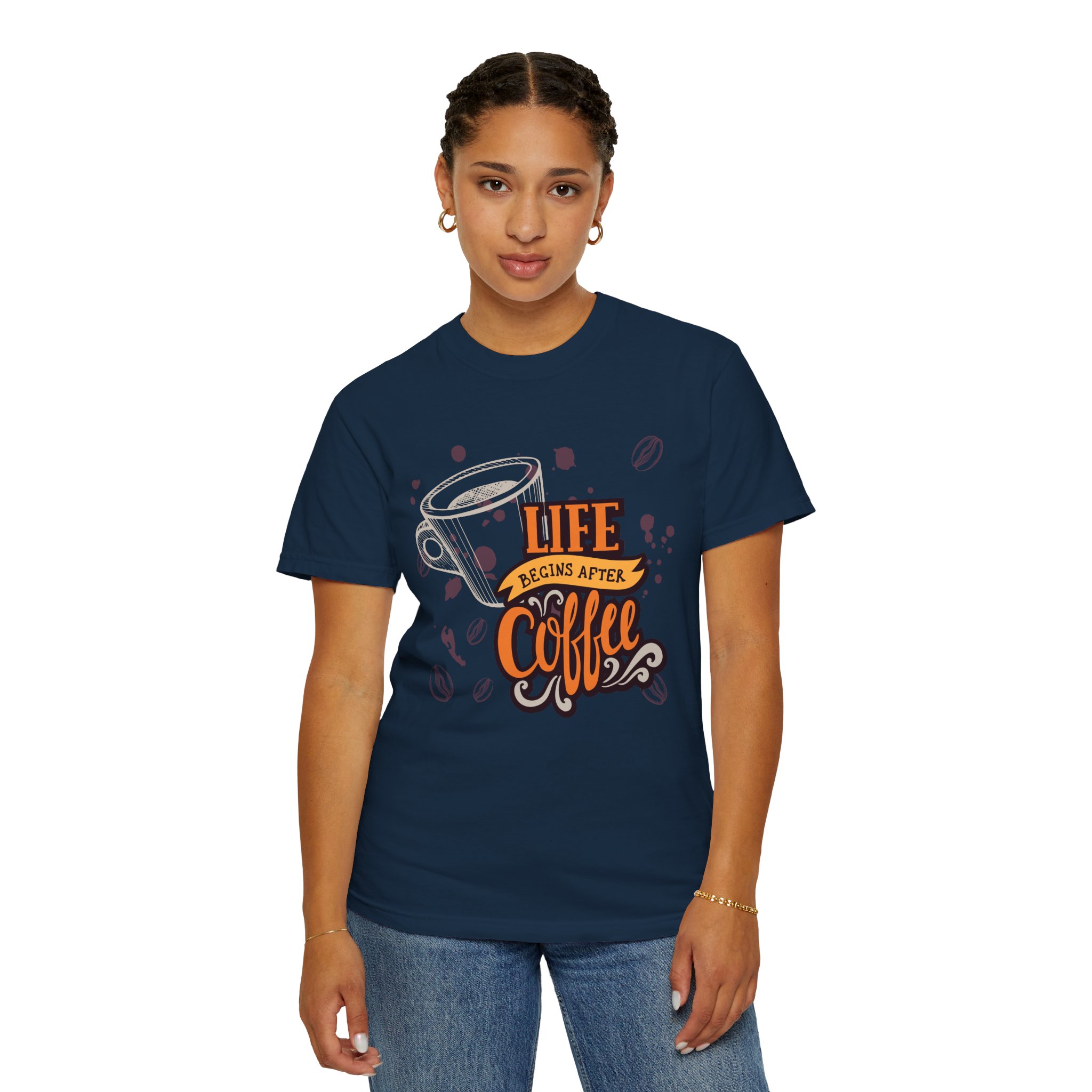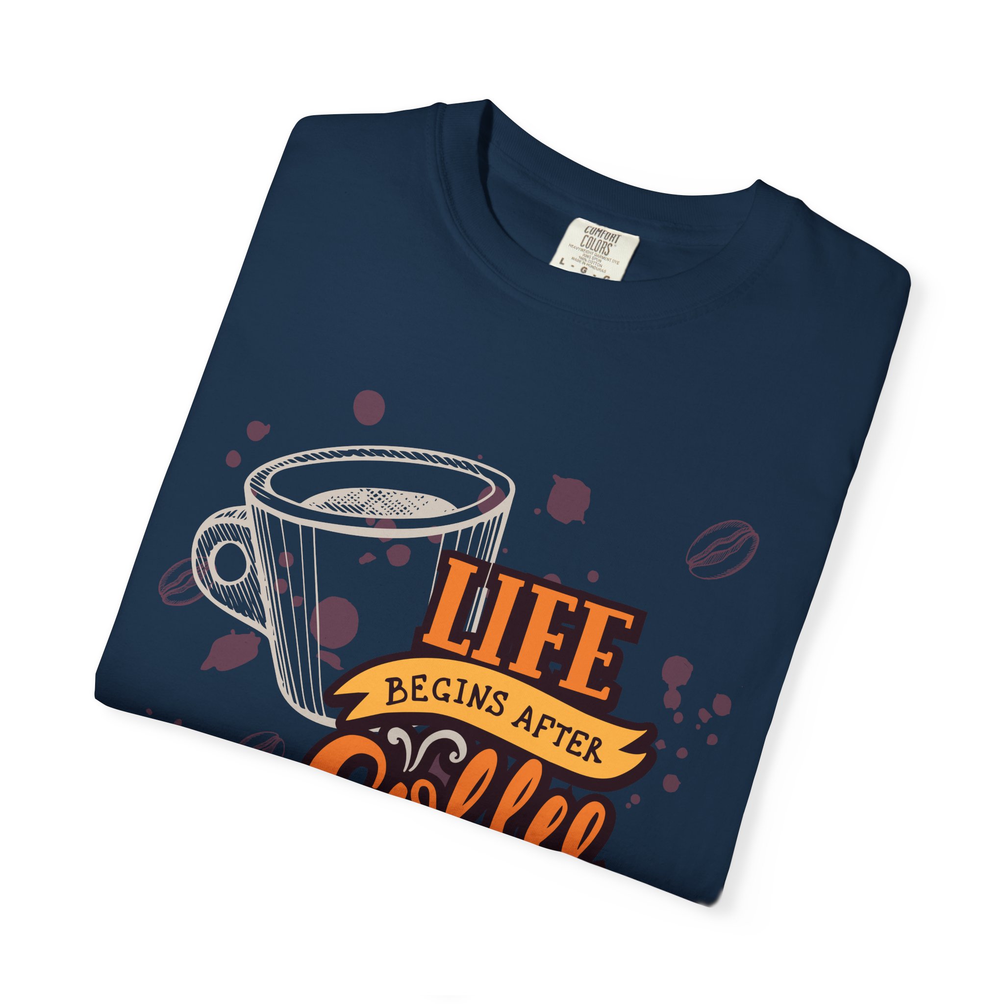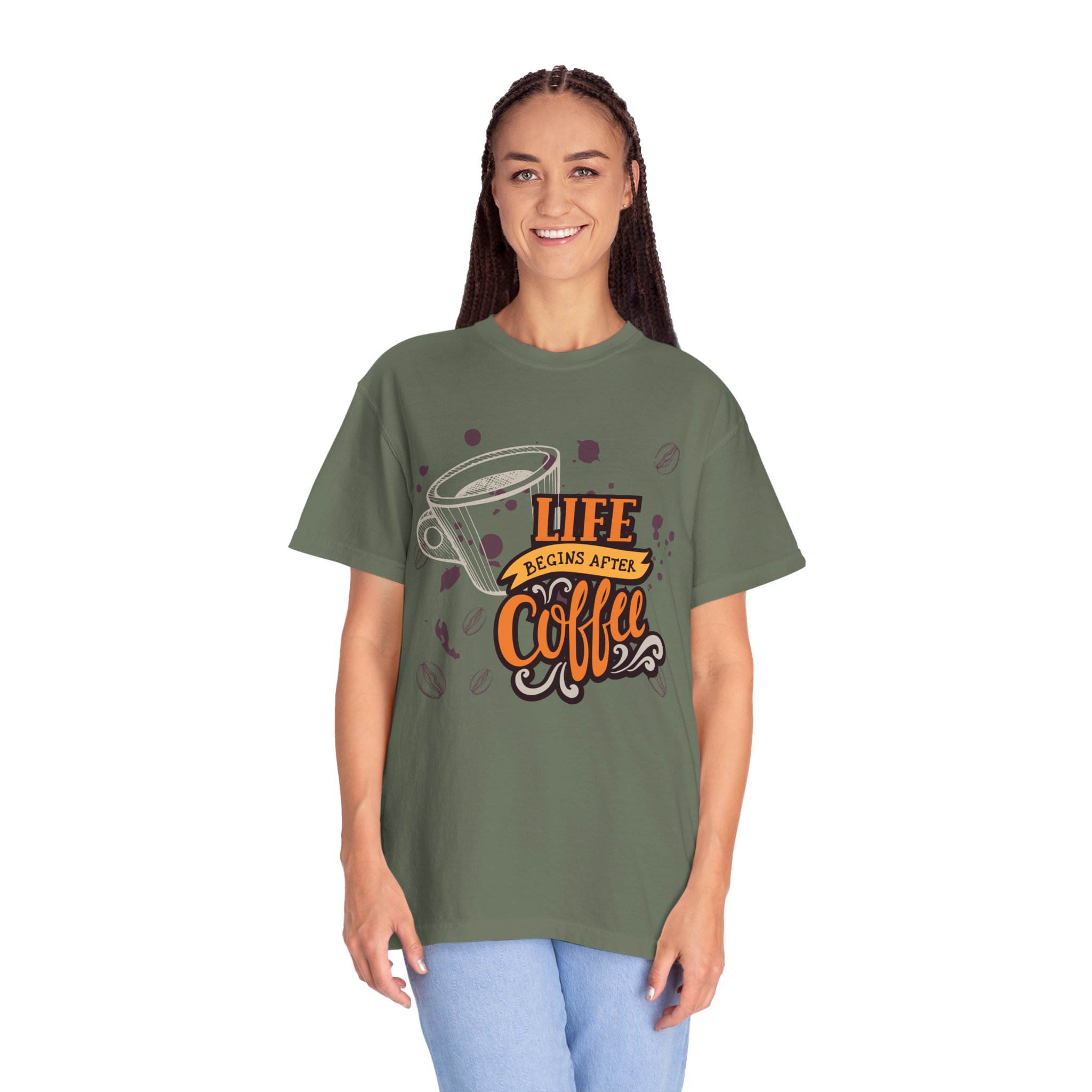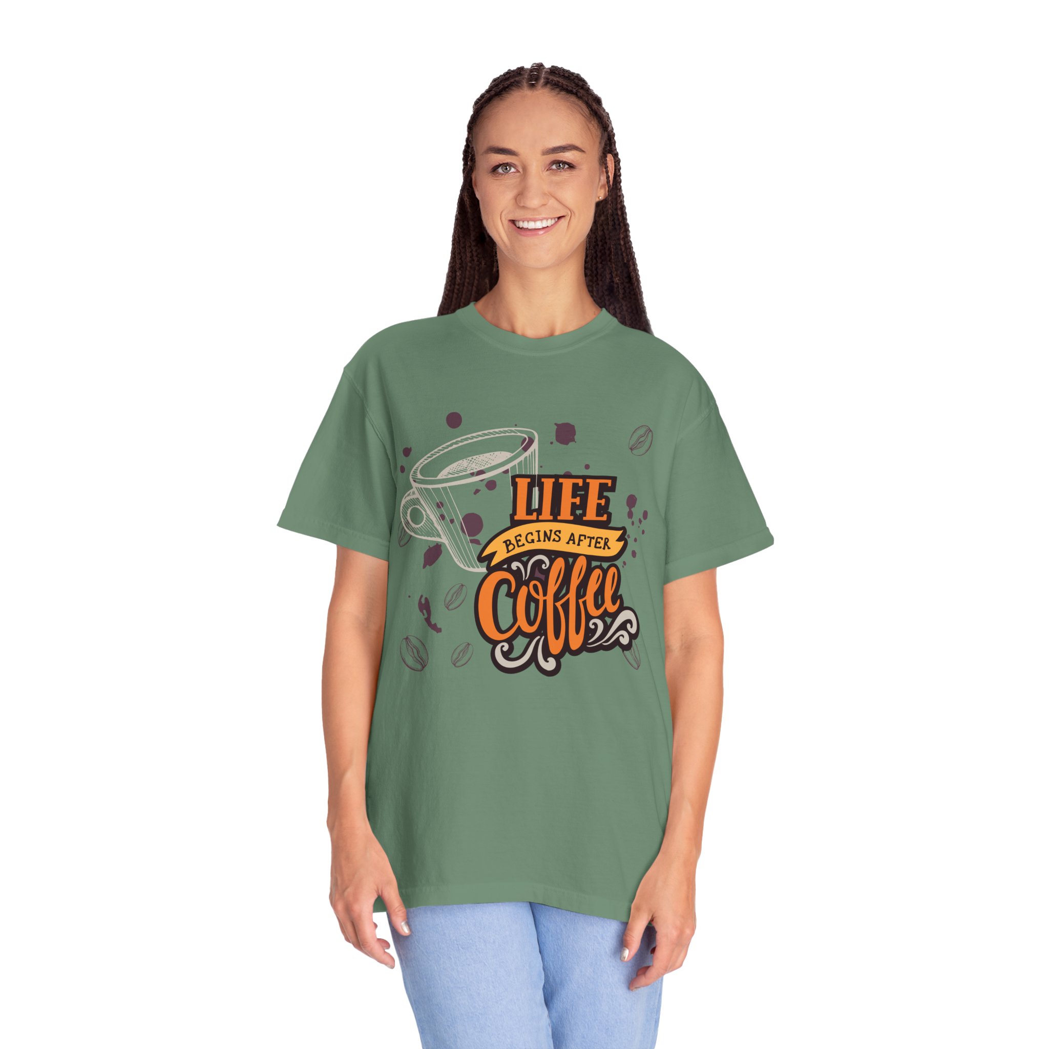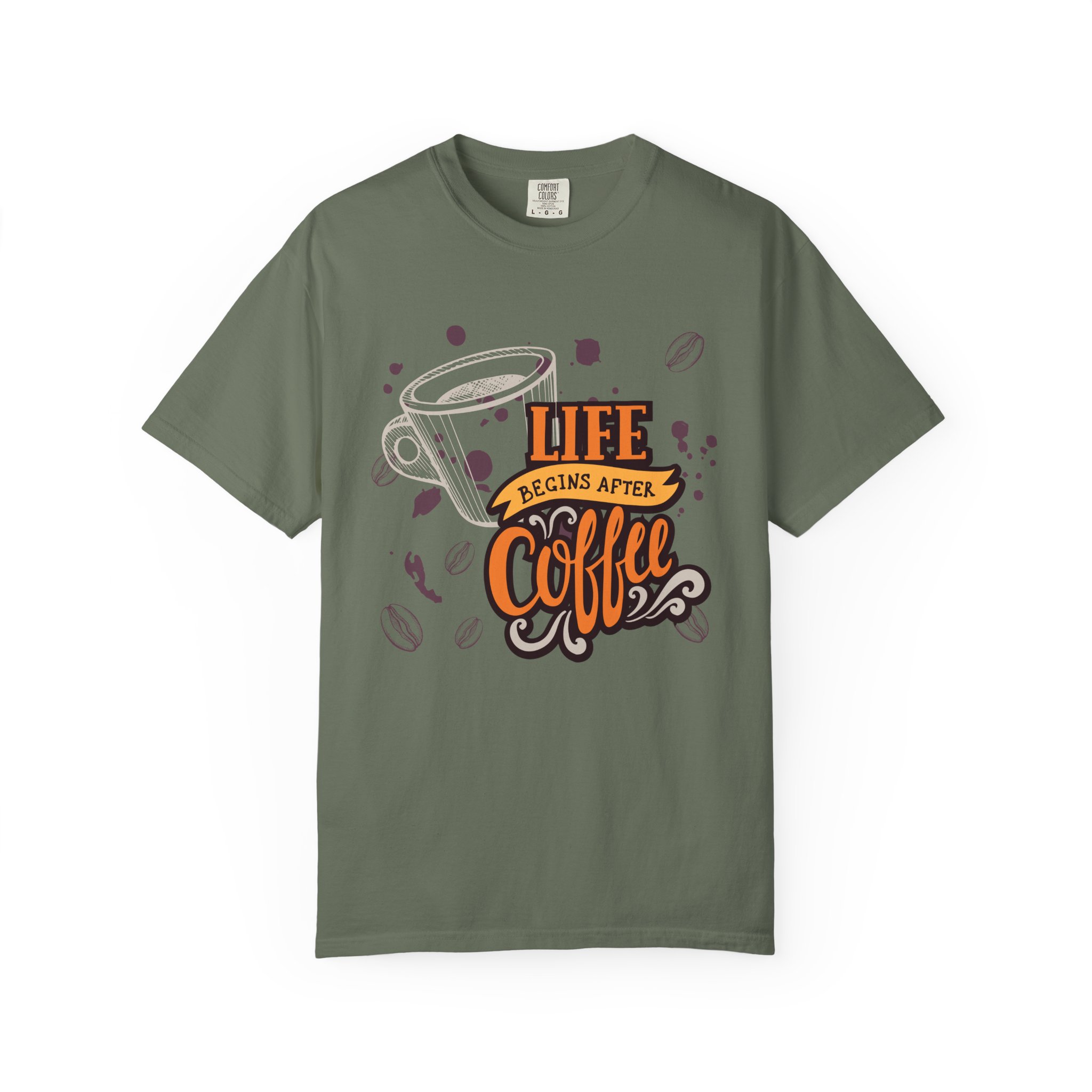 Life Begins After Coffee T-Shirt – Funny Coffee Lover Graphic Tee for Morning Motivation & Daily Energy.