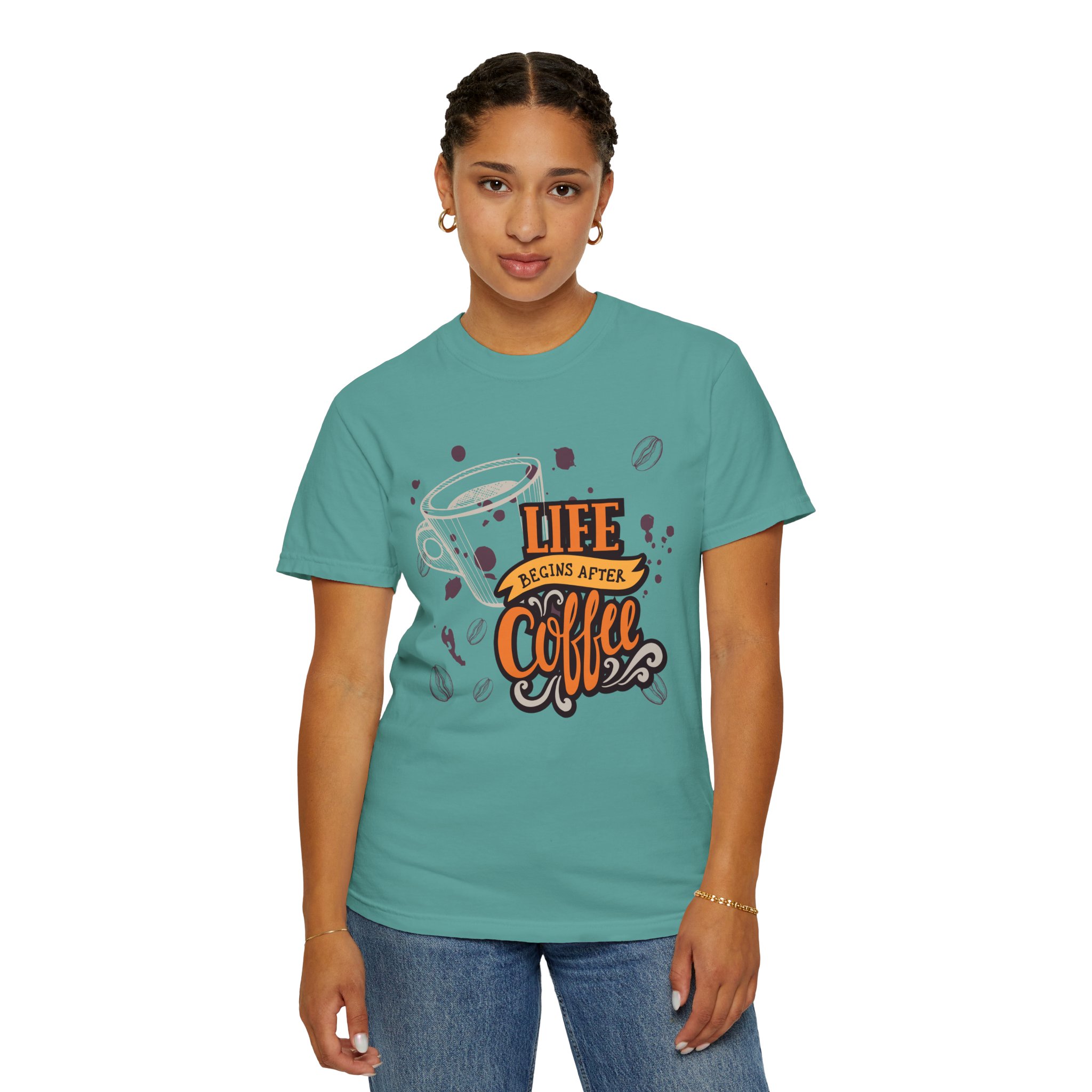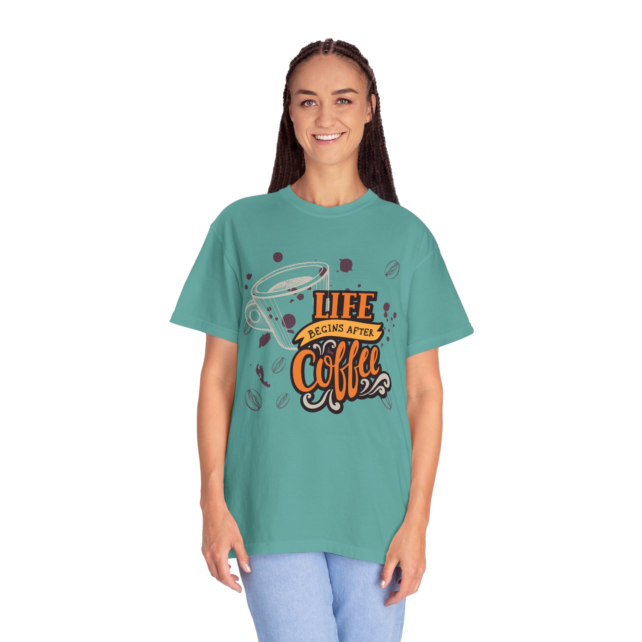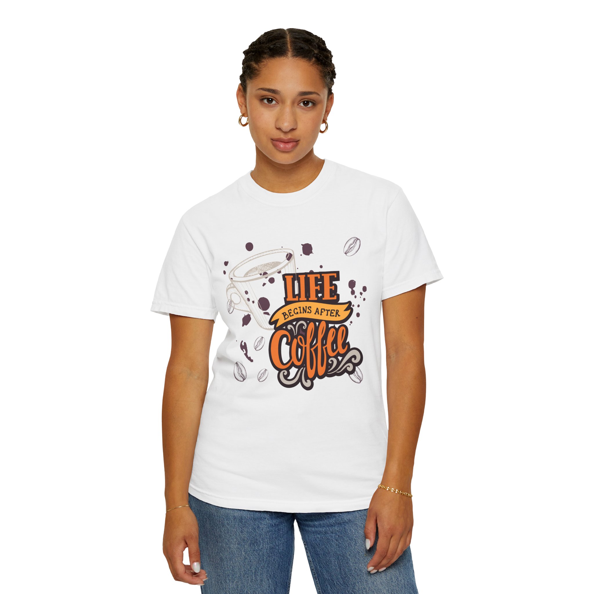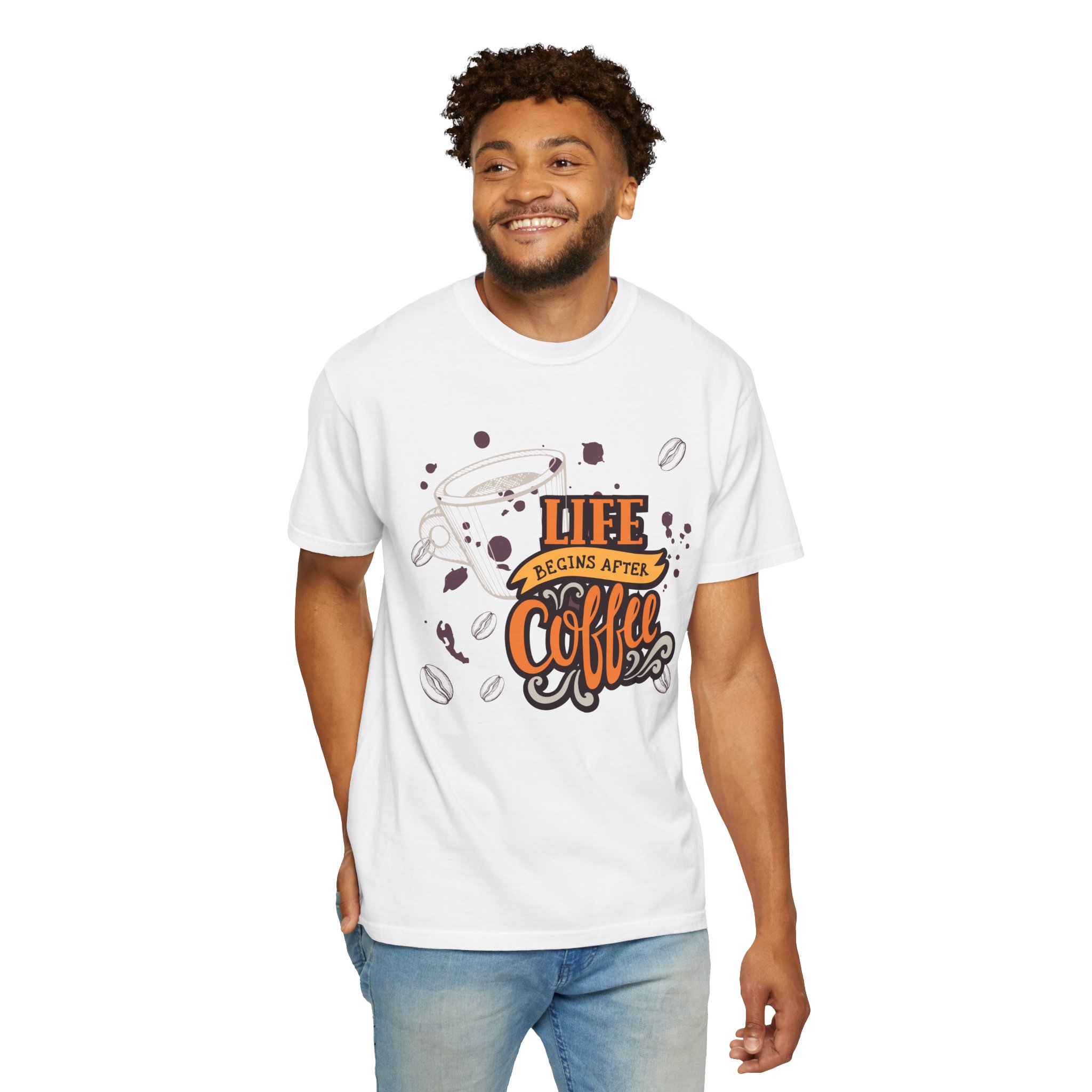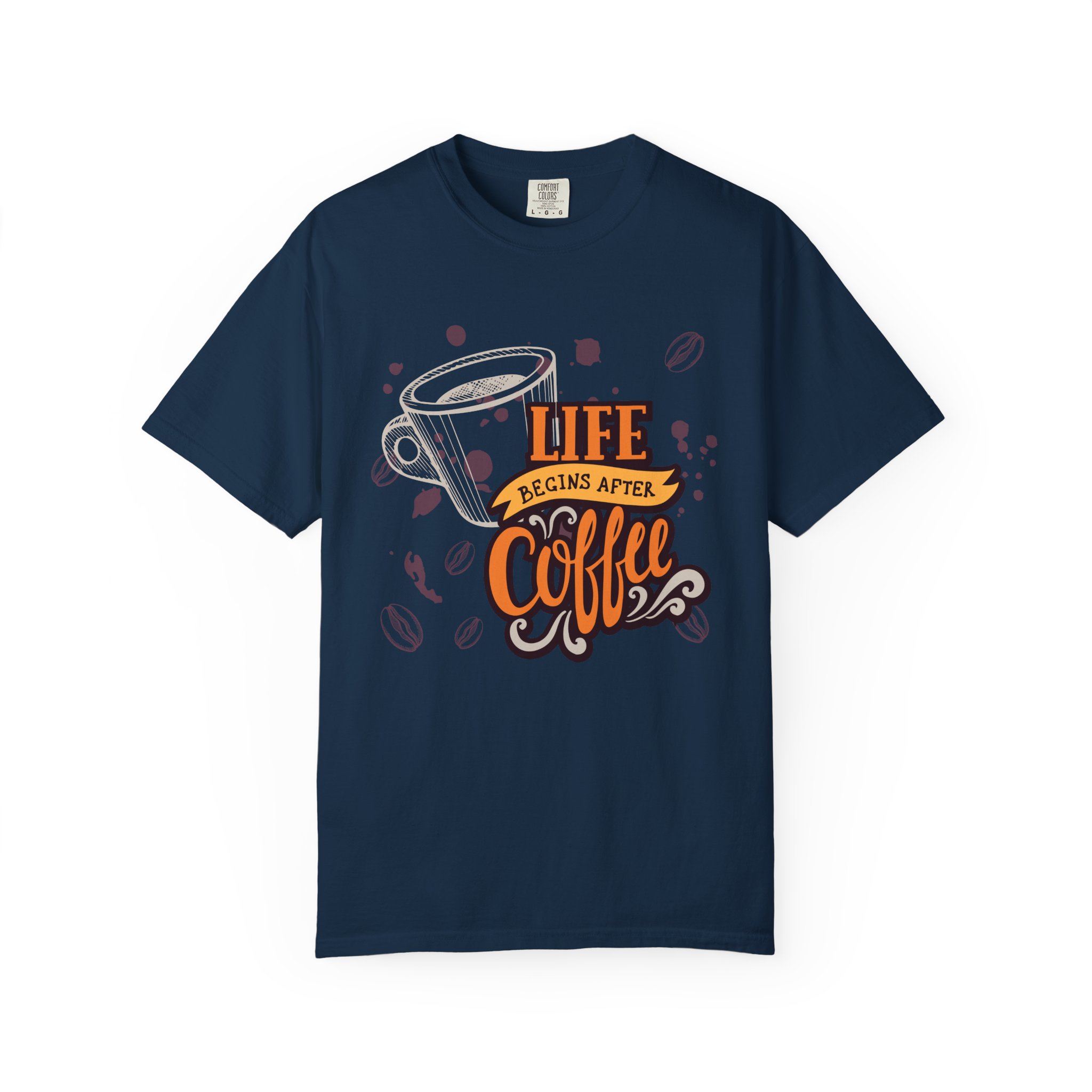 Life Begins After Coffee T-Shirt – Funny Coffee Lover Graphic Tee for Morning Motivation & Daily Energy.