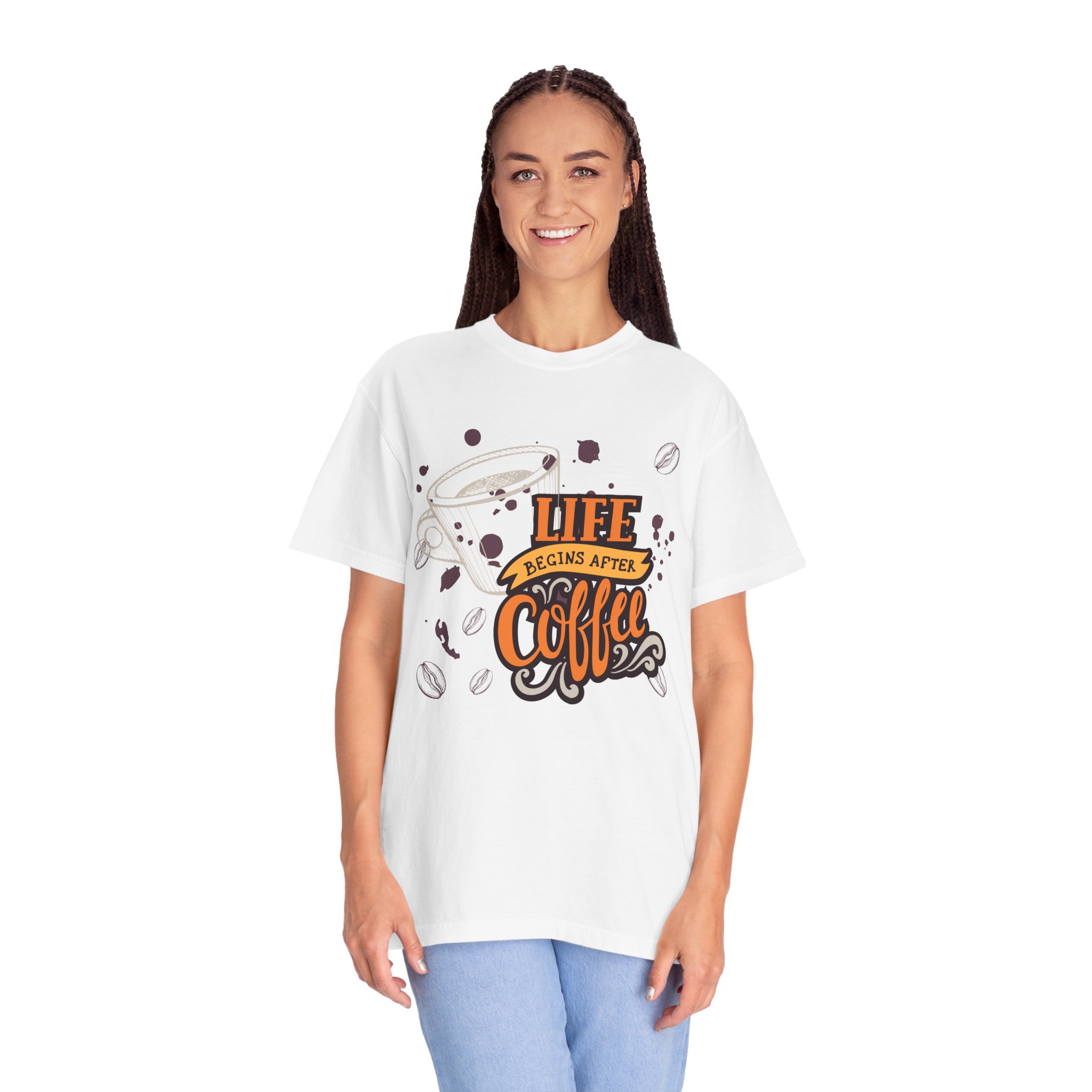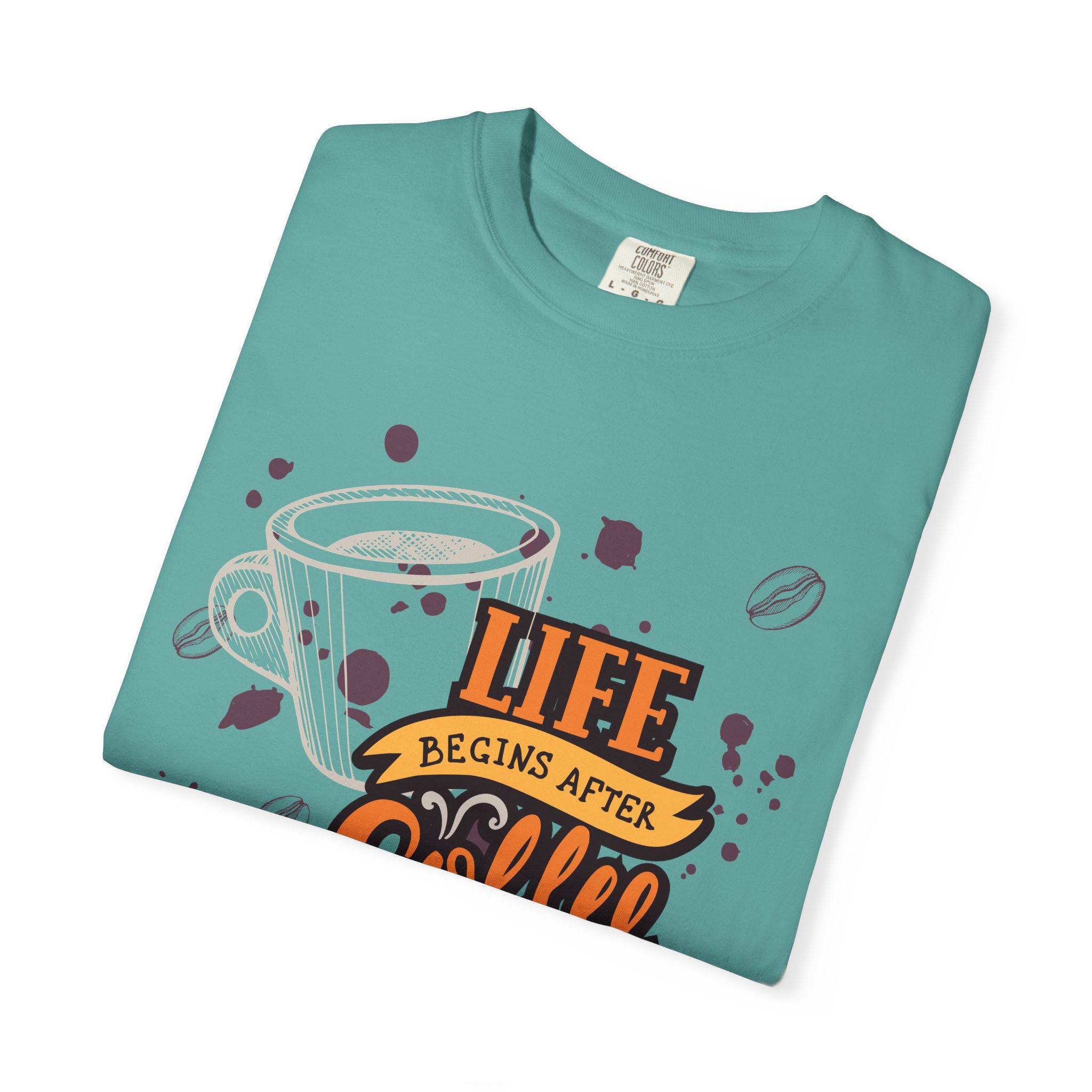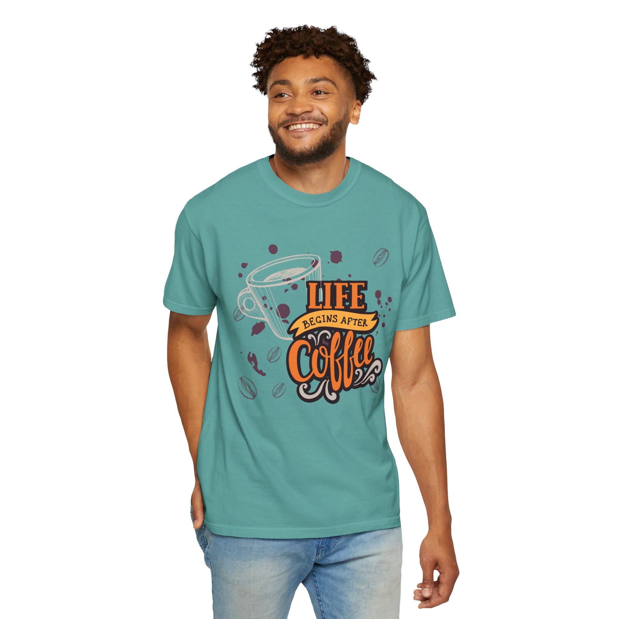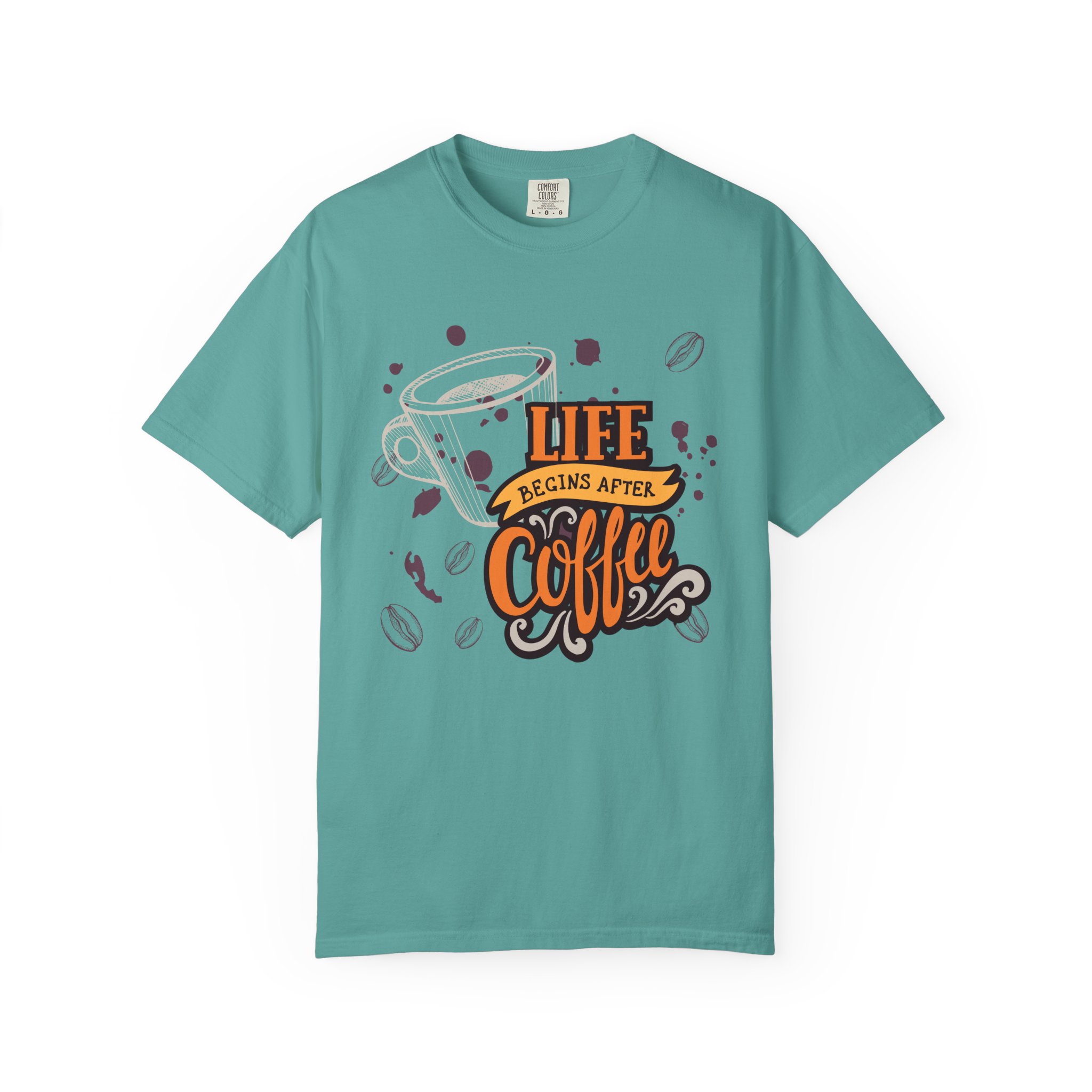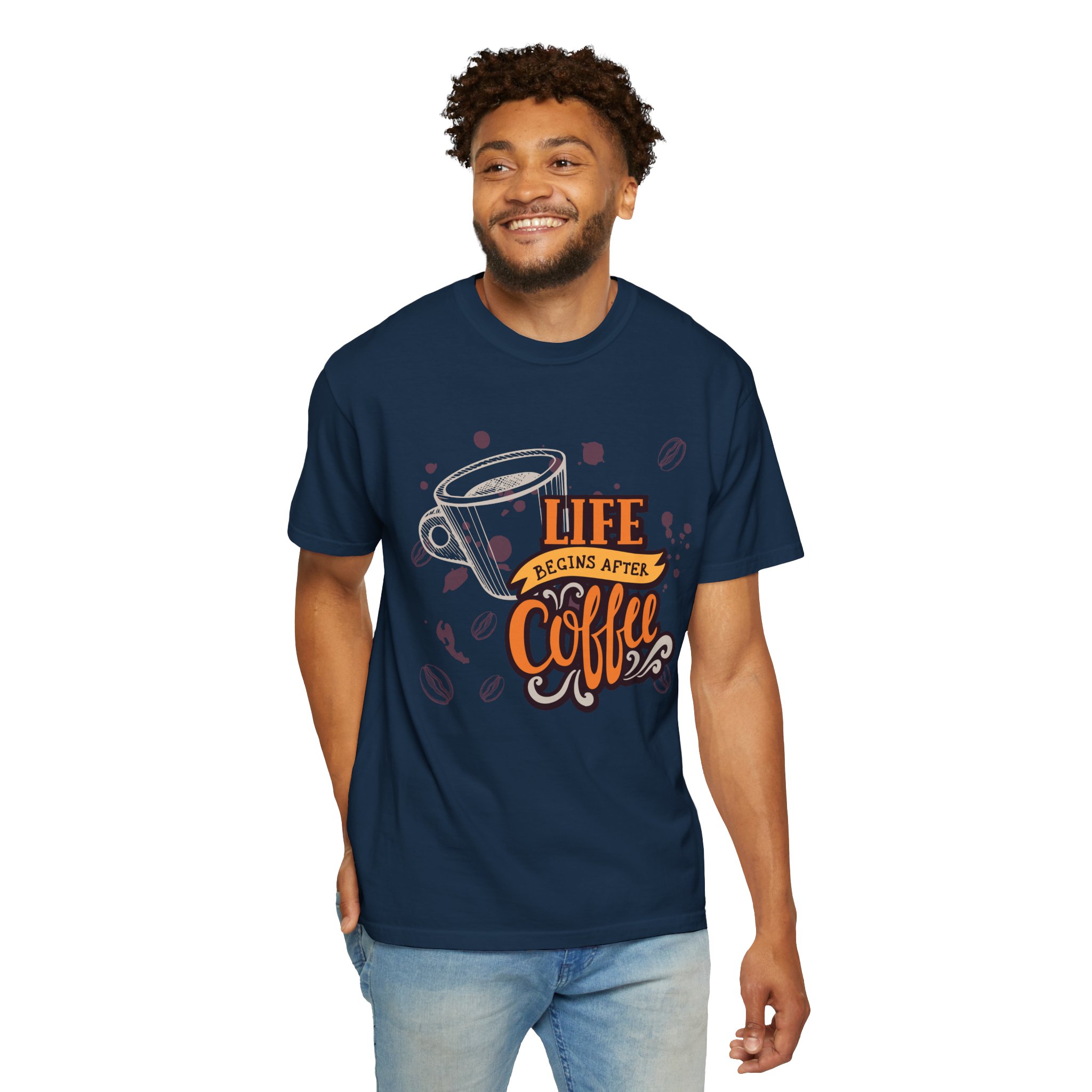 Life Begins After Coffee T-Shirt – Funny Coffee Lover Graphic Tee for Morning Motivation & Daily Energy.