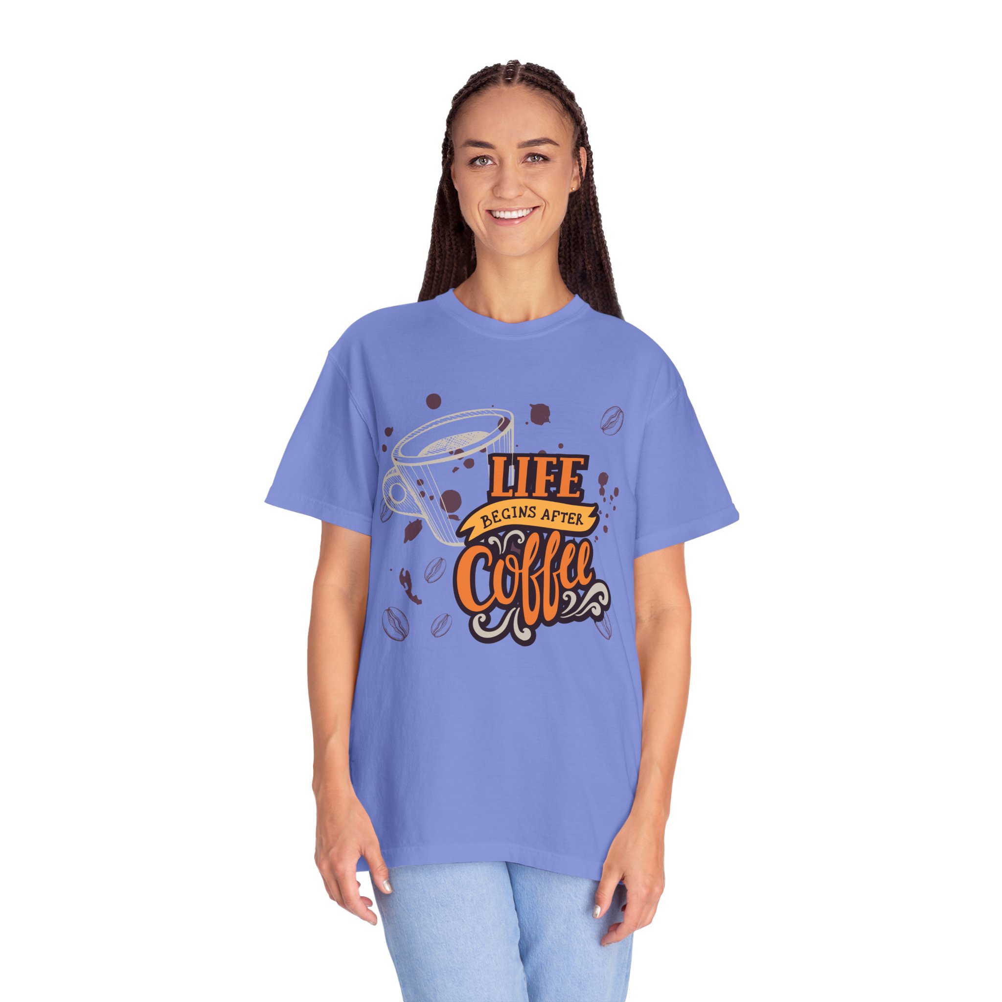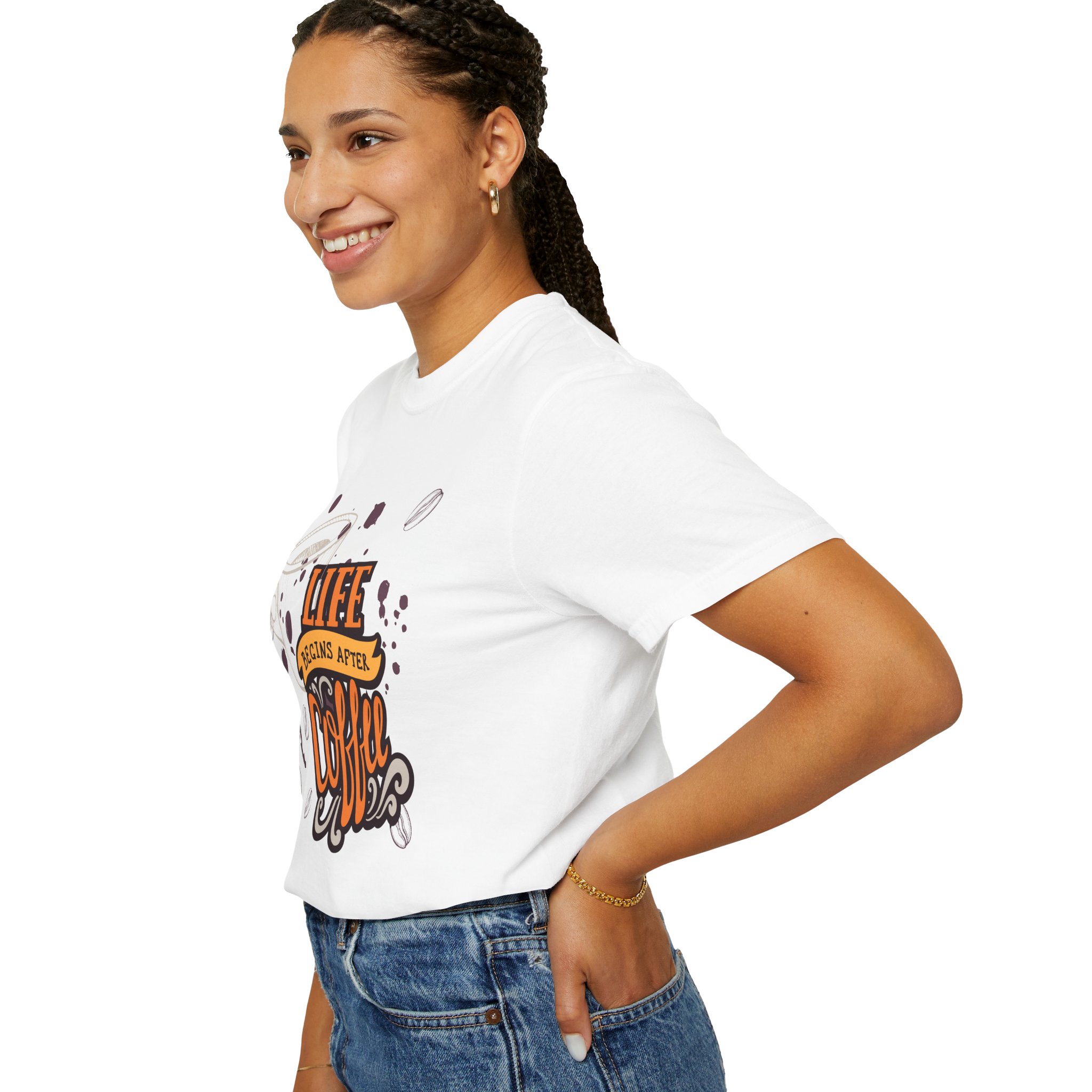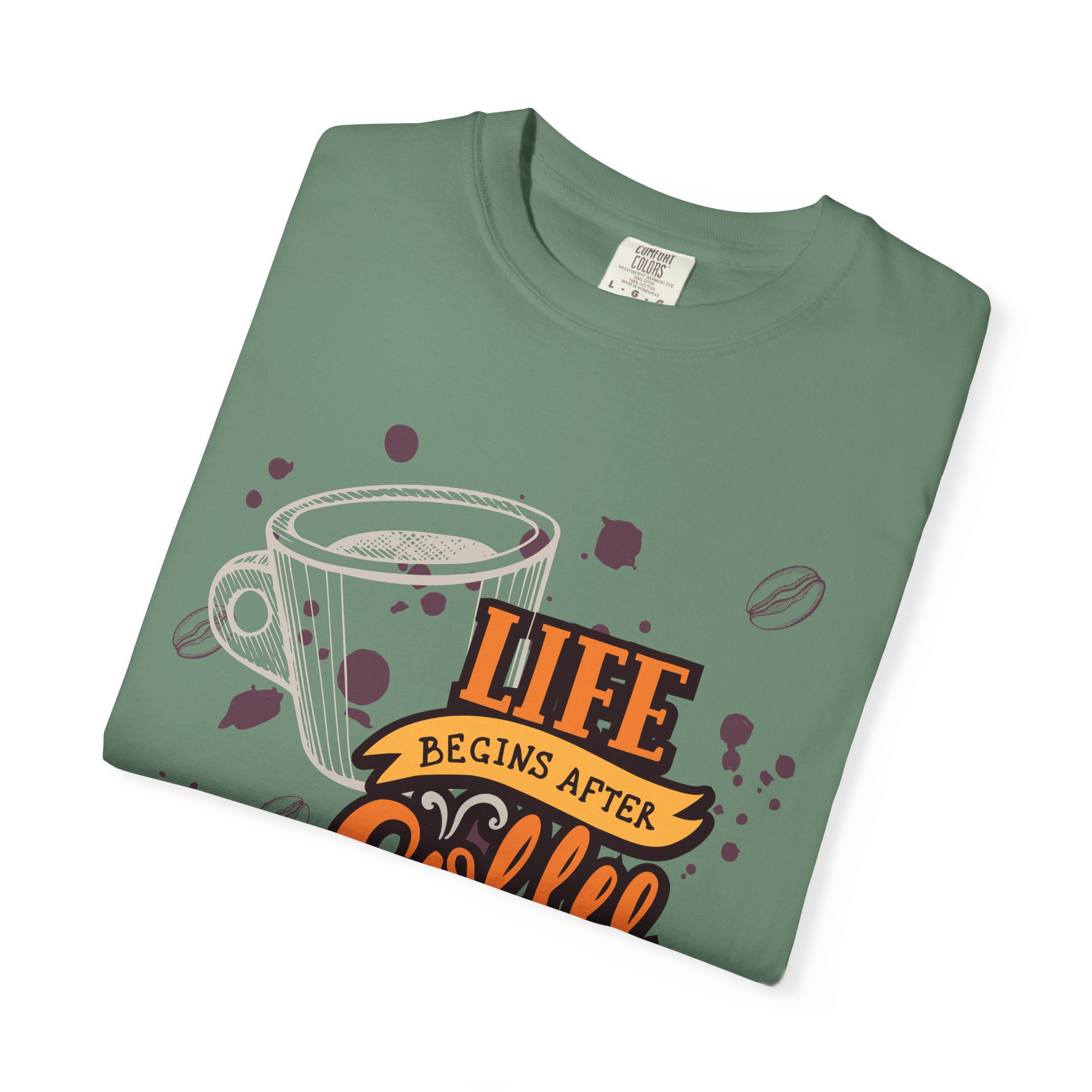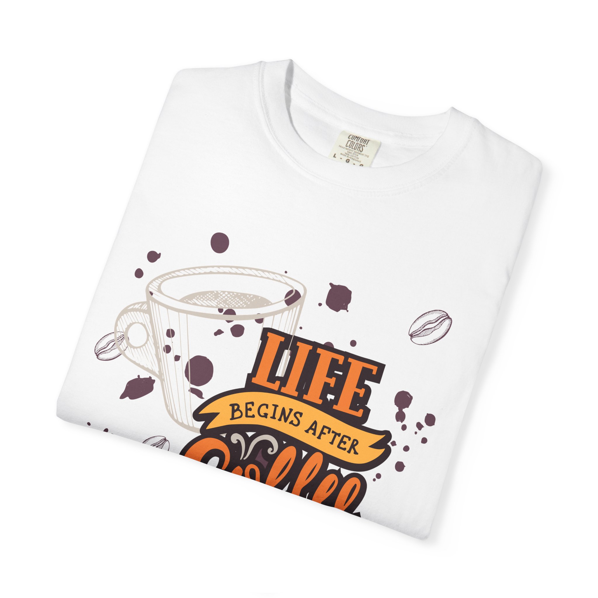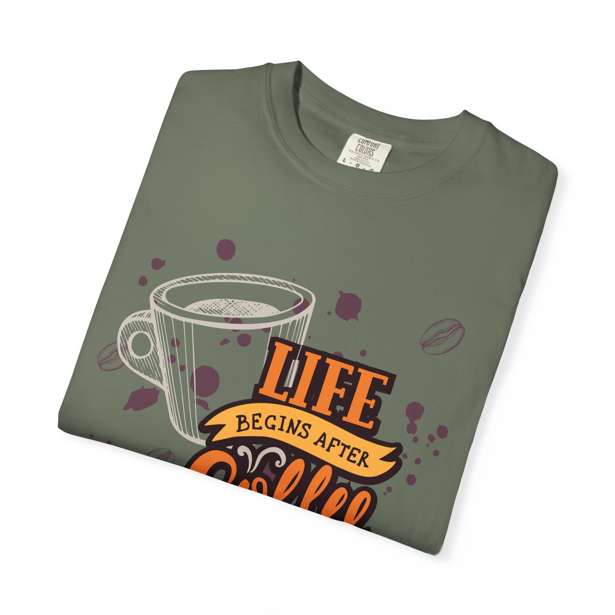 Life Begins After Coffee T-Shirt – Funny Coffee Lover Graphic Tee for Morning Motivation & Daily Energy.