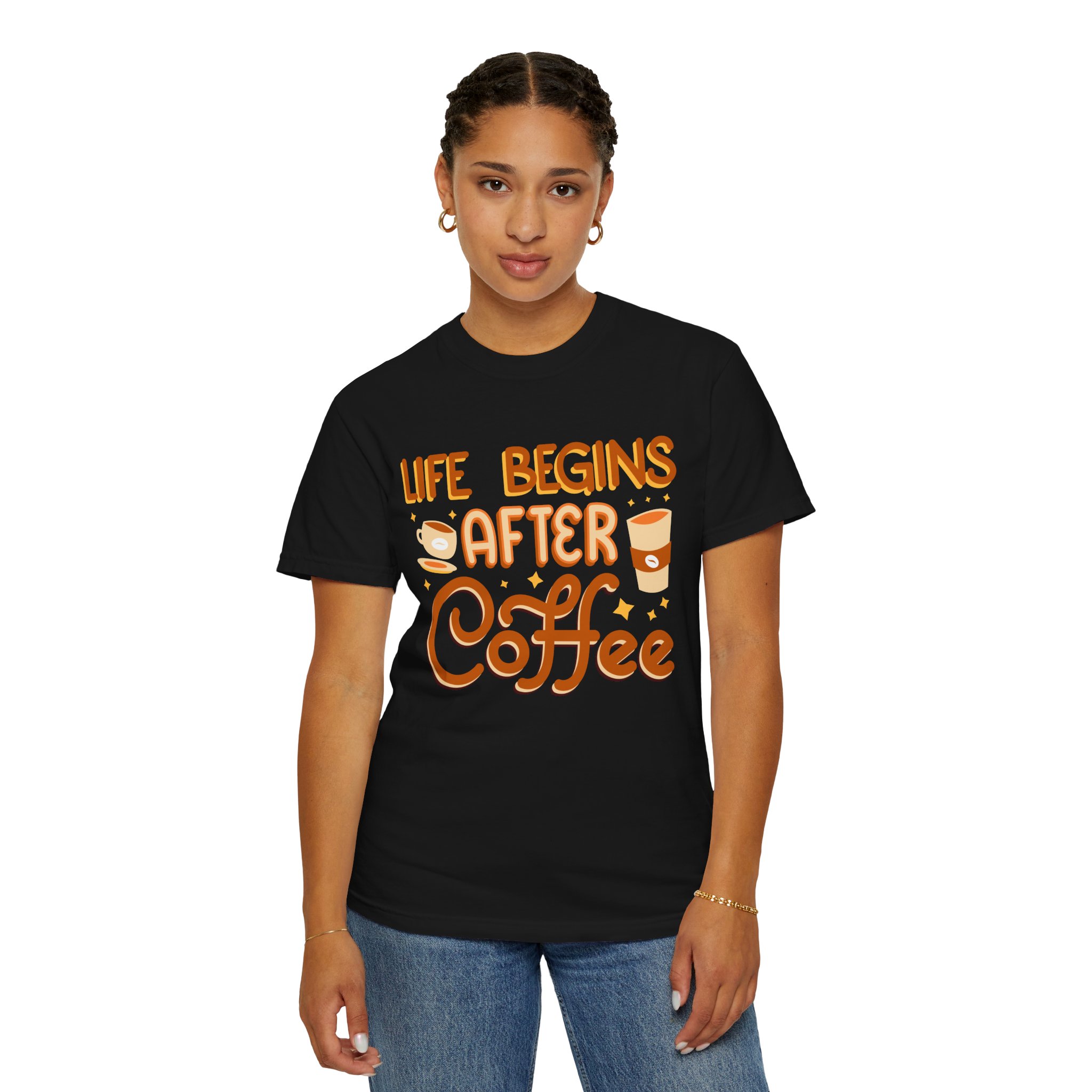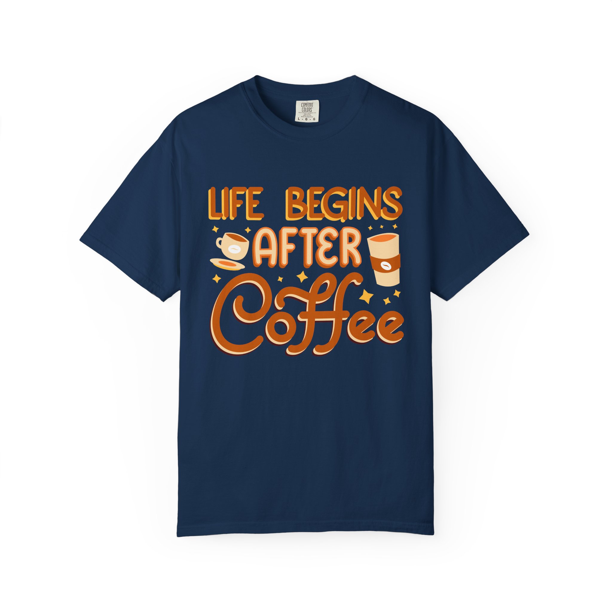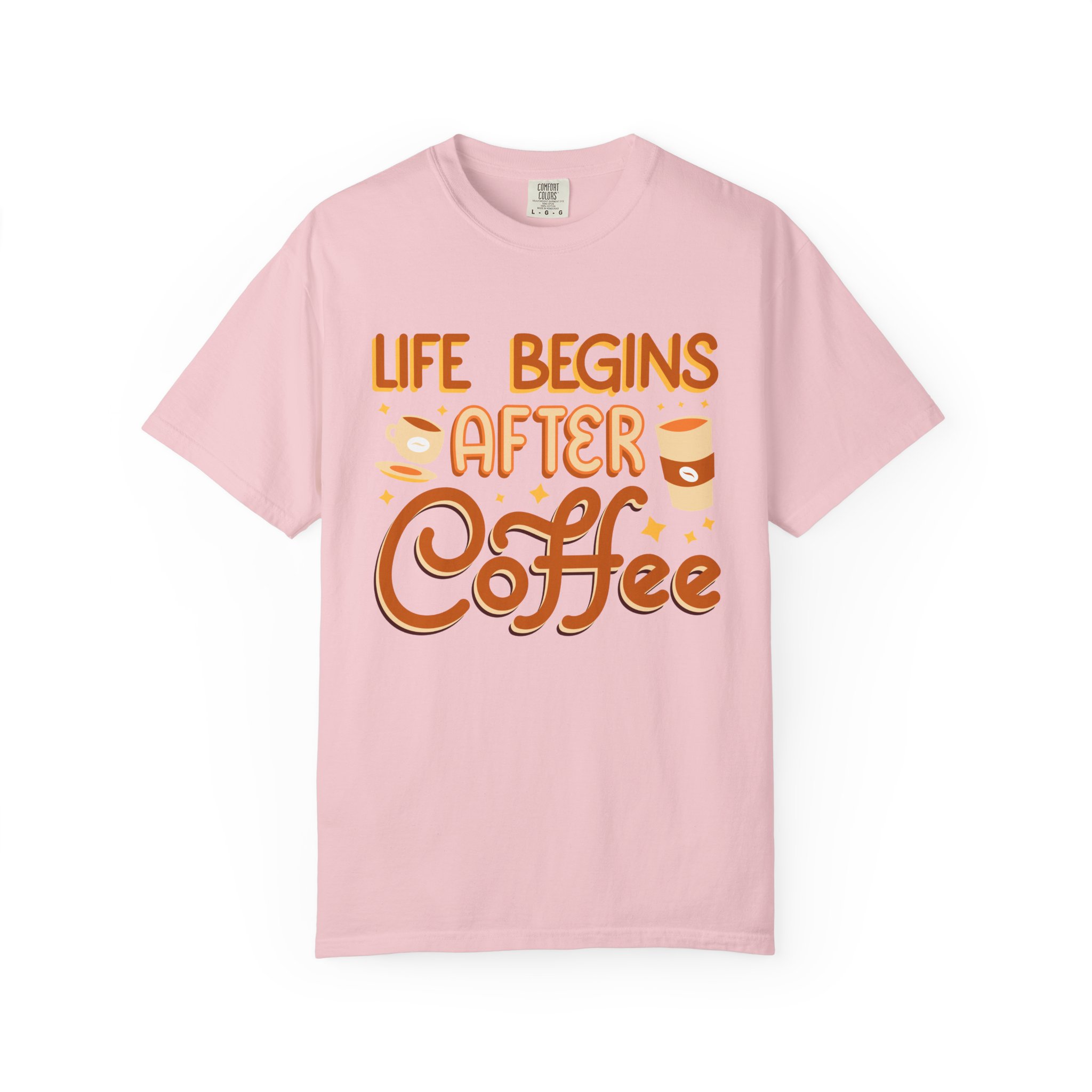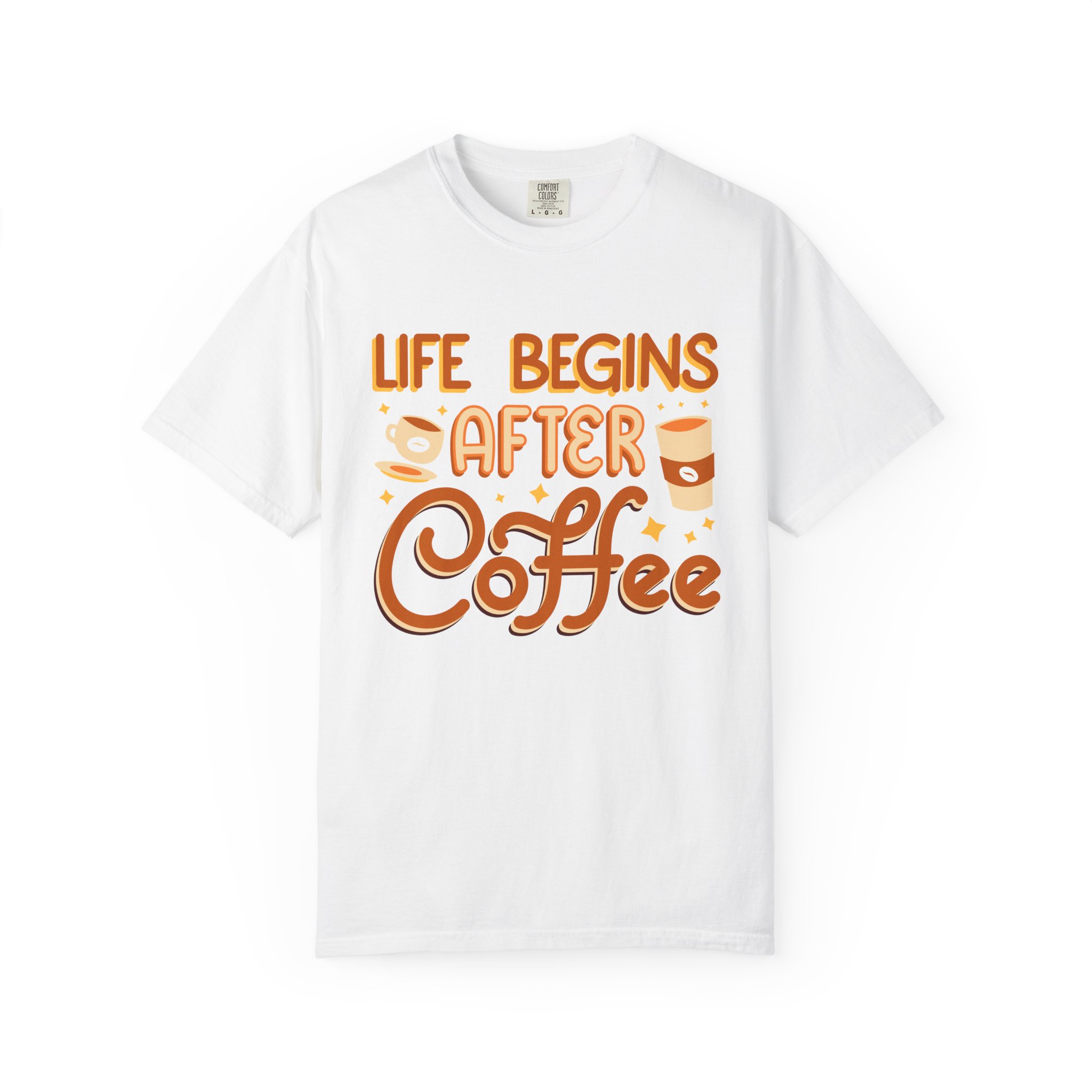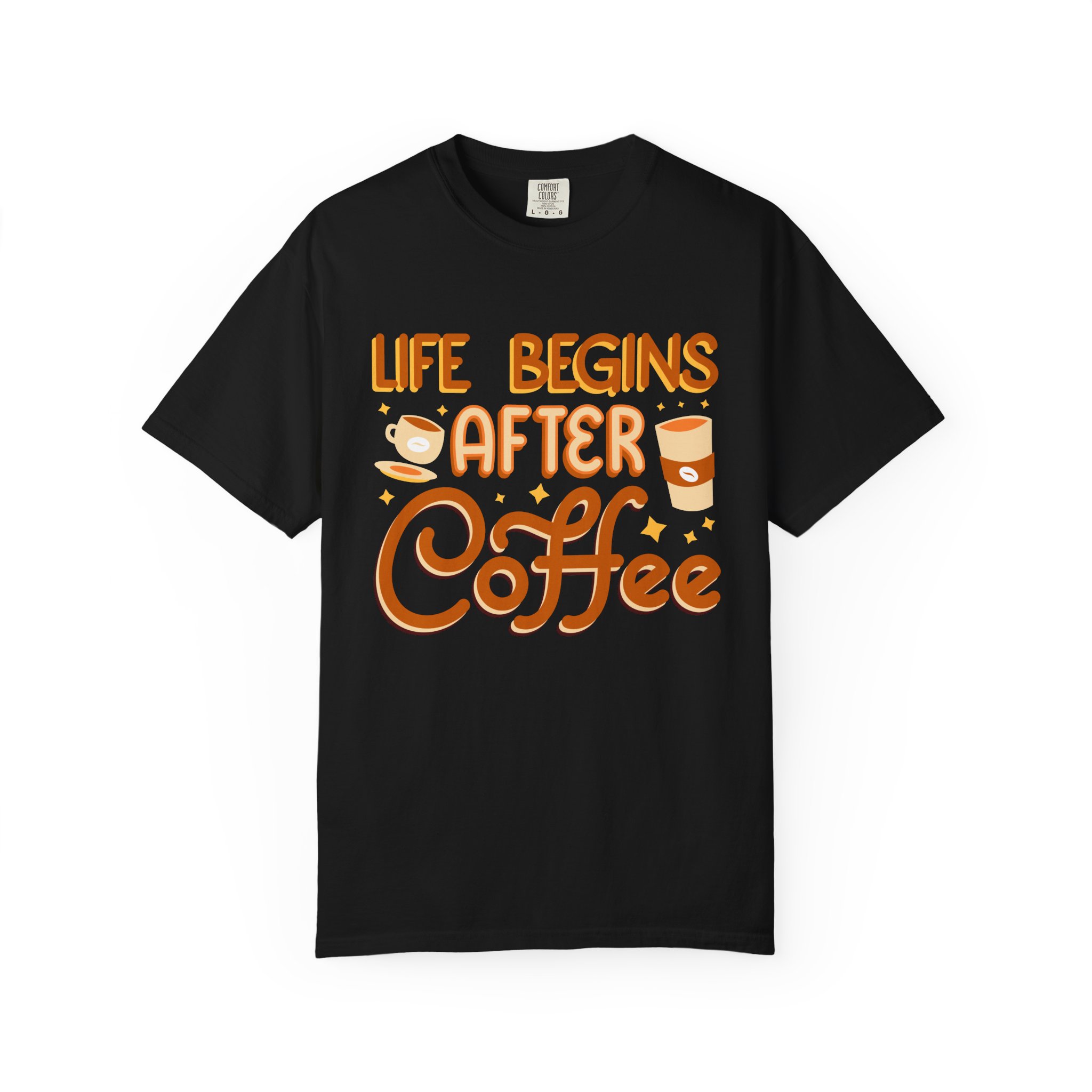 Life Begins After Coffee T-Shirt – Positive Coffee Lover Graphic Tee for Fresh Starts & Daily Motivation.