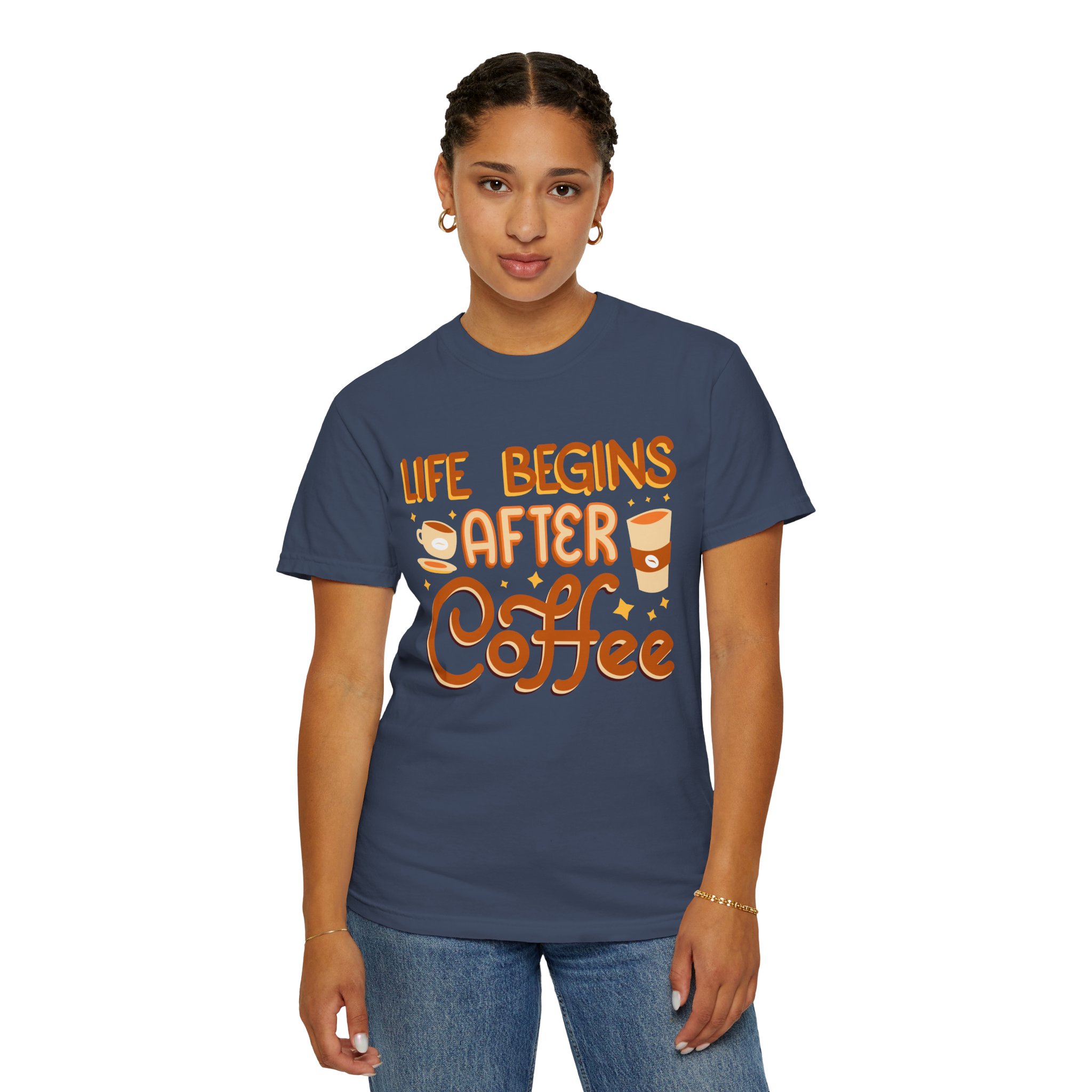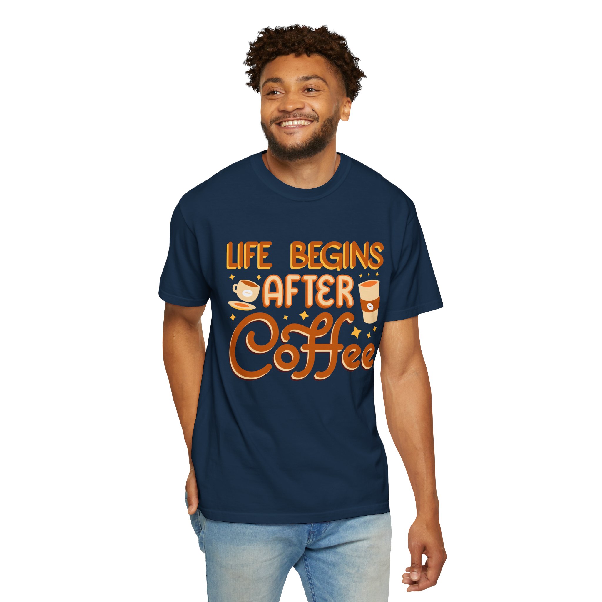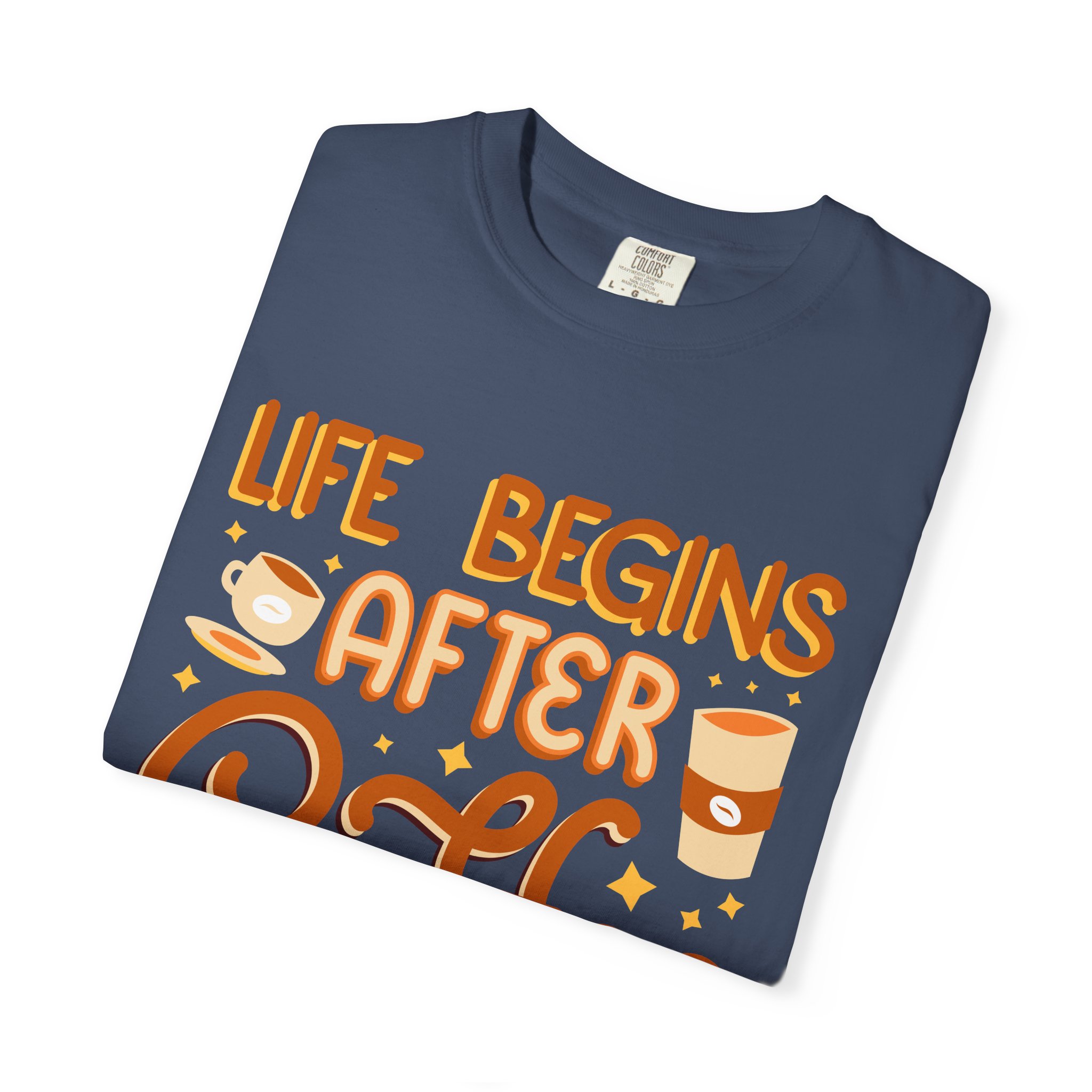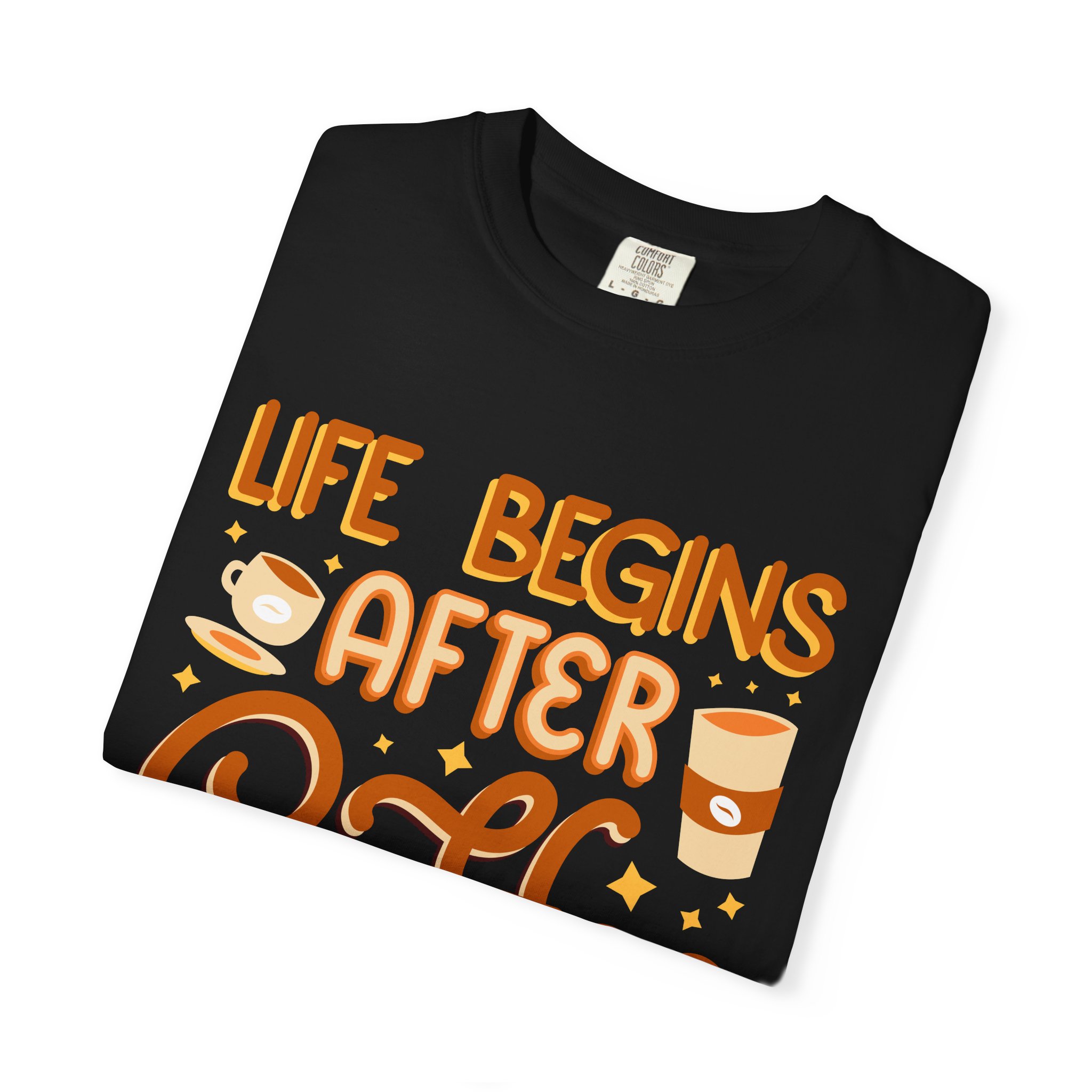 Life Begins After Coffee T-Shirt – Positive Coffee Lover Graphic Tee for Fresh Starts & Daily Motivation.