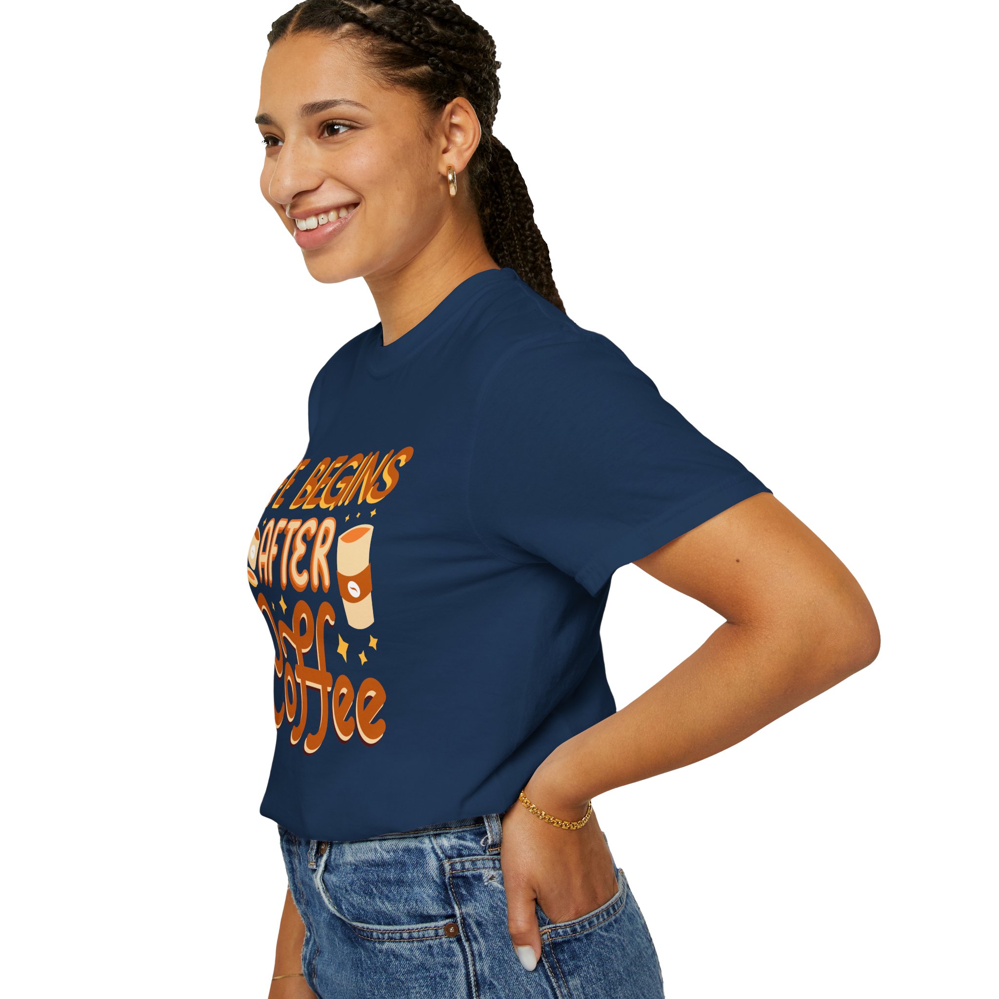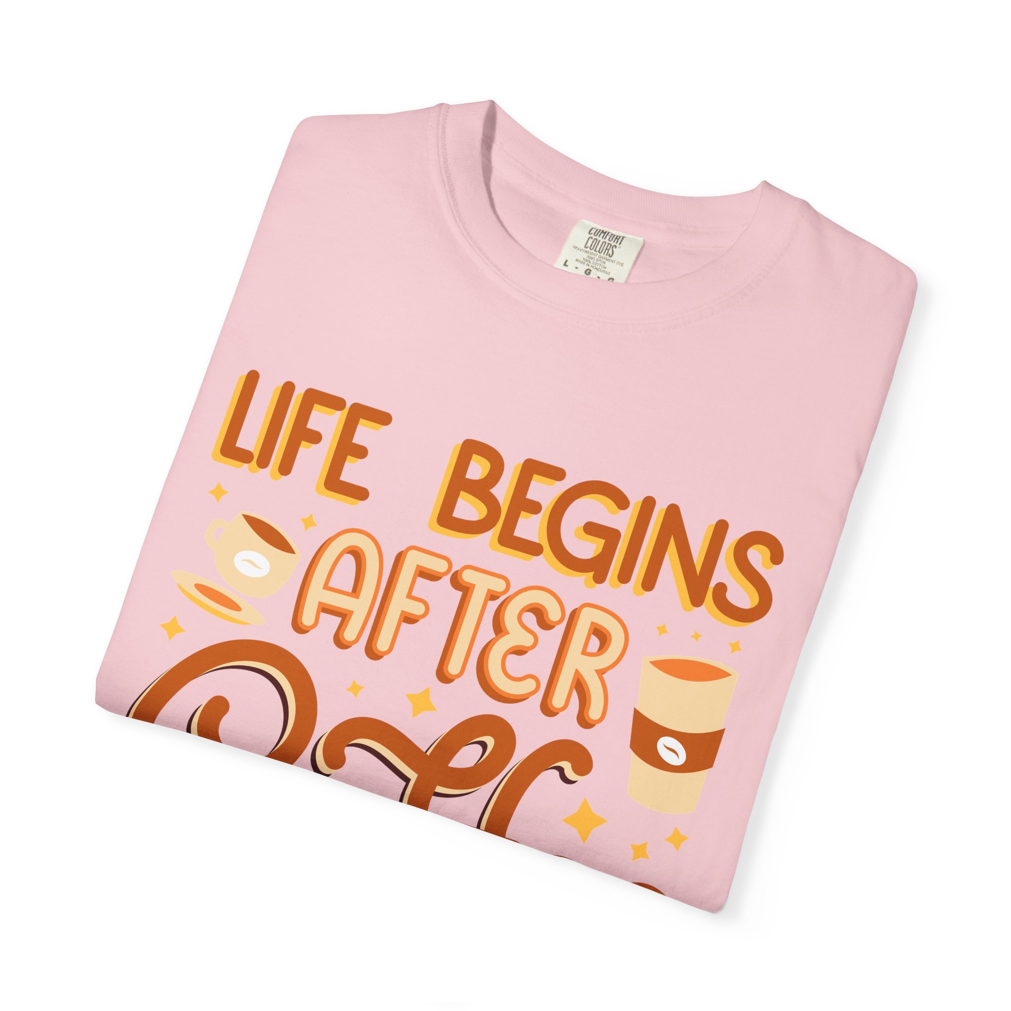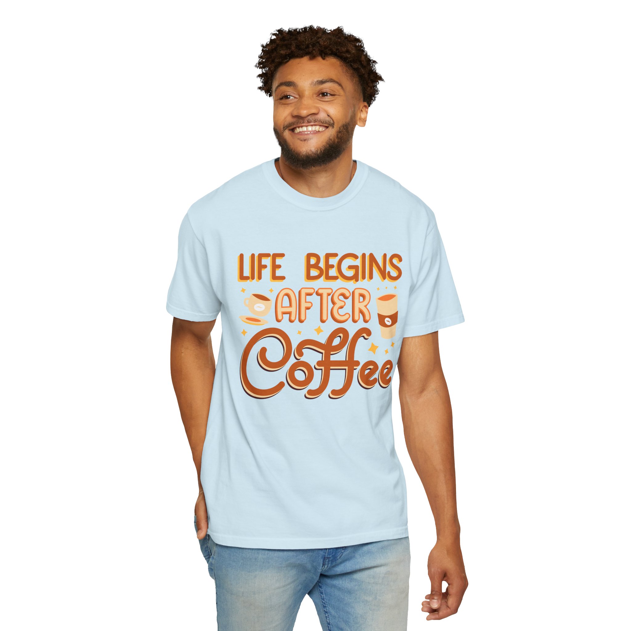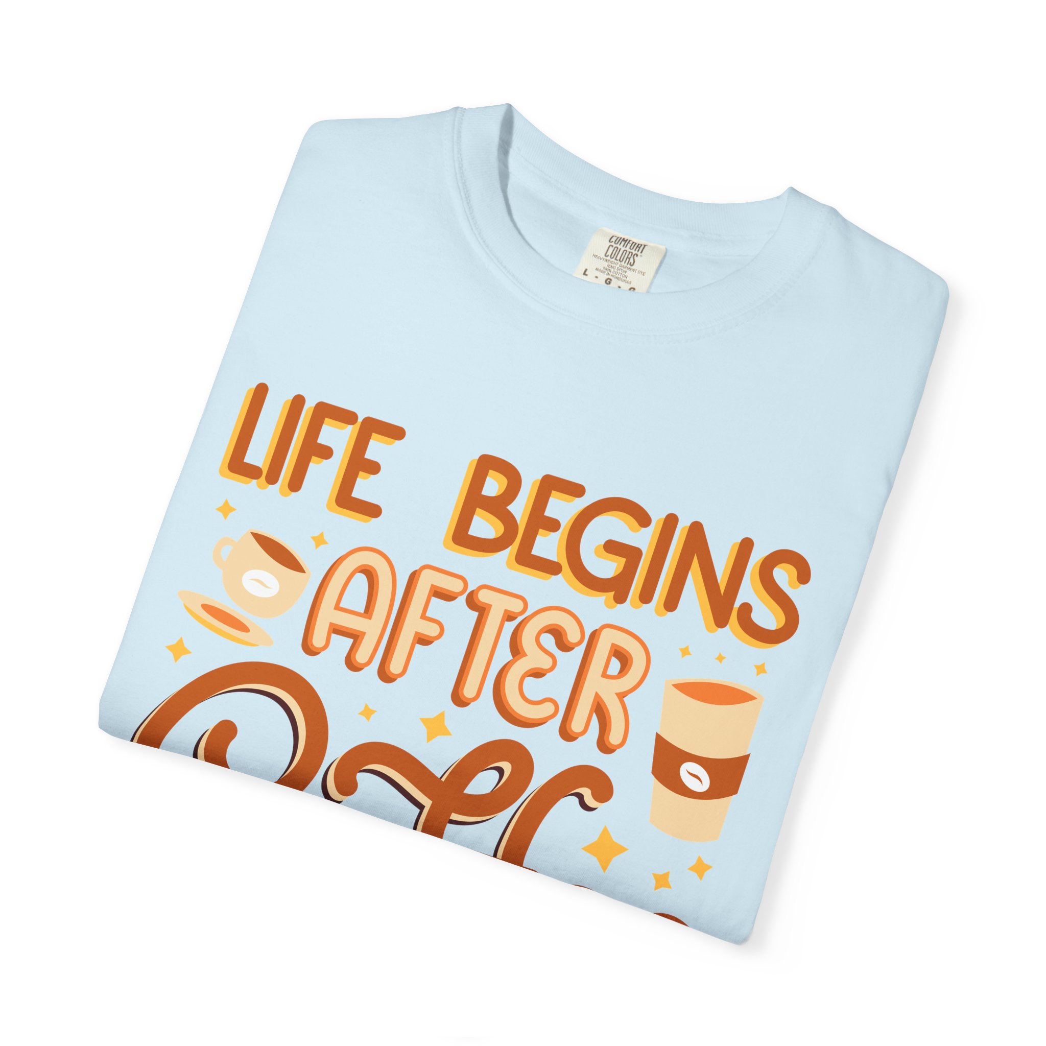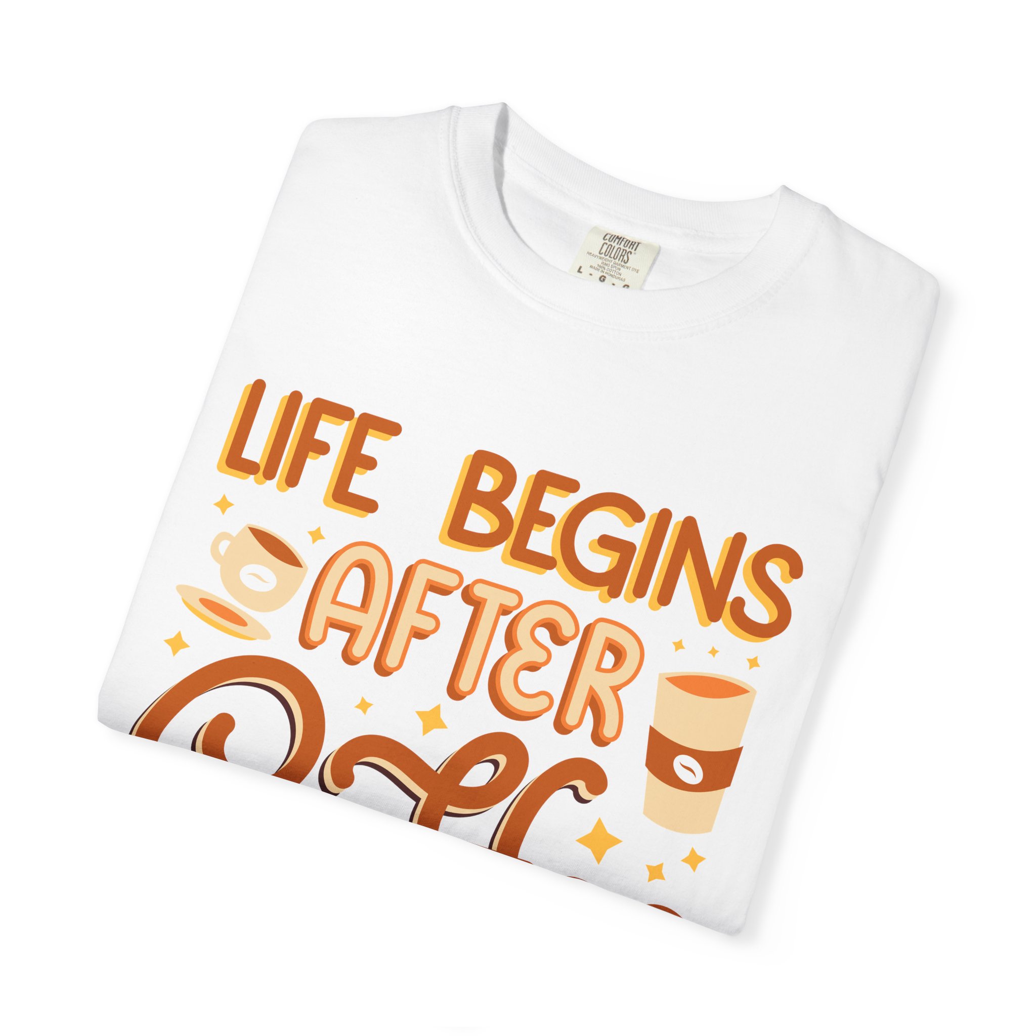 Life Begins After Coffee T-Shirt – Positive Coffee Lover Graphic Tee for Fresh Starts & Daily Motivation.