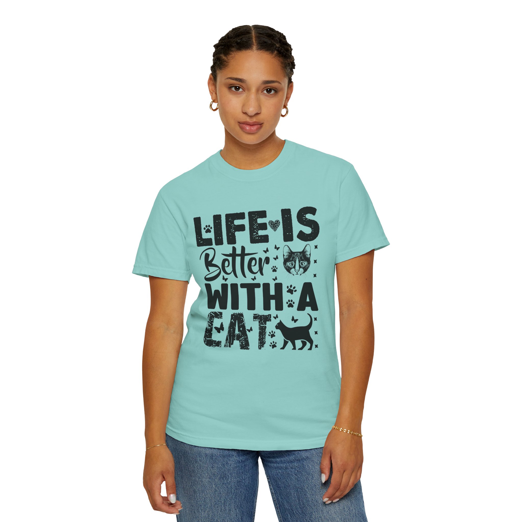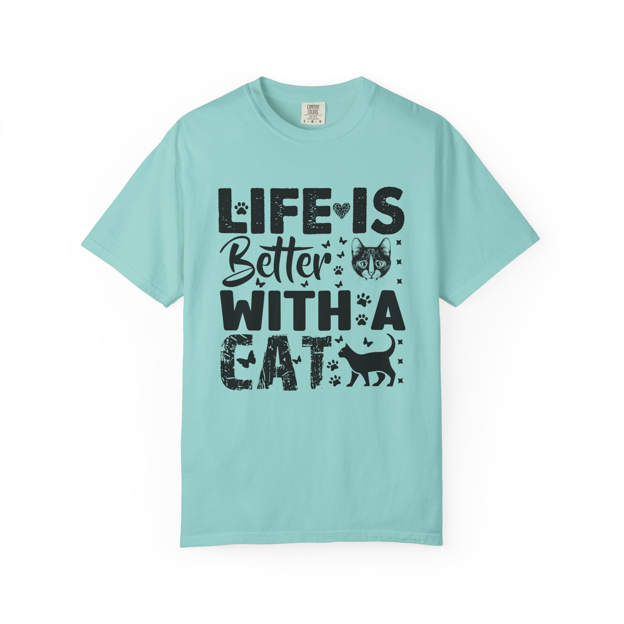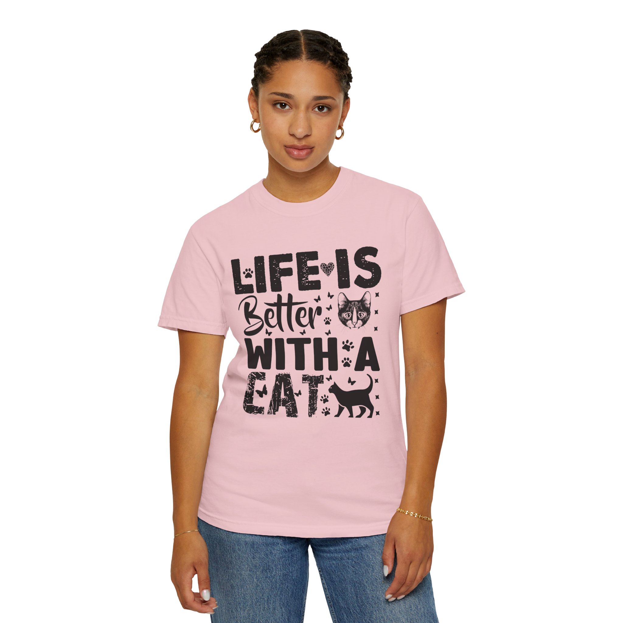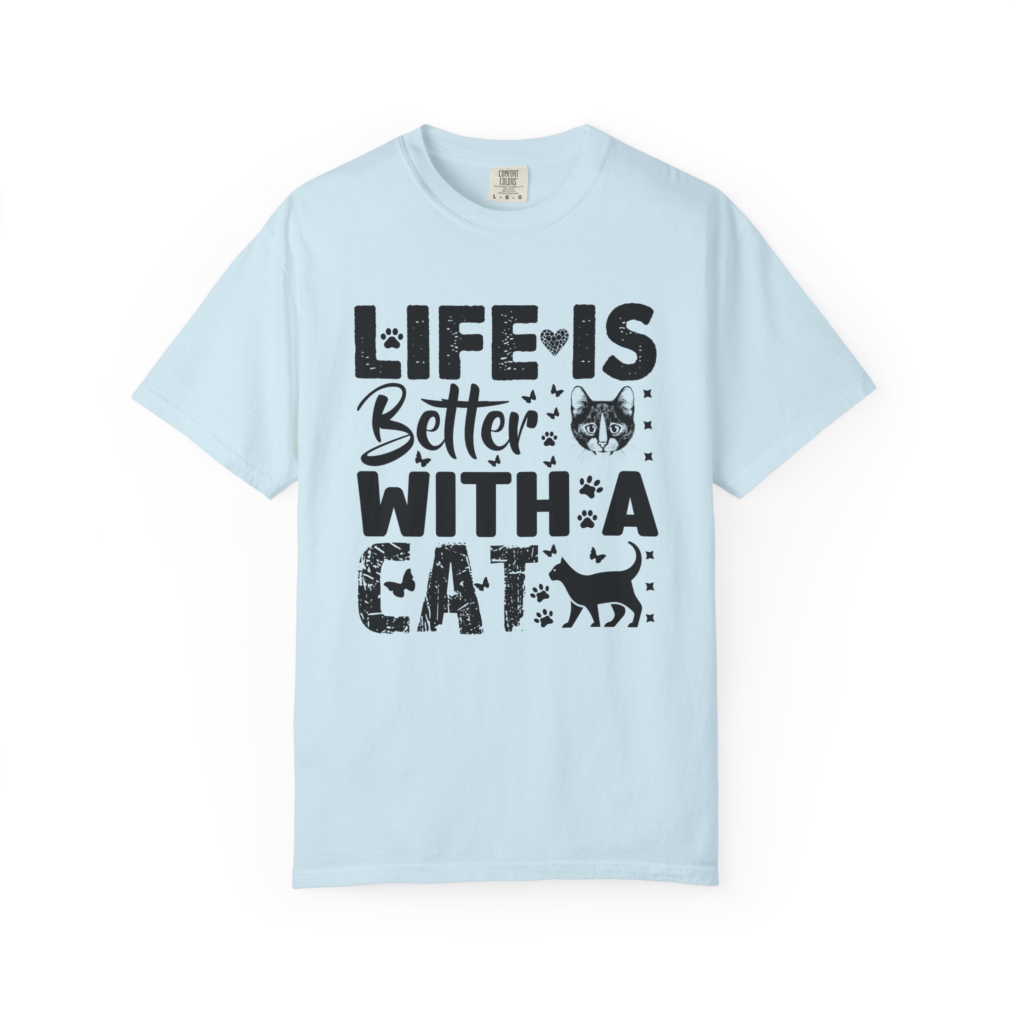 This relaxed-fit garment-dyed tee carries a simple, warm message for cat lovers: “Life is better with a cat.” The soft, heavy-weight cotton drapes comfortably and feels lived-in from the first wear thanks to post-construction dyeing. The distressed graphic and small cat silhouette give it a cozy, slightly vintage look that works tucked into jeans or worn with lounge pants for quiet mornings with a purring companion. Made to last, the double-needle seams and tubular knit keep the silhouette clean and reduce bulk at the sides — a subtle, durable piece that becomes part of everyday routines and slow, cat-centered moments.
