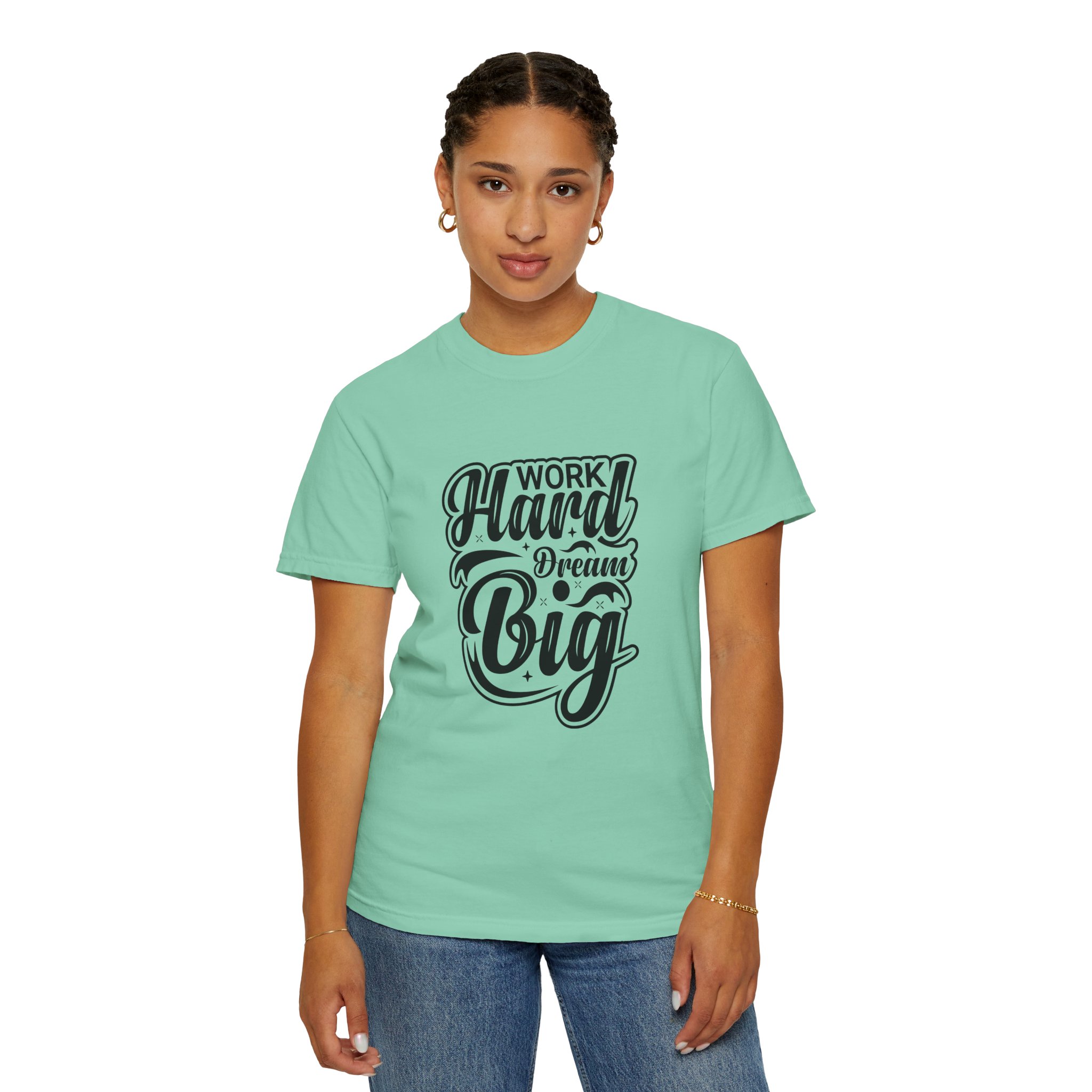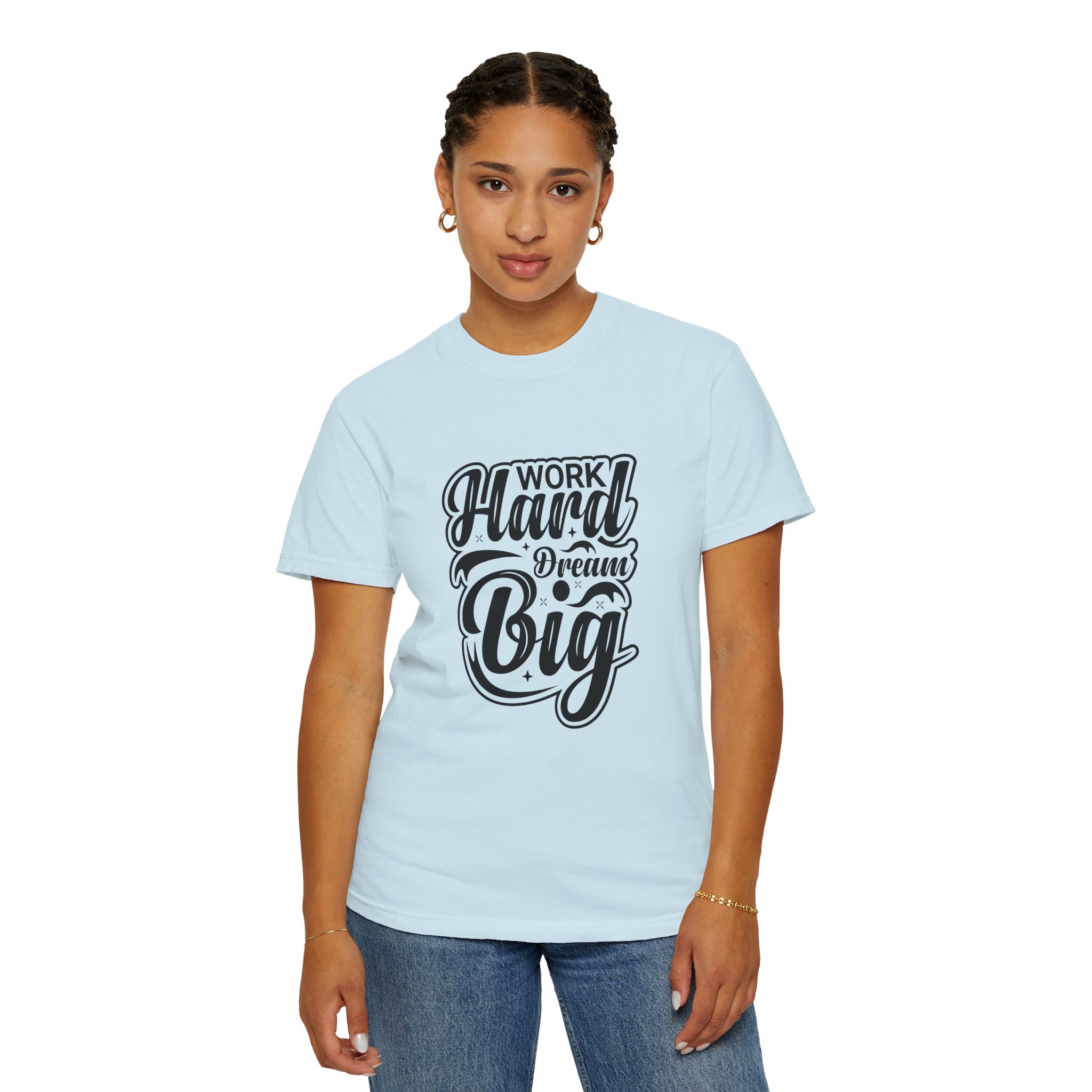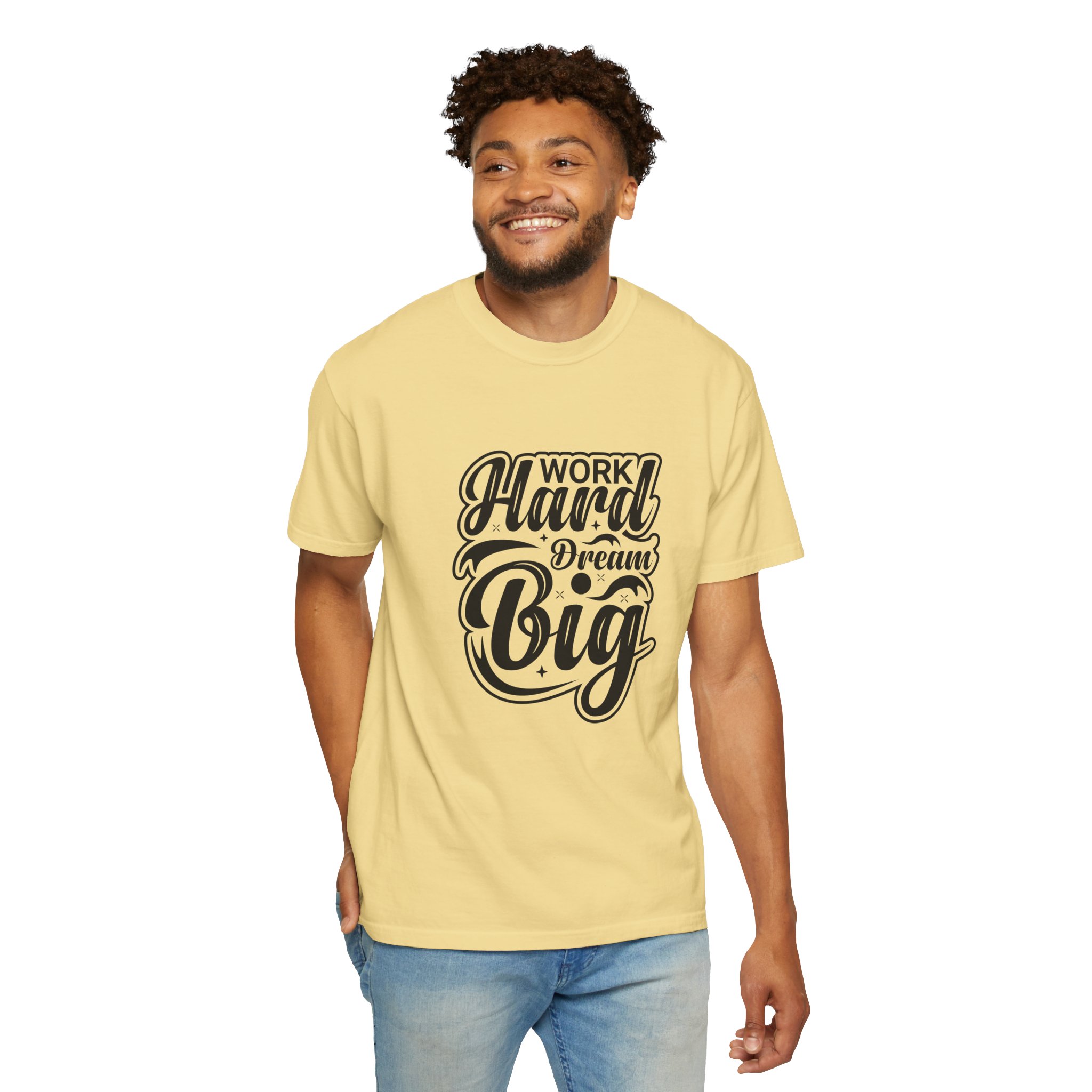 Introducing the perfect blend of comfort and style with this Unisex Garment-Dyed T-shirt. Crafted from 100% ring-spun US cotton, it offers a relaxed fit that makes it ideal for daily wear. The garment-dyed fabric ensures a soft texture and a unique color that stands out, making every day feel special. Perfect for casual outings, workouts, or lounging at home, this T-shirt is a versatile addition to anyone’s wardrobe. Ideal for both men and women, it’s an excellent gift for friends and family during occasions like birthdays, holidays, or as a motivational piece during back-to-school season. Embrace the vibe of hard work and big dreams with this stylish tee!