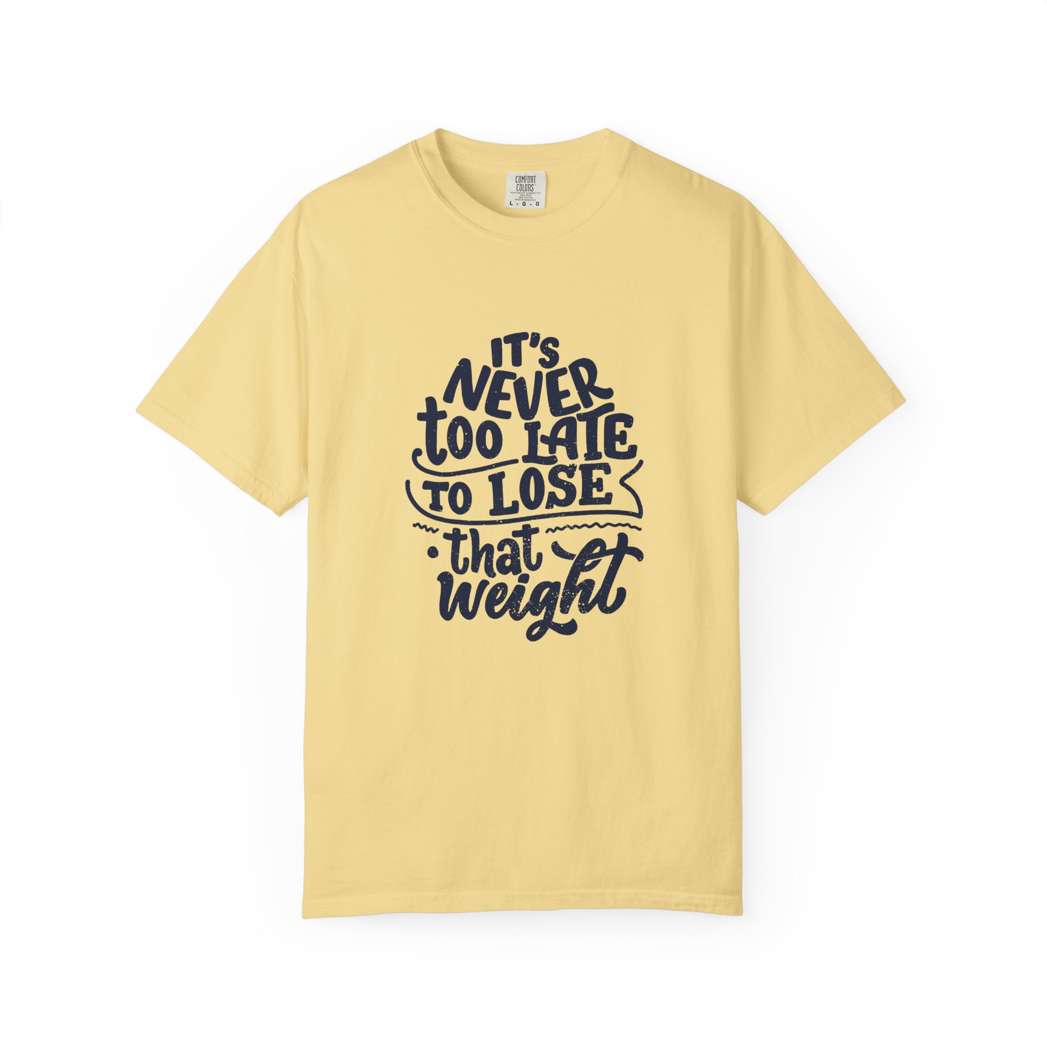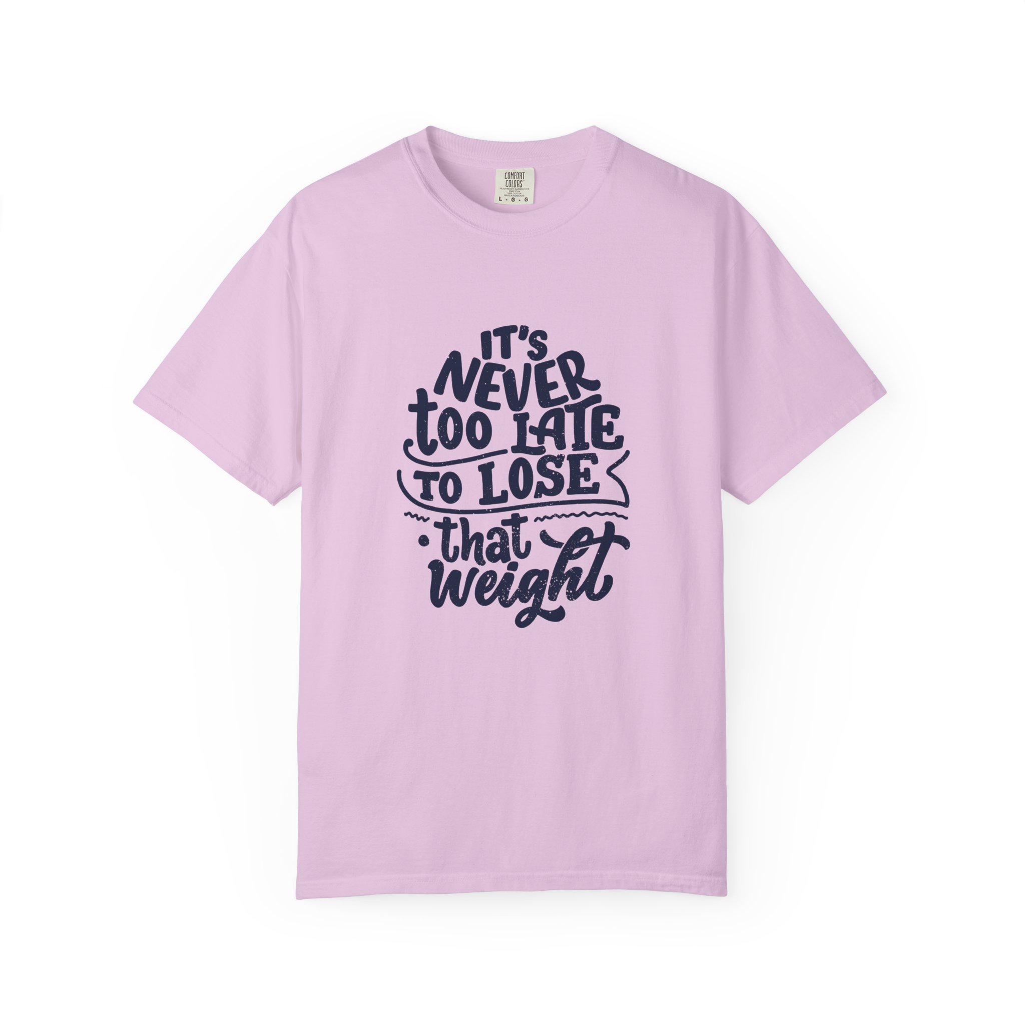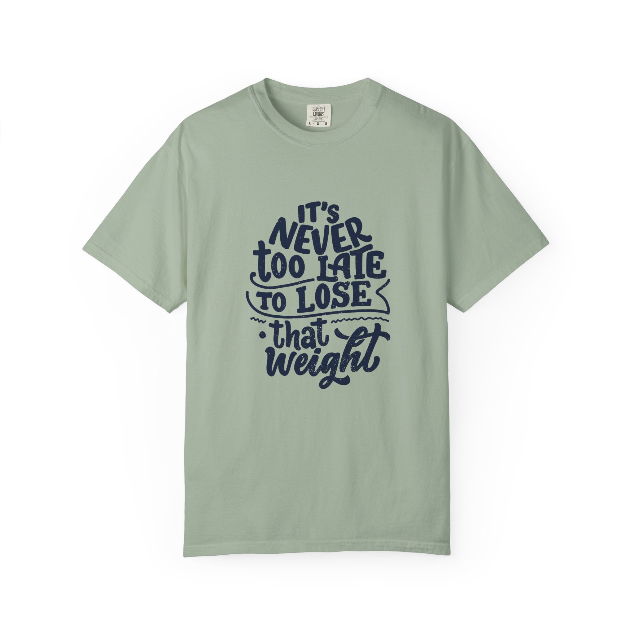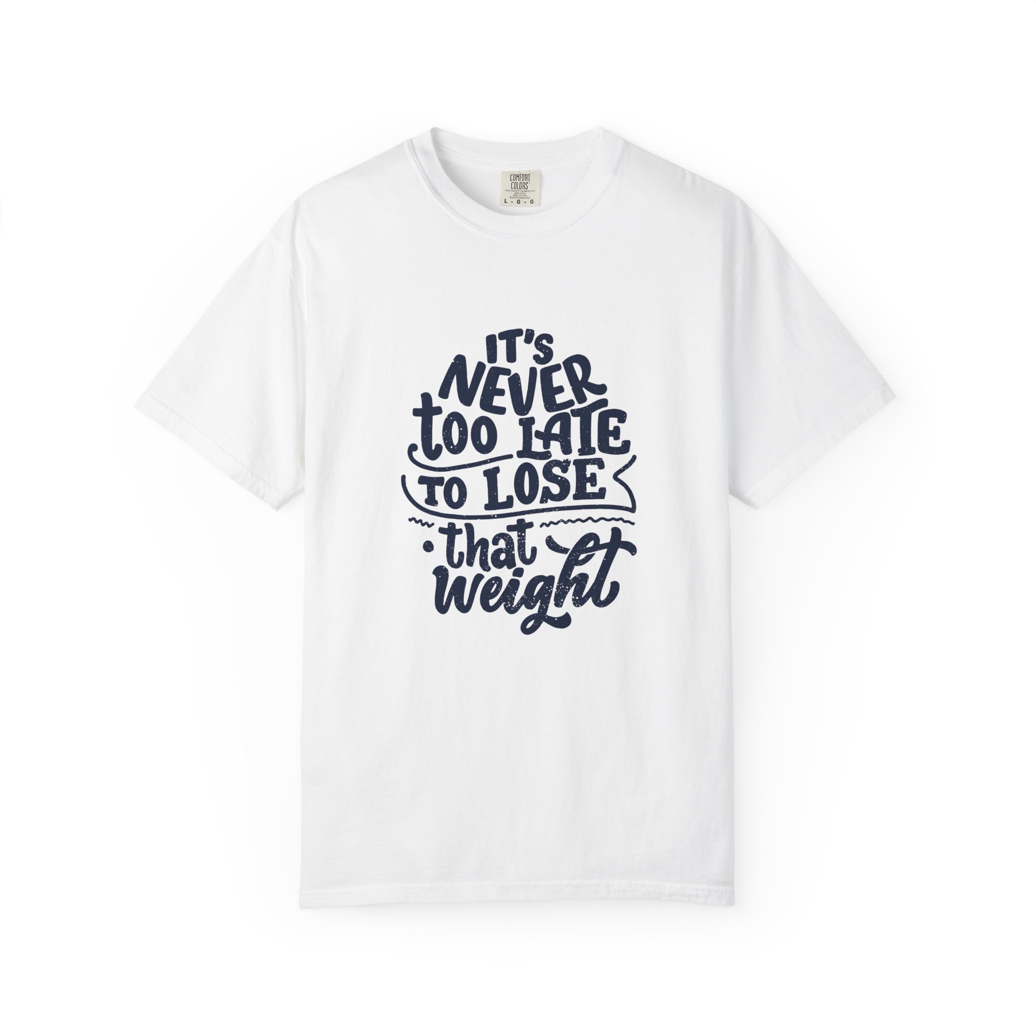 Motivational Unisex T-Shirt – “It’s Never Too Late to Lose That Weight”, Fitness Apparel, Gift for Health Enthusiasts.
