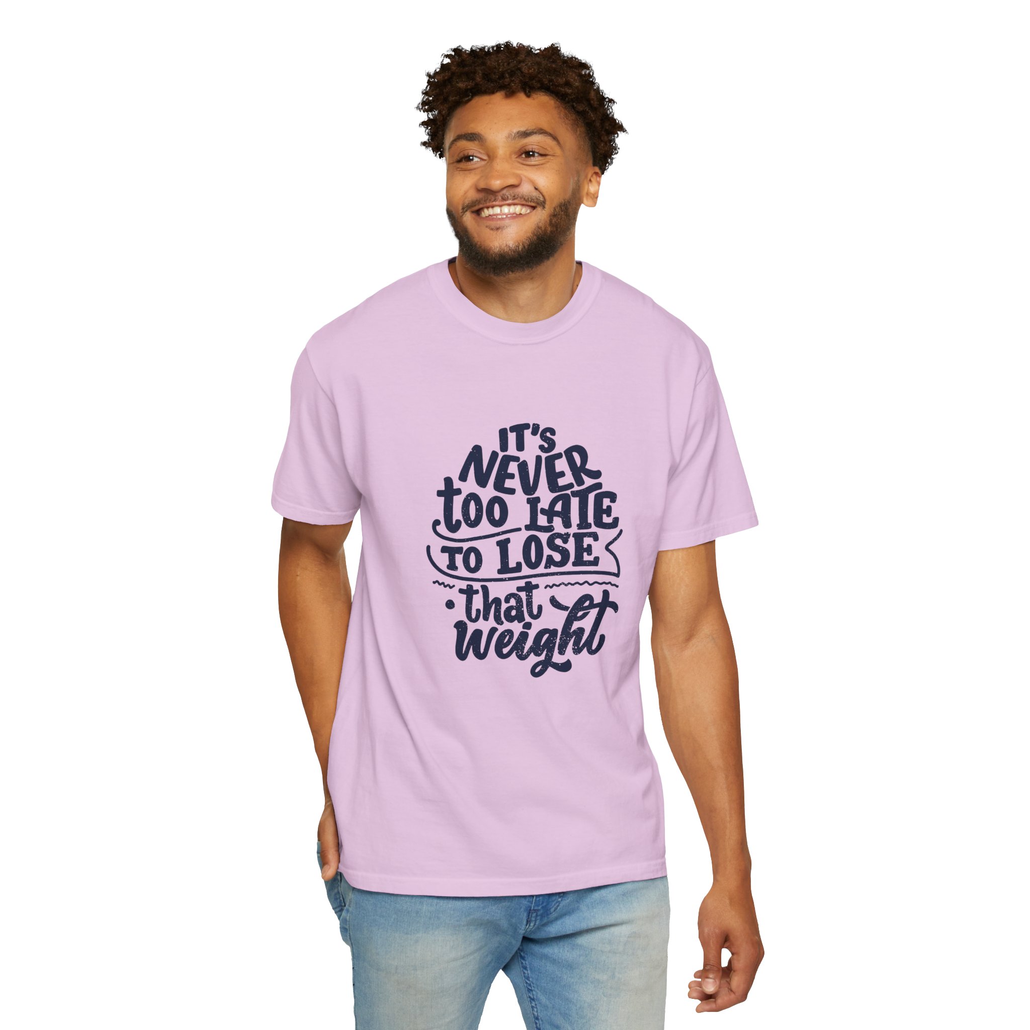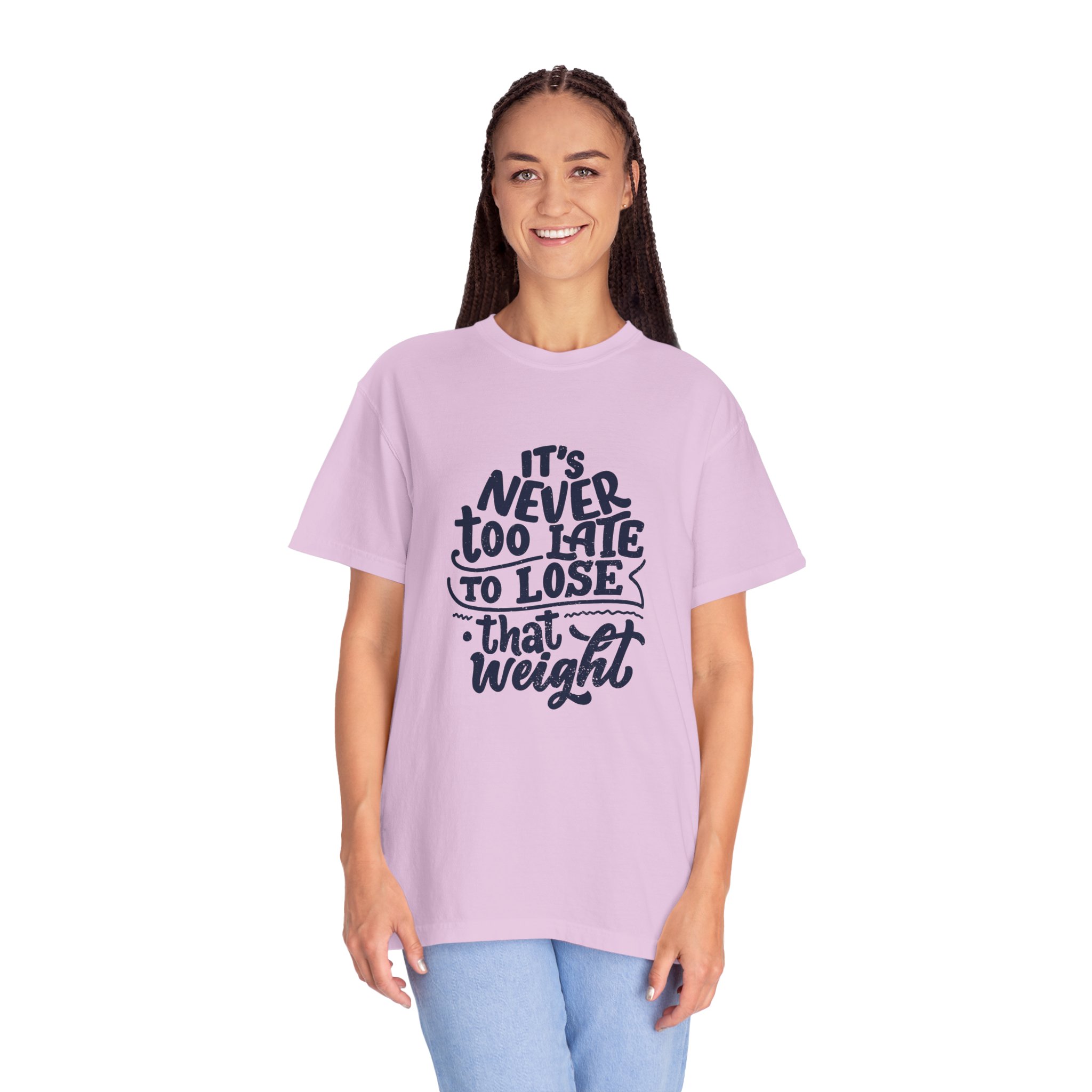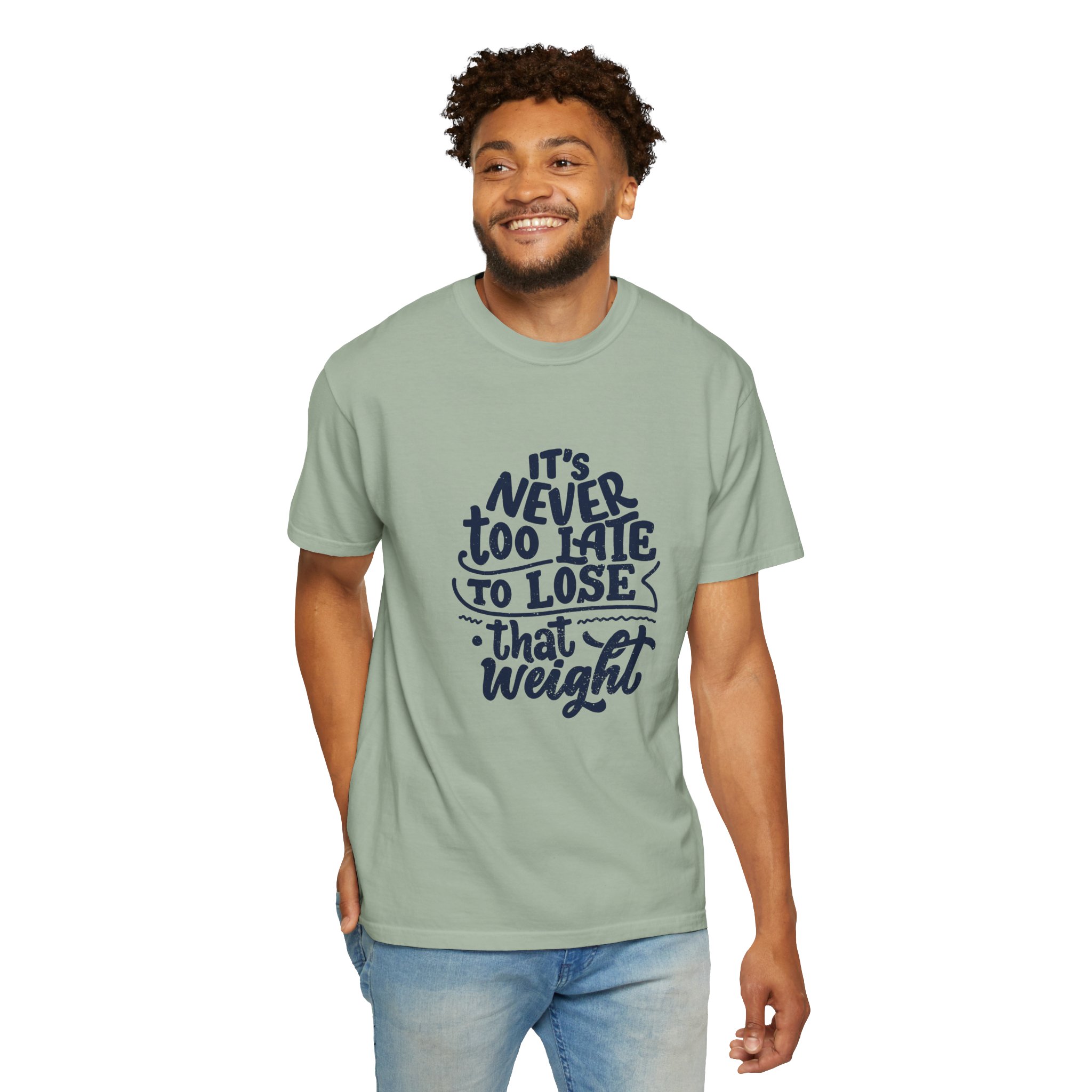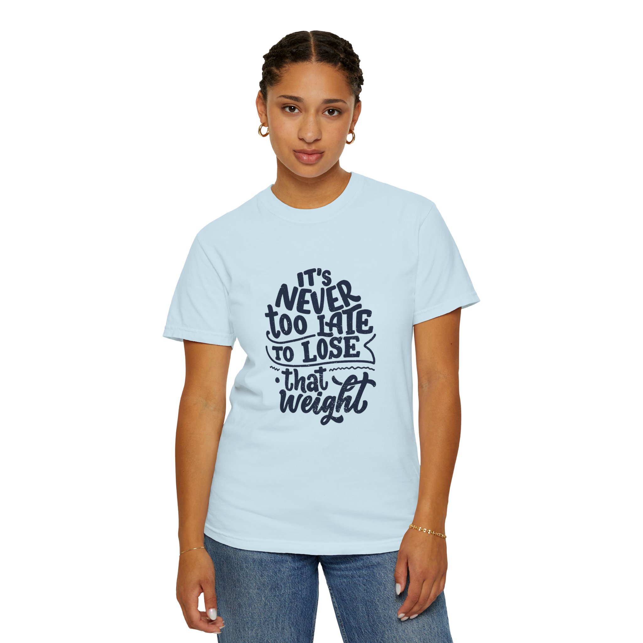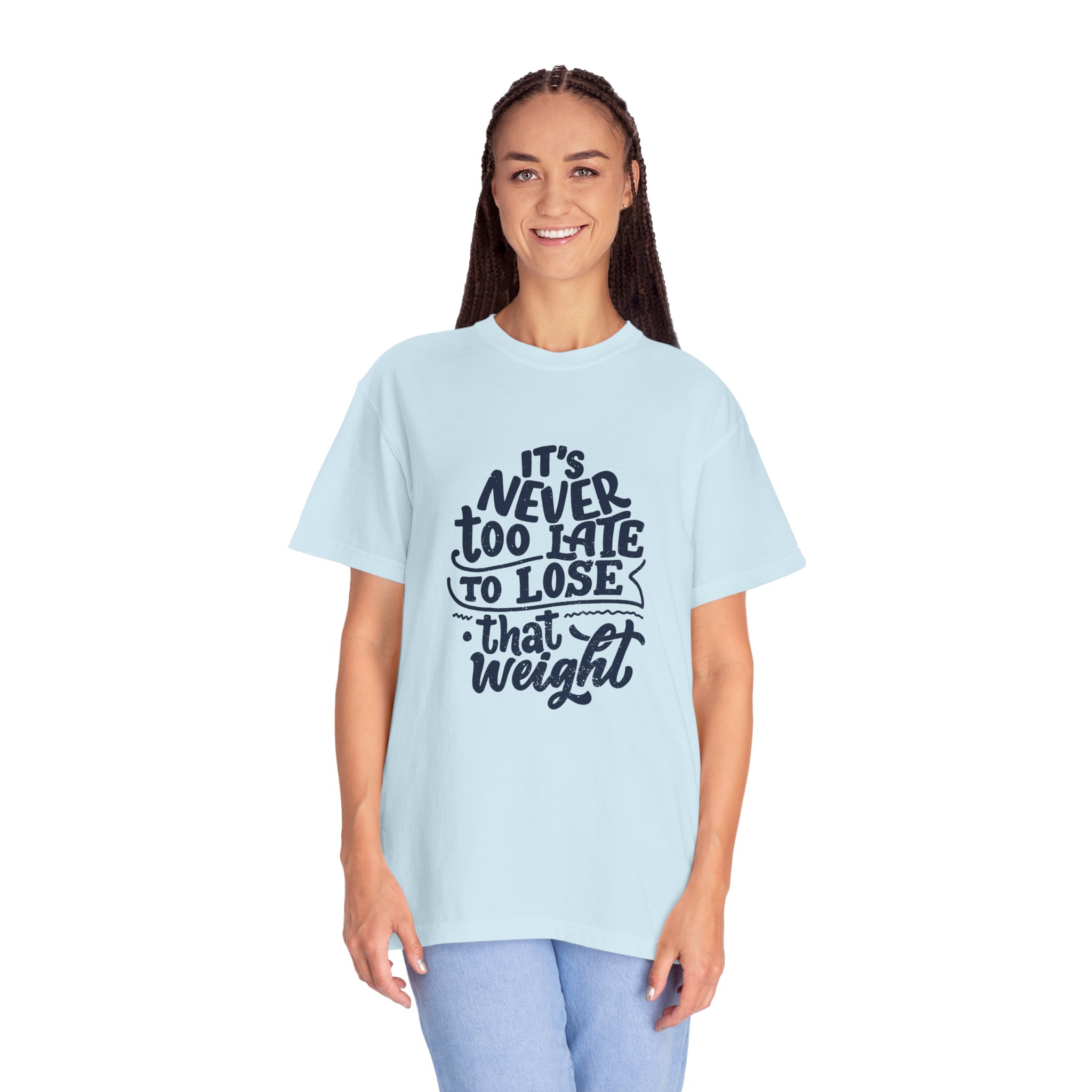 Motivational Unisex T-Shirt – “It’s Never Too Late to Lose That Weight”, Fitness Apparel, Gift for Health Enthusiasts.