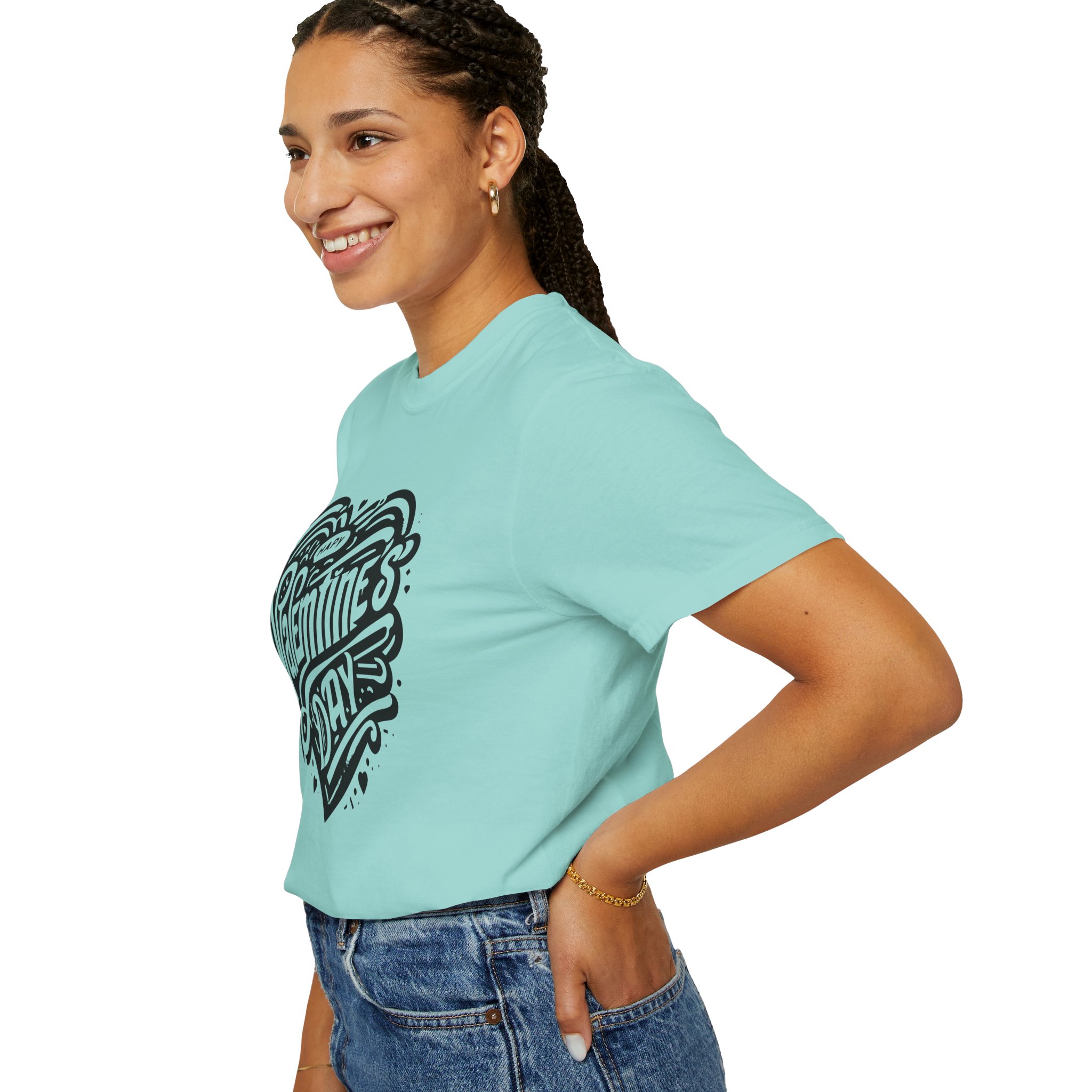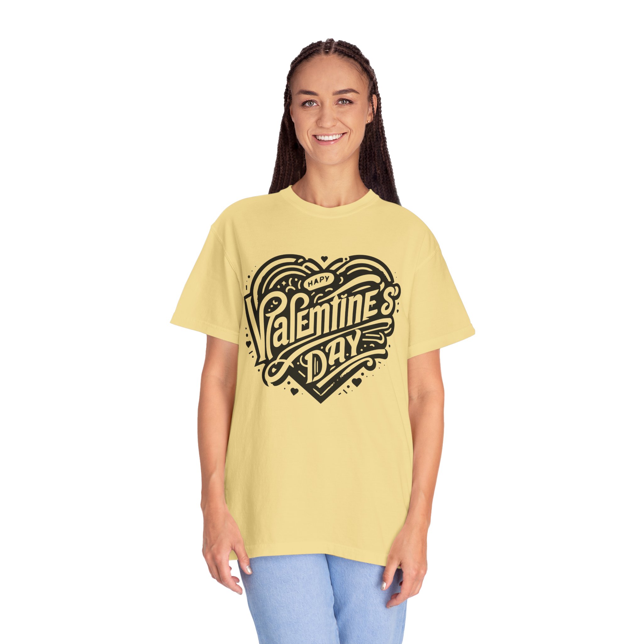 A soft, heavyweight tee with a vintage, hand-lettered Valentine’s Day design that feels lived-in from the first wear. The garment-dyed cotton gives a muted, broken-in color and a cozy texture that drapes casually over the body. Thoughtfully constructed—tubular knit with no side seams and double-needle stitching—this shirt is made to last through seasons of wear. It sits relaxed on the frame, available in a wide range of sizes and colors so you can choose the tone that matches your mood or the way you celebrate. Wear it to low-key date nights, neighborhood walks, or to layer under a cardigan when the air turns cool; the nostalgic heart-and-script artwork speaks softly, not loudly, about warmth and connection.