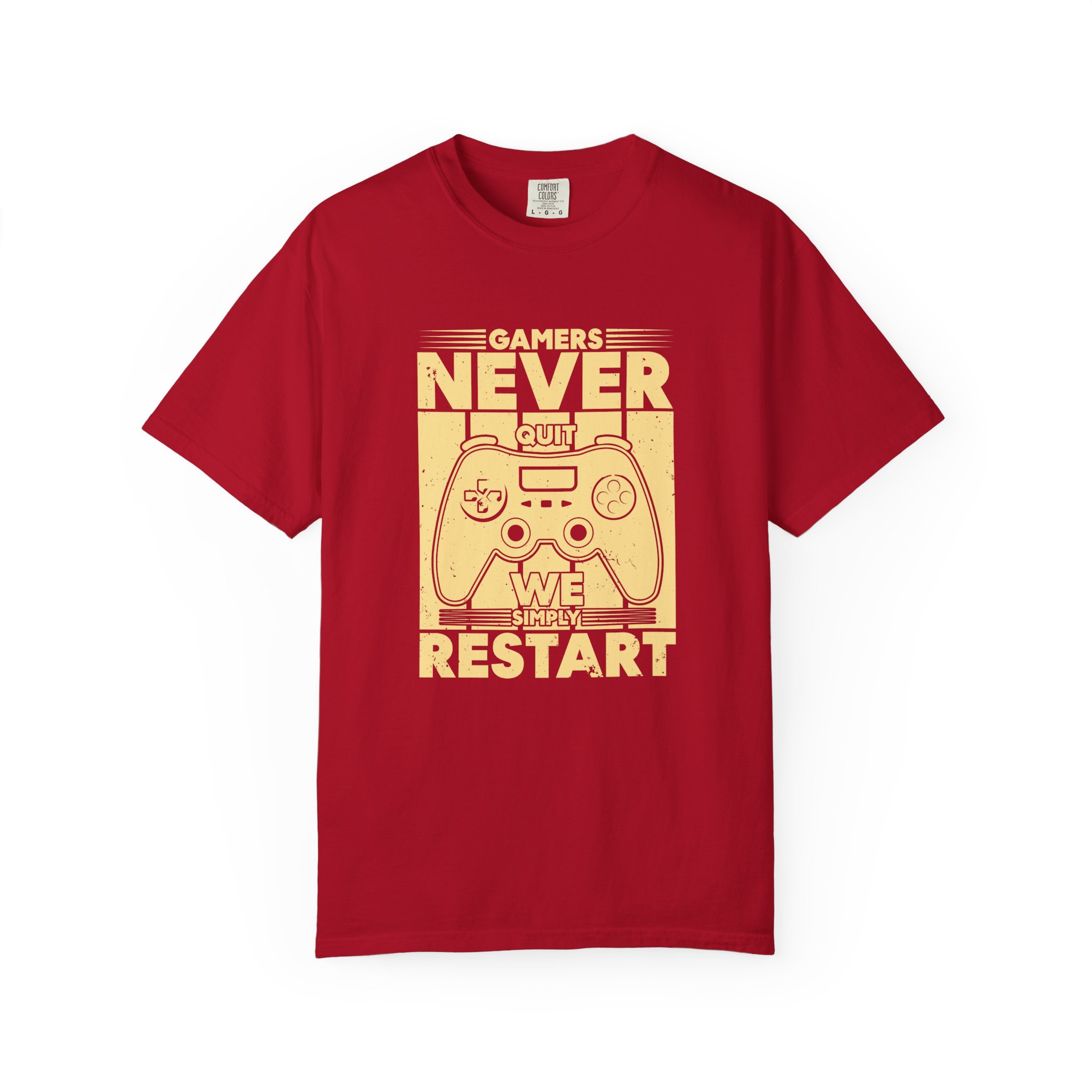 Never Restart Gamer Controller T-Shirt – Cool Gaming Graphic Tee for Determination, Skill & Hardcore Gamer Vibes.