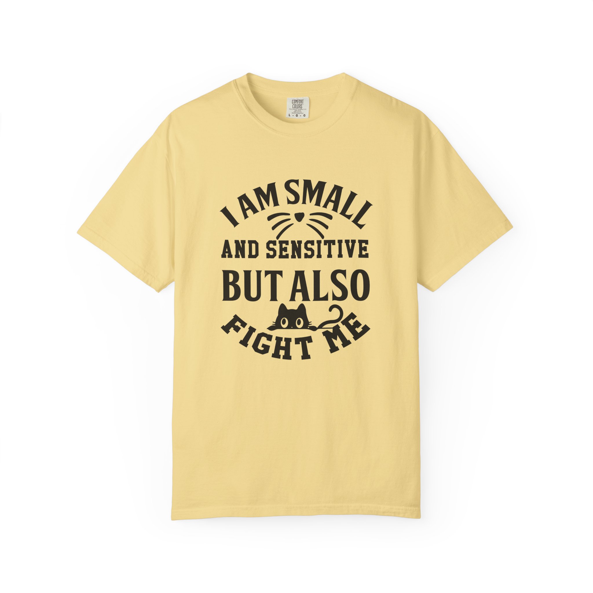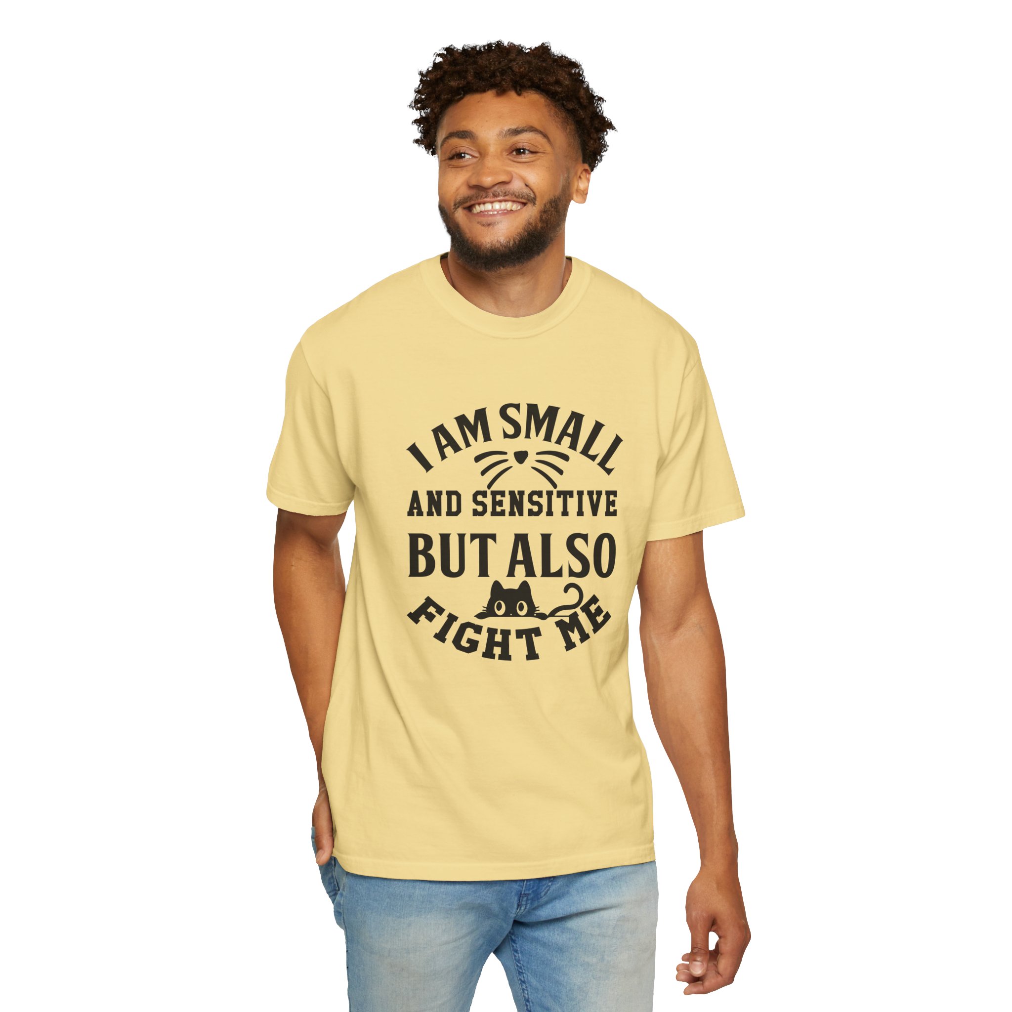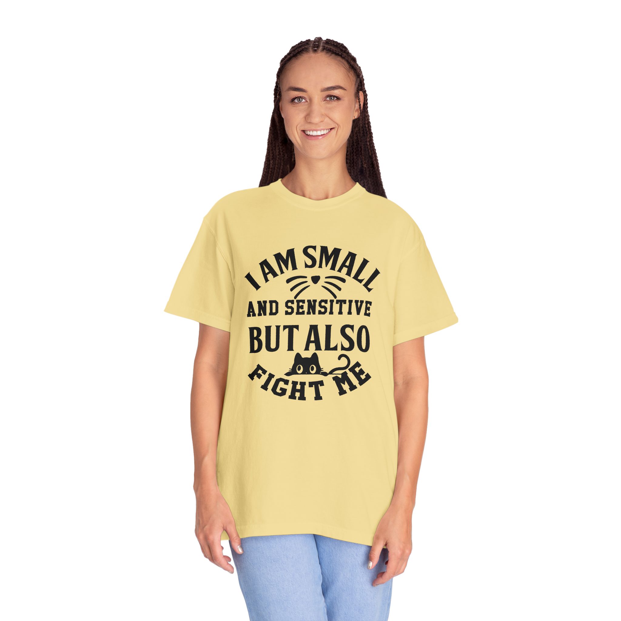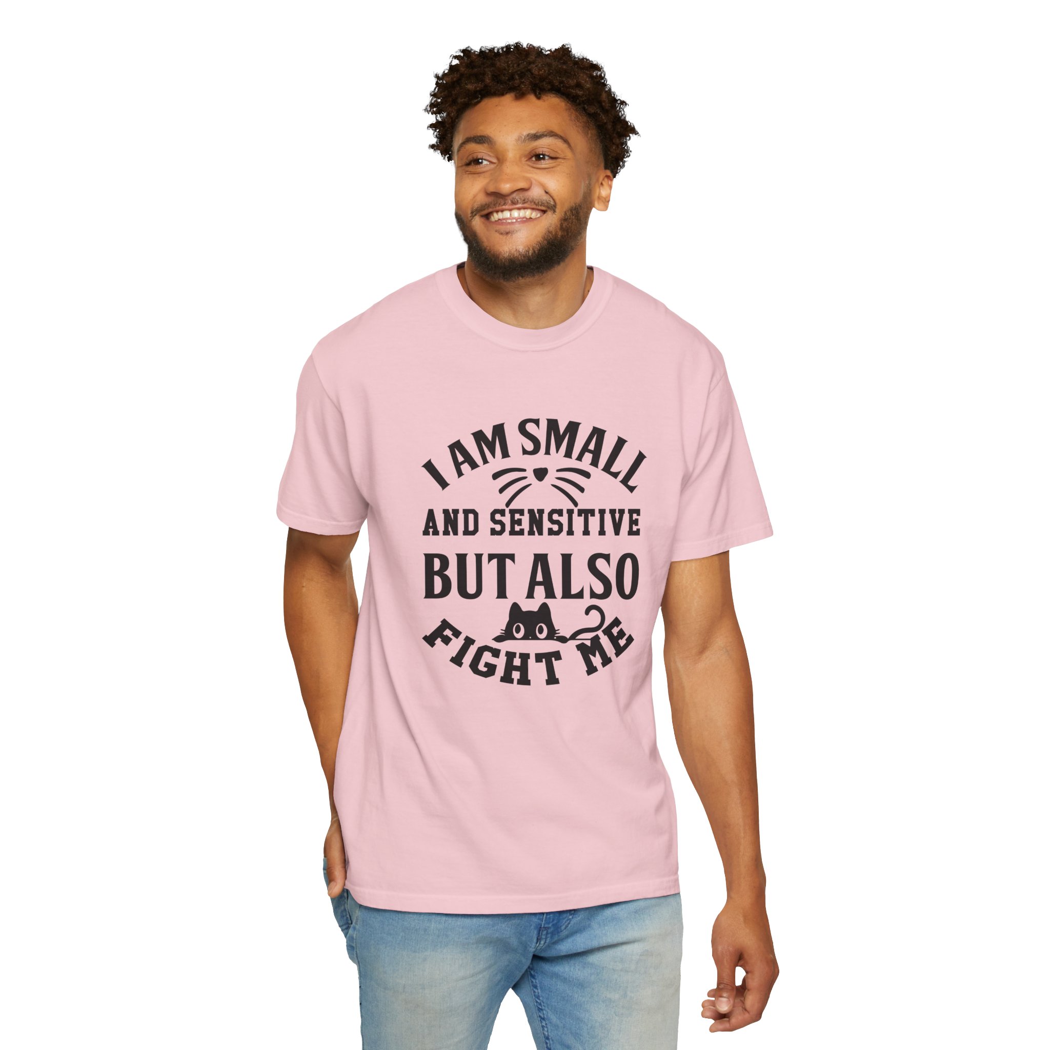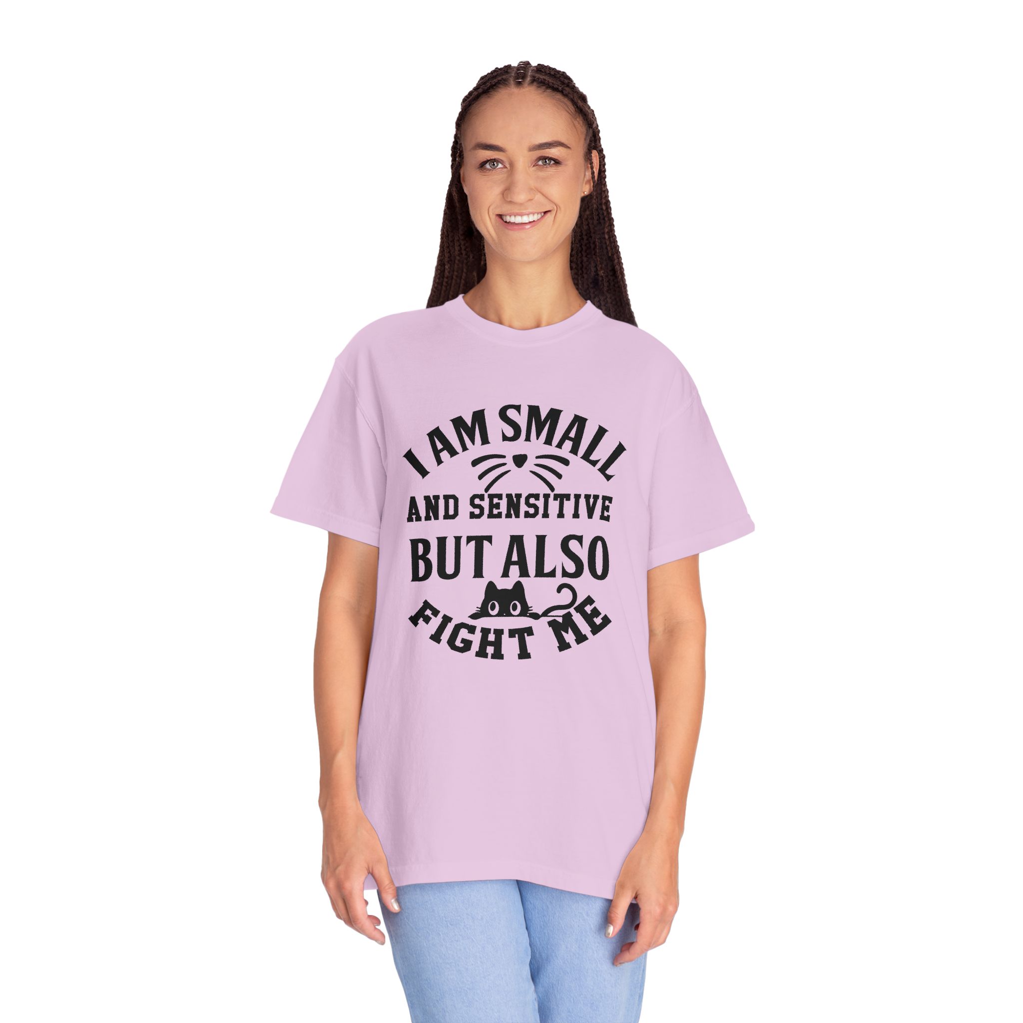 Introducing a stylish Unisex Garment-Dyed T-shirt that embodies a playful yet bold attitude. Featuring a charming design with the phrase ‘I AM SMALL AND SENSITIVE BUT ALSO FIGHT ME,’ this tee is perfect for those who embrace their unique personality. The soft, garment-dyed fabric offers a vintage vibe, making it an ideal addition to casual outings or cozy gatherings with friends. Whether you’re lounging at home, running errands, or attending a casual party, this shirt adds a touch of humor and personality to your wardrobe. Ideal for cat lovers and anyone with a spirited sense of self, this tee makes a fantastic gift for birthdays, holidays, or simply as a fun treat for yourself. Celebrate individuality and comfort with this go-to t-shirt for everyday wear.